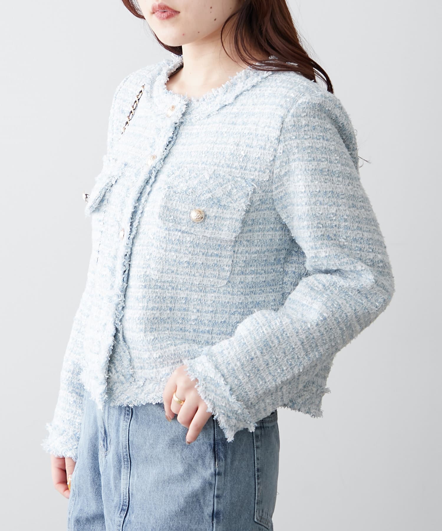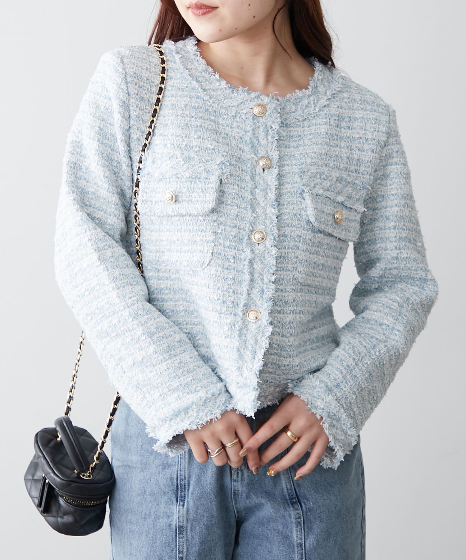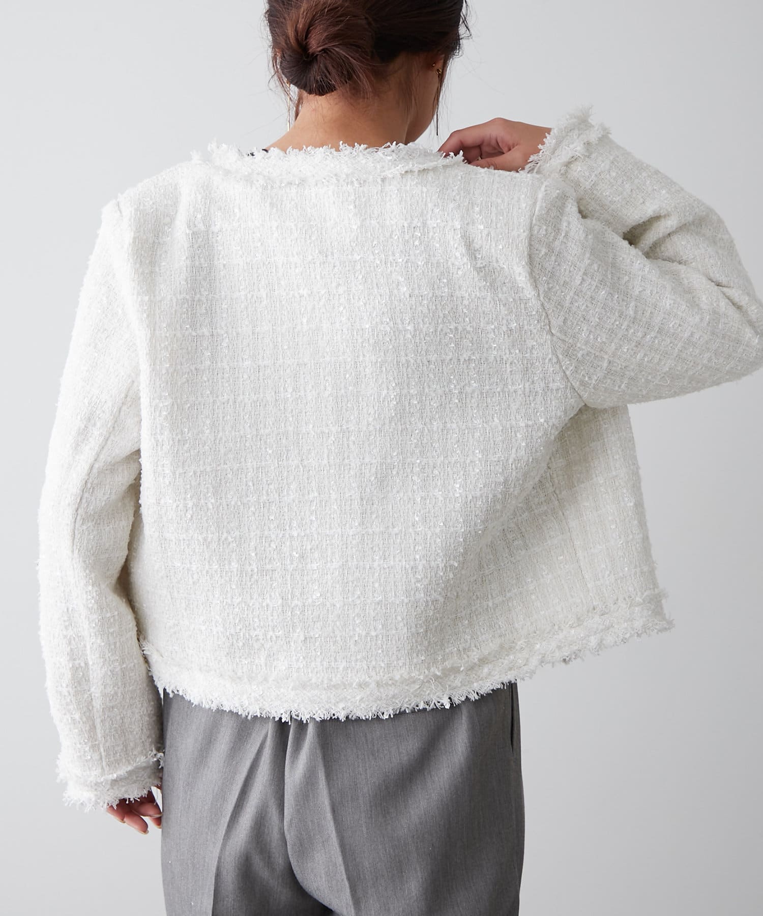 【新色追加】ラメフリンジツイードジャケット