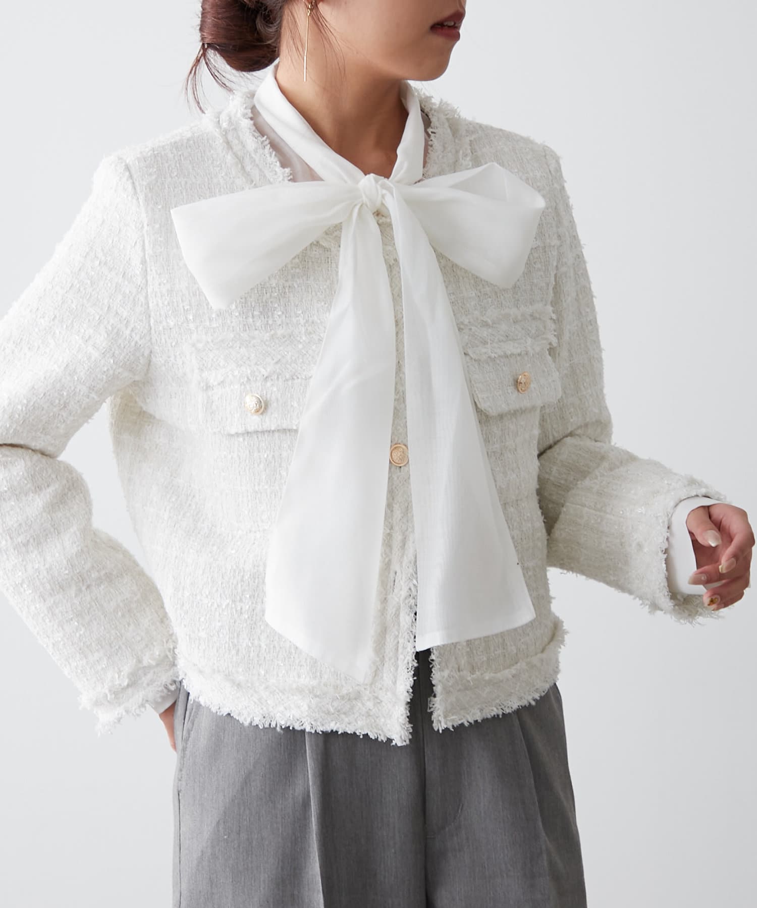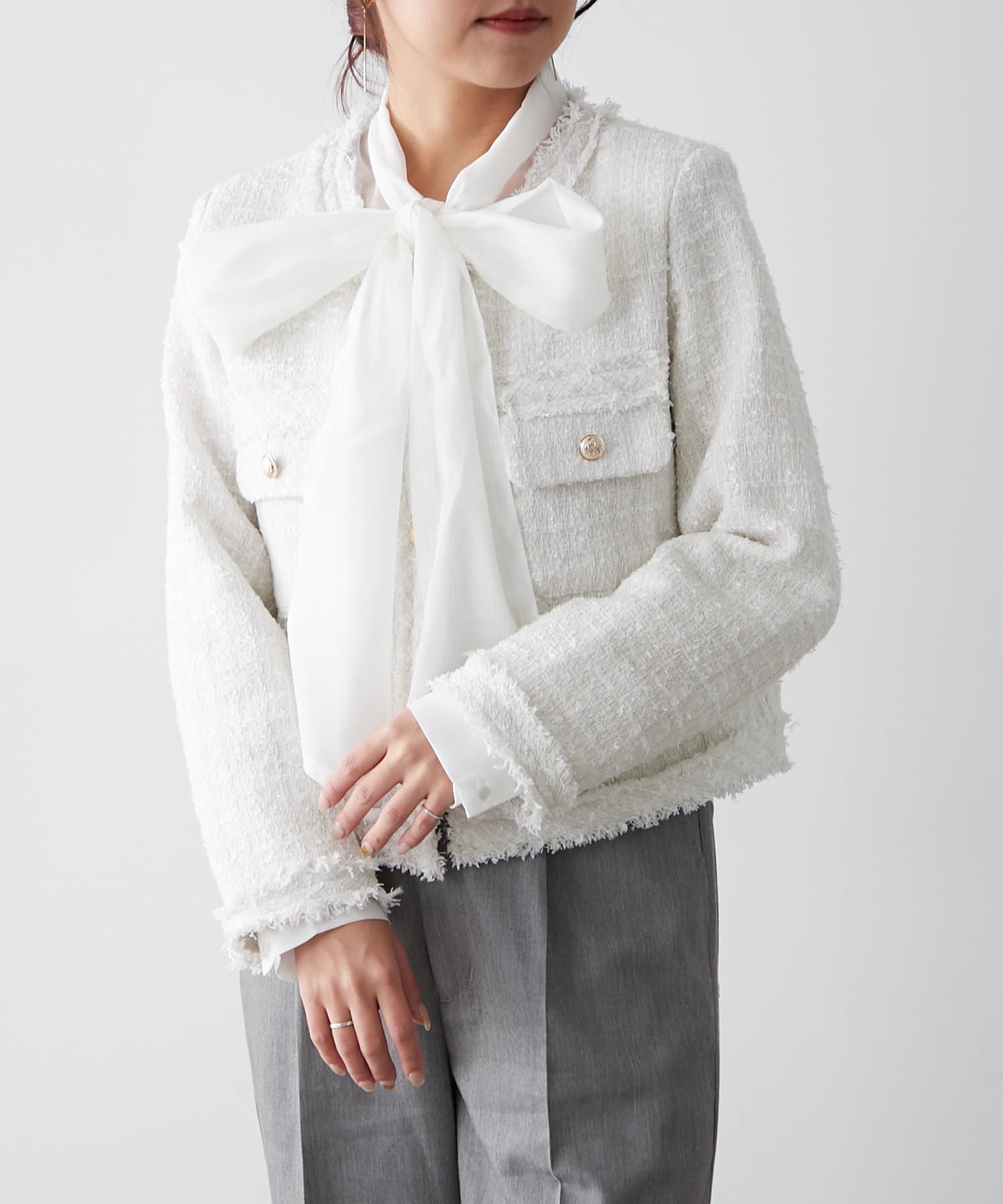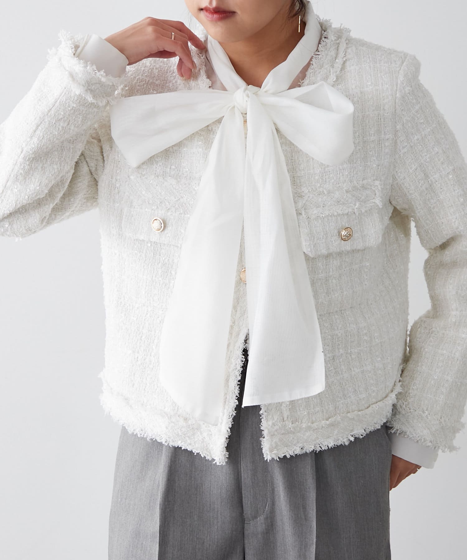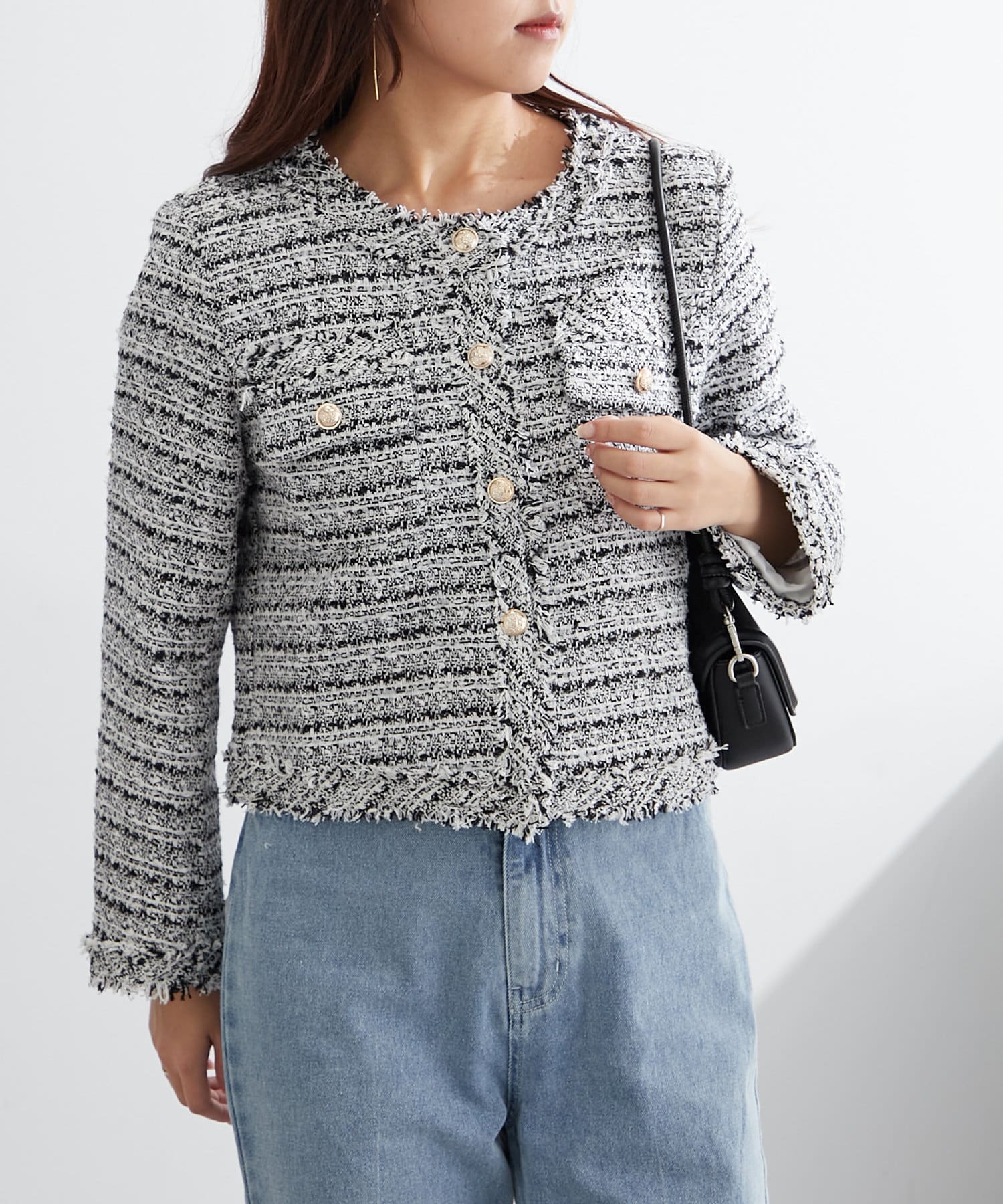 【新色追加】ラメフリンジツイードジャケット