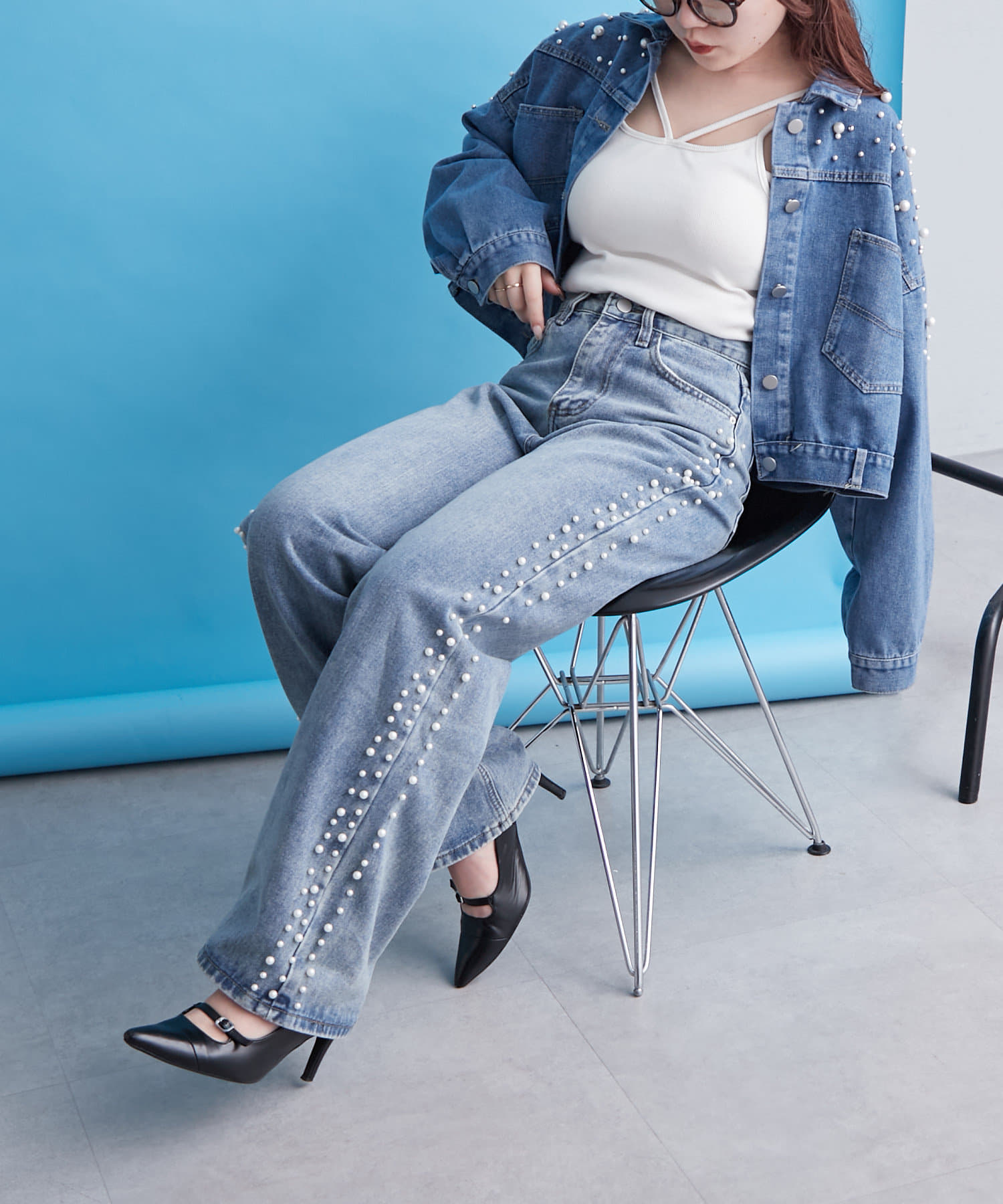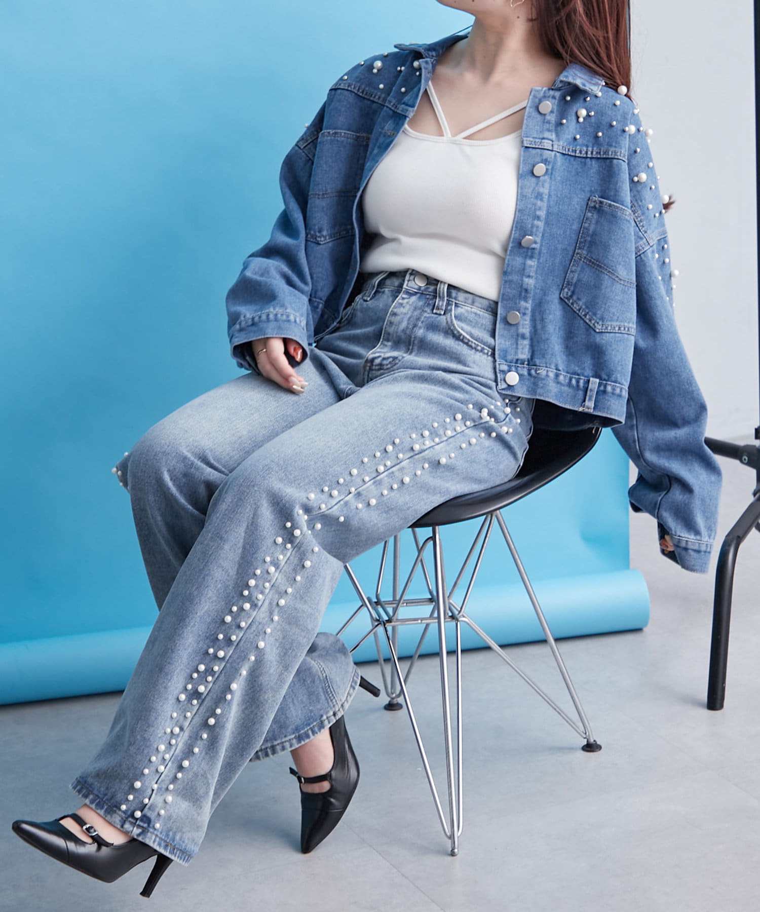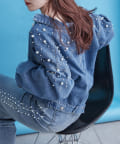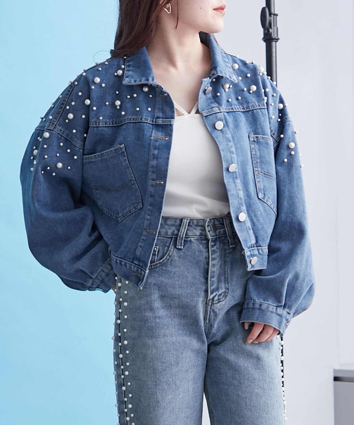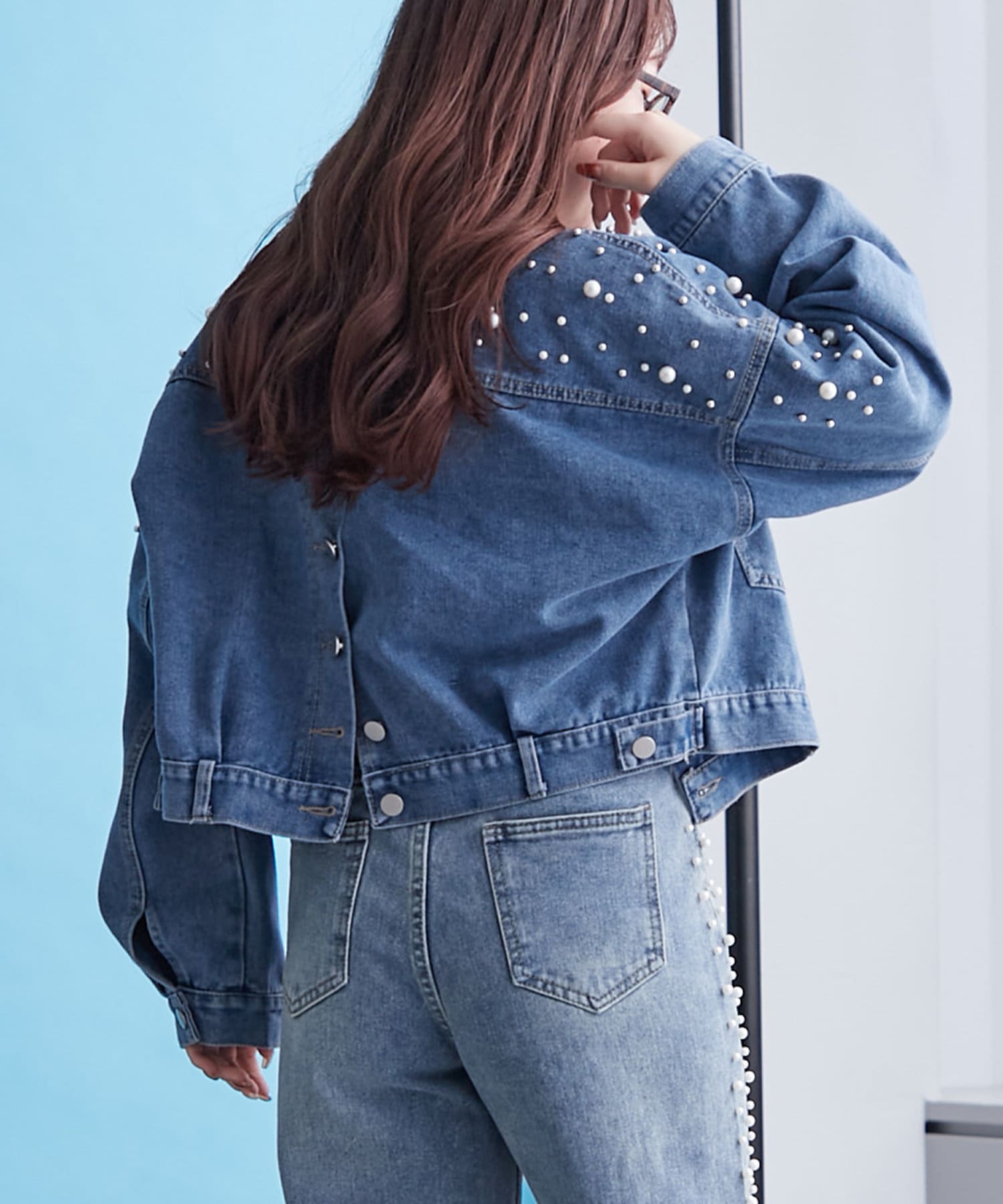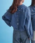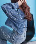 ・大小さまざまなパールが散りばめられた目を引く華やかなデニムジャケット◎