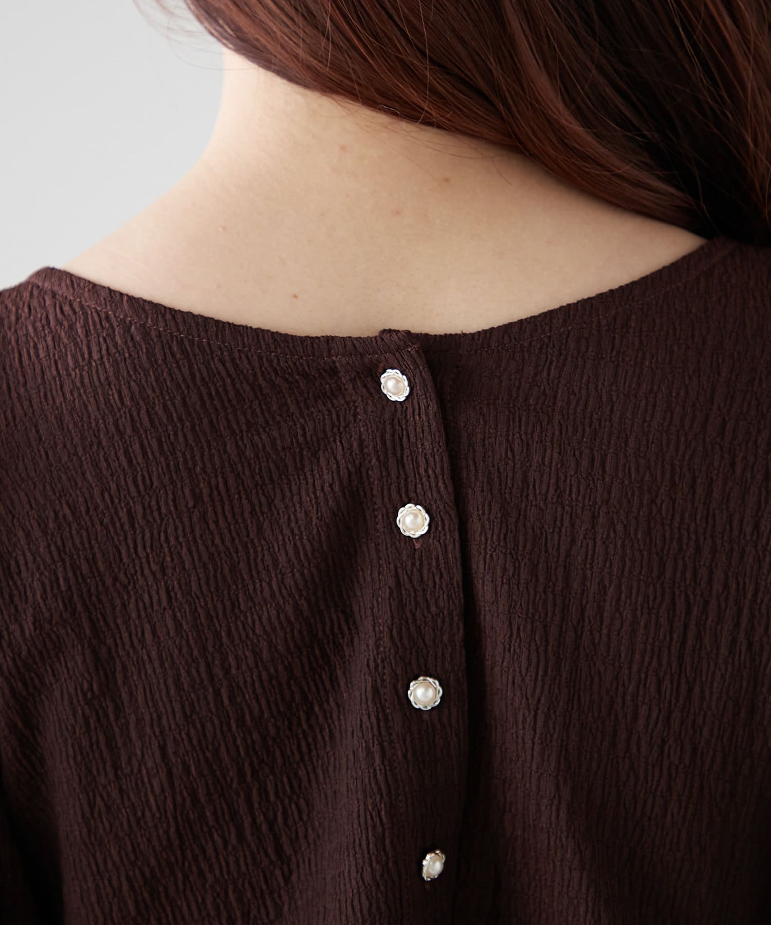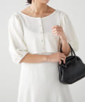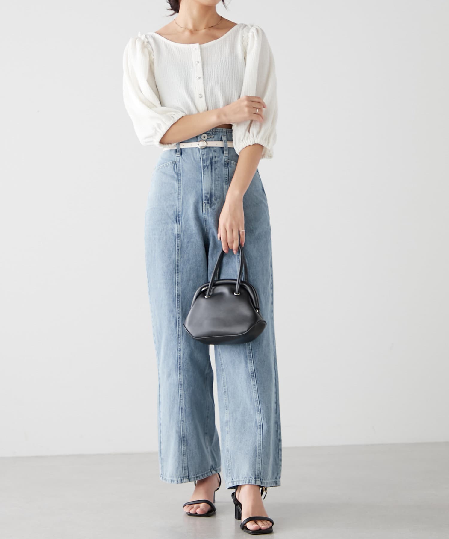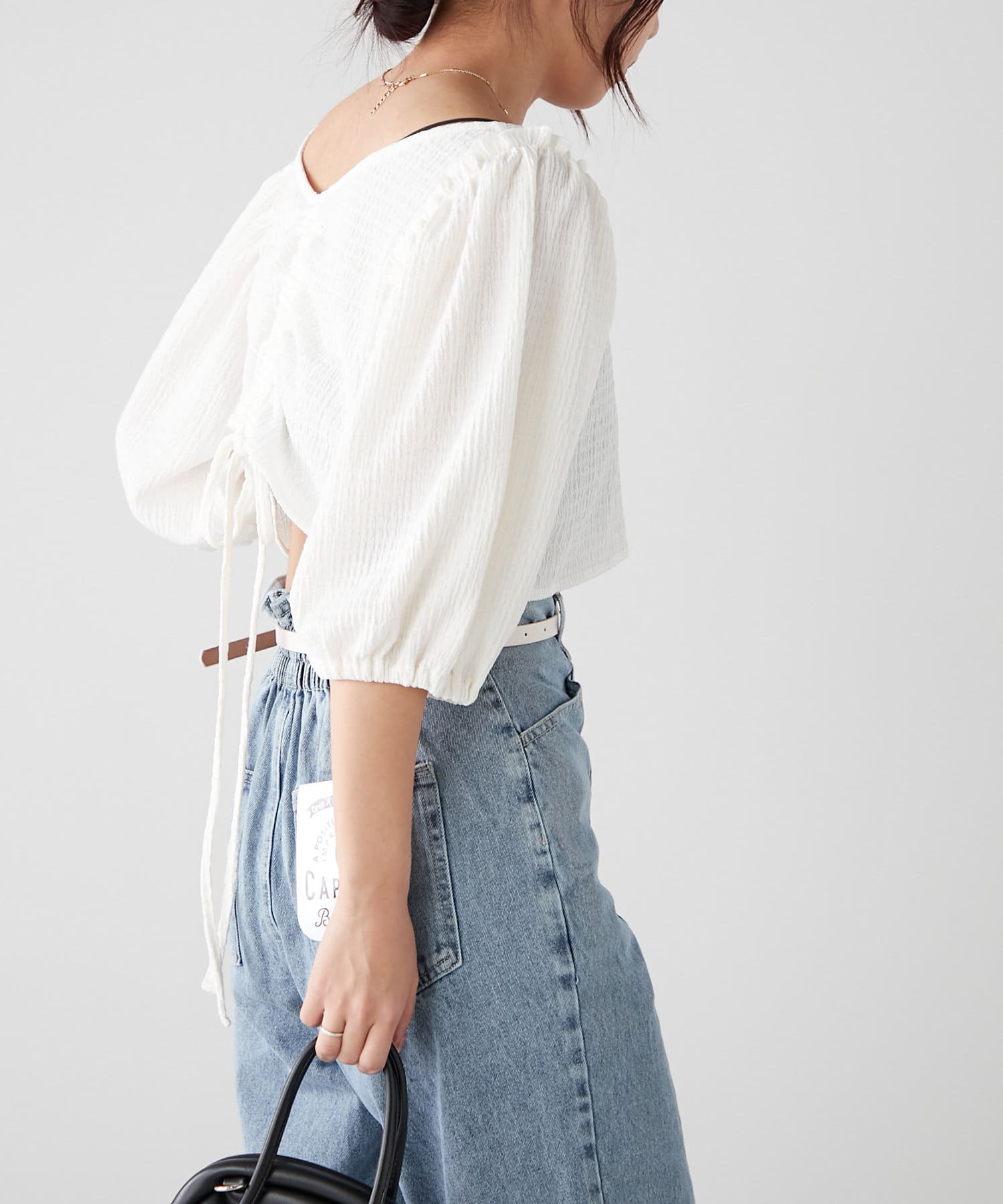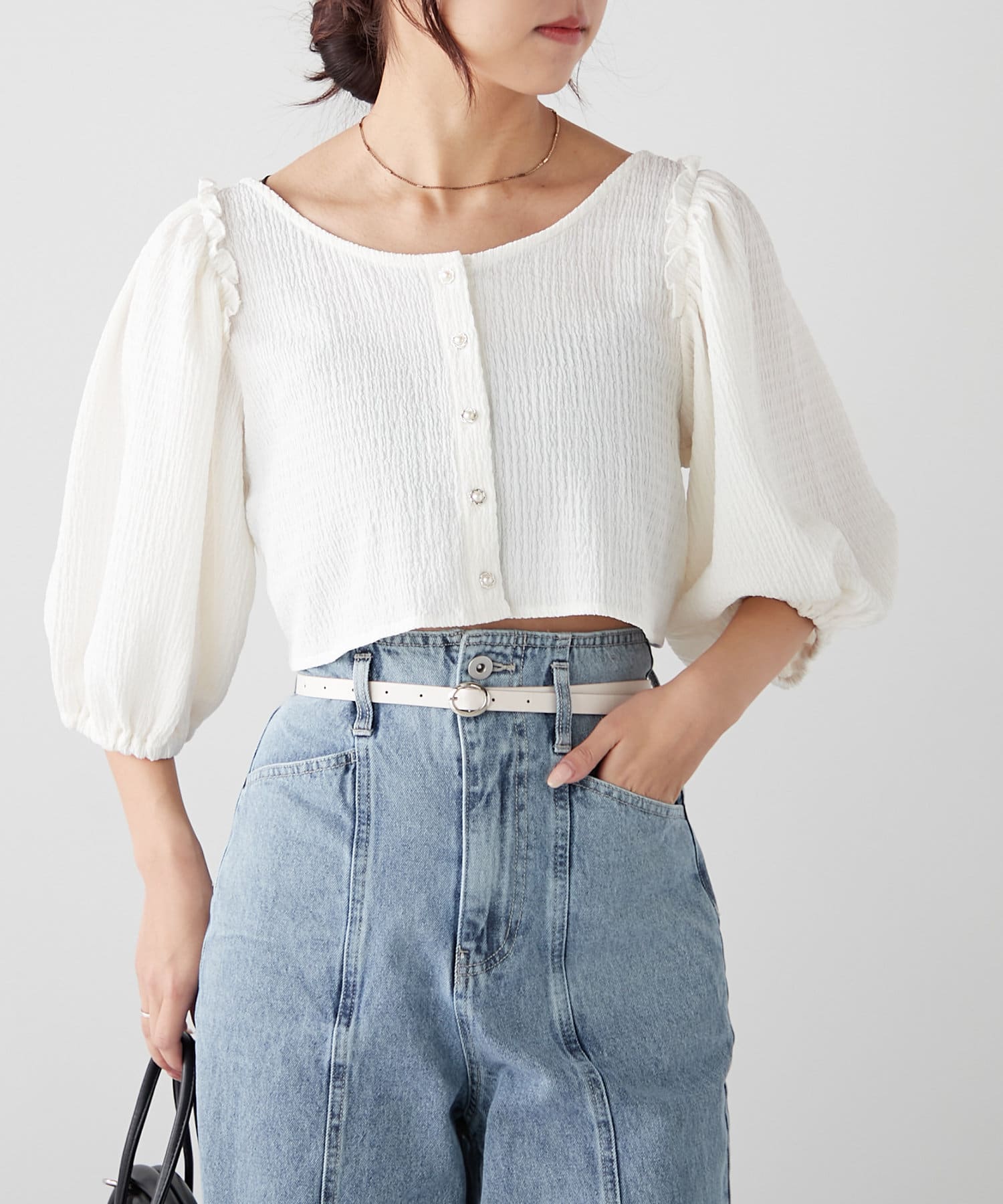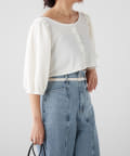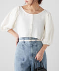 ・トップスは、カジュアルにもフェミニンにも着られる一枚。ショート丈なのでハイウエストボトムとの組み合わせがオススメです