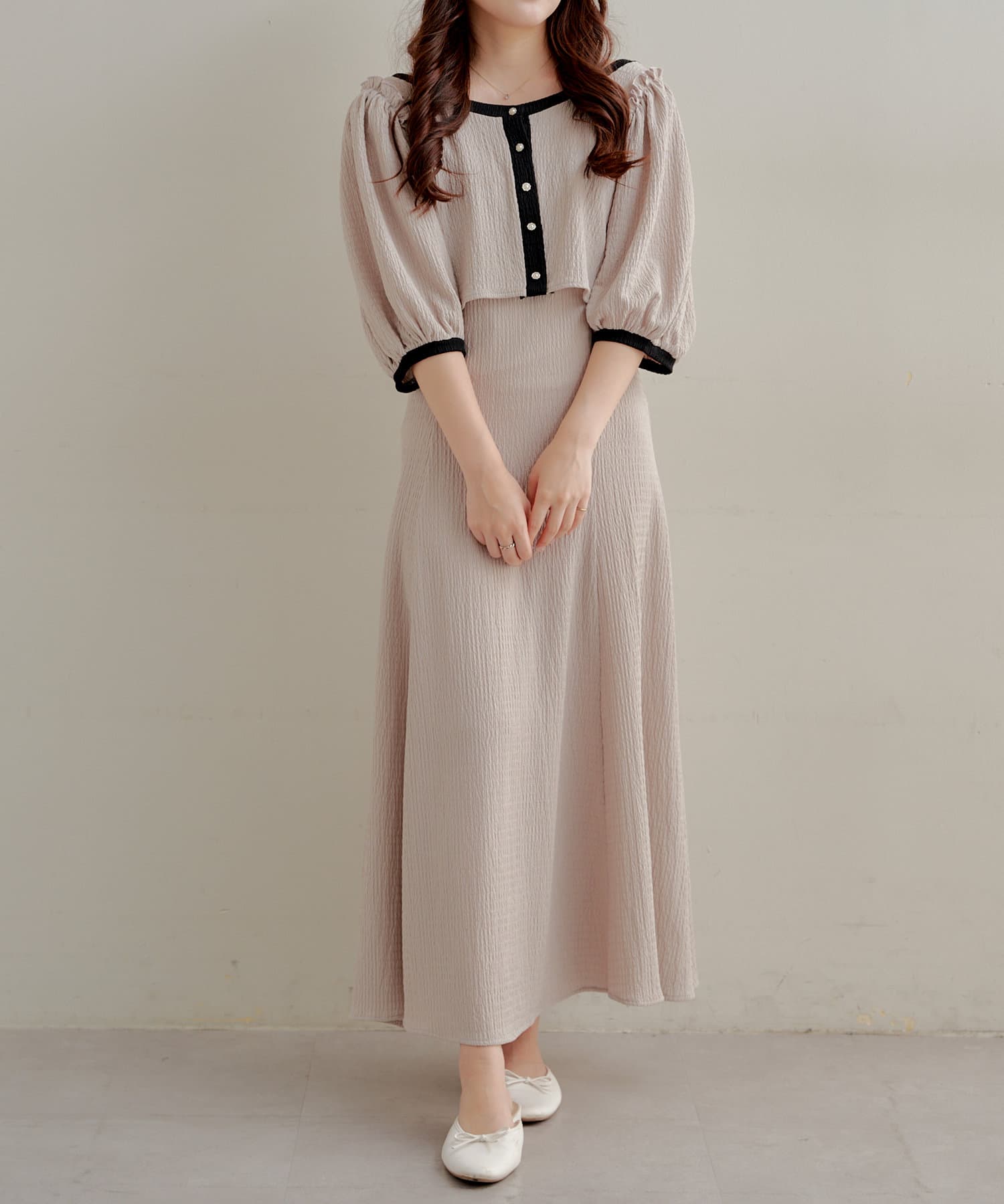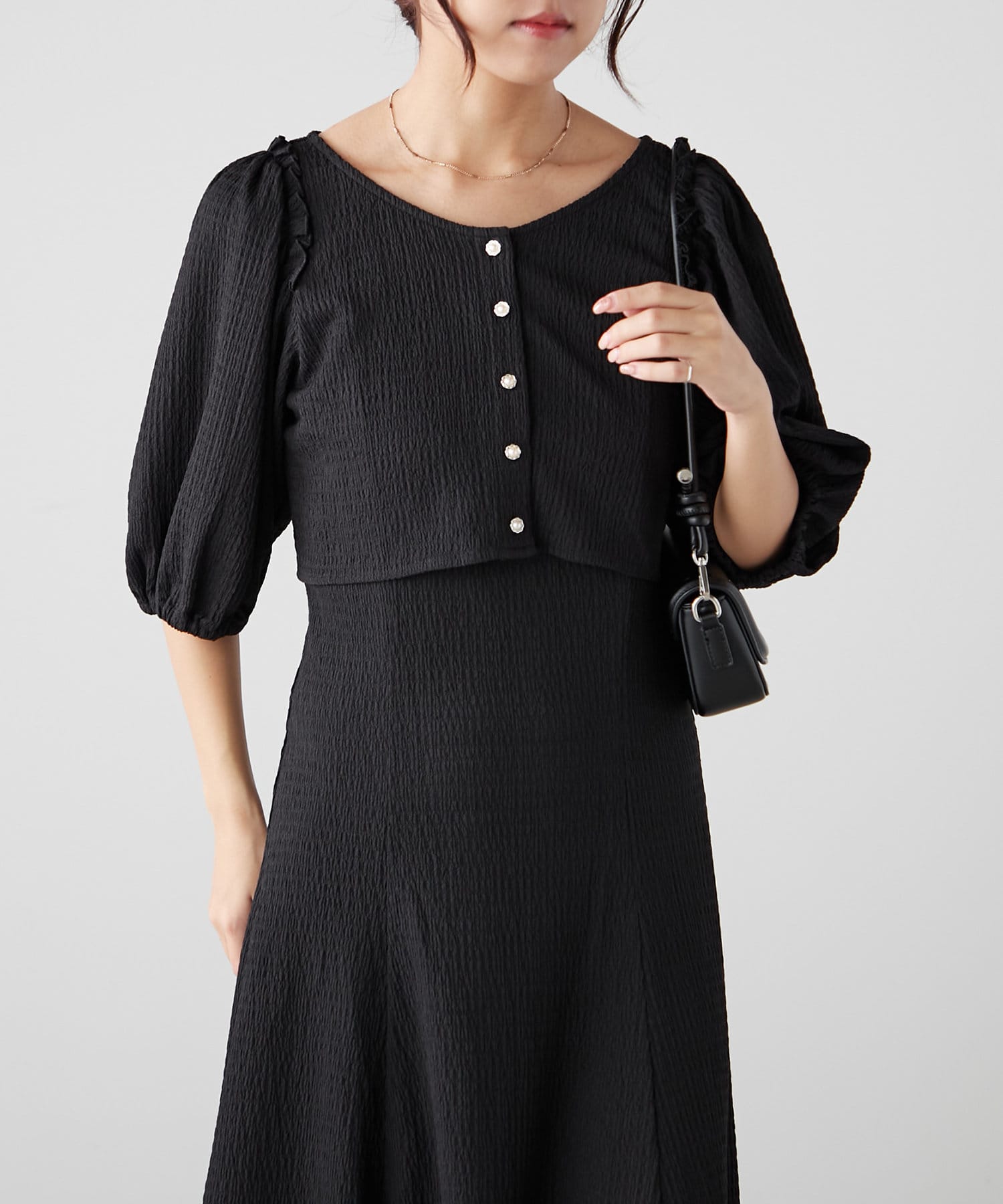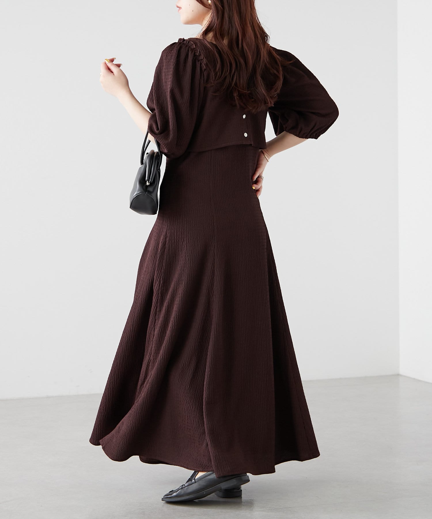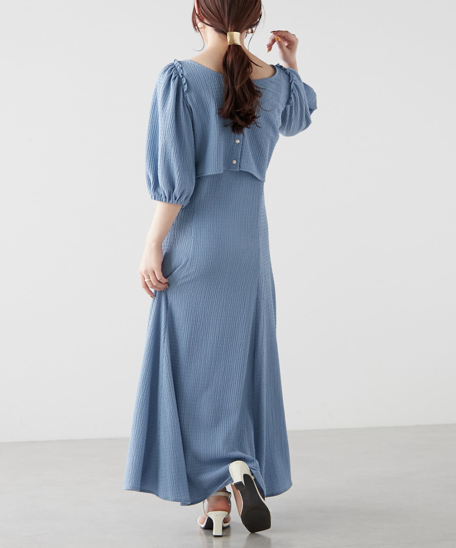 ・伸縮性のある素材で着心地抜群なワンピとボレロのセット