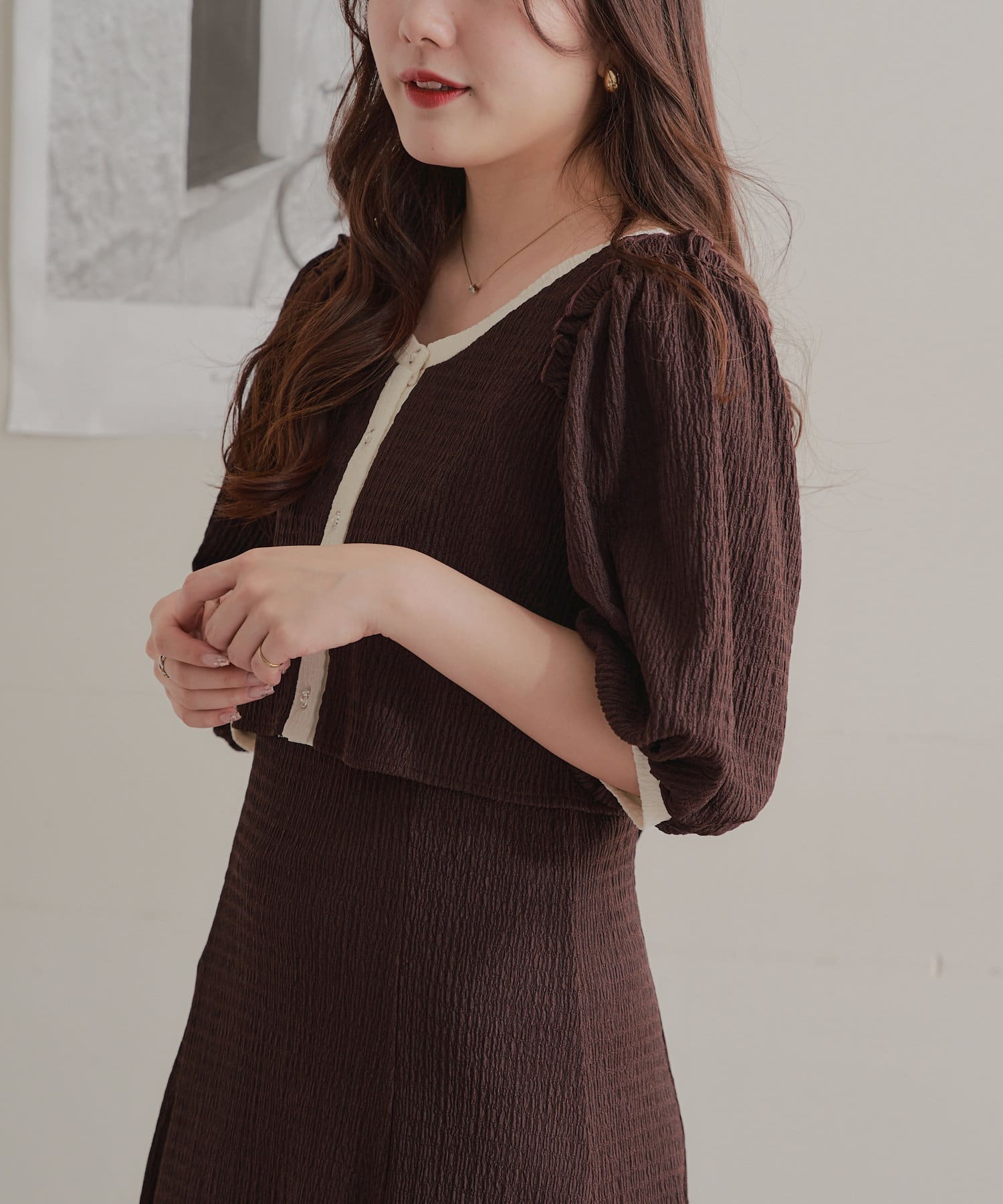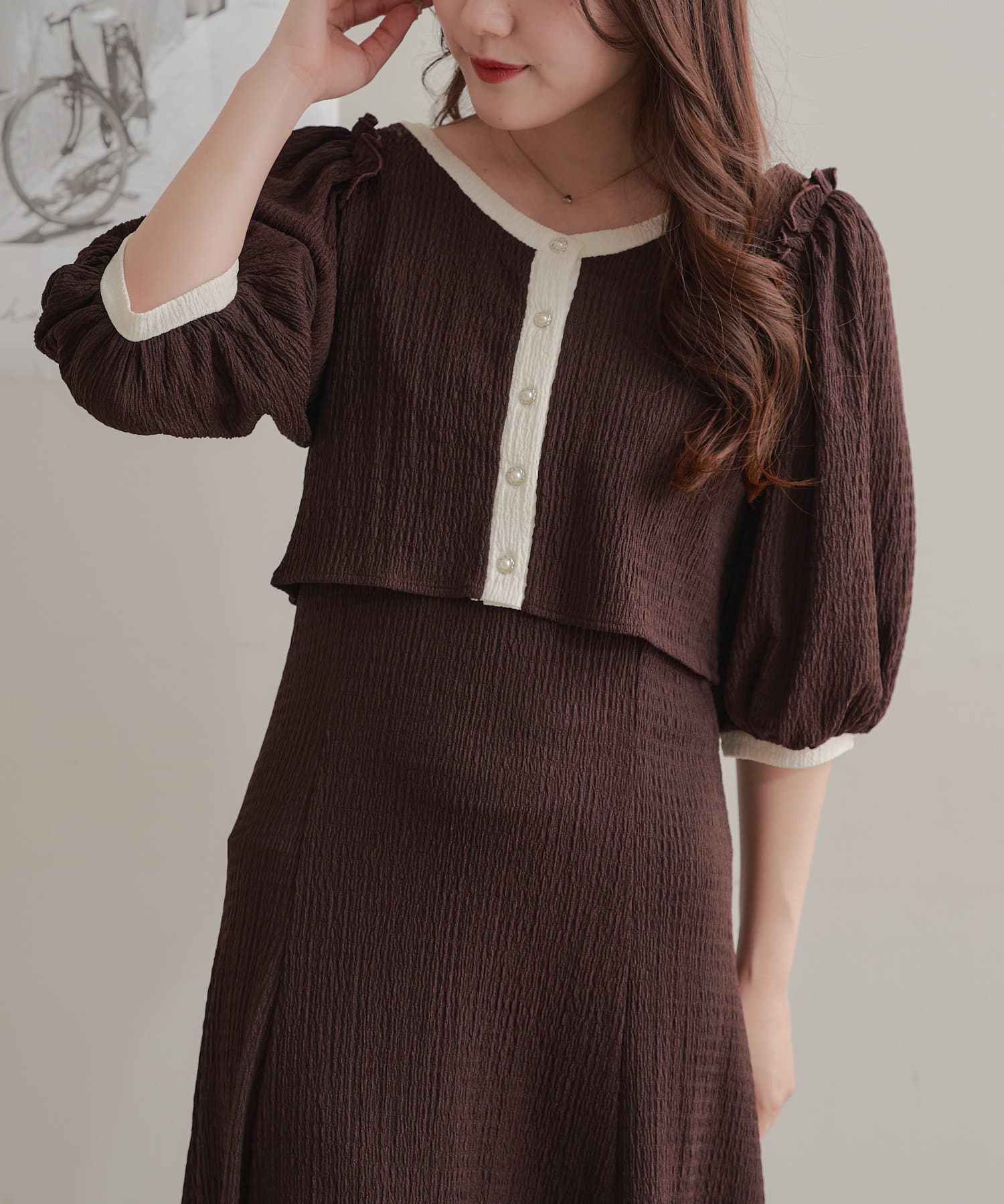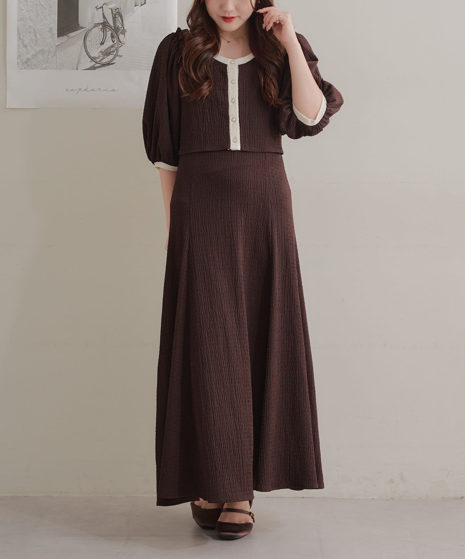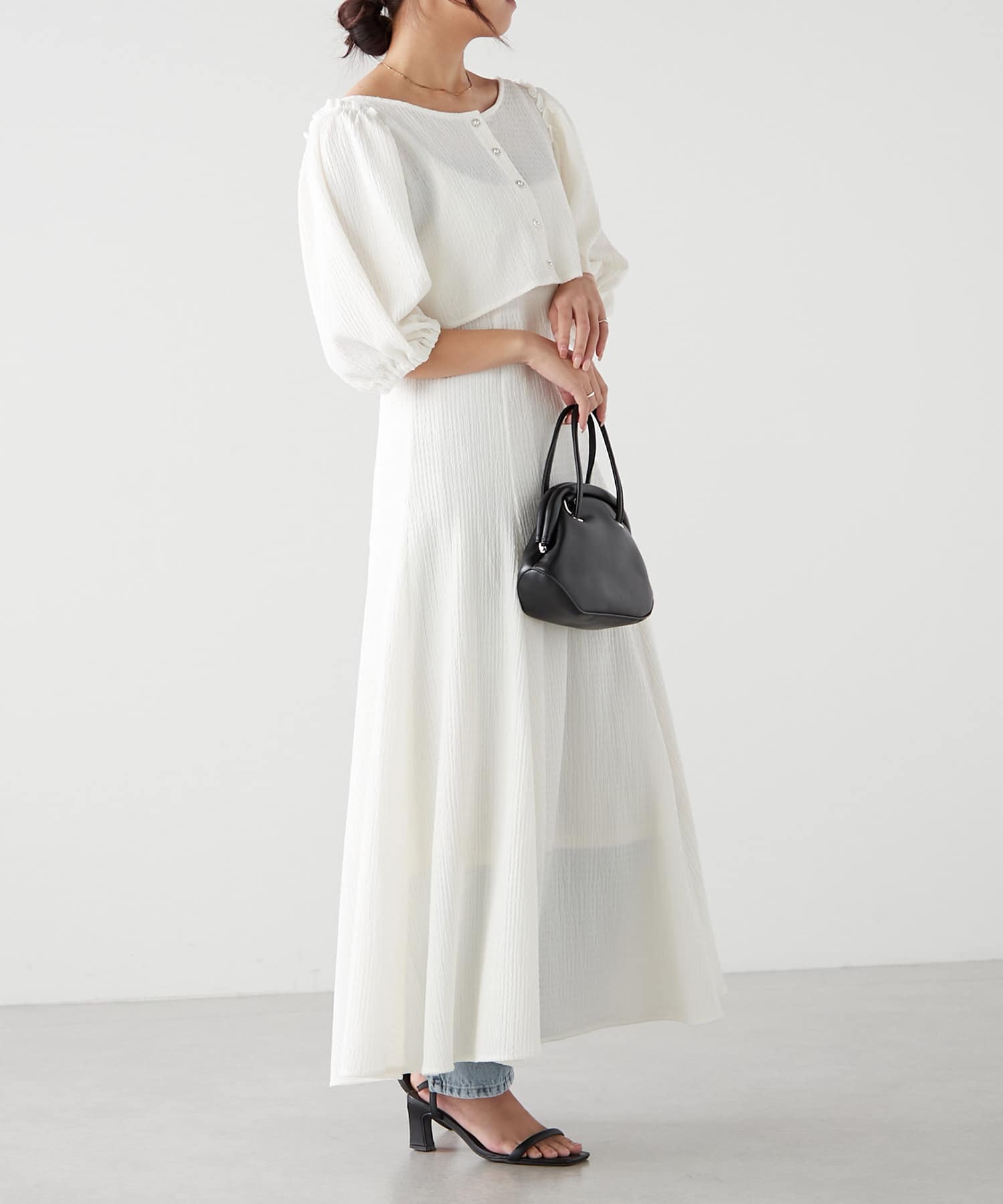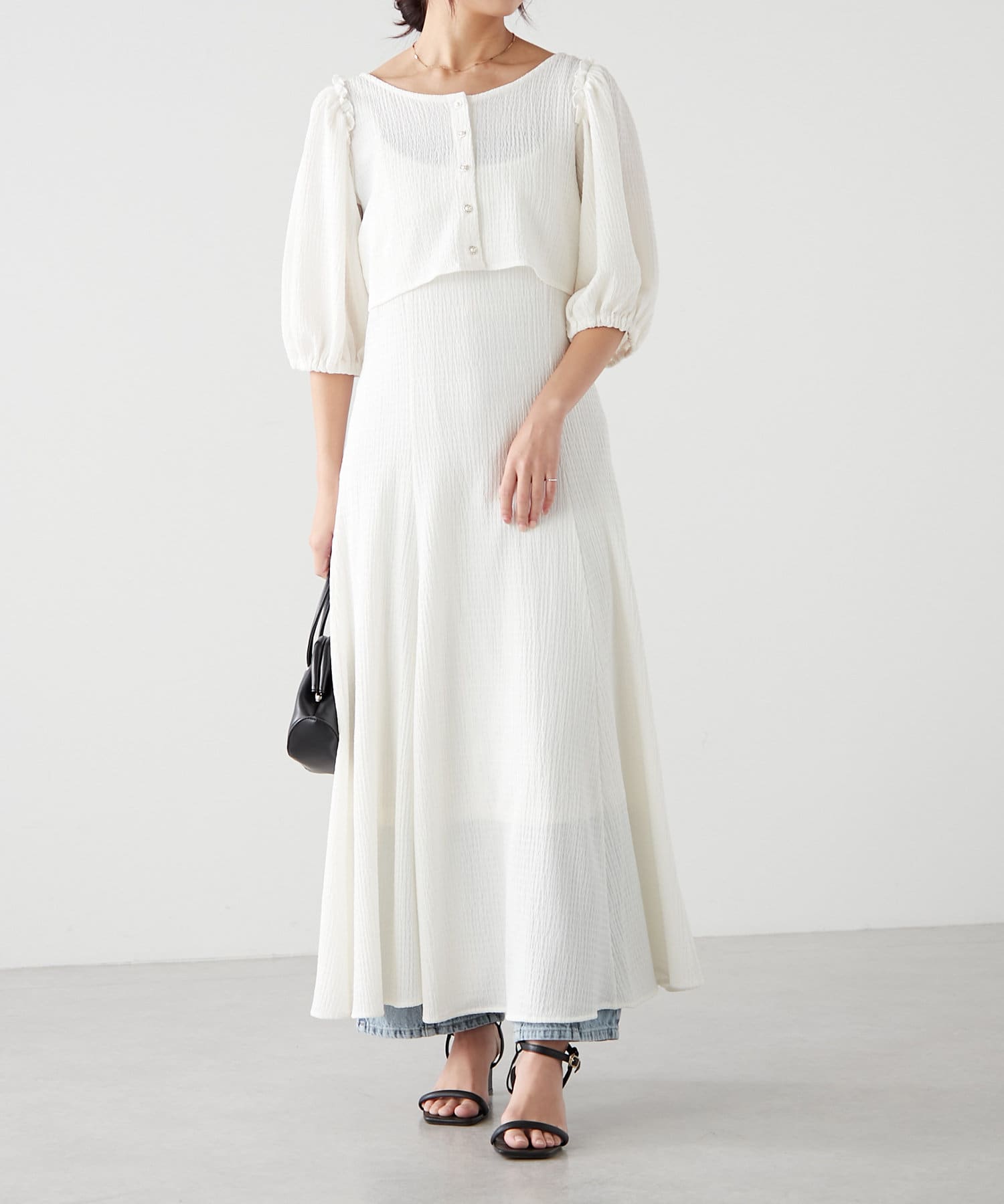・伸縮性のある素材で着心地抜群なワンピとボレロのセット