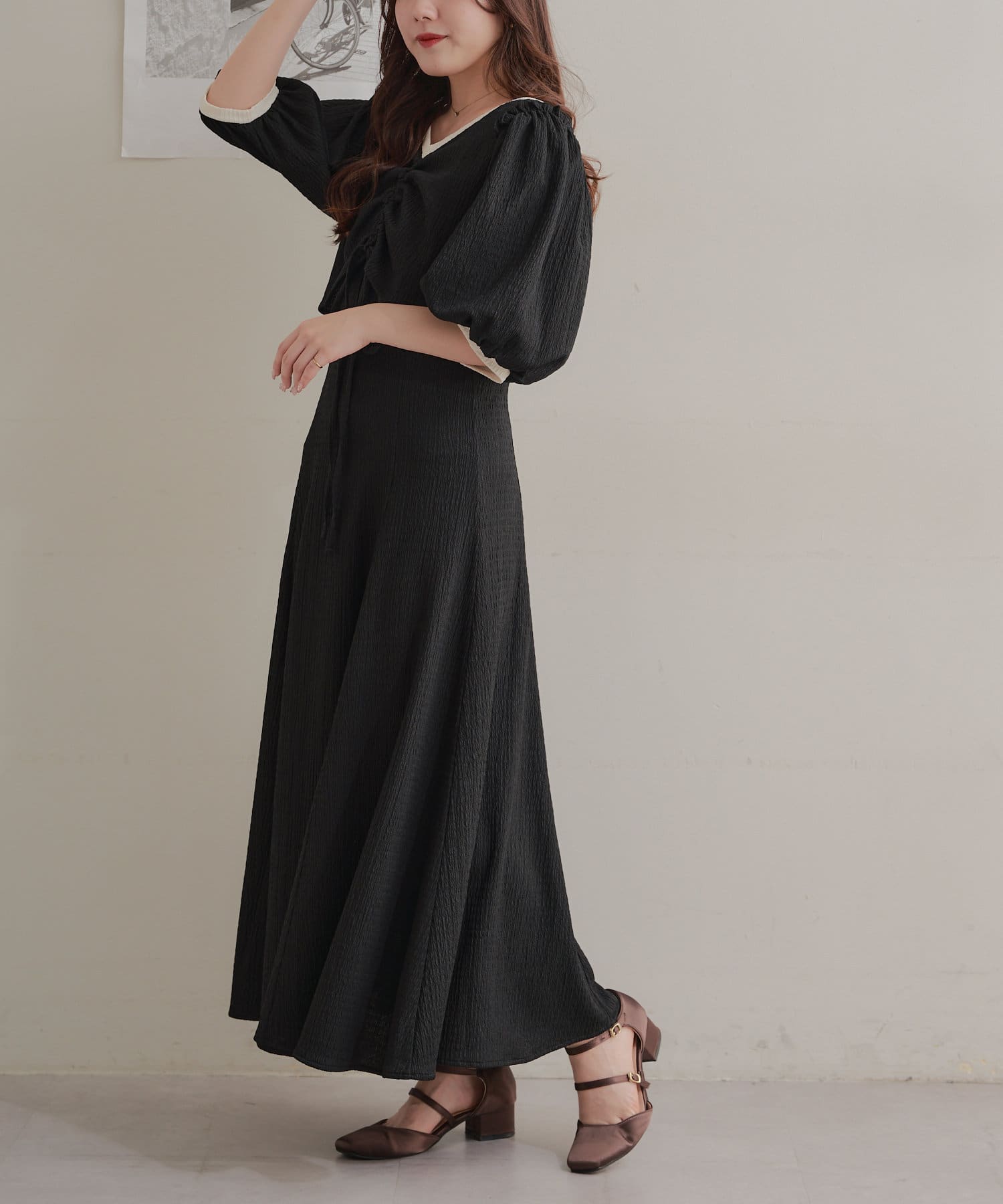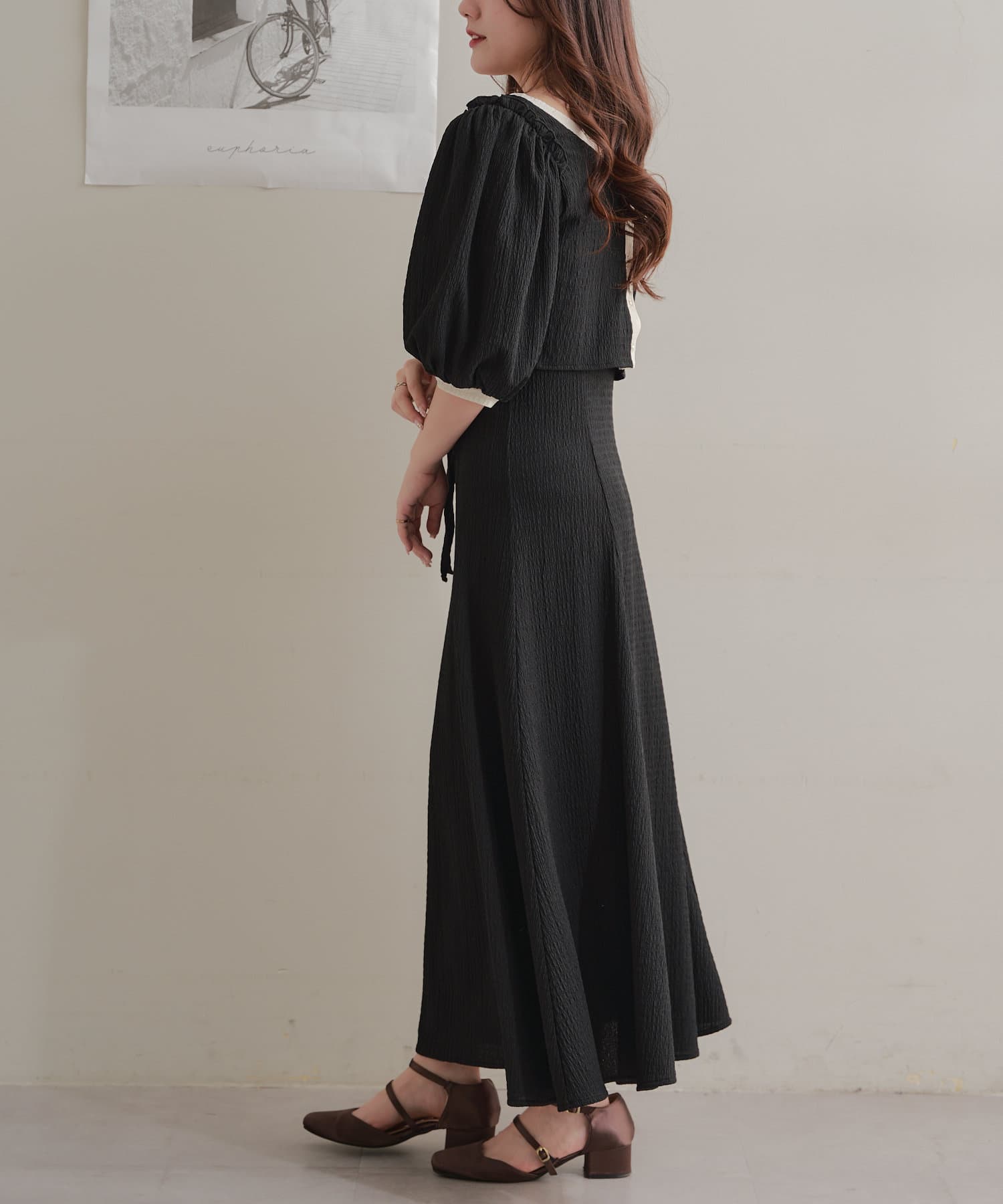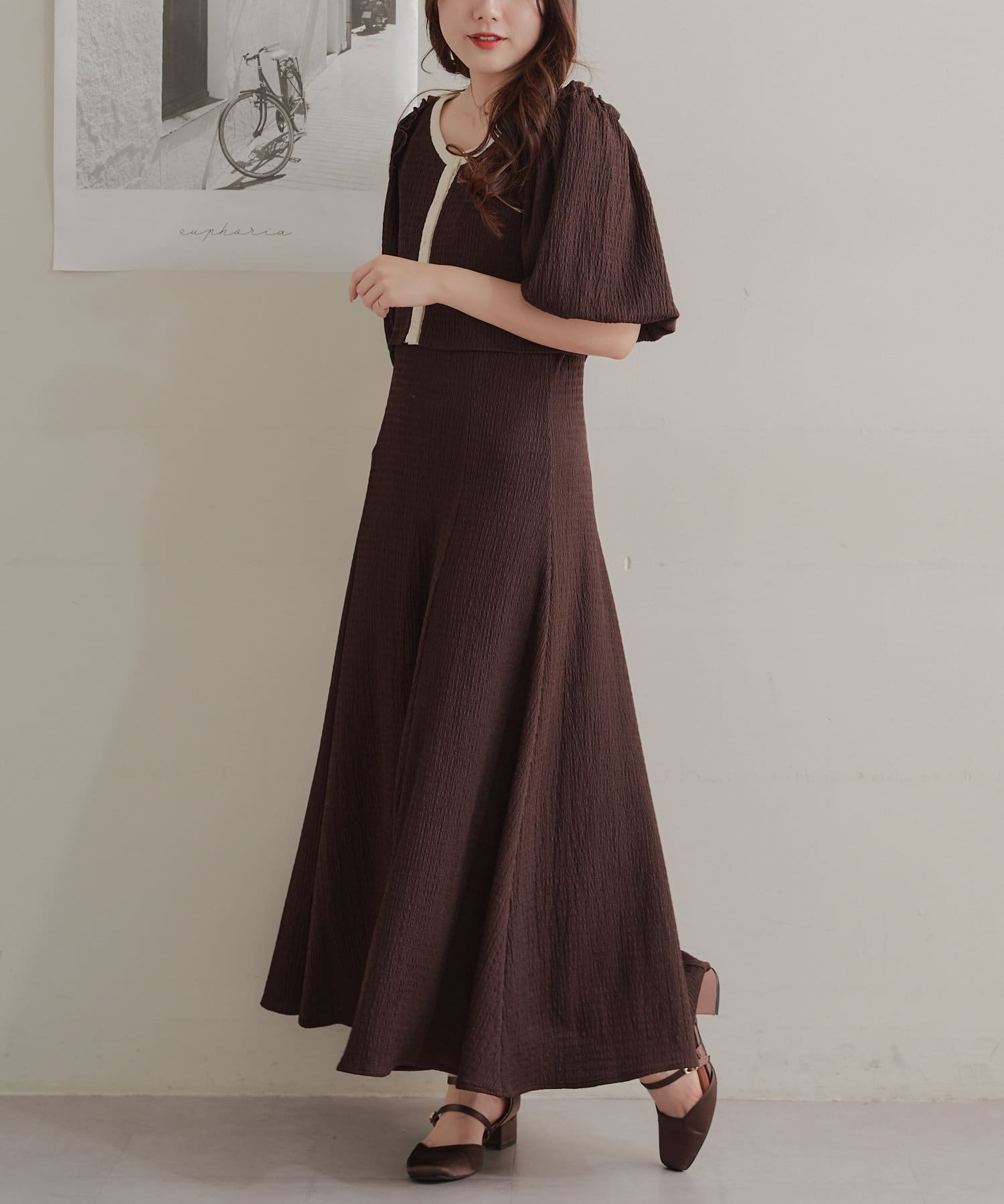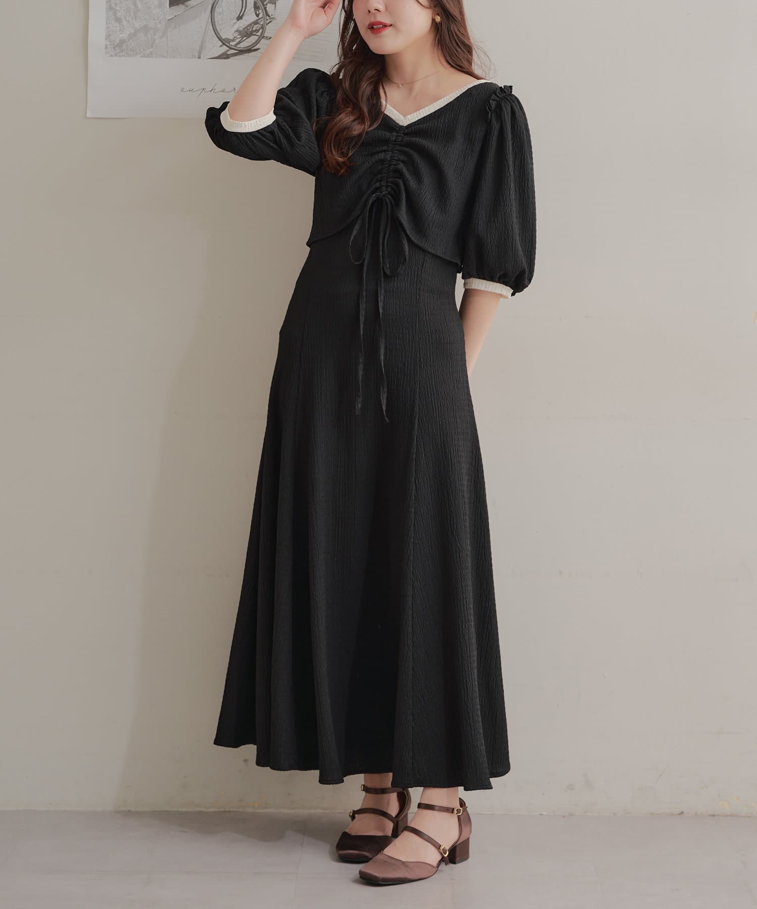 ・伸縮性のある素材で着心地抜群なワンピとボレロのセット