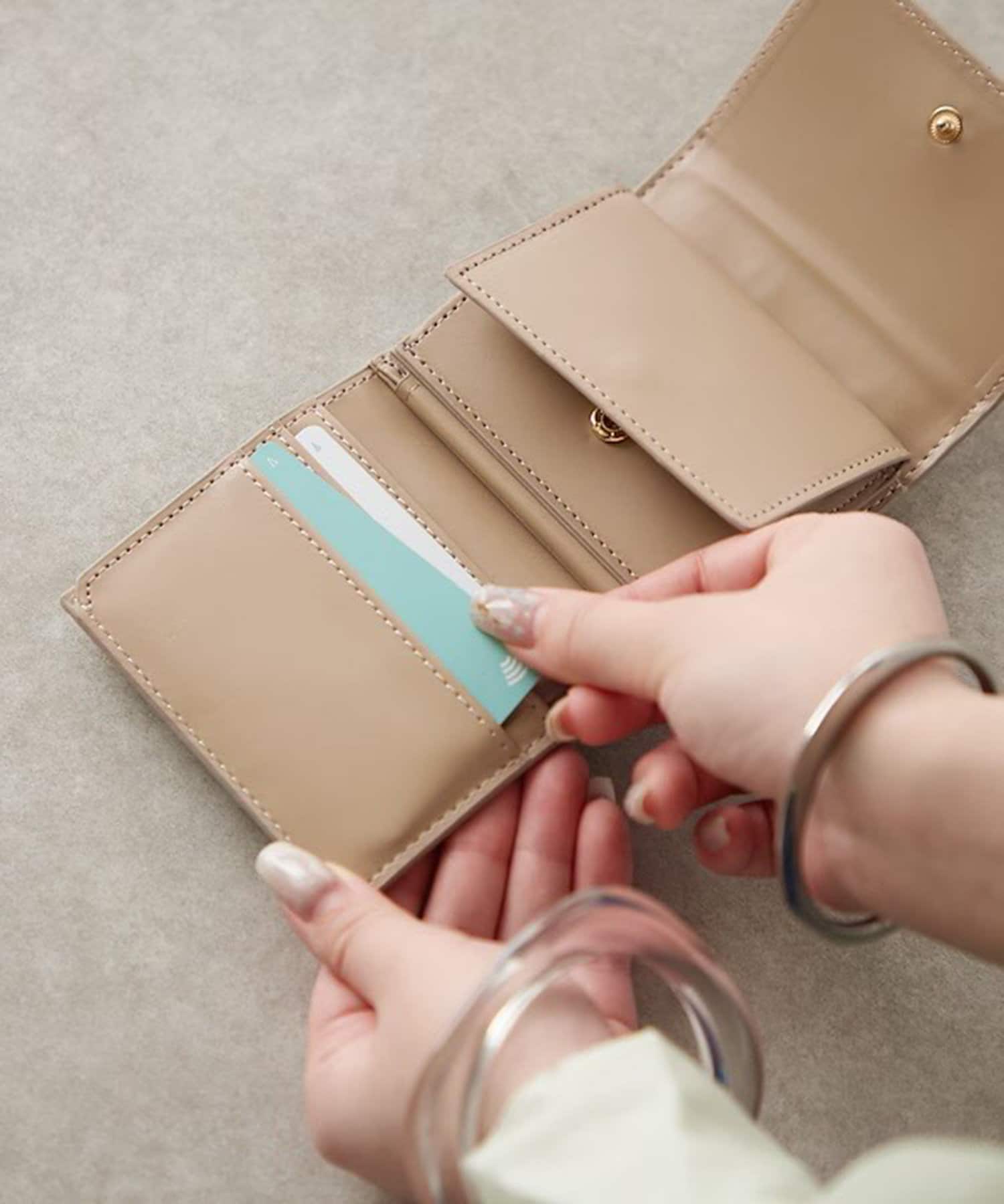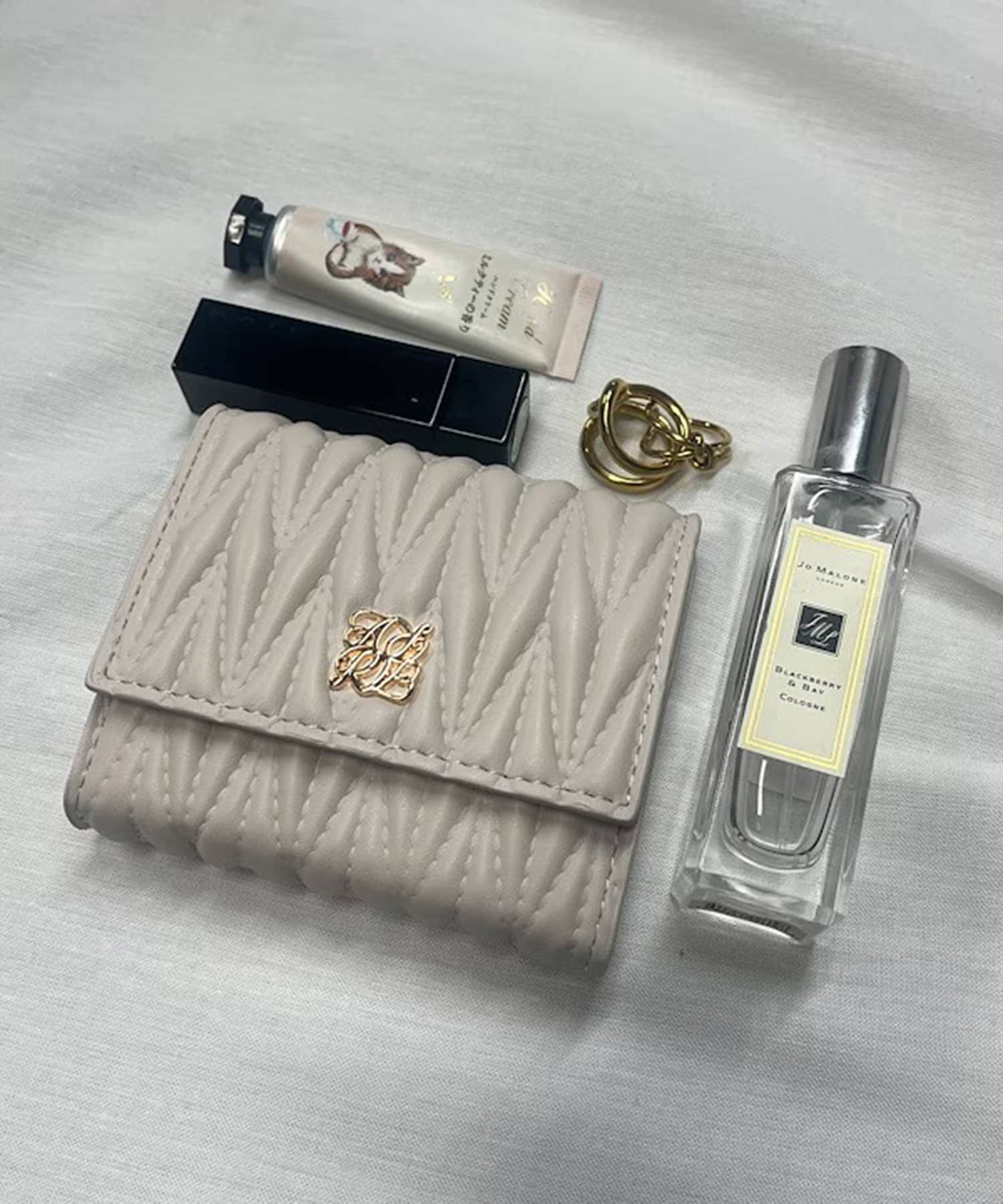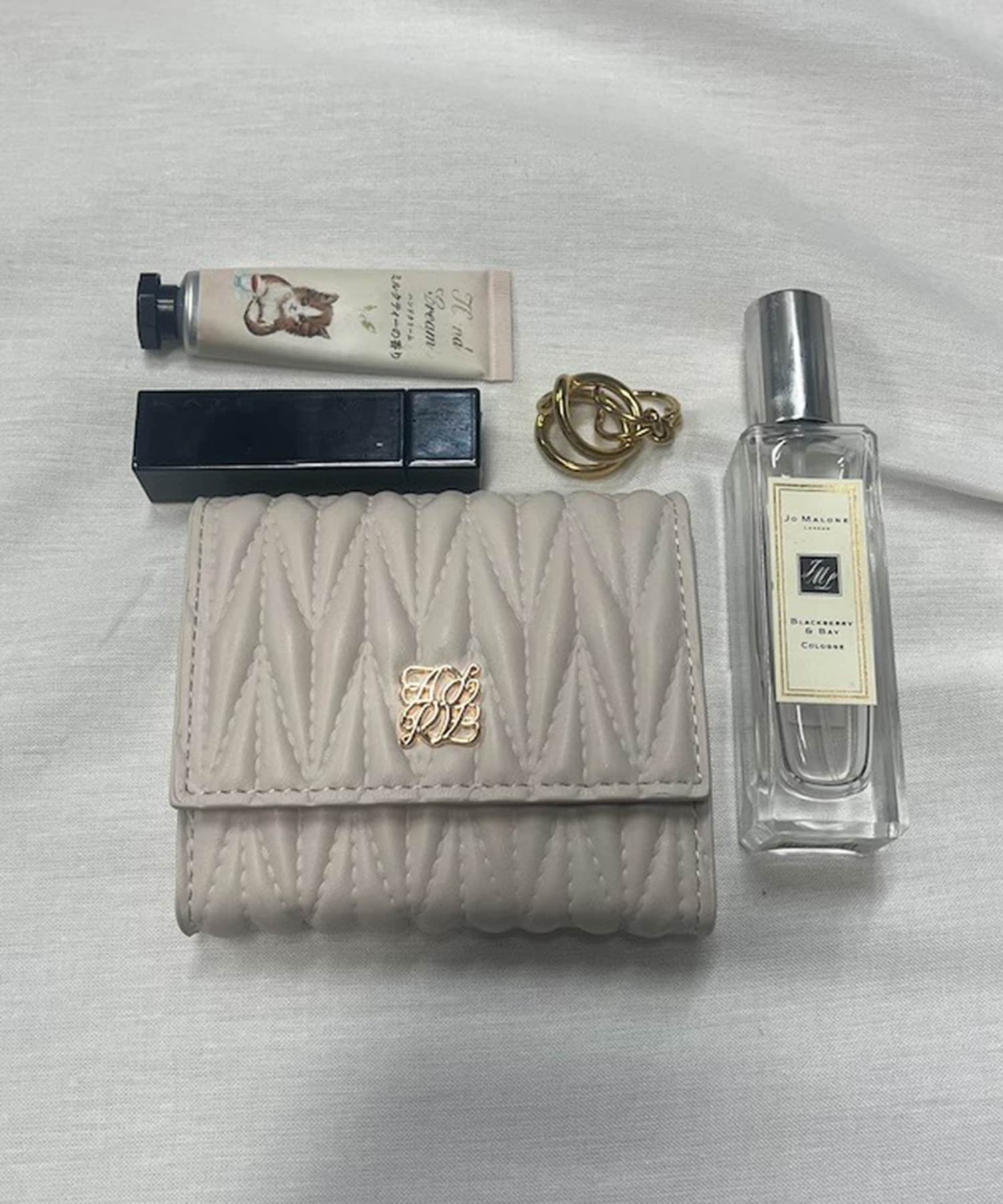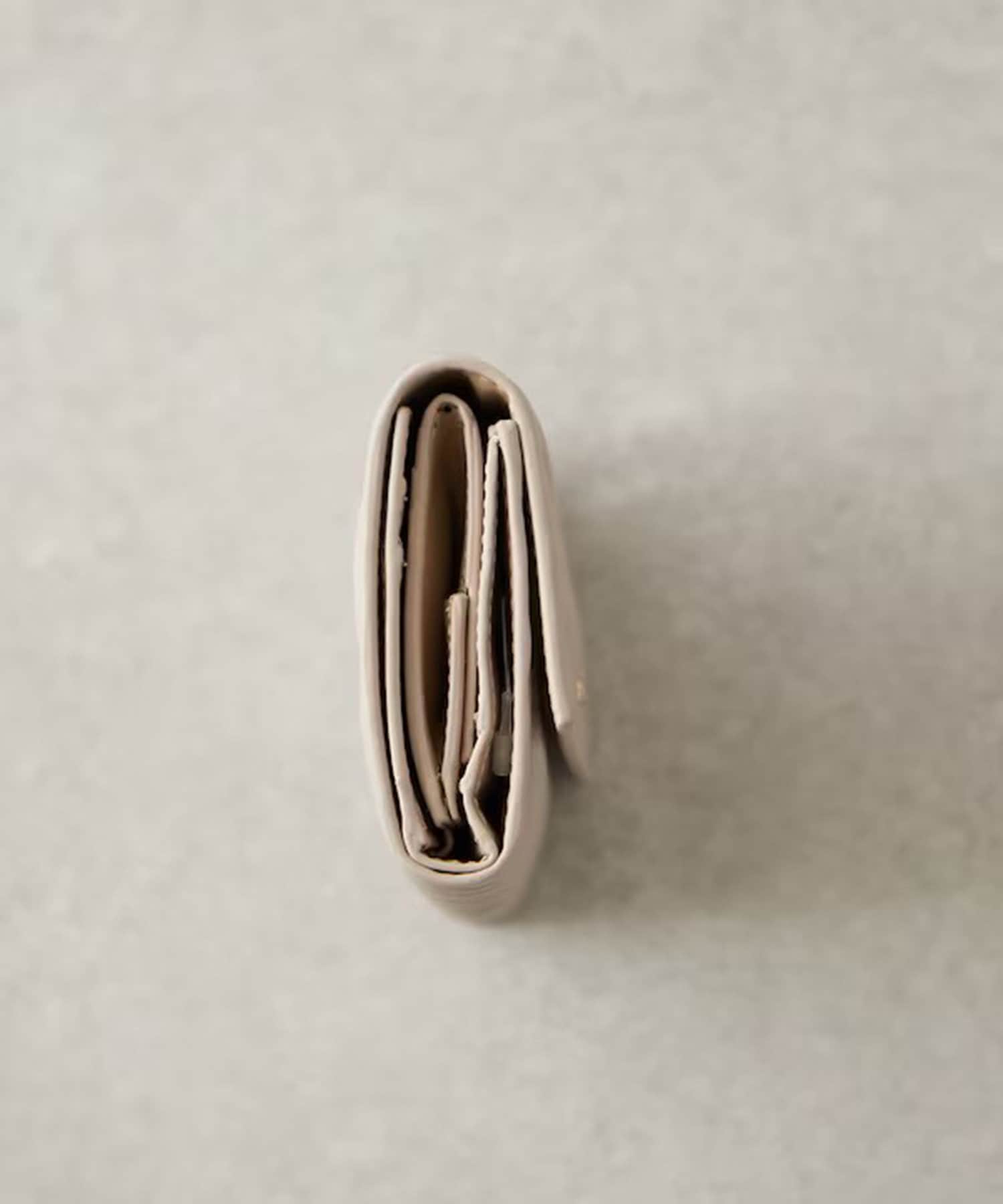 ・シンプルながらも可愛いロゴプレートが付いた財布。
