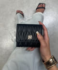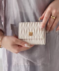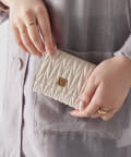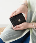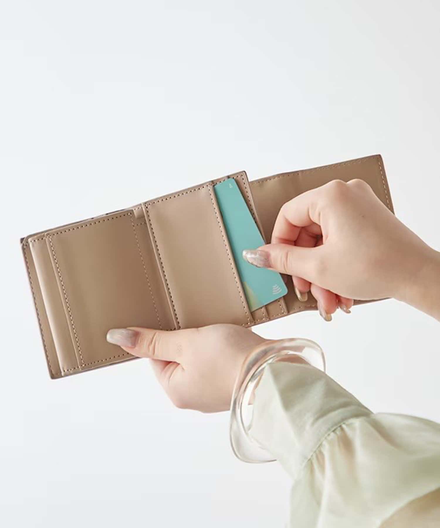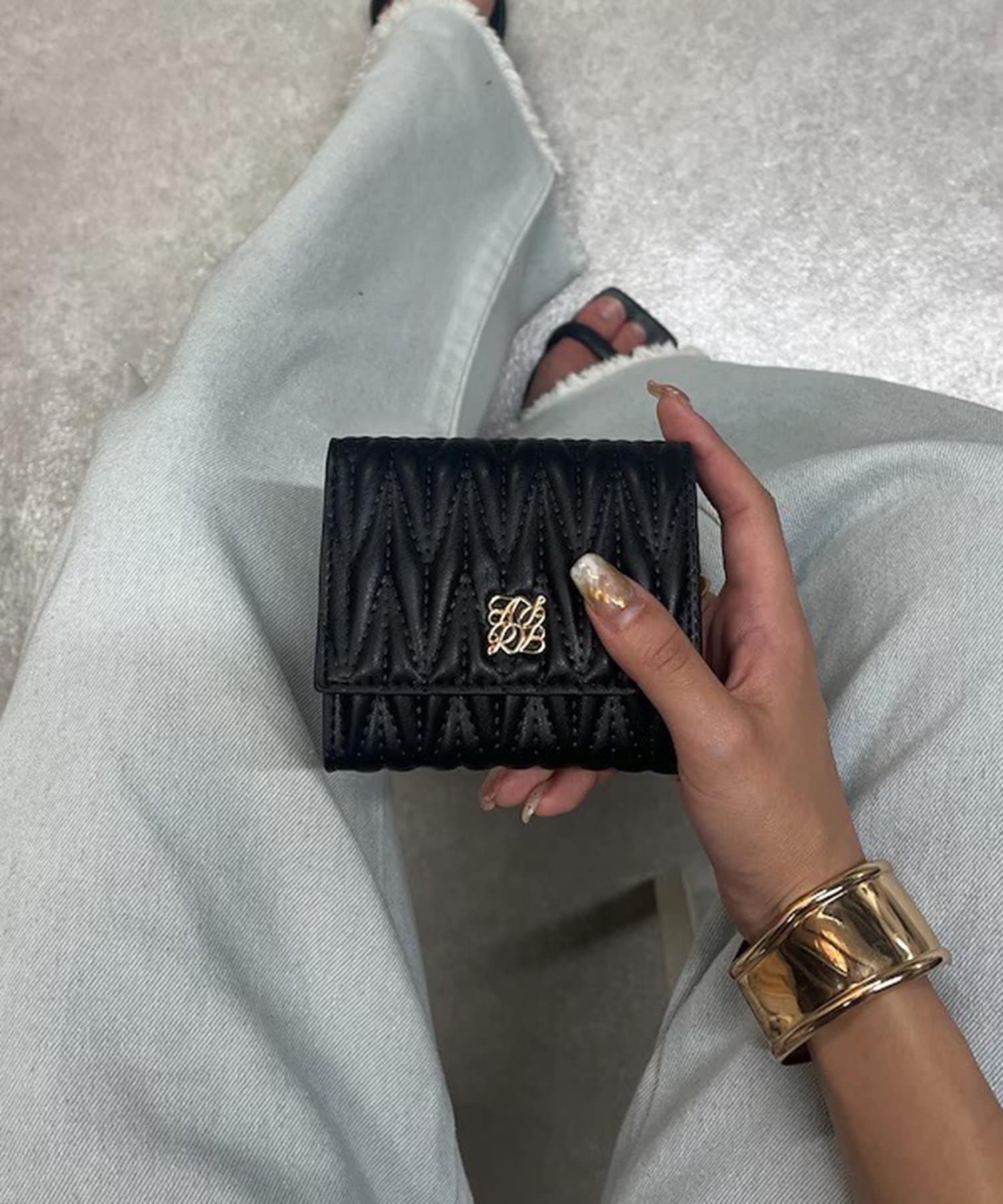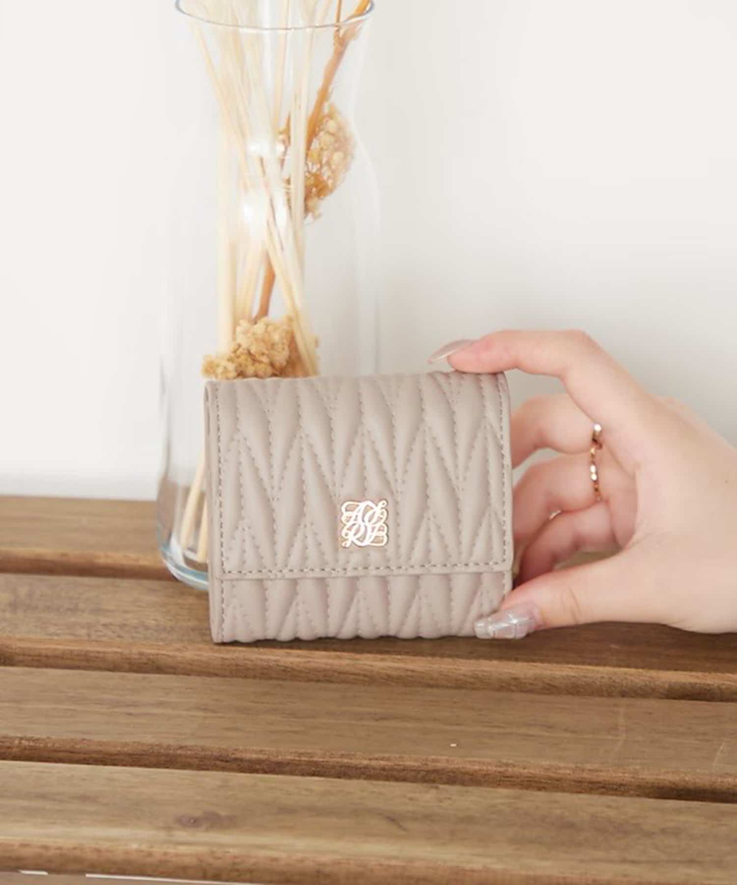 ・シンプルながらも可愛いロゴプレートが付いた財布。