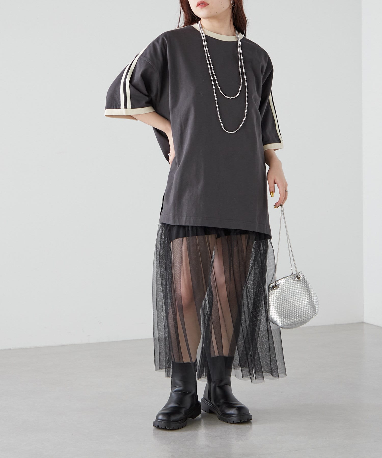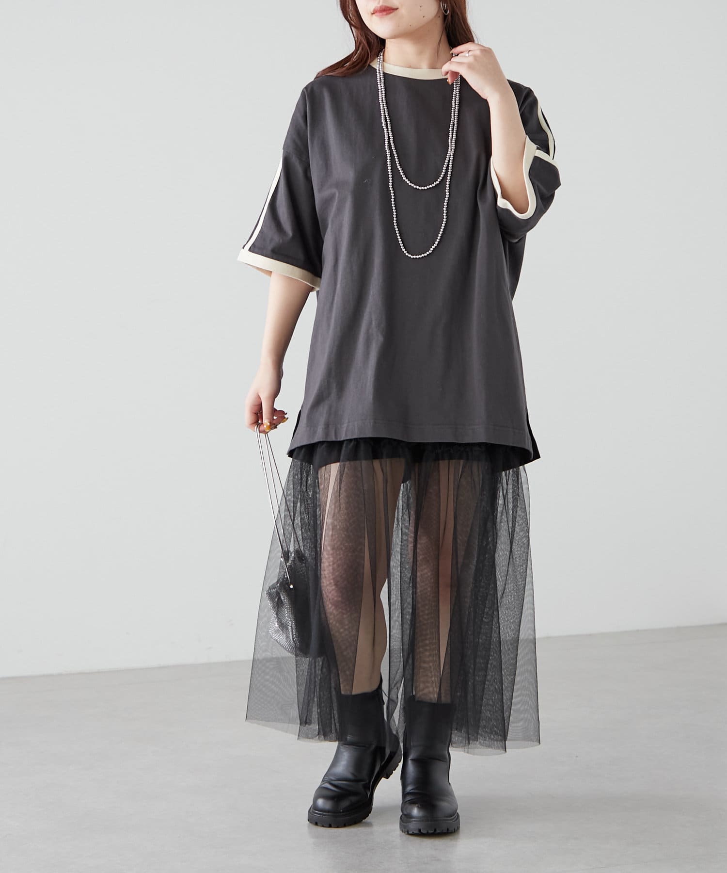 ・チュールアイテムをレイヤードして今年らしいスタイリングもオススメです◎