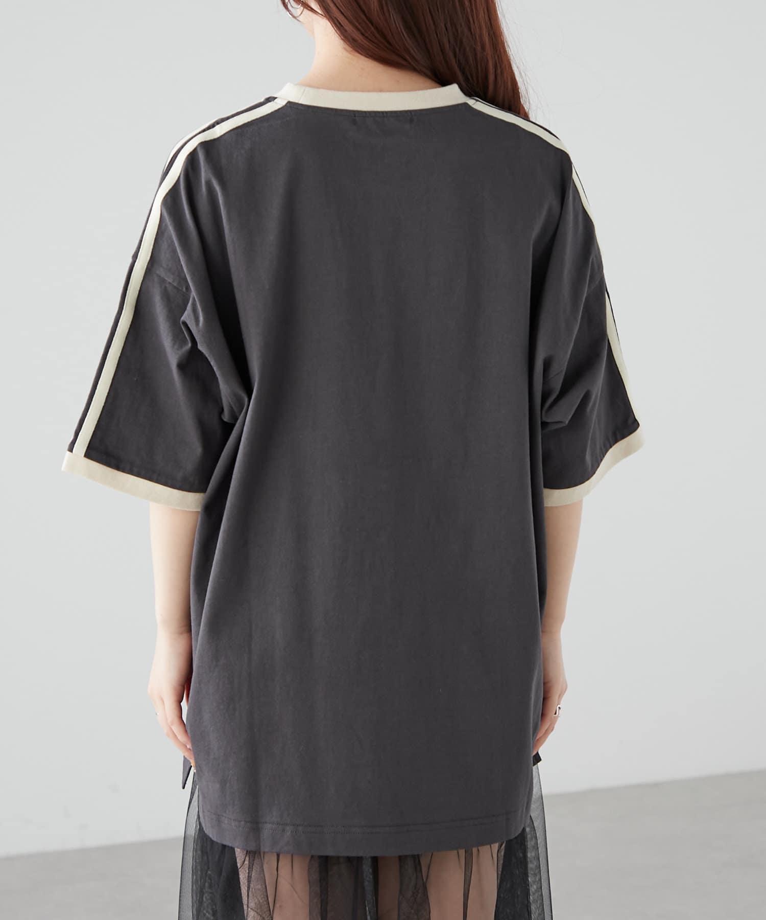 ・首元と袖の配色ラインでシンプルなデザインながら完成された1枚。