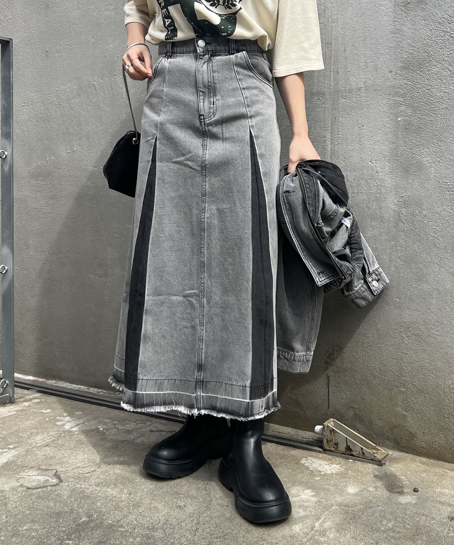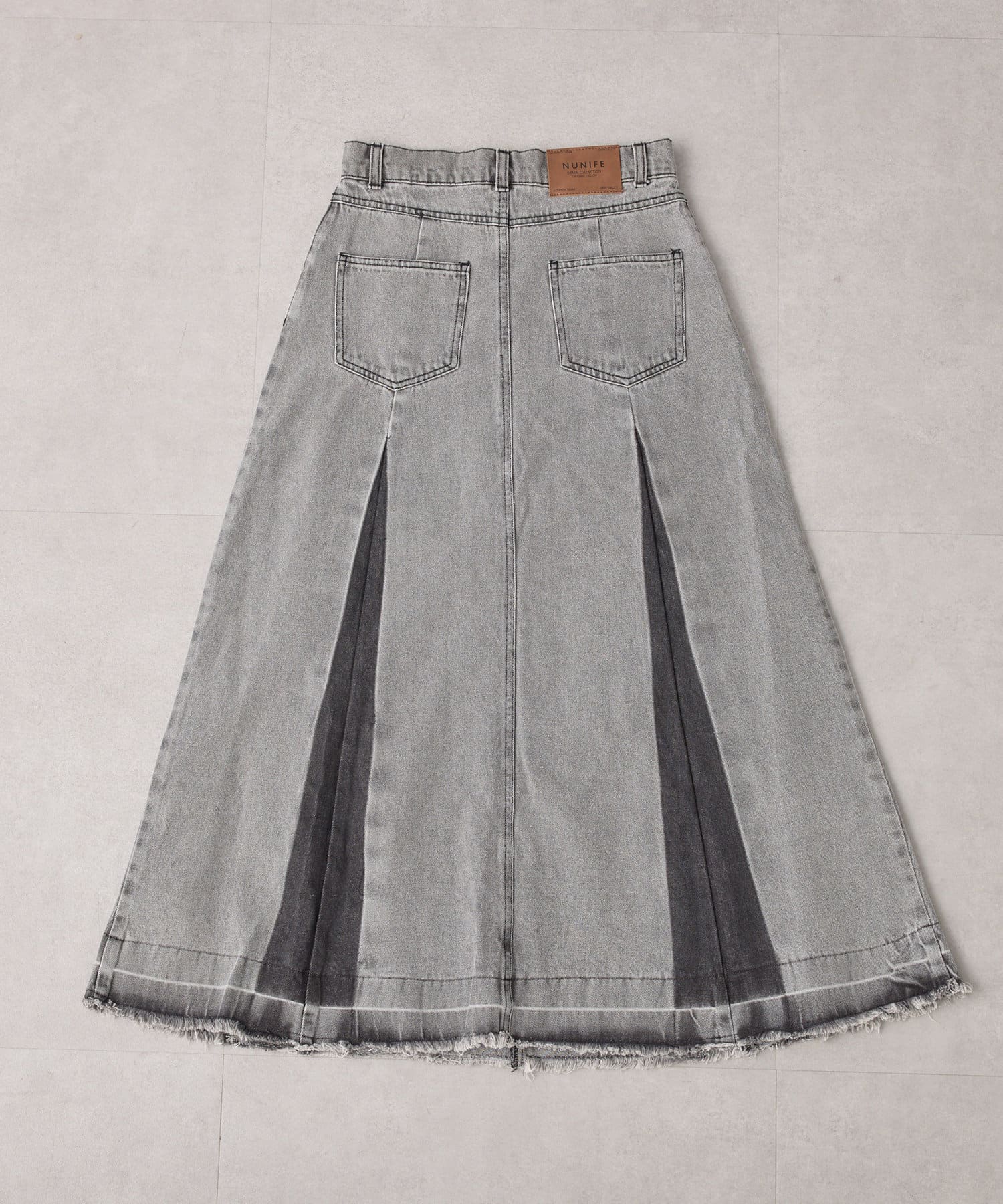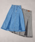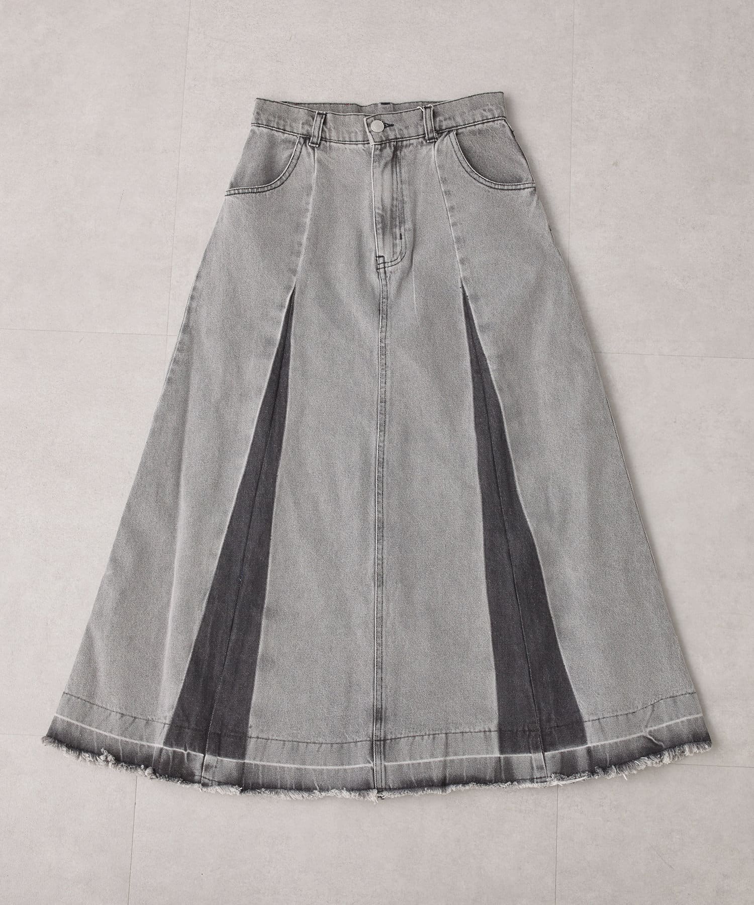 ・カットオフのダメージ加工とブリーチによるグラデーションが古着っぽコーデを叶えるロング丈デニムスカートが登場