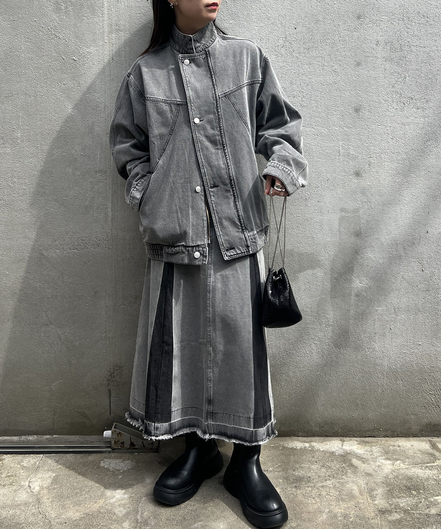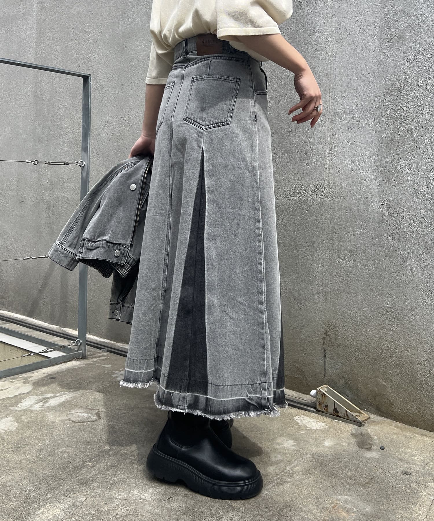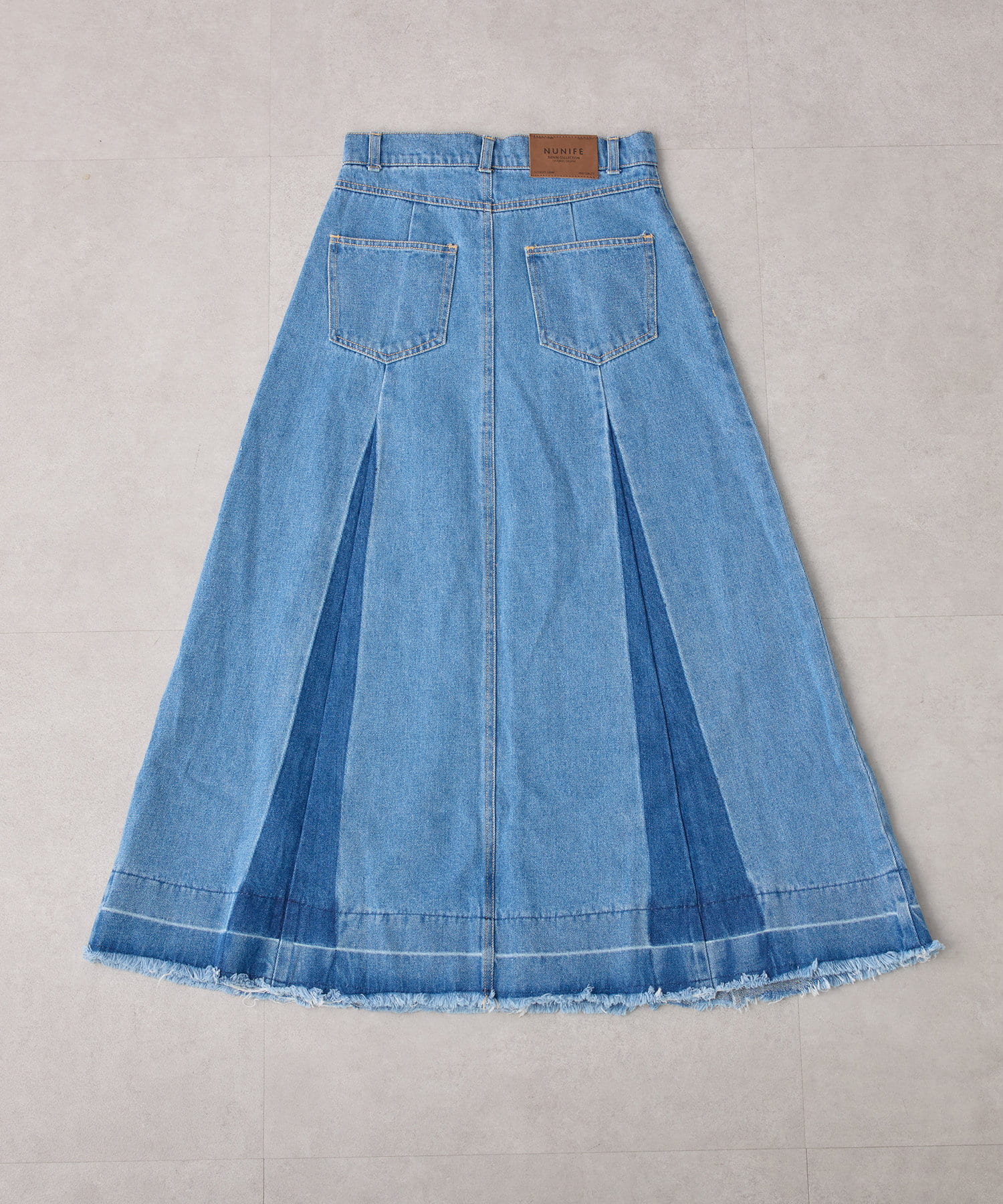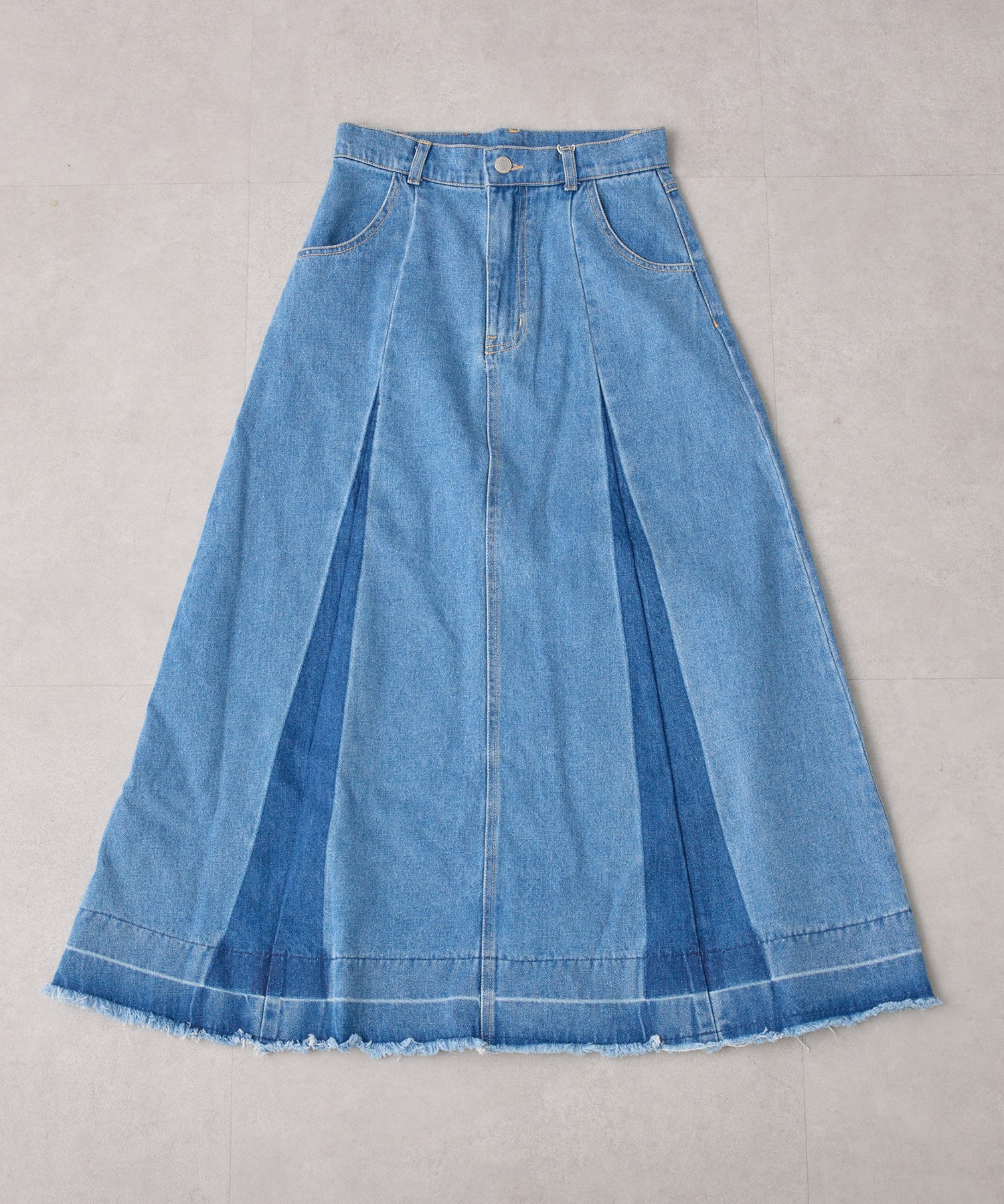 ・カットオフのダメージ加工とブリーチによるグラデーションが古着っぽコーデを叶えるロング丈デニムスカートが登場
