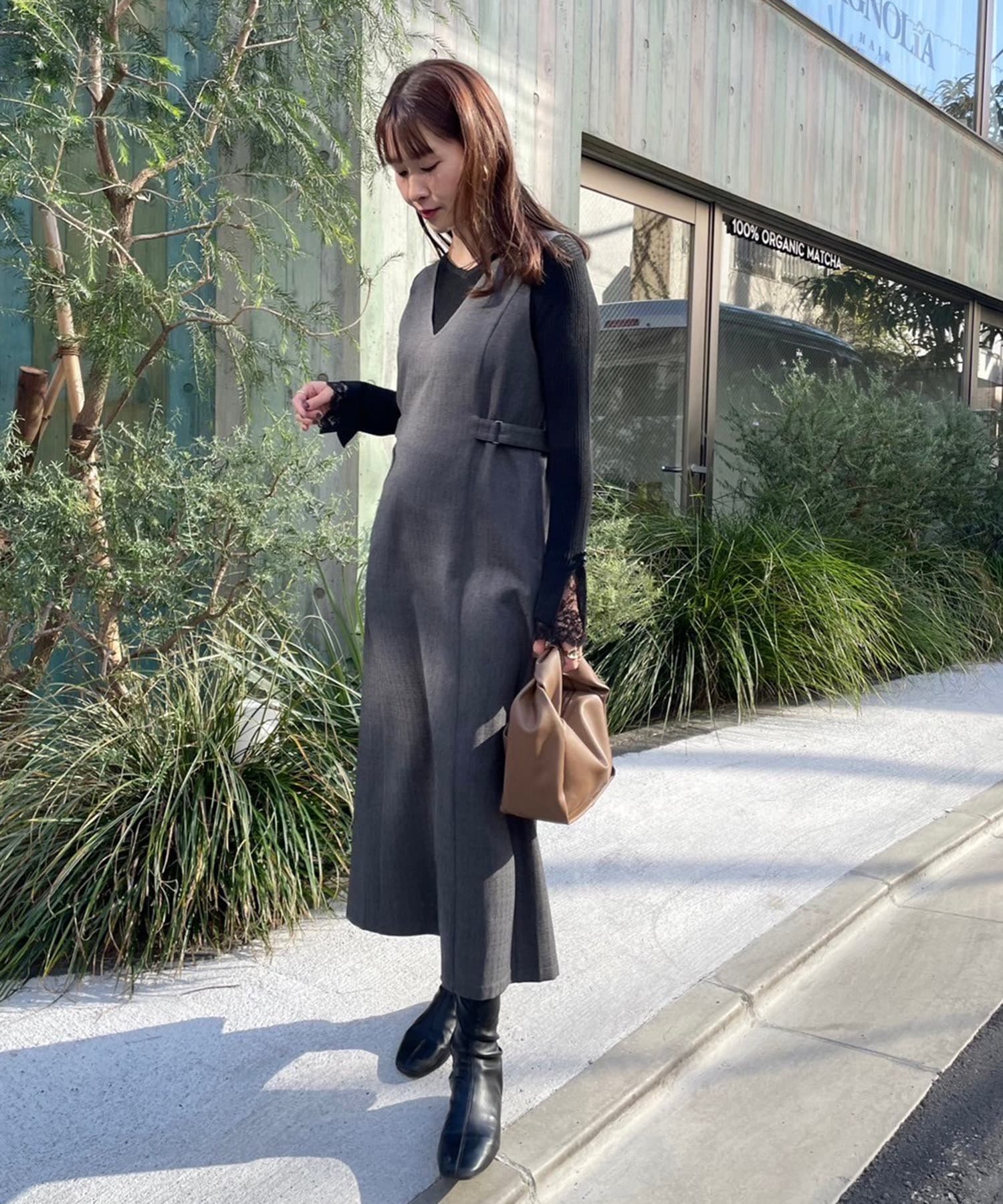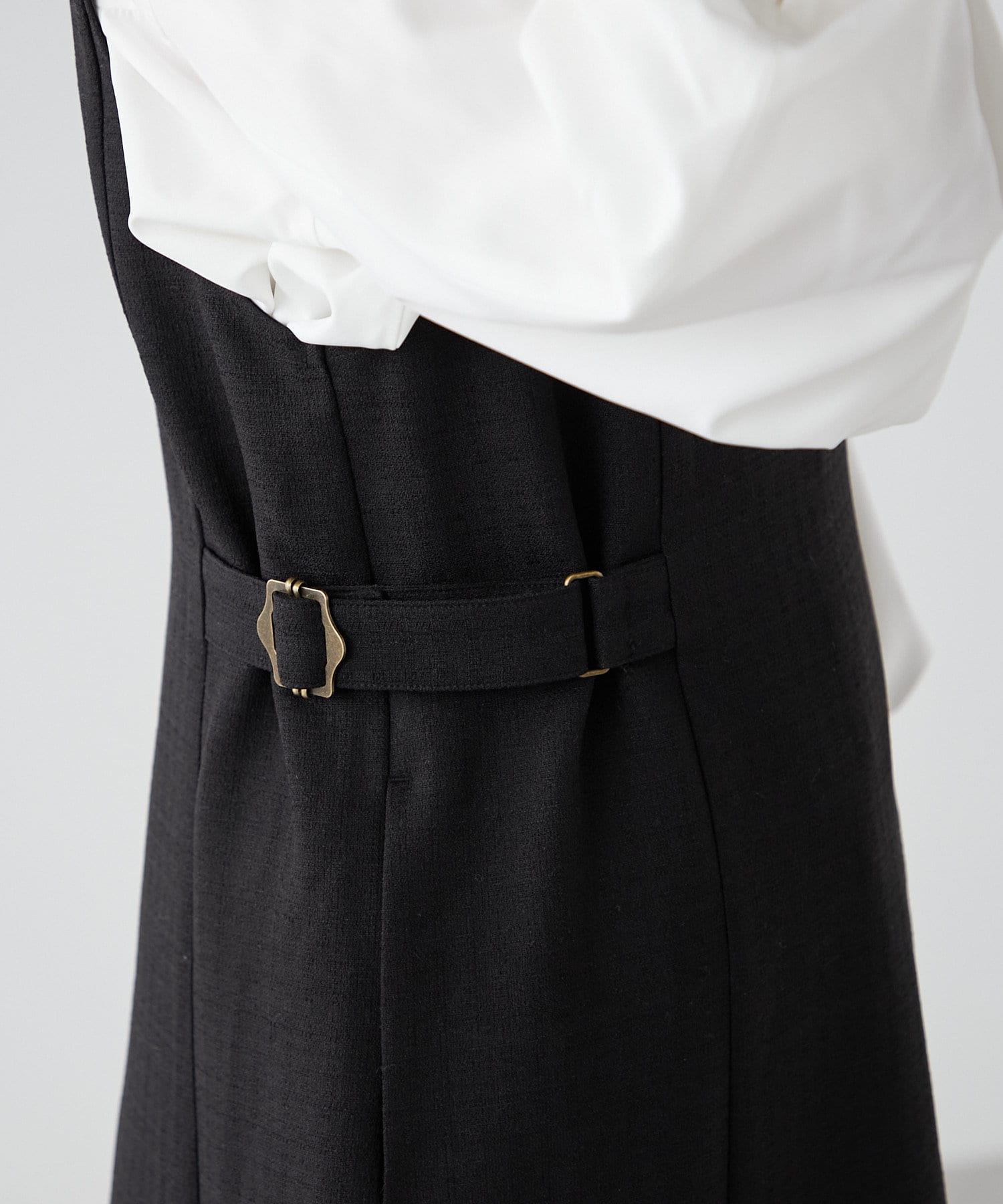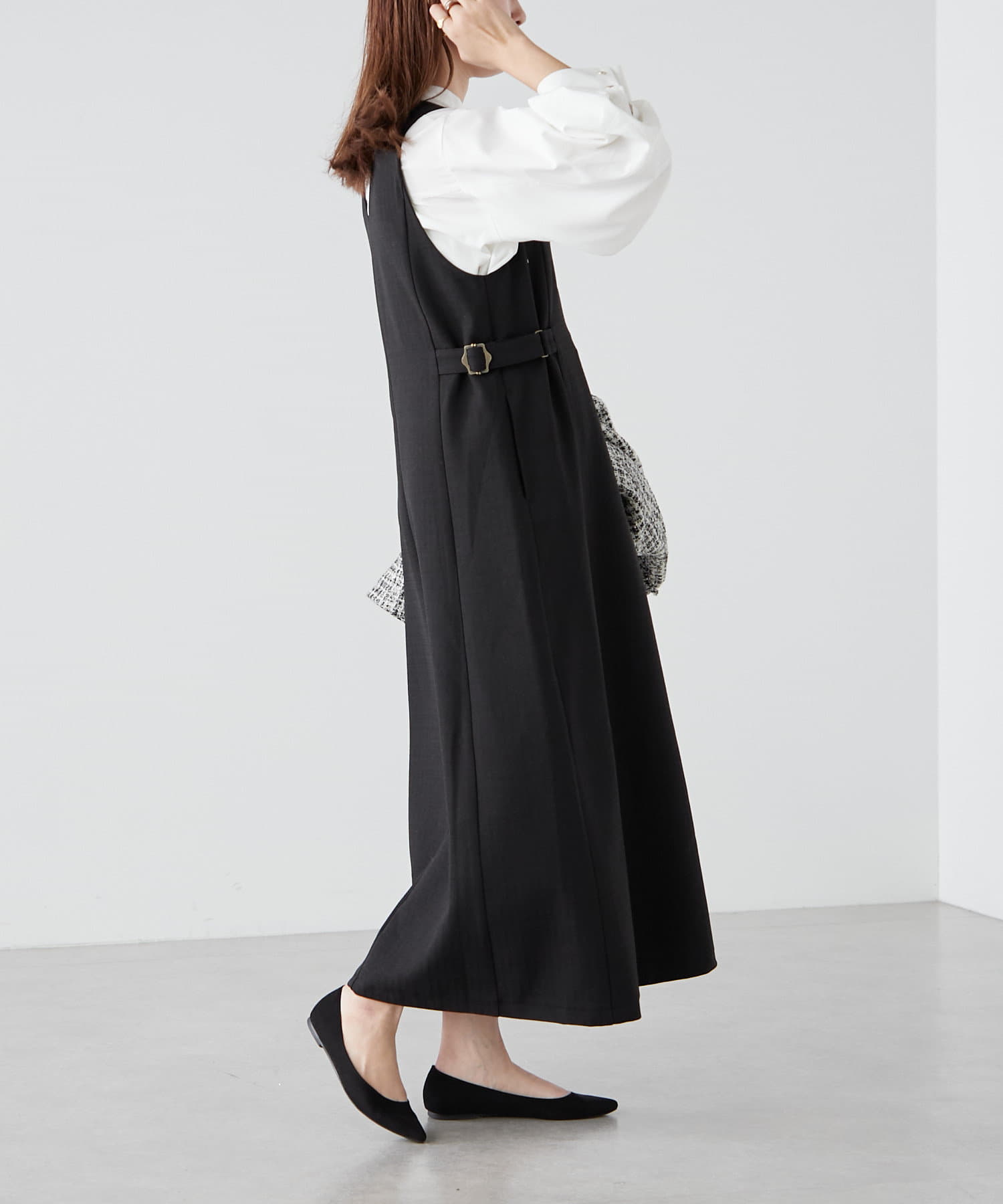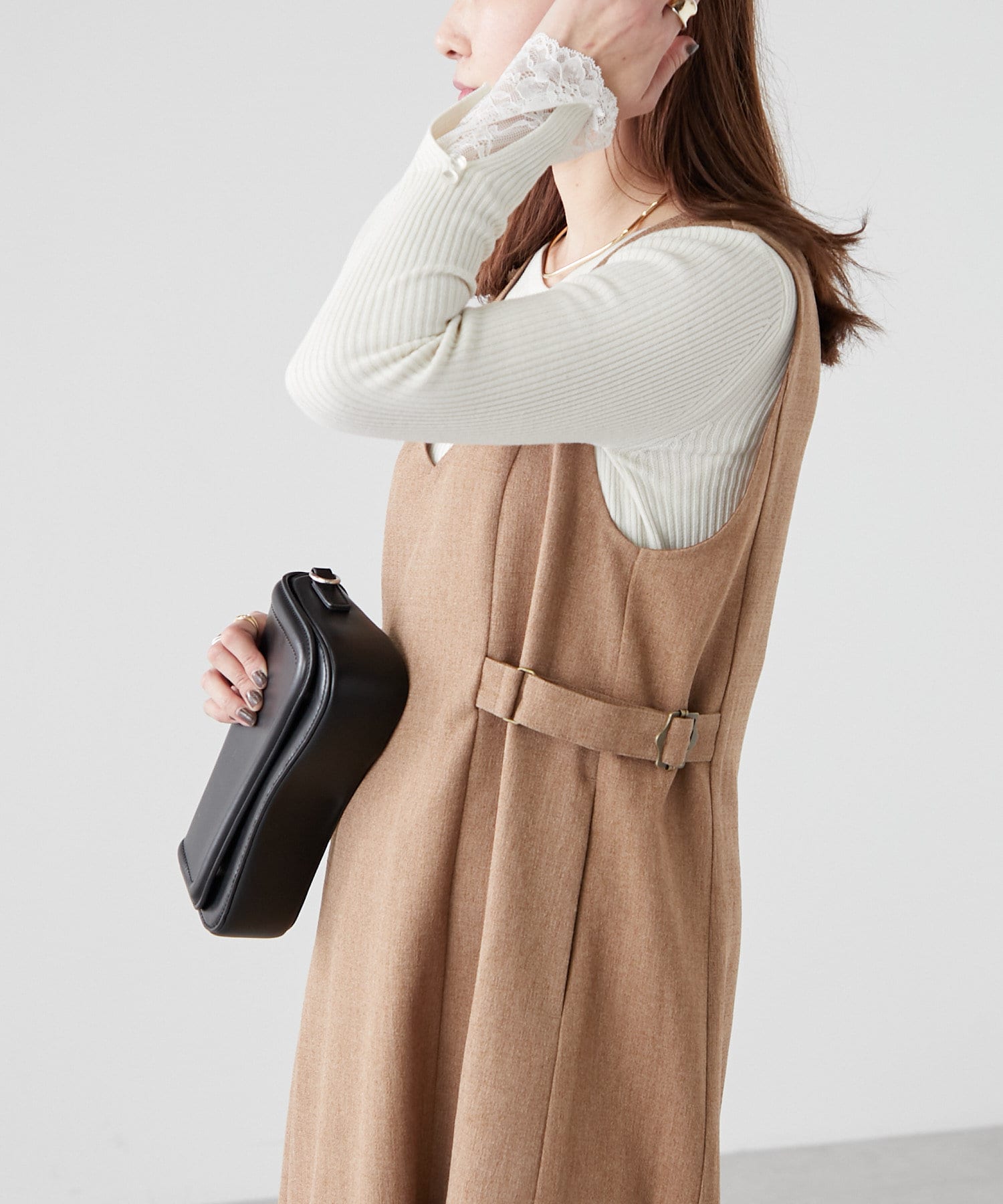 ・脇のベルトでサイズ調節ができ、コーデのポイントに。