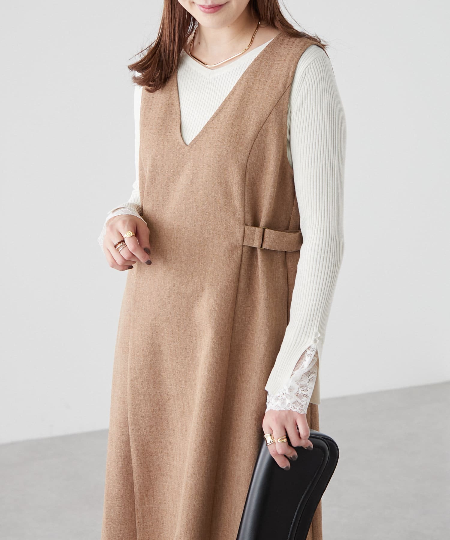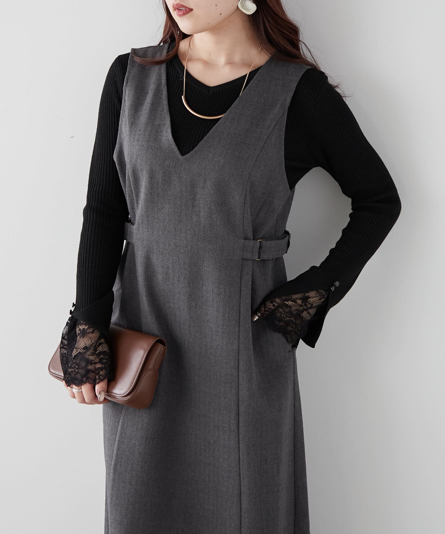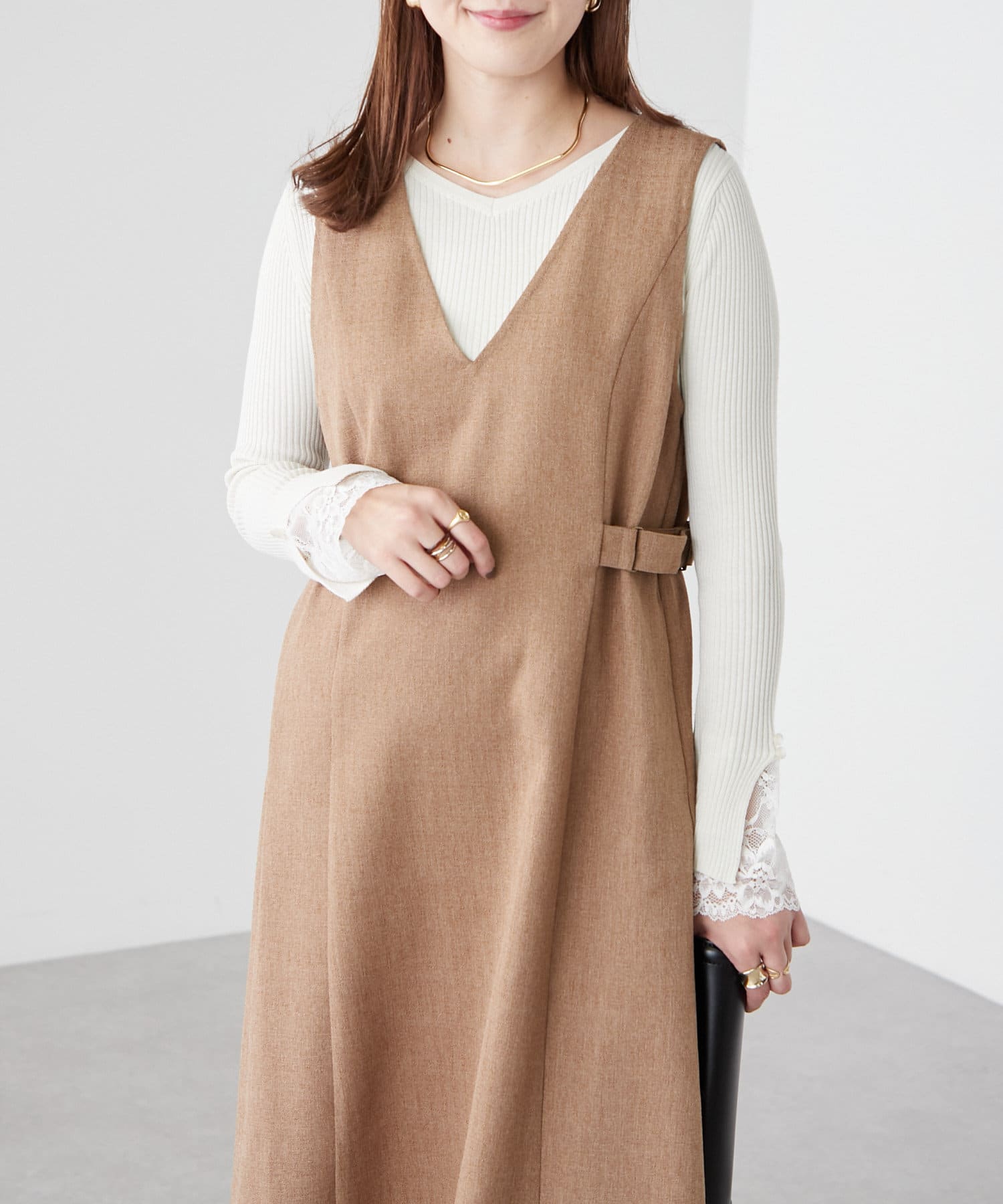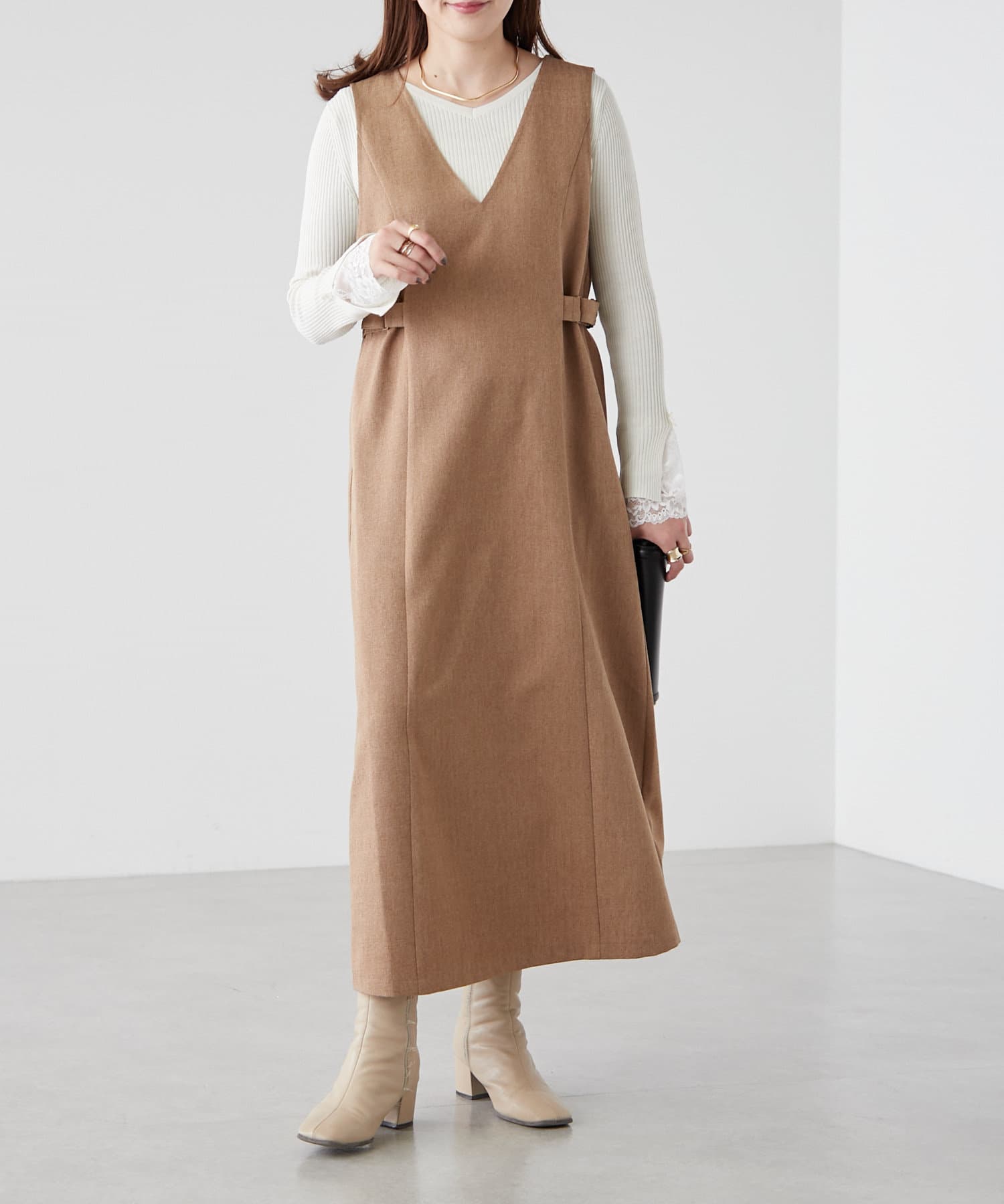 ・脇のベルトでサイズ調節ができ、コーデのポイントに。