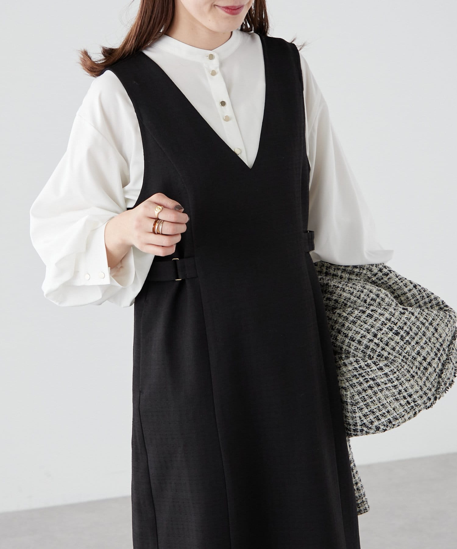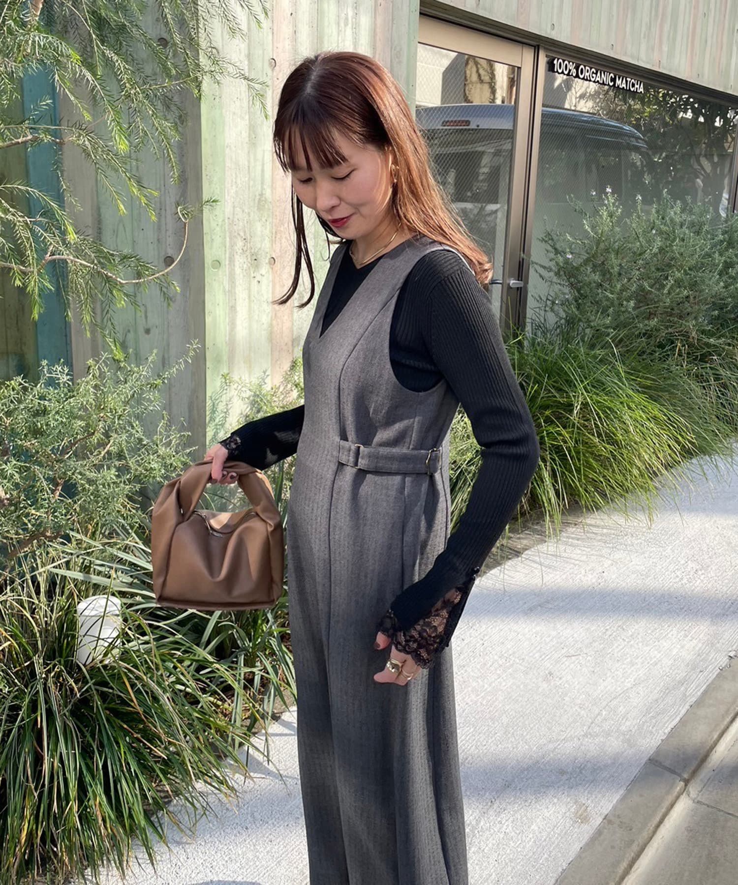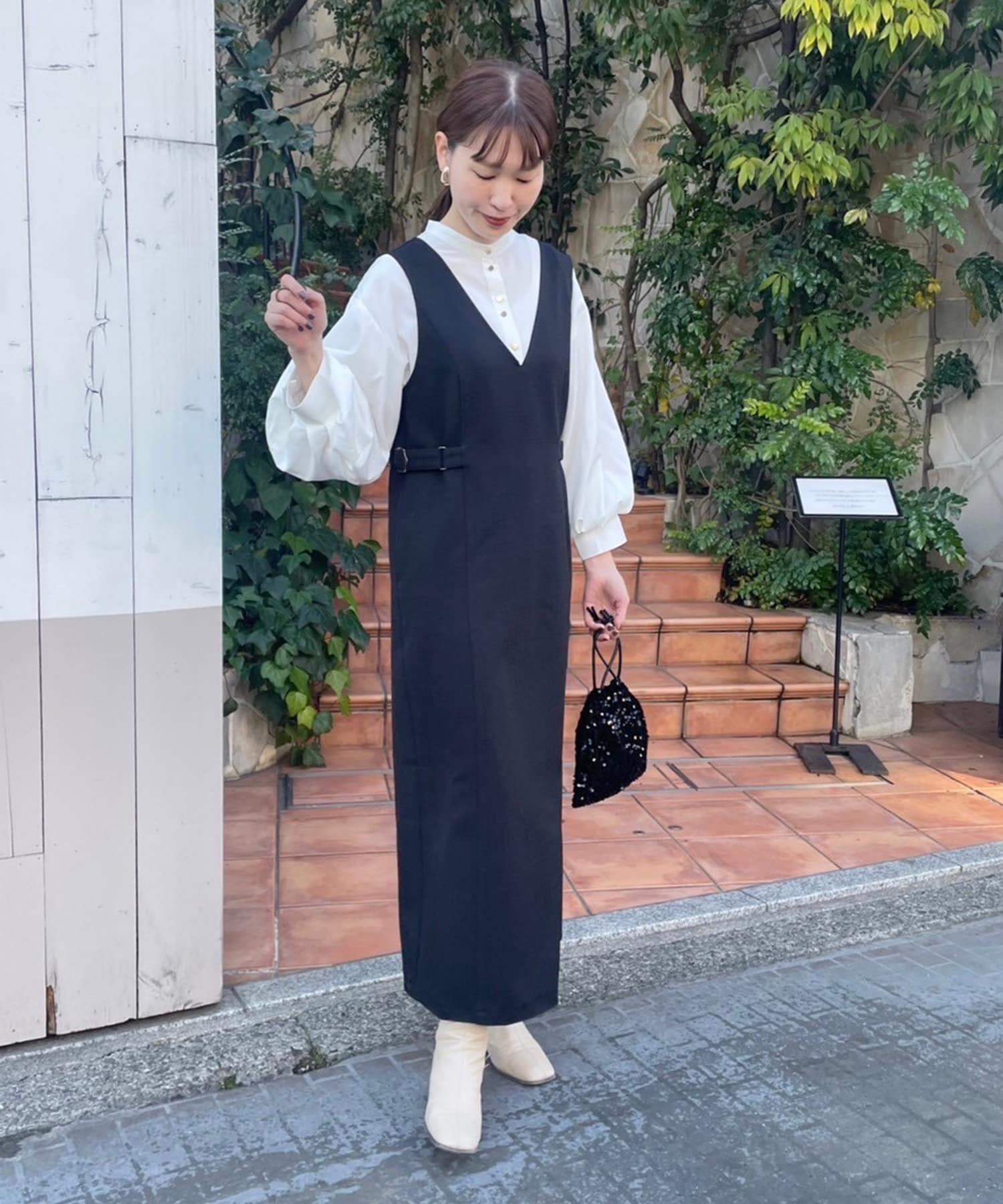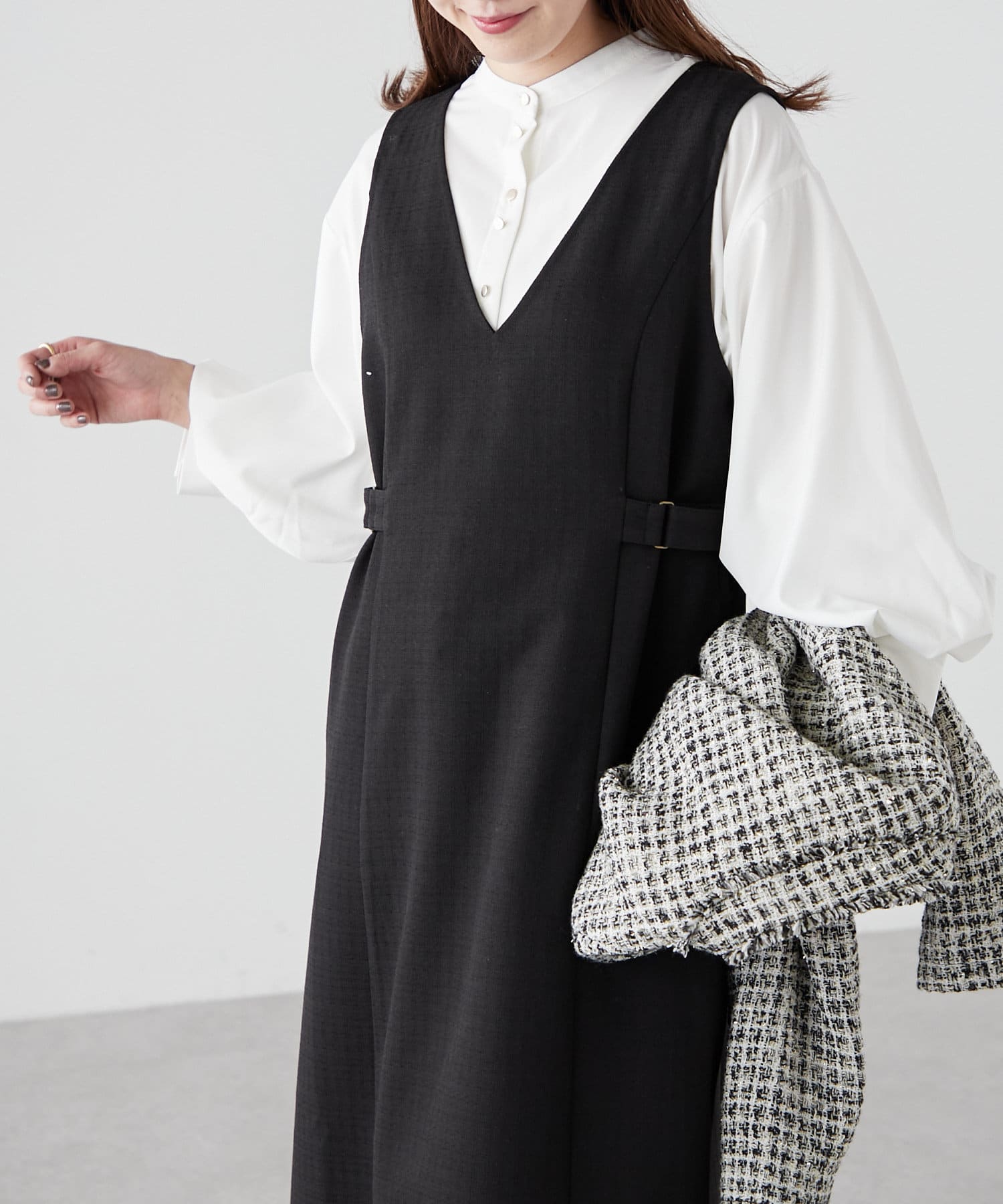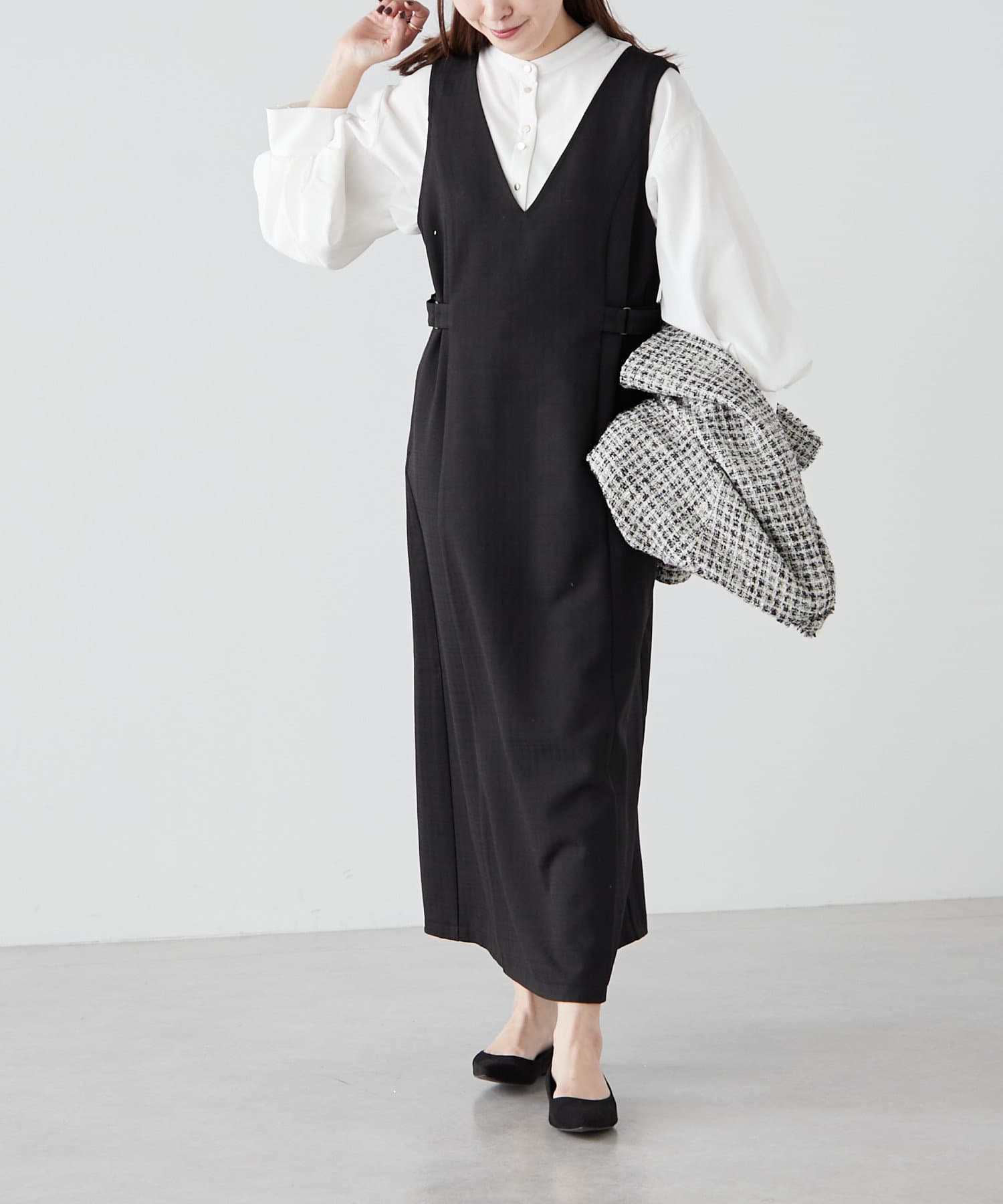 ・脇のベルトでサイズ調節ができ、コーデのポイントに。