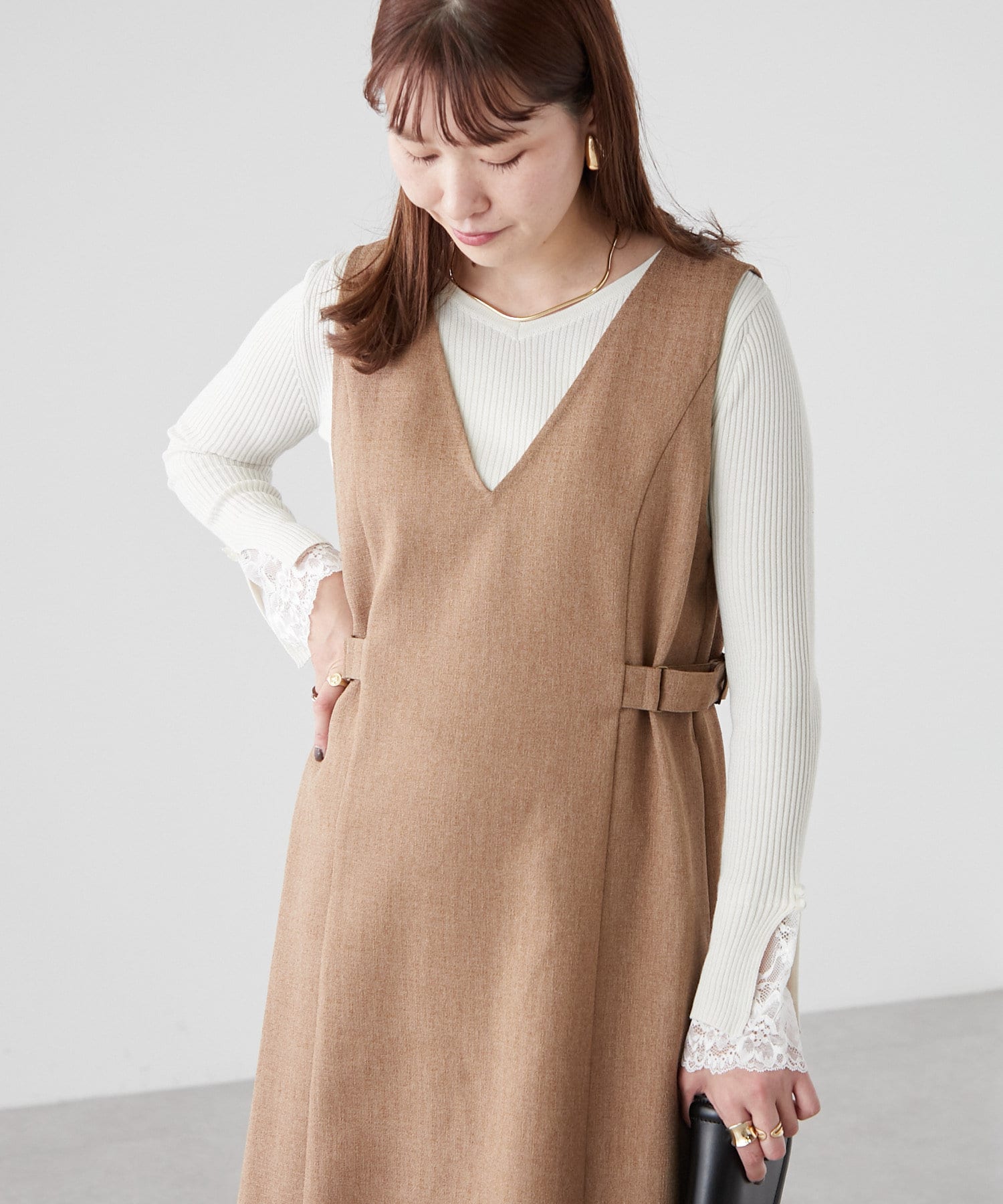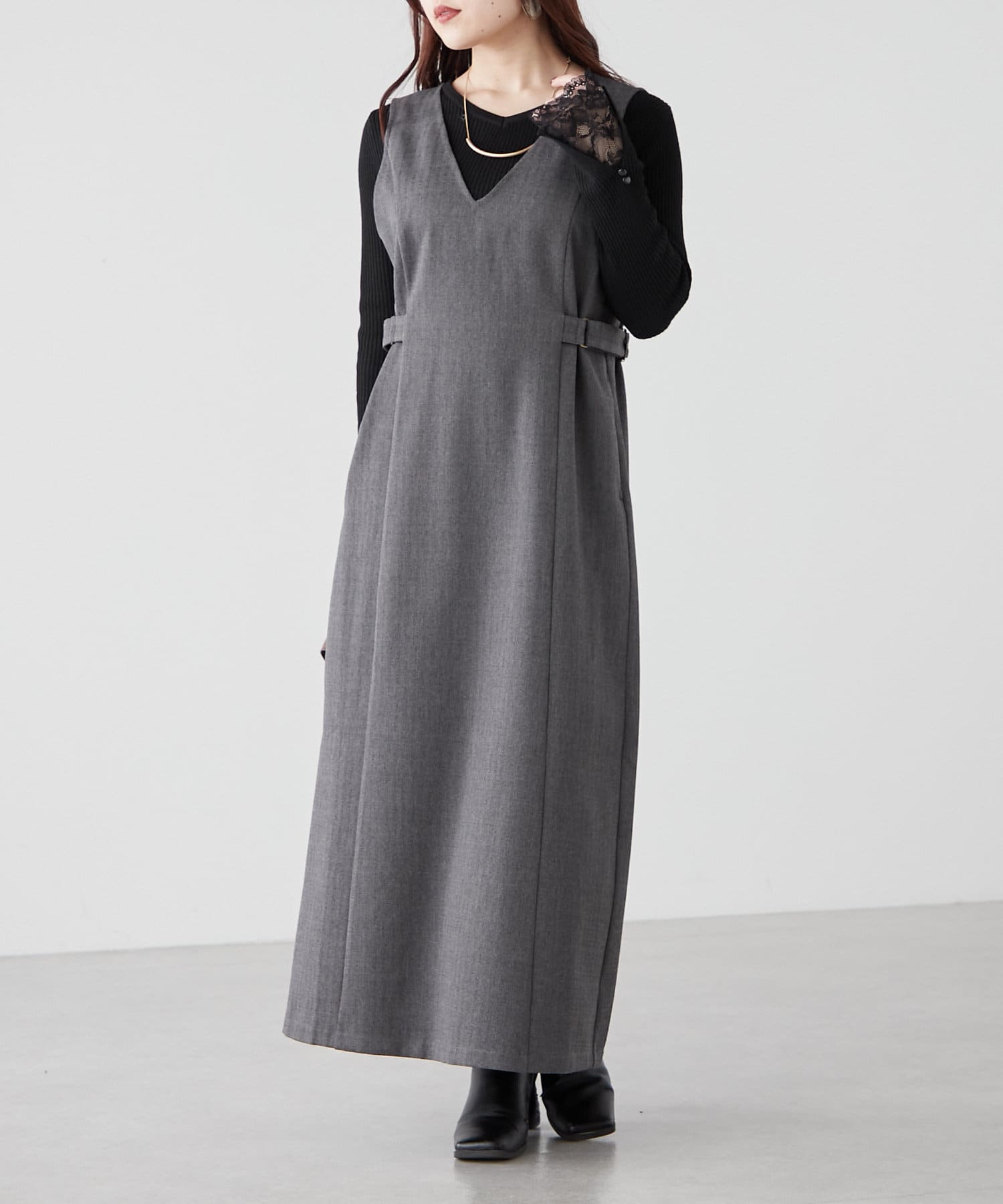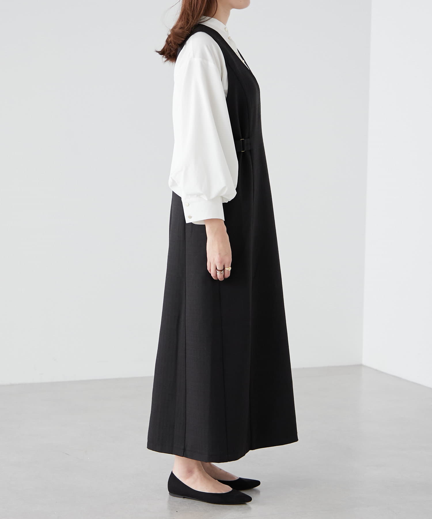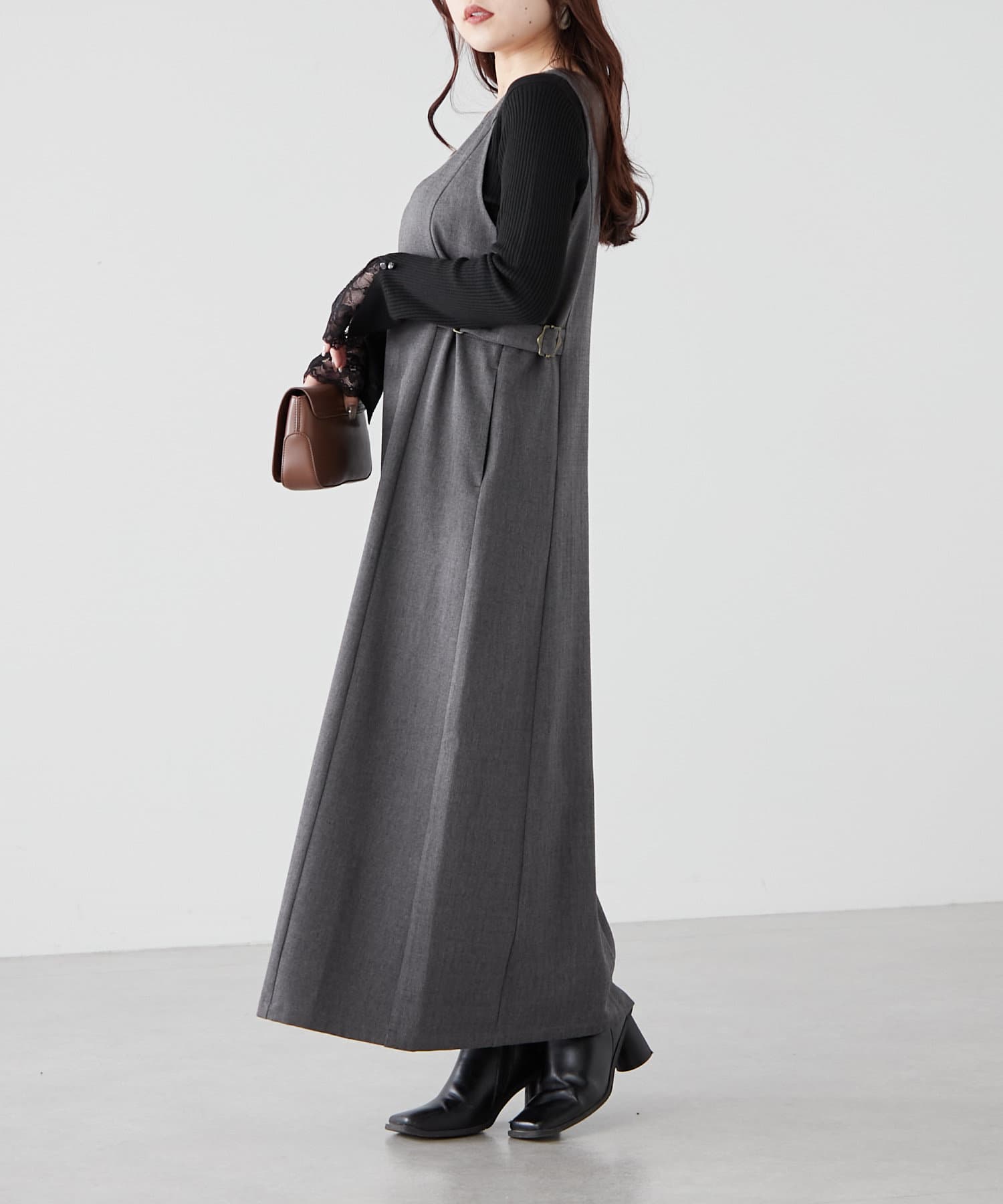 ・脇のベルトでサイズ調節ができ、コーデのポイントに。