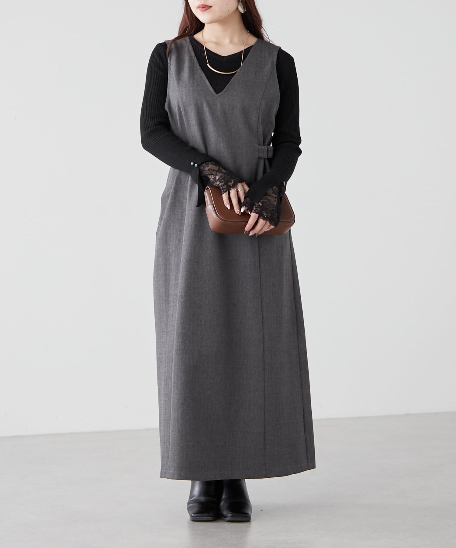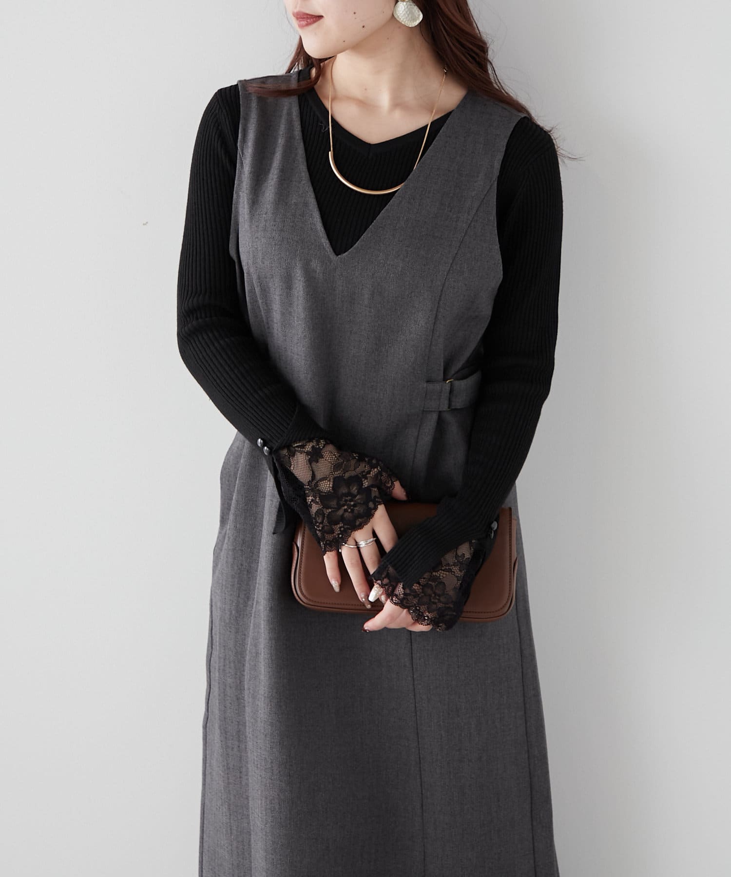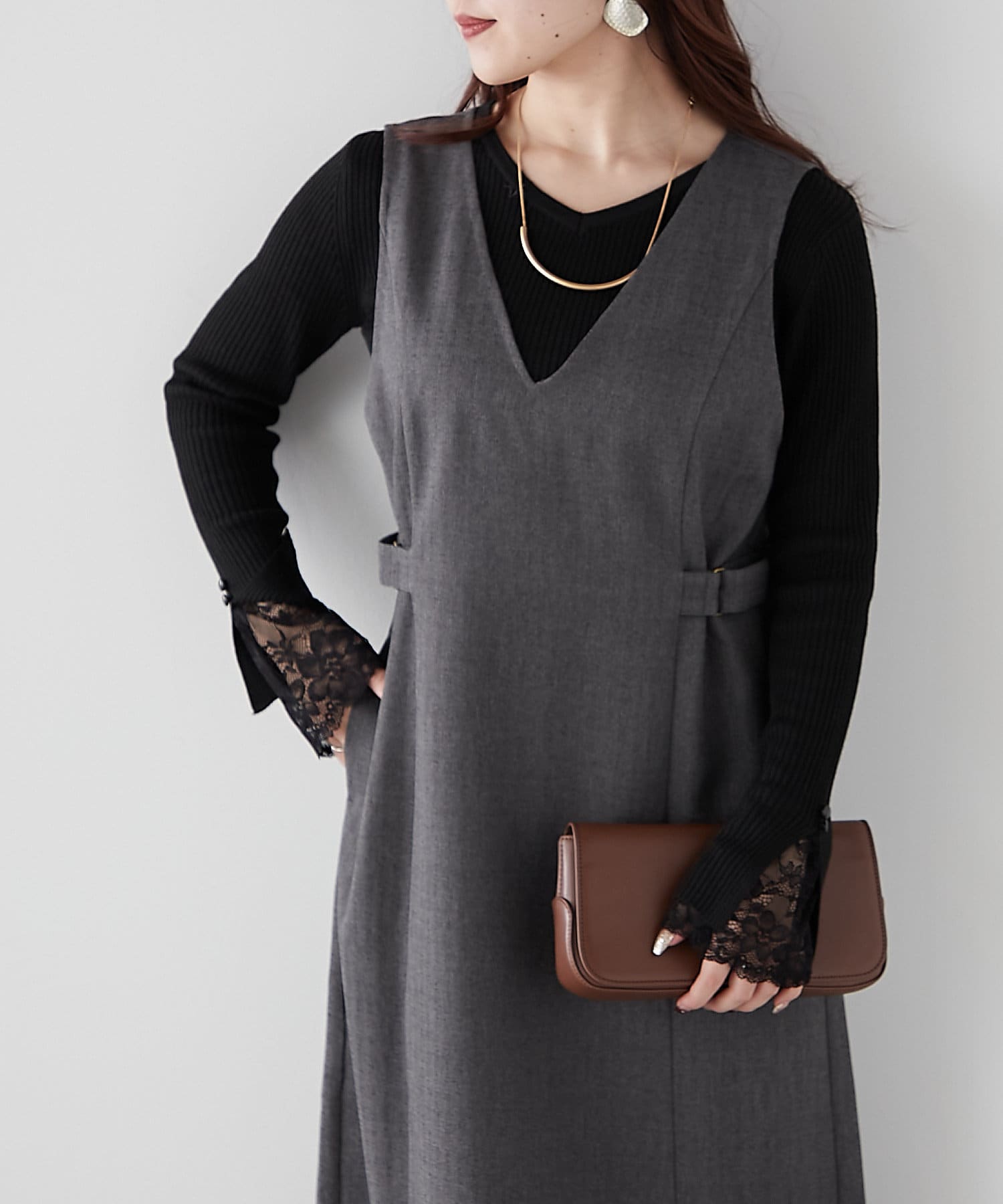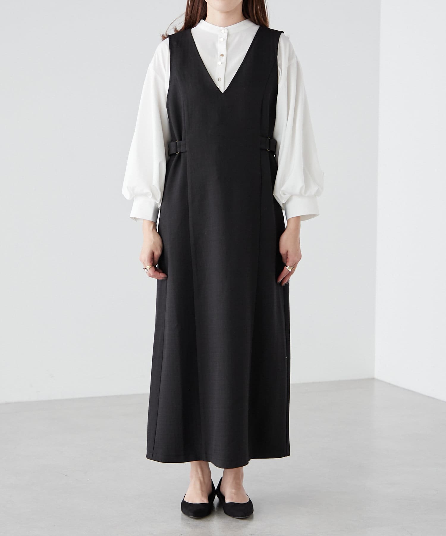 ・脇のベルトでサイズ調節ができ、コーデのポイントに。