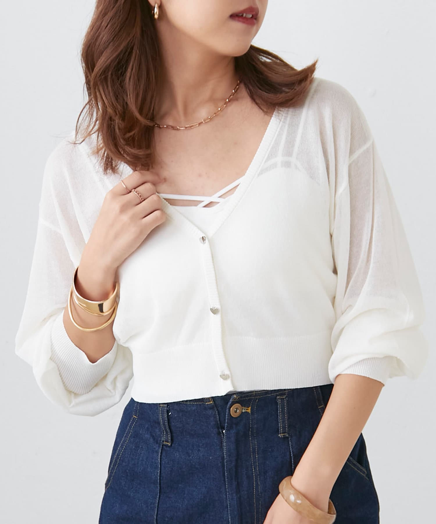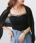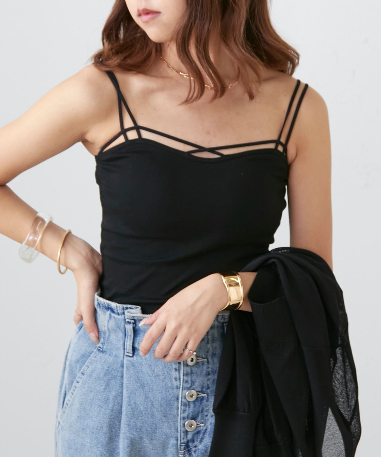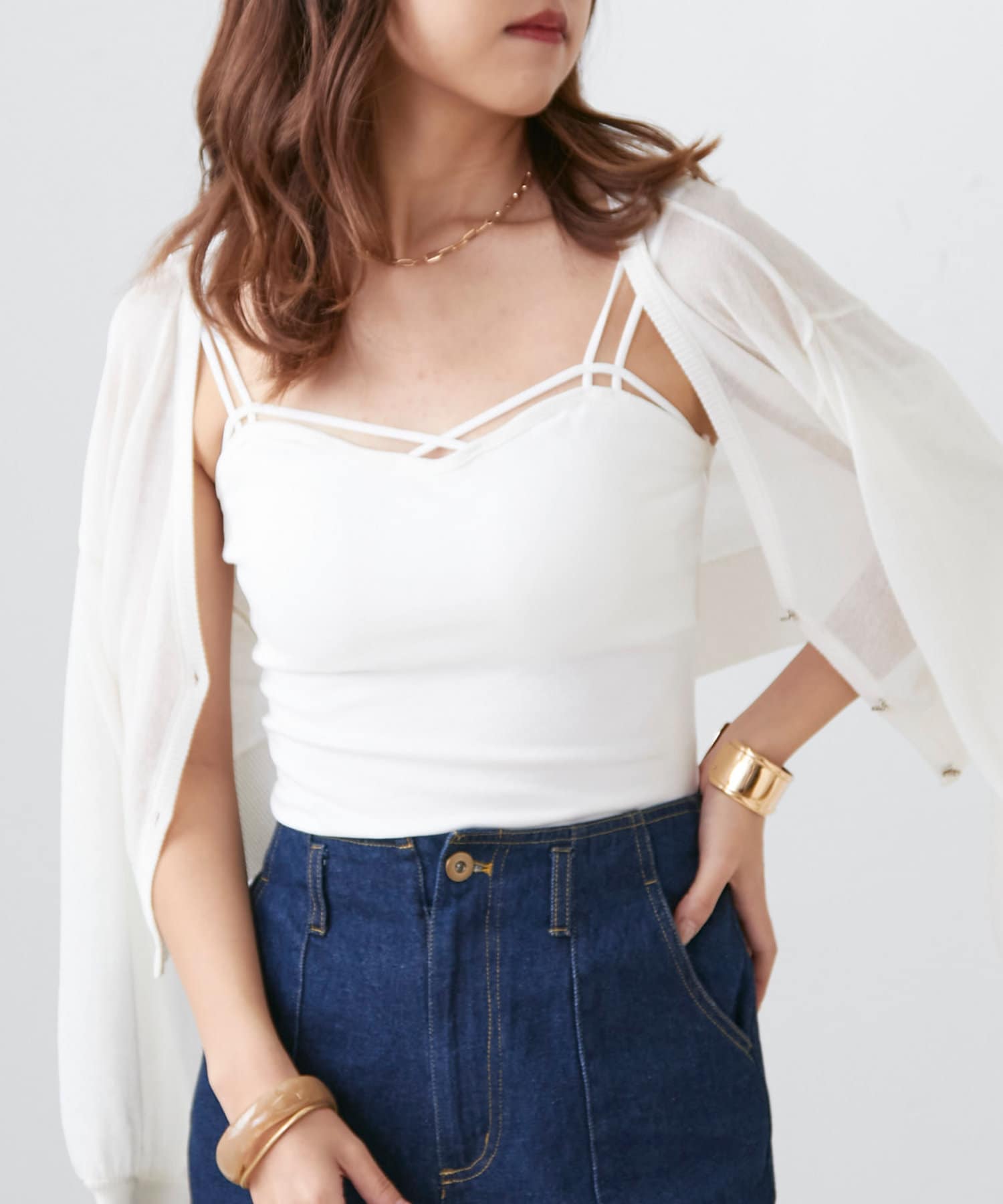 ・カップ付きなので1枚での着用はもちろん、シアーシャツやカーディガンなどの羽織りアイテムのインナーとしてもおすすめ。