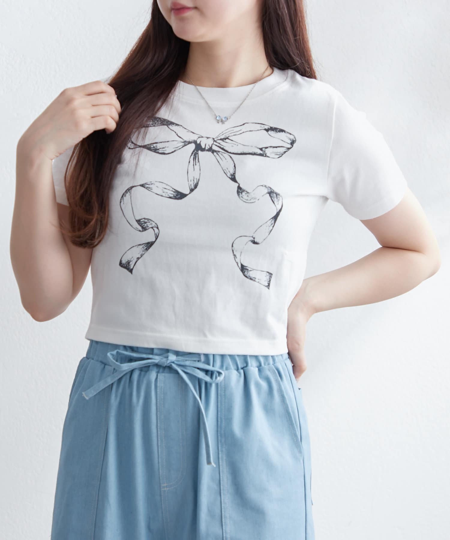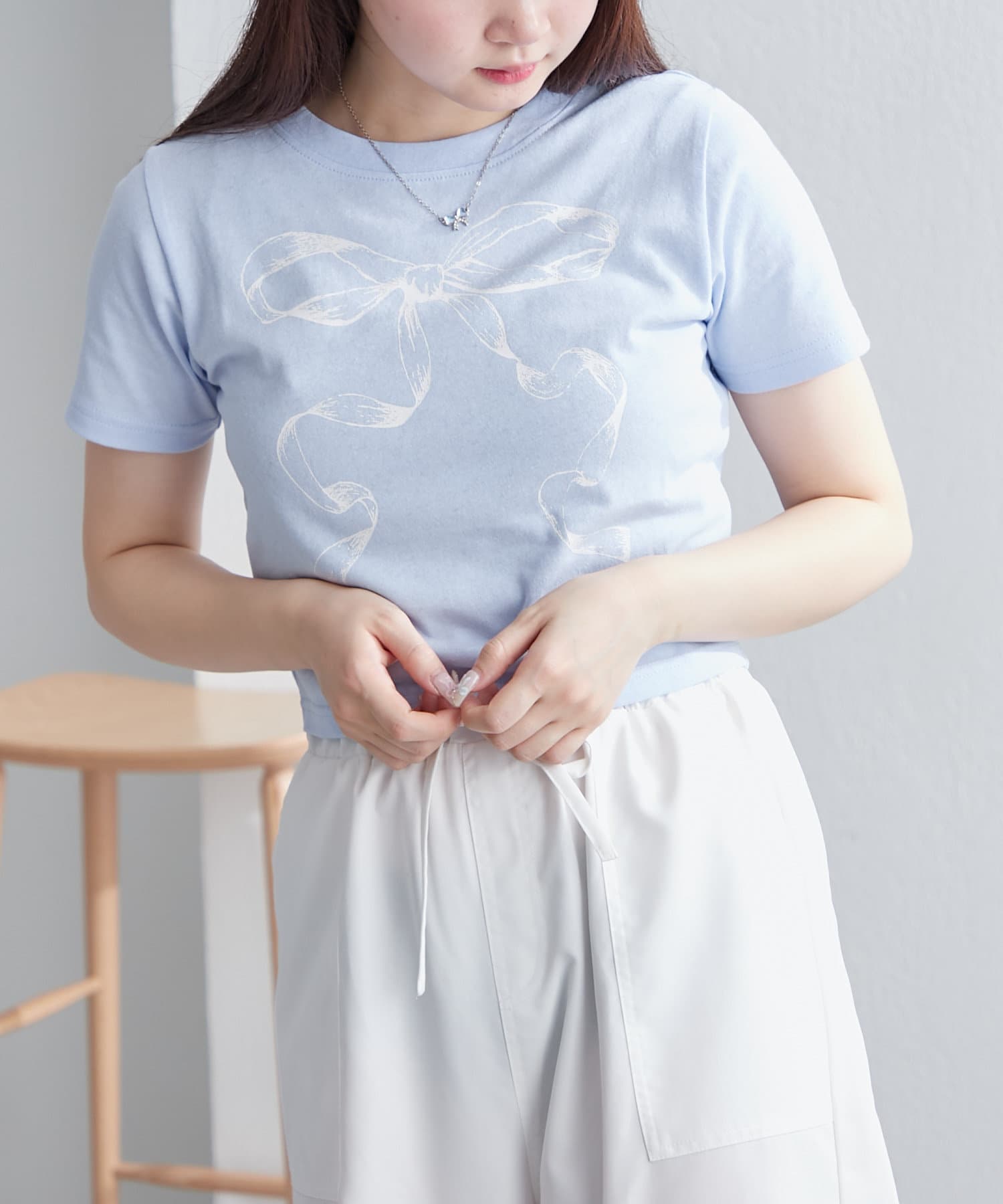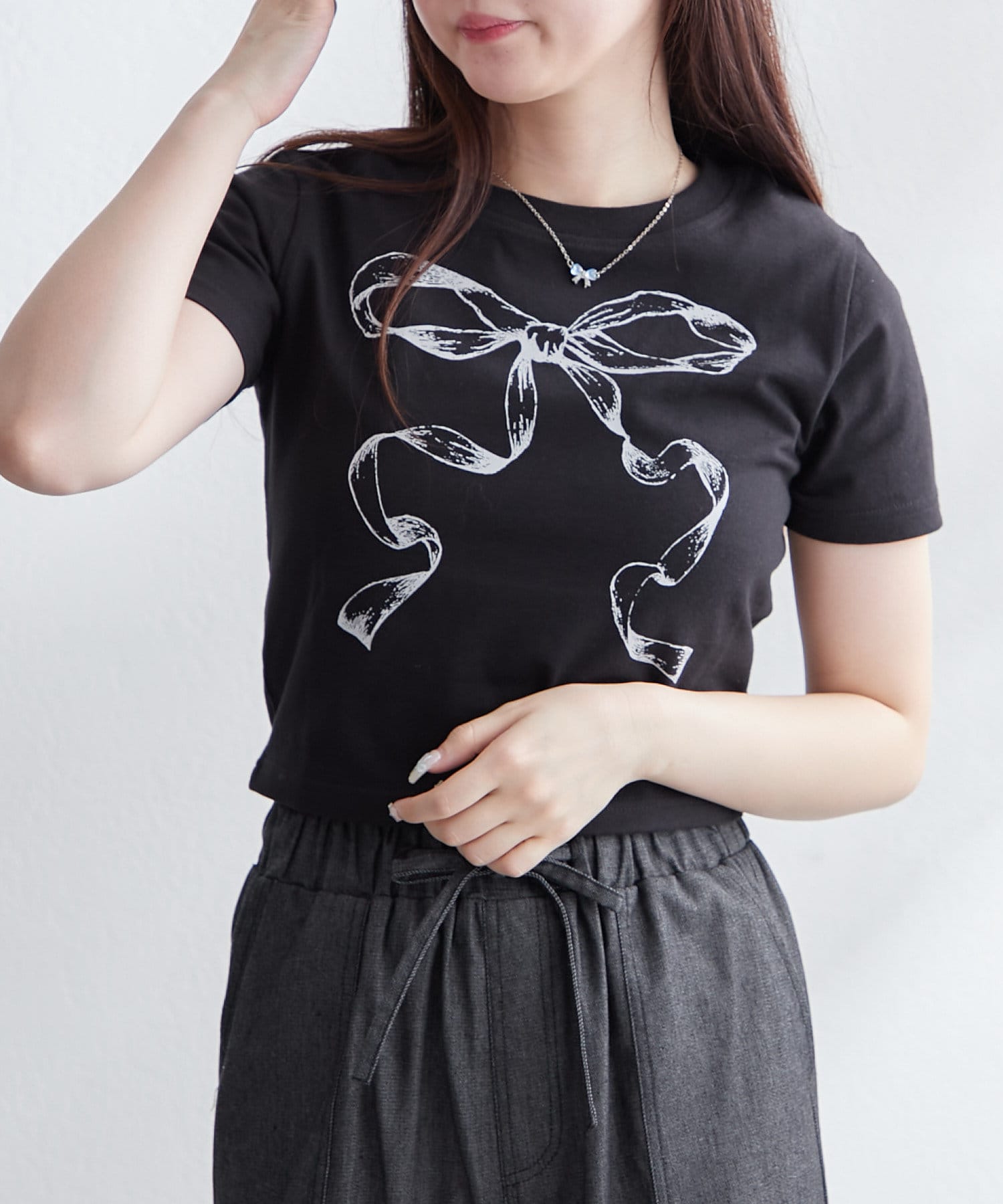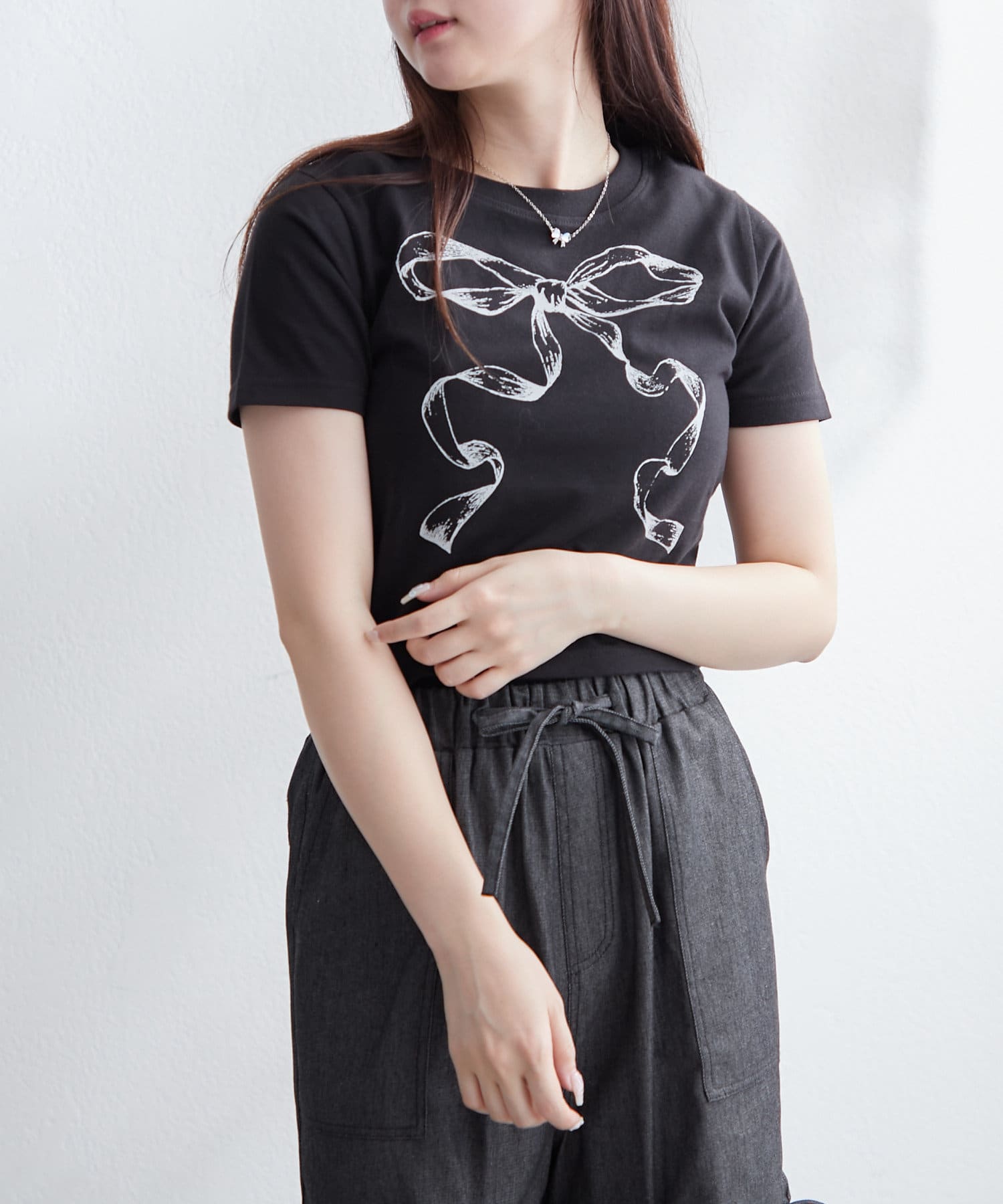 ・線画のリボンが施され、シンプルながら女性らしい可愛さを引きたてます。