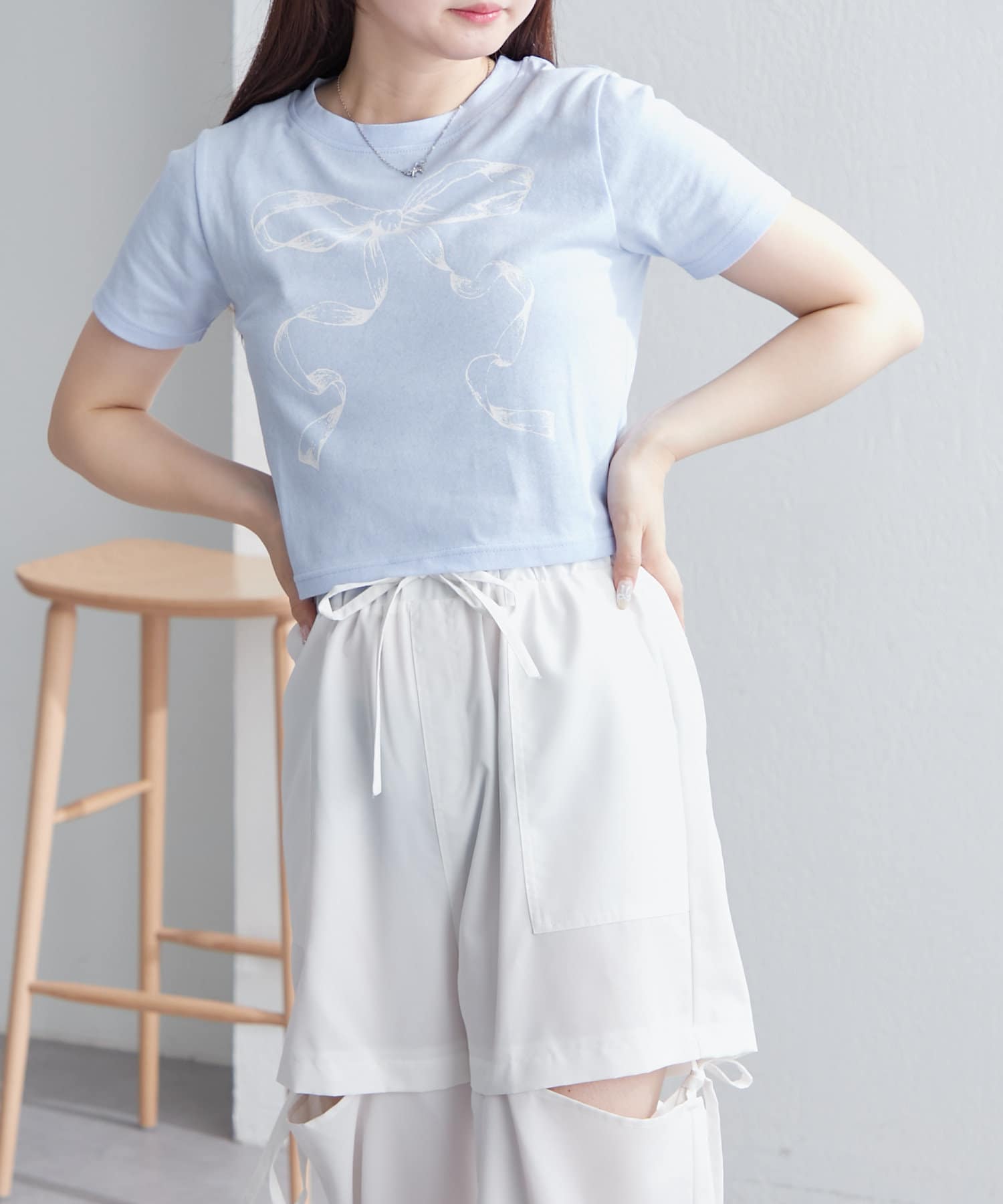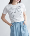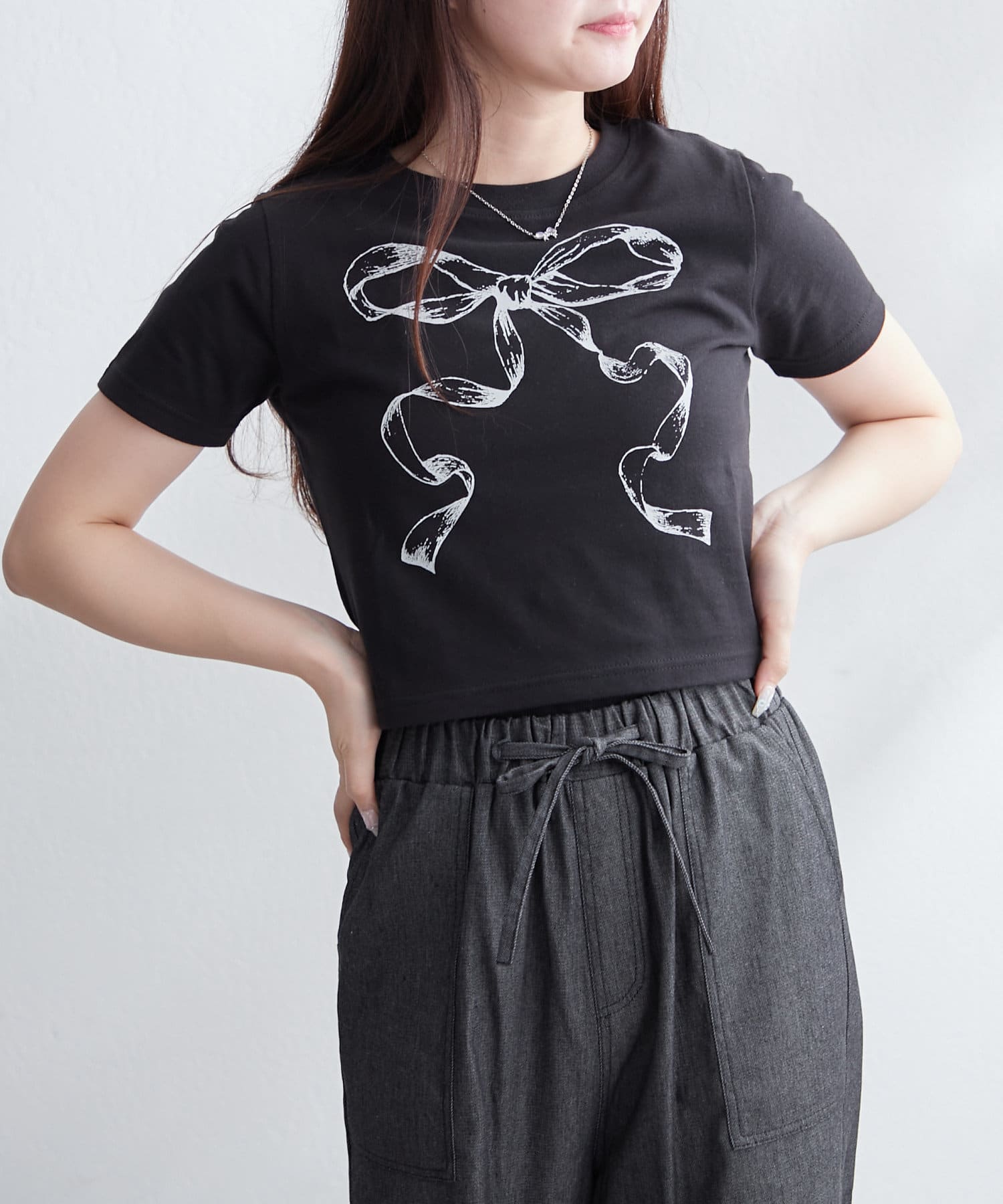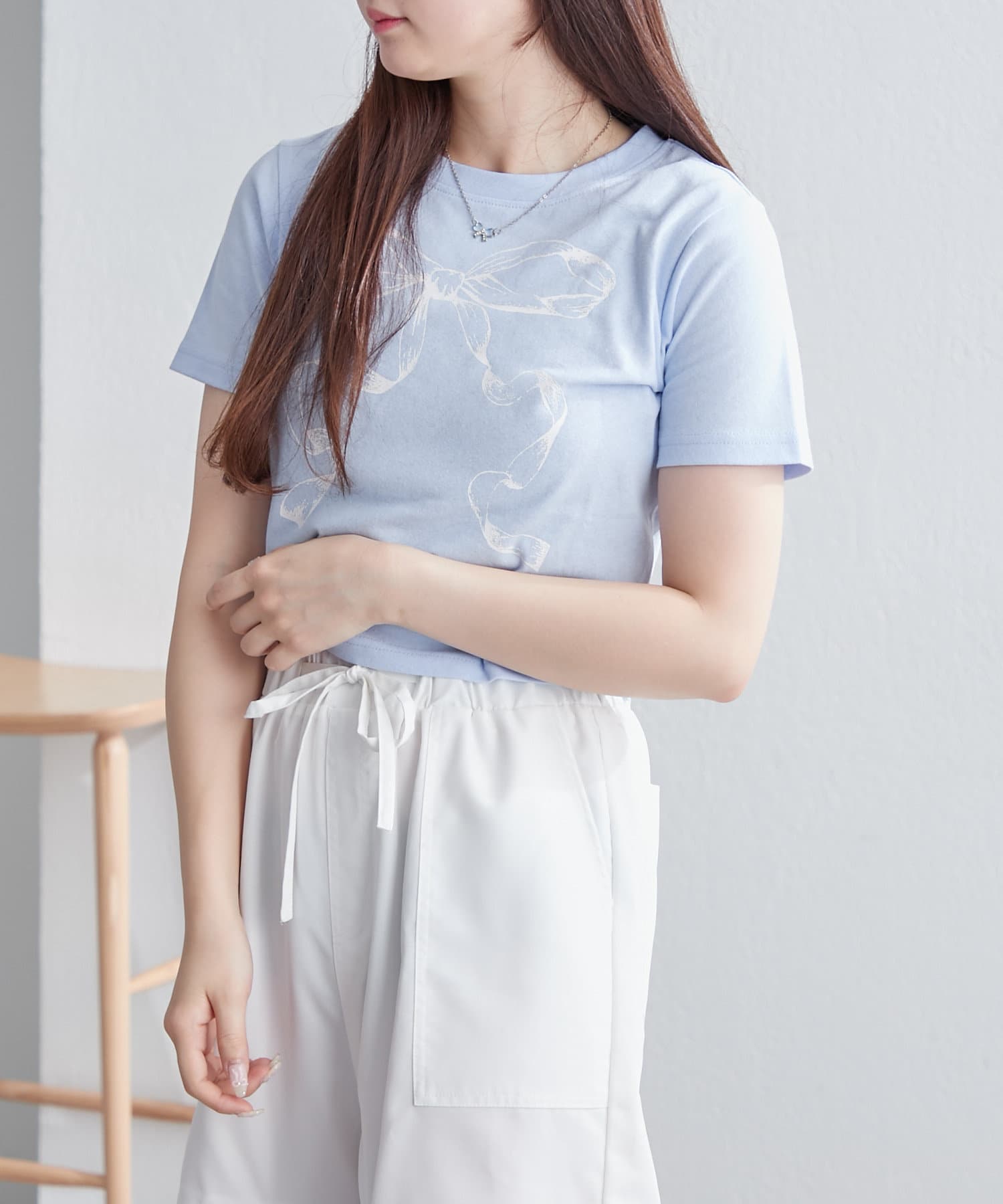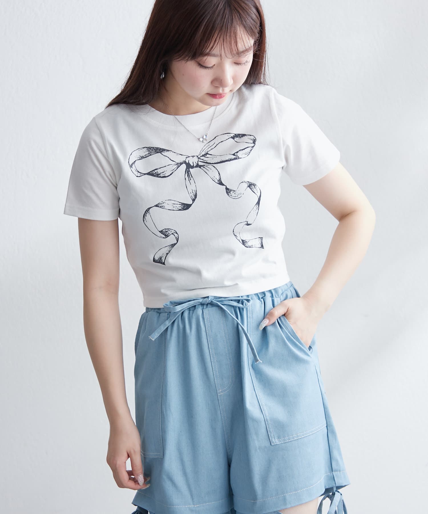 ・線画のリボンが施され、シンプルながら女性らしい可愛さを引きたてます。