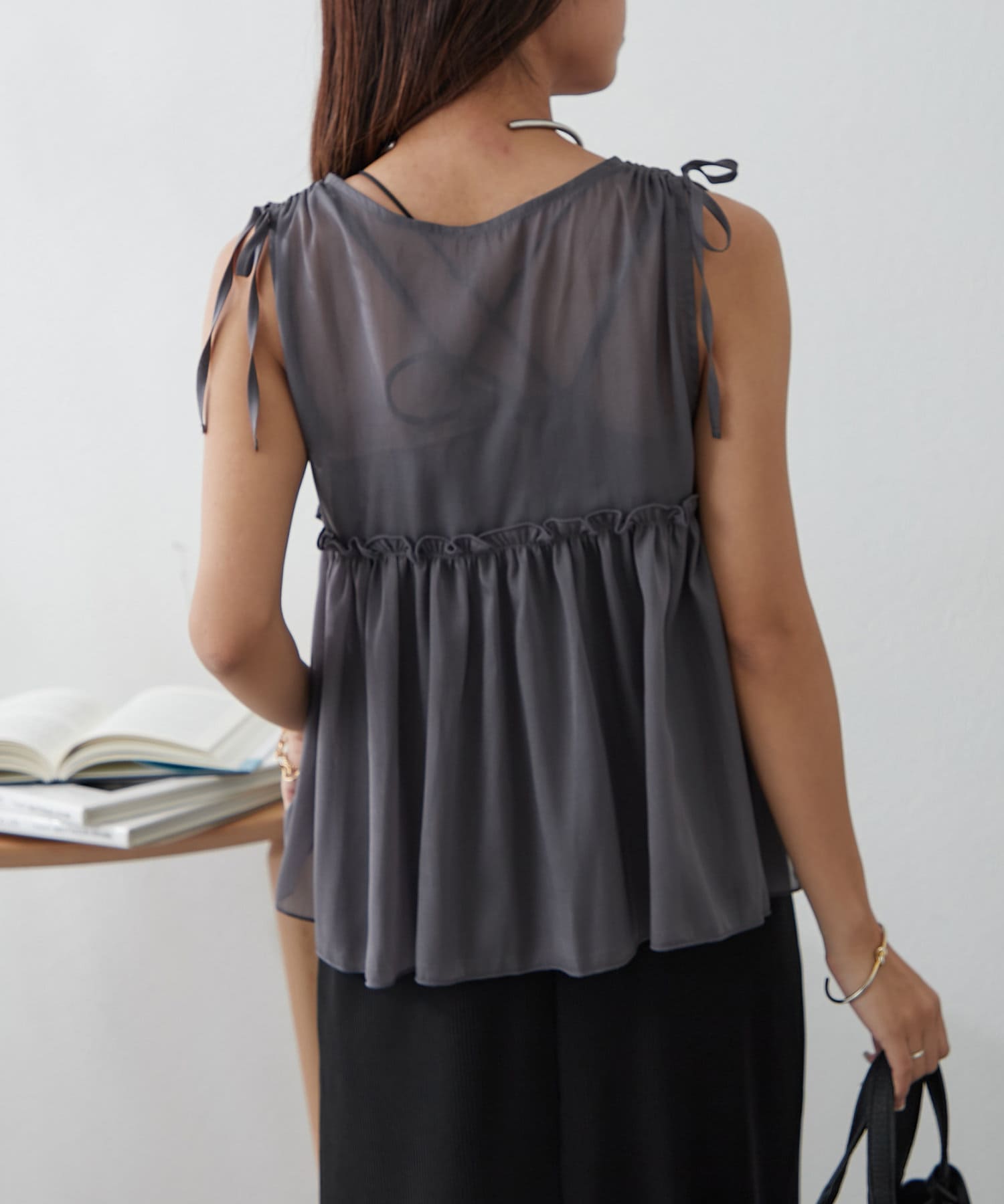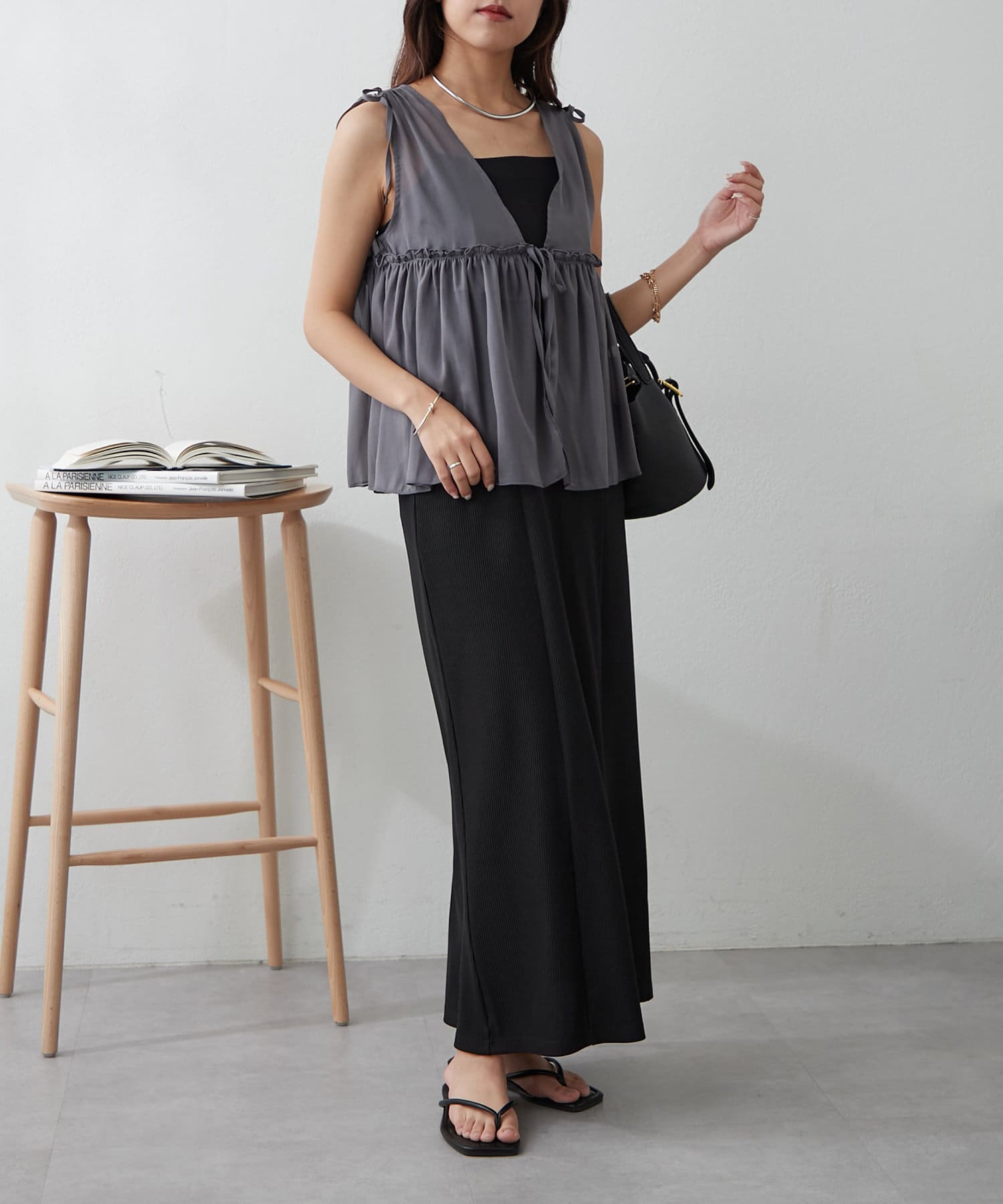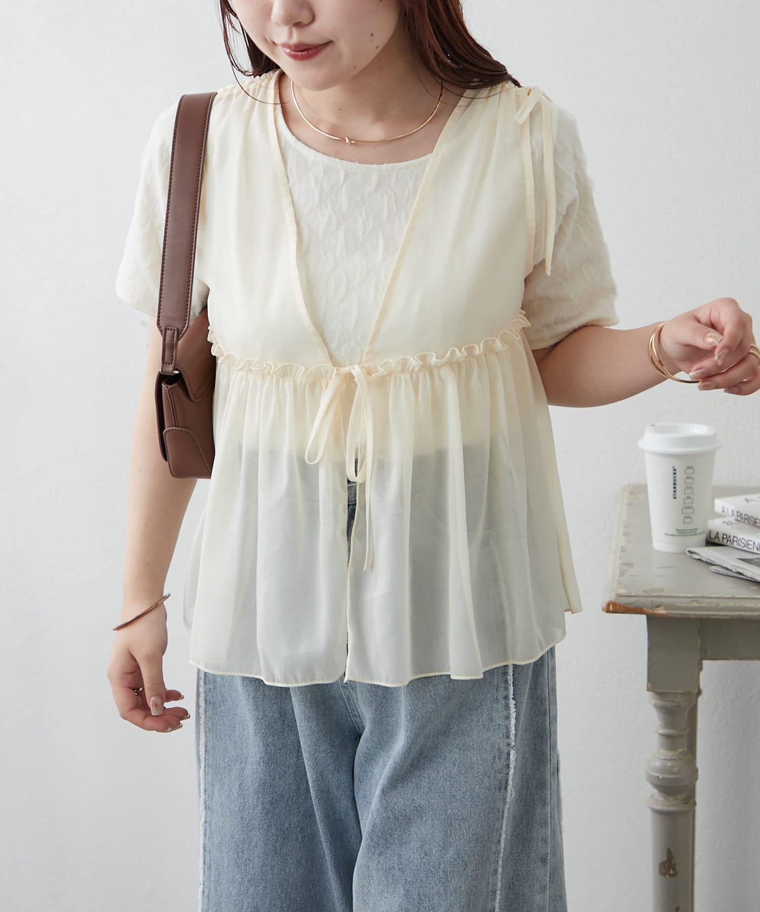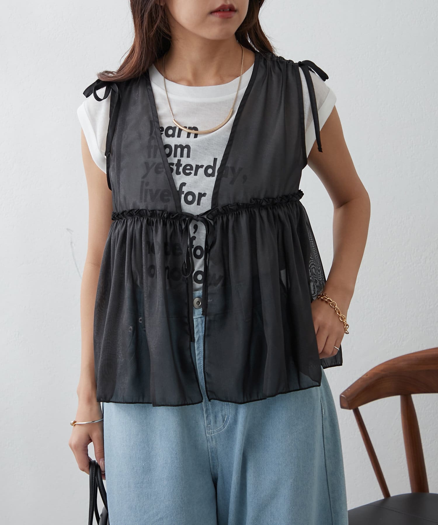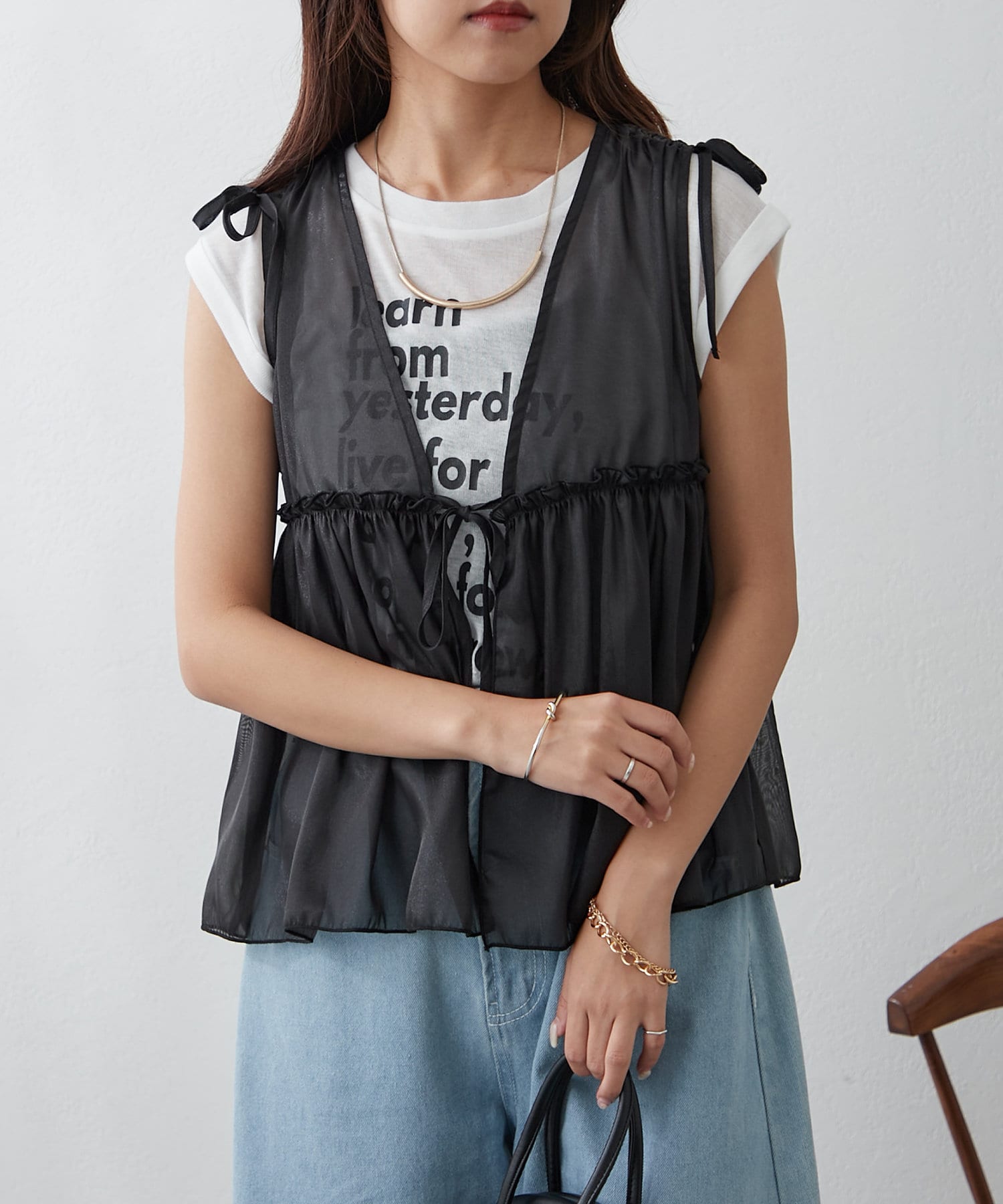 ・光沢と透け感のある素材が夏にピッタリなベスト