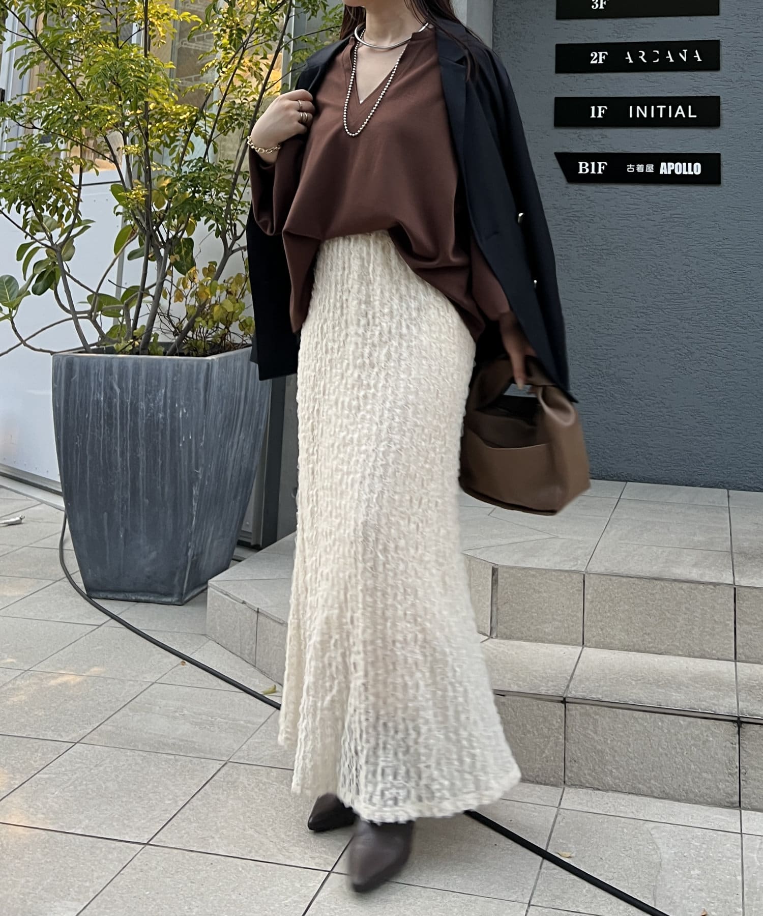 ・ブラウスをインしてとびきりフェミニンなコーデも◎