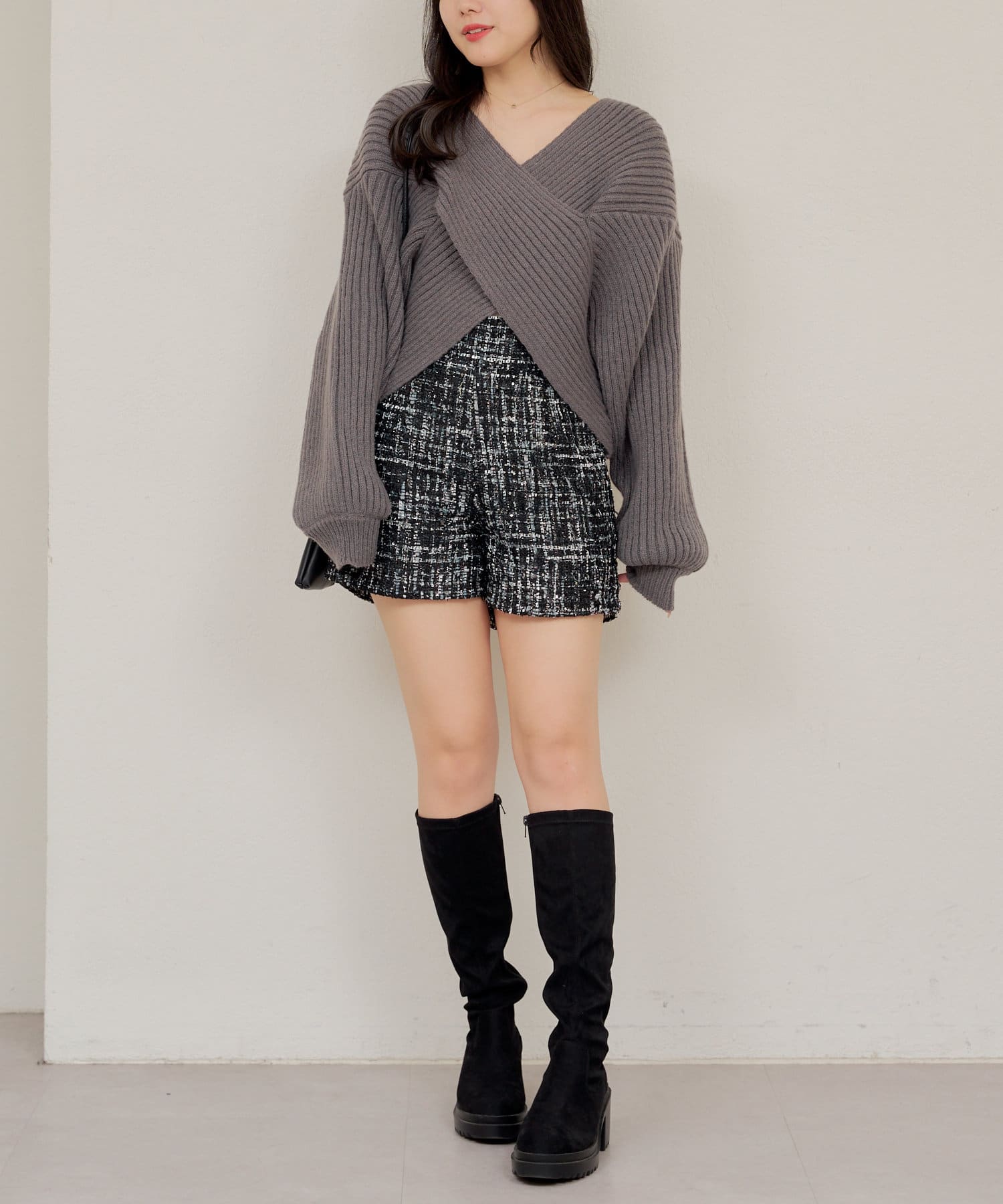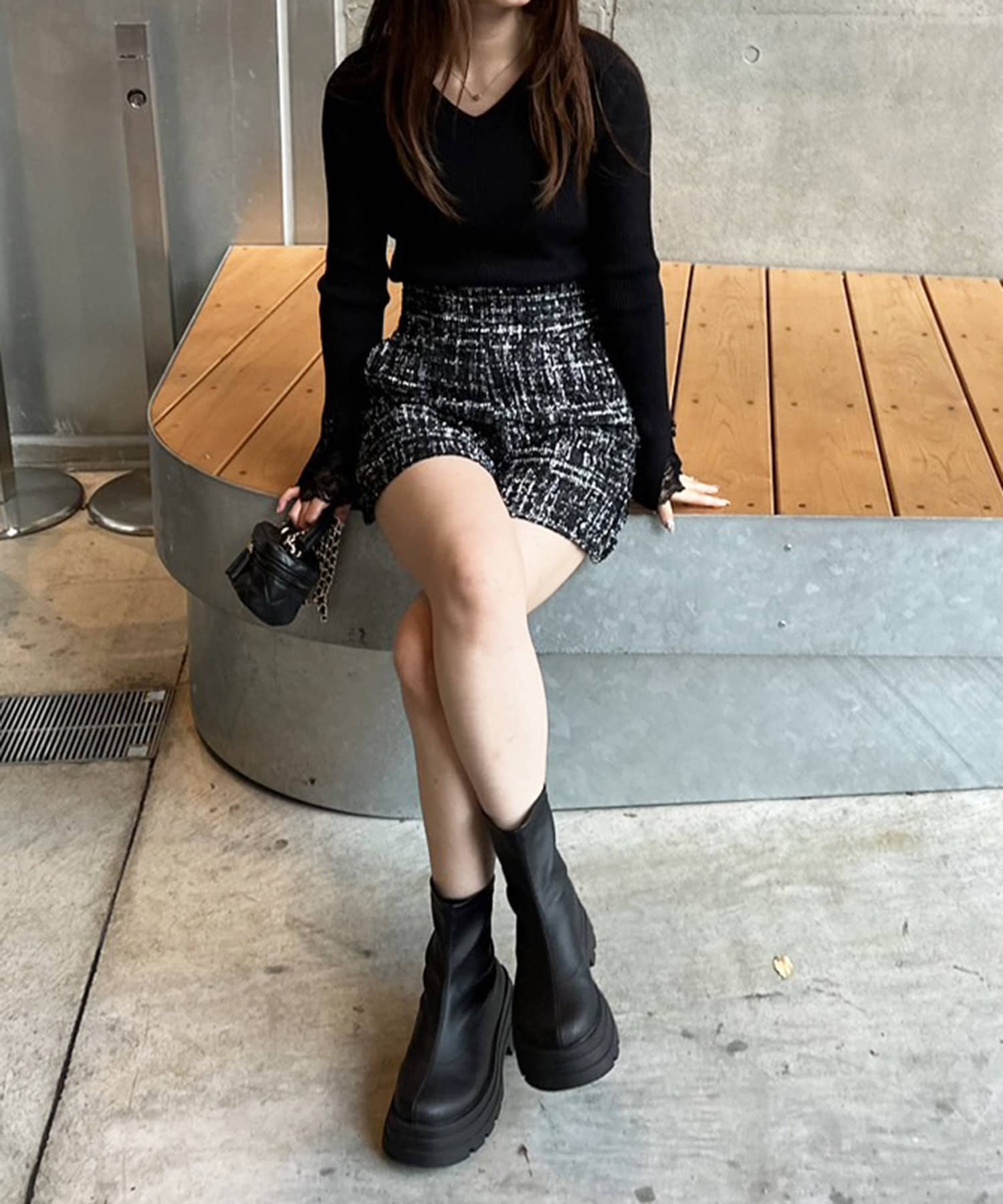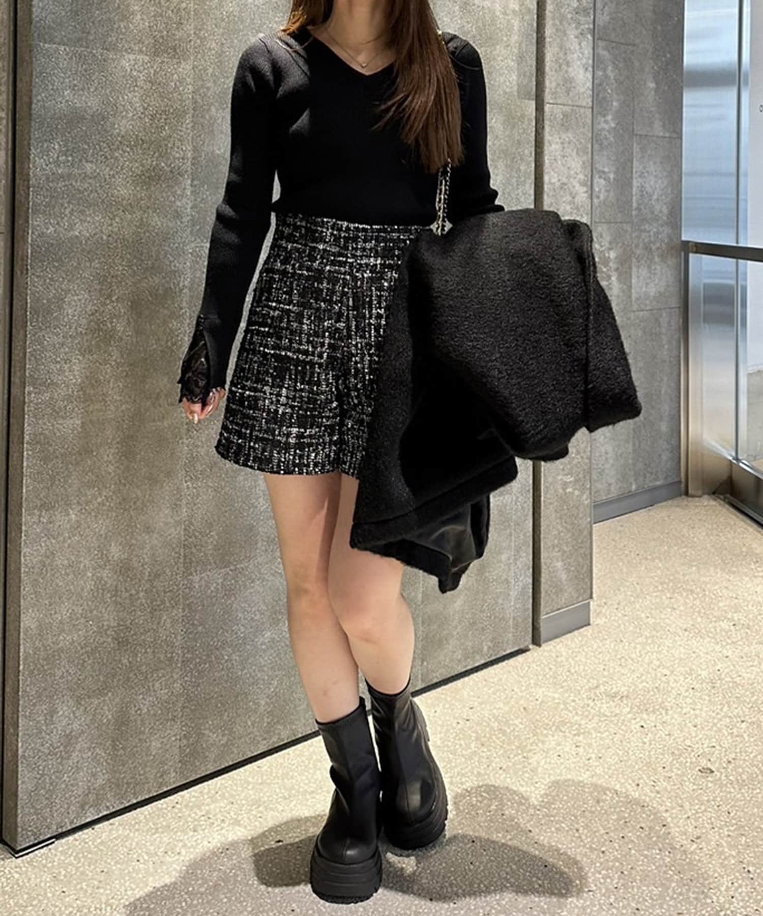・女性らしさを更に引き立てるシャギーニットやカーディガンと合わせて♪