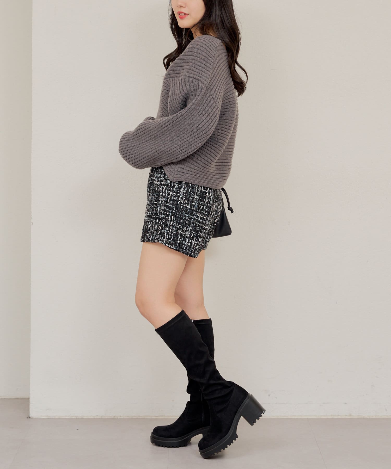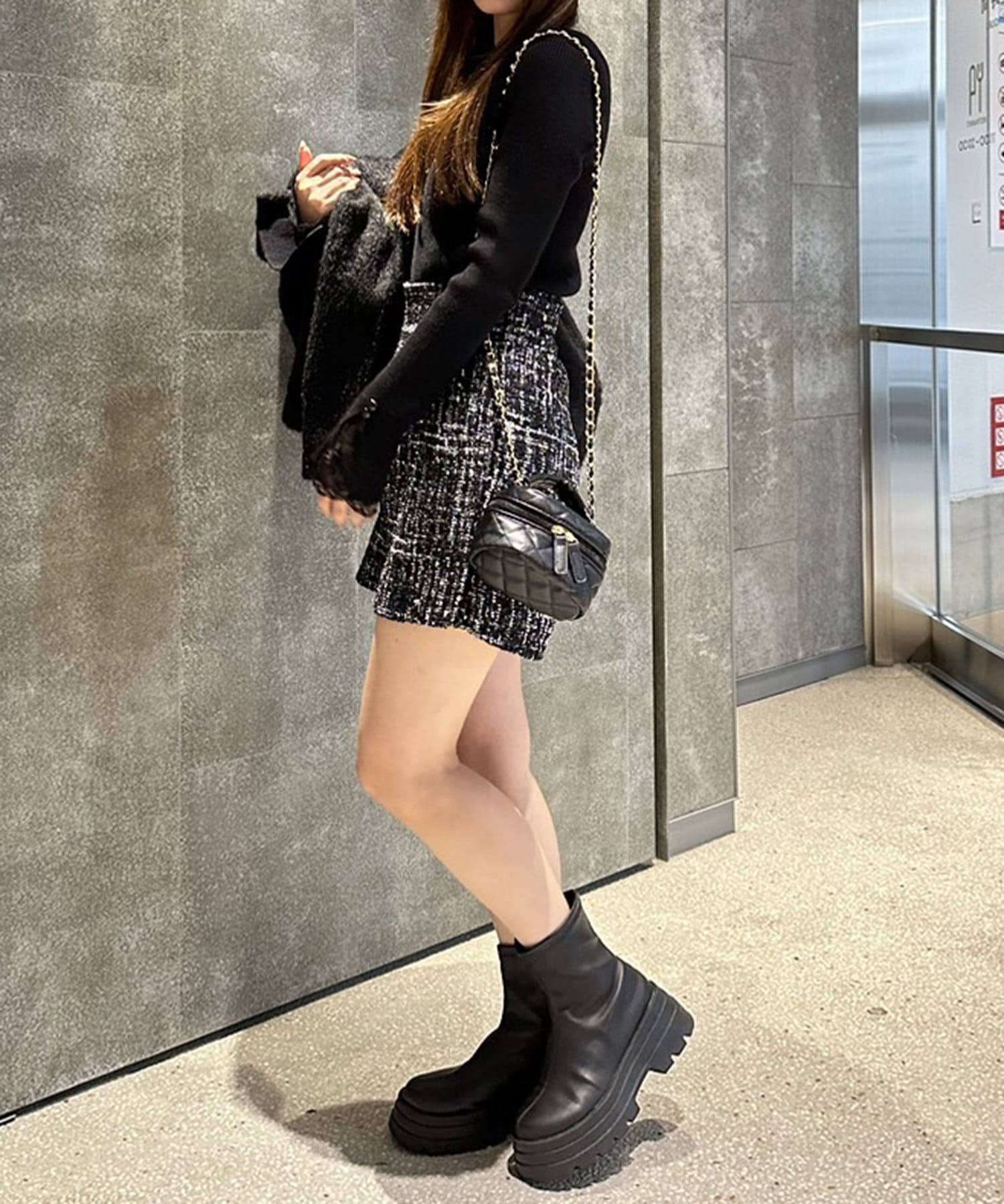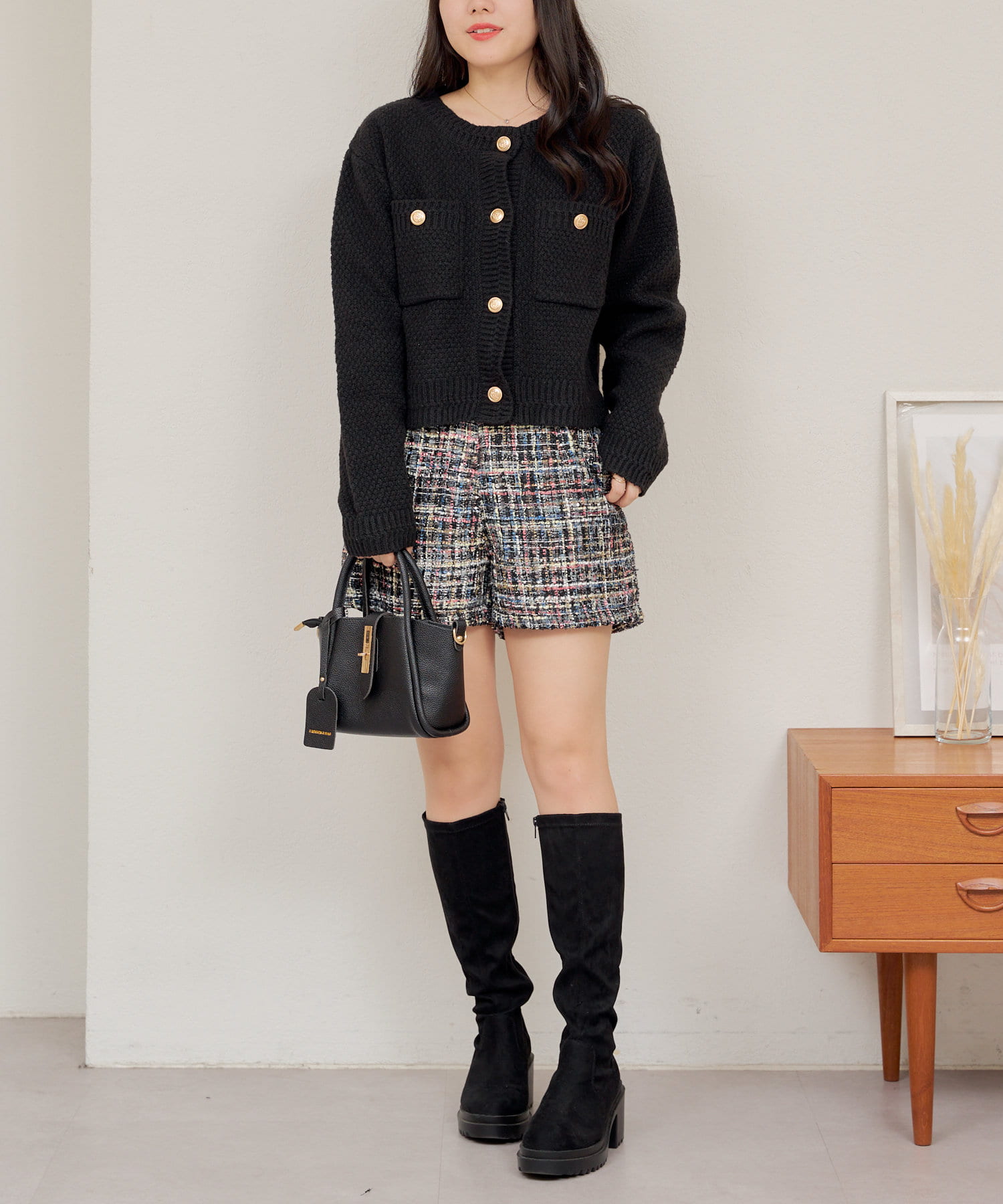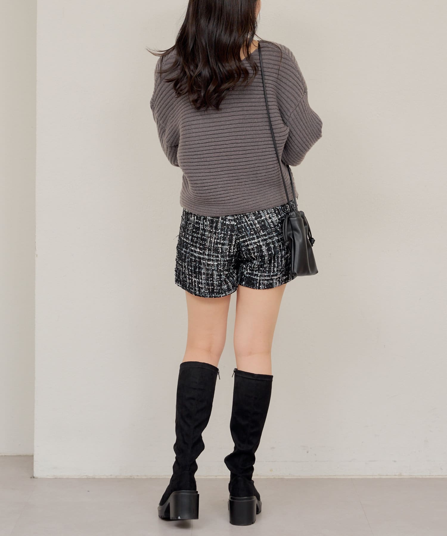 ・女性らしさを更に引き立てるシャギーニットやカーディガンと合わせて♪