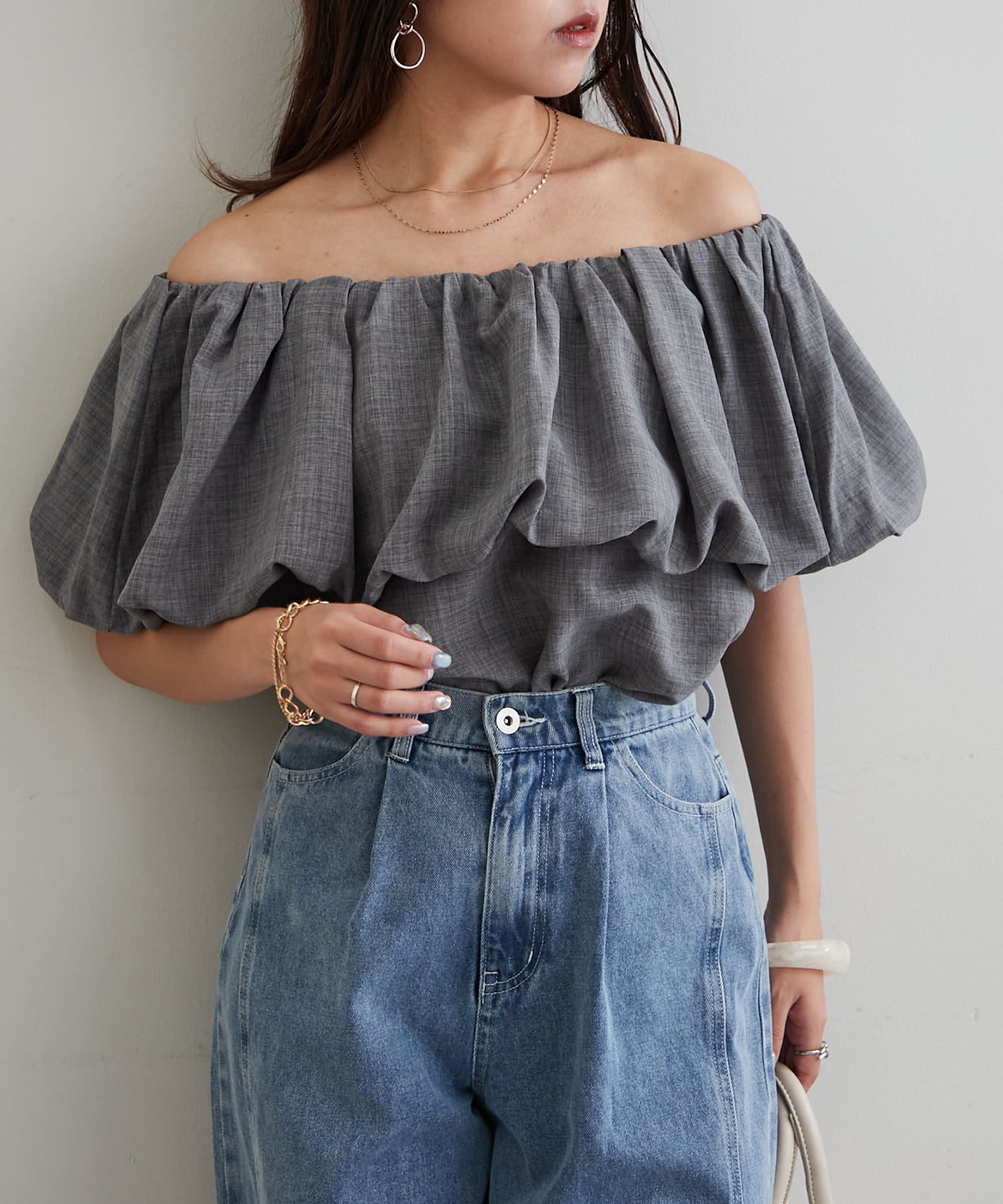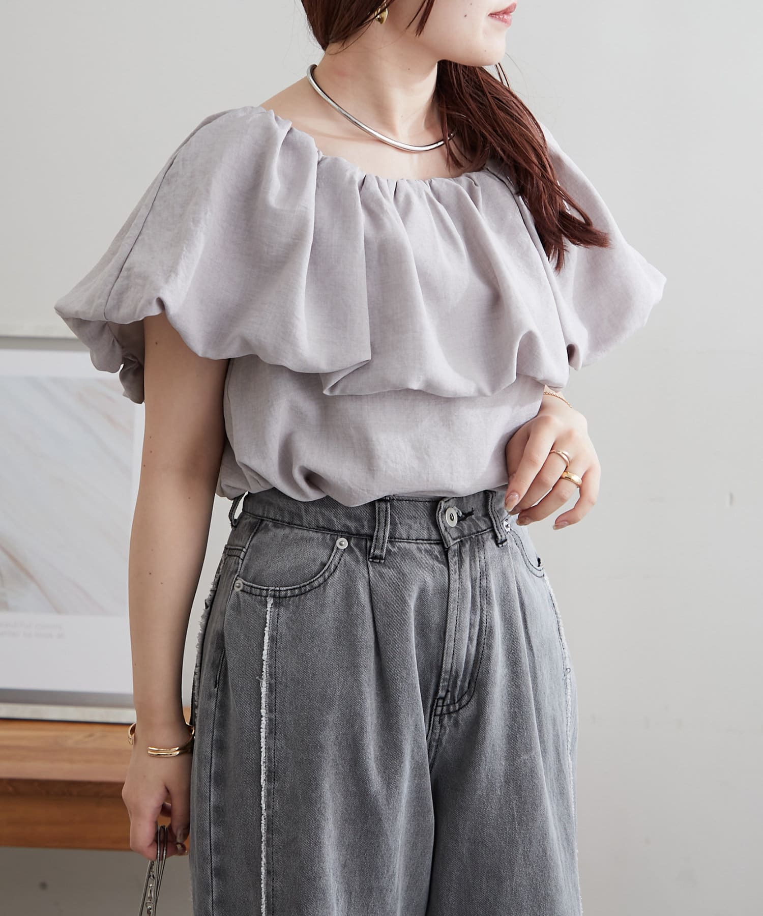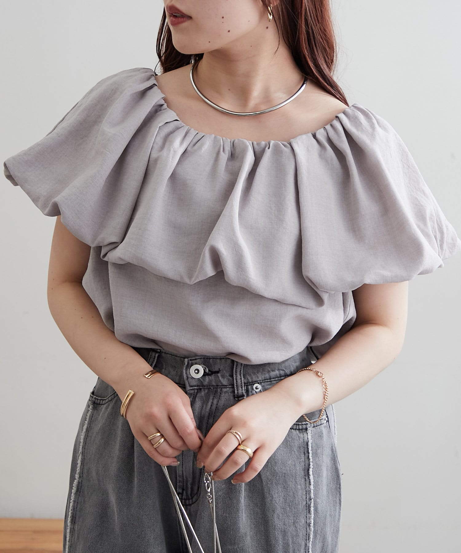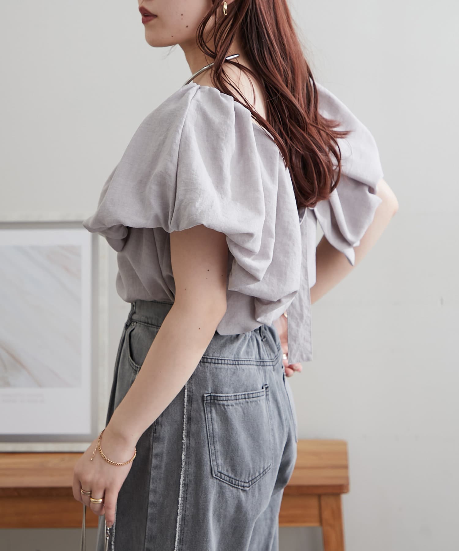 ・胸元にボリュームを持たせたバルーンデザインのブラウス