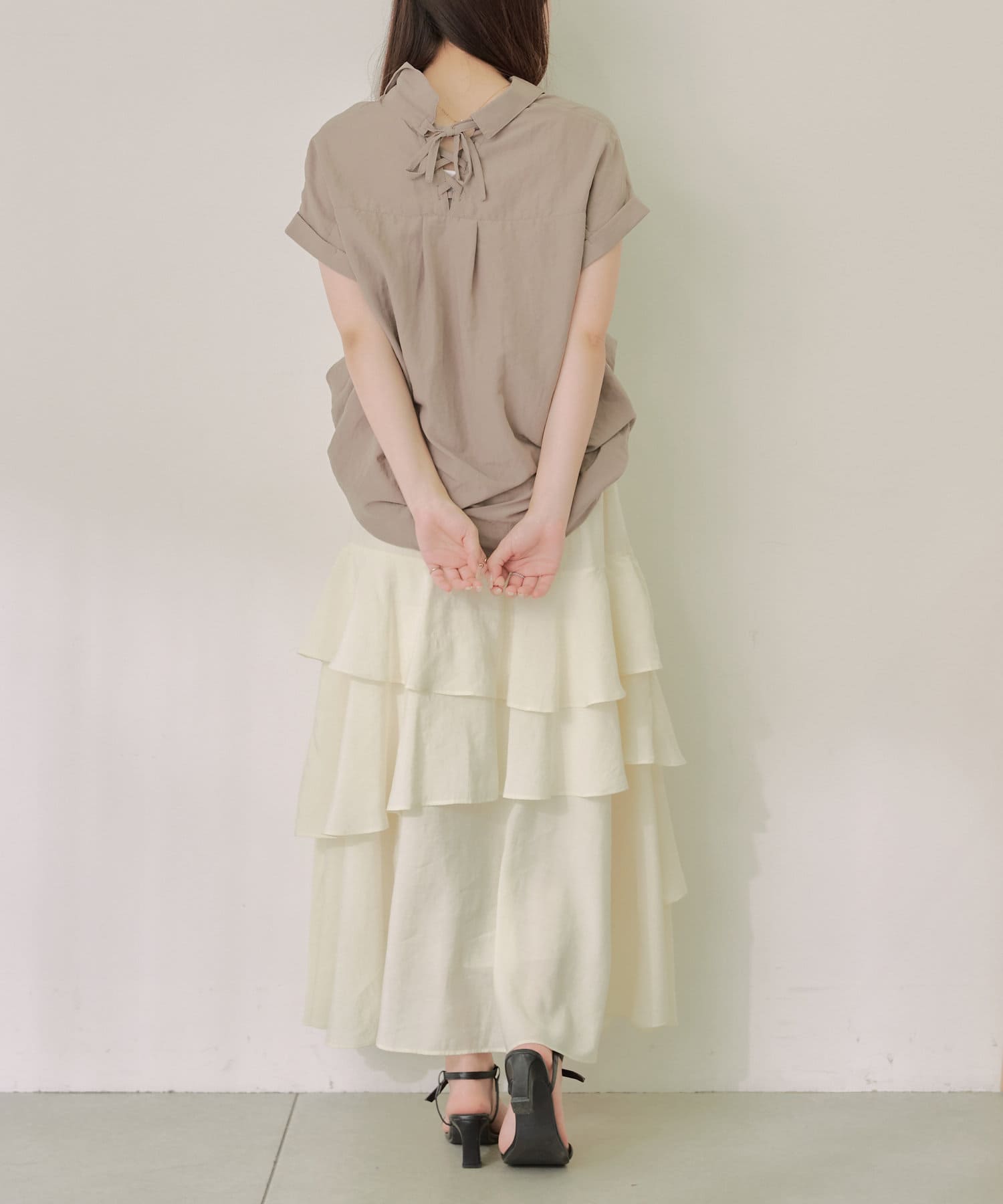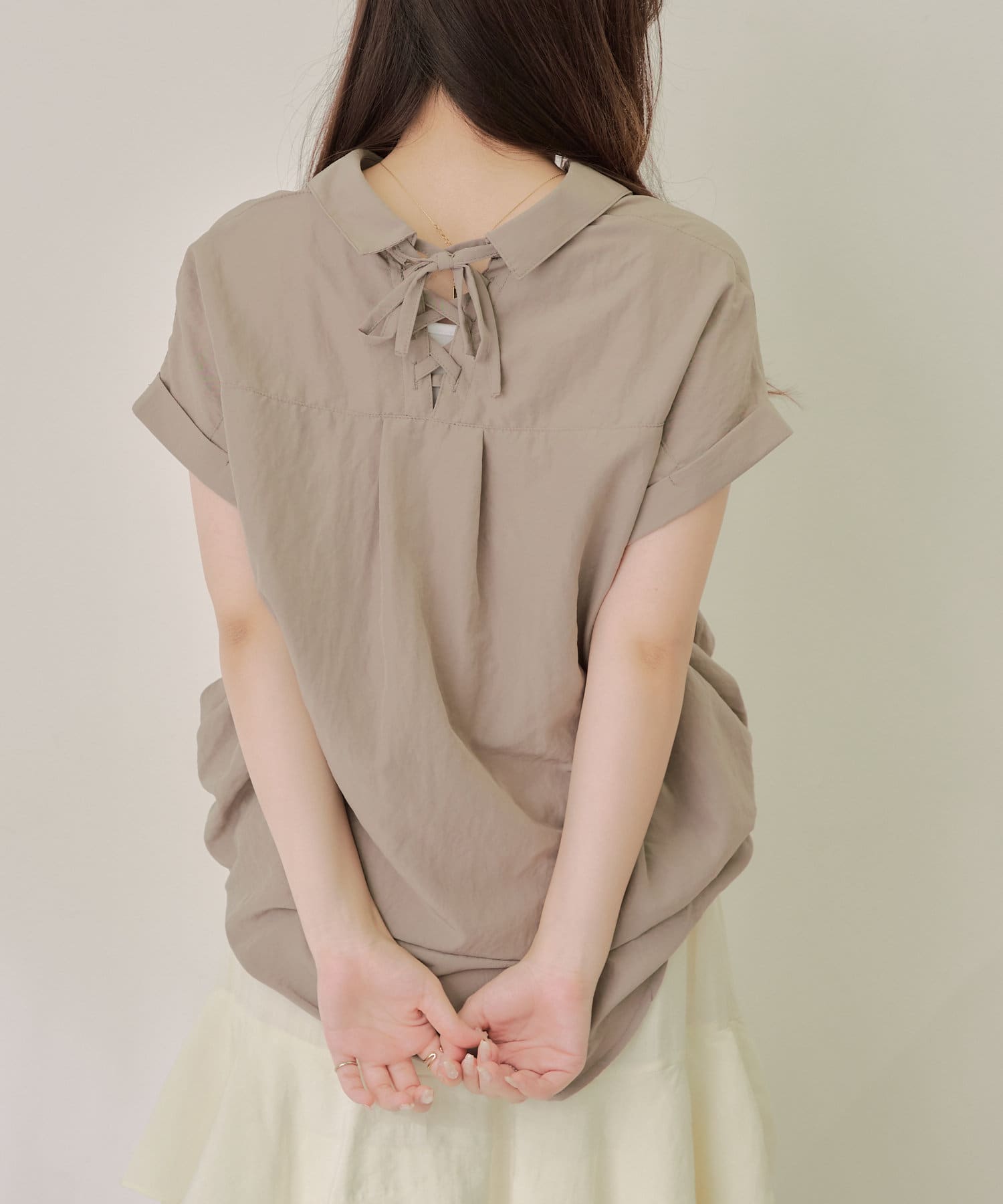 【nao】後レースアップタケノコタックブラウス