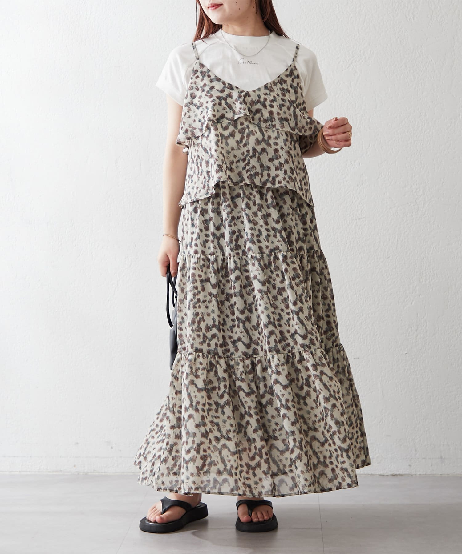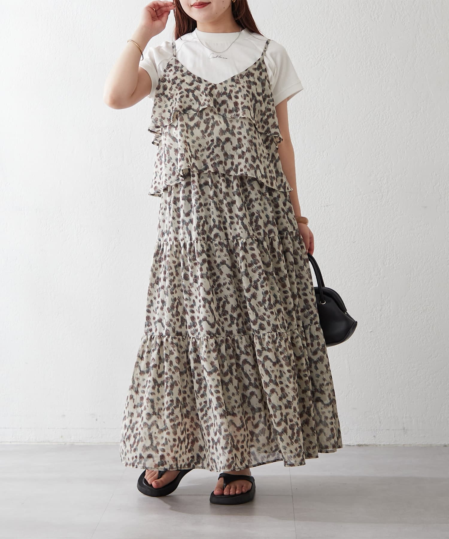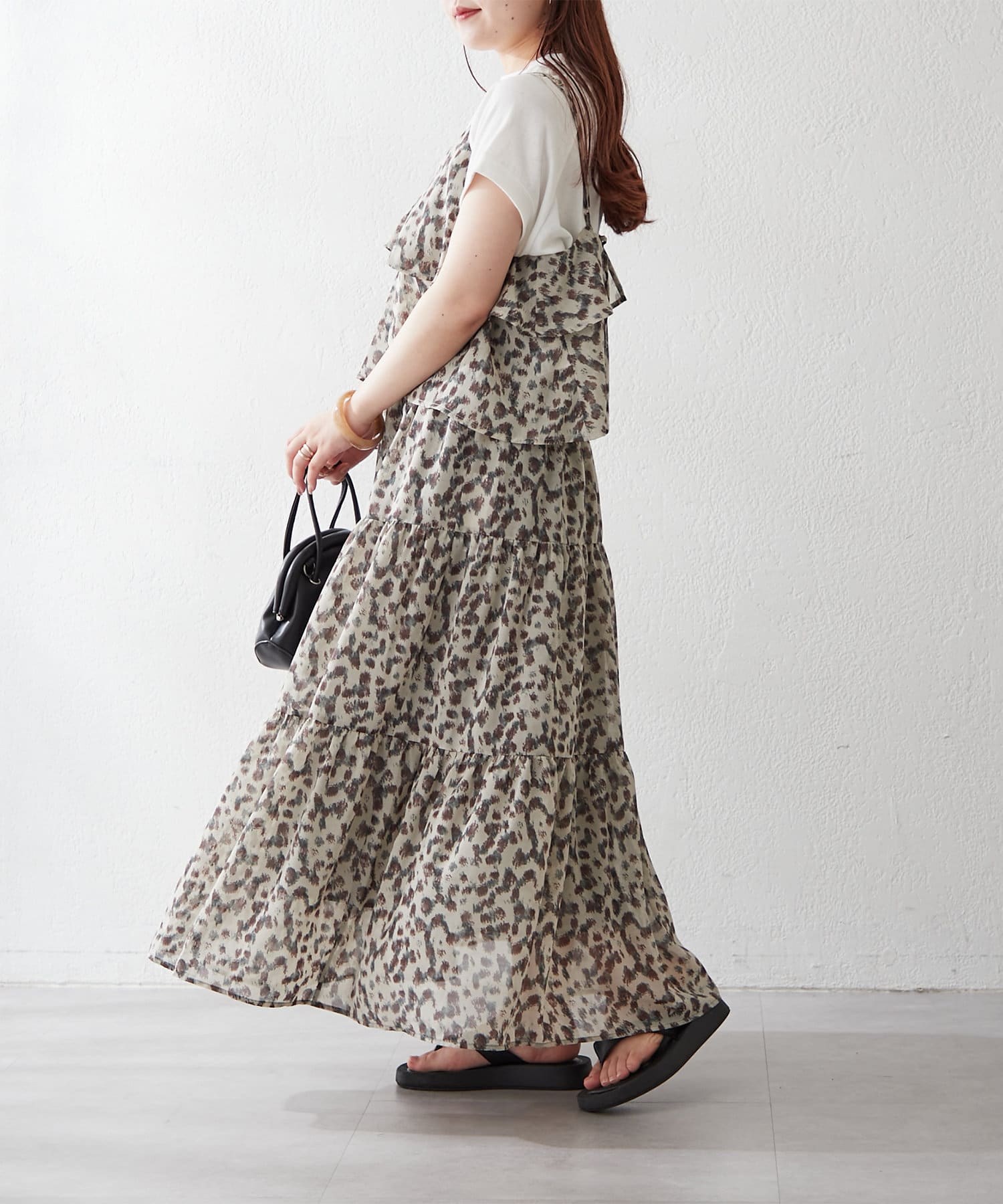 ・【品番:5042010070/ヒョウ柄ティアードスカート】と合わせることでワンピース風に着用もできます。