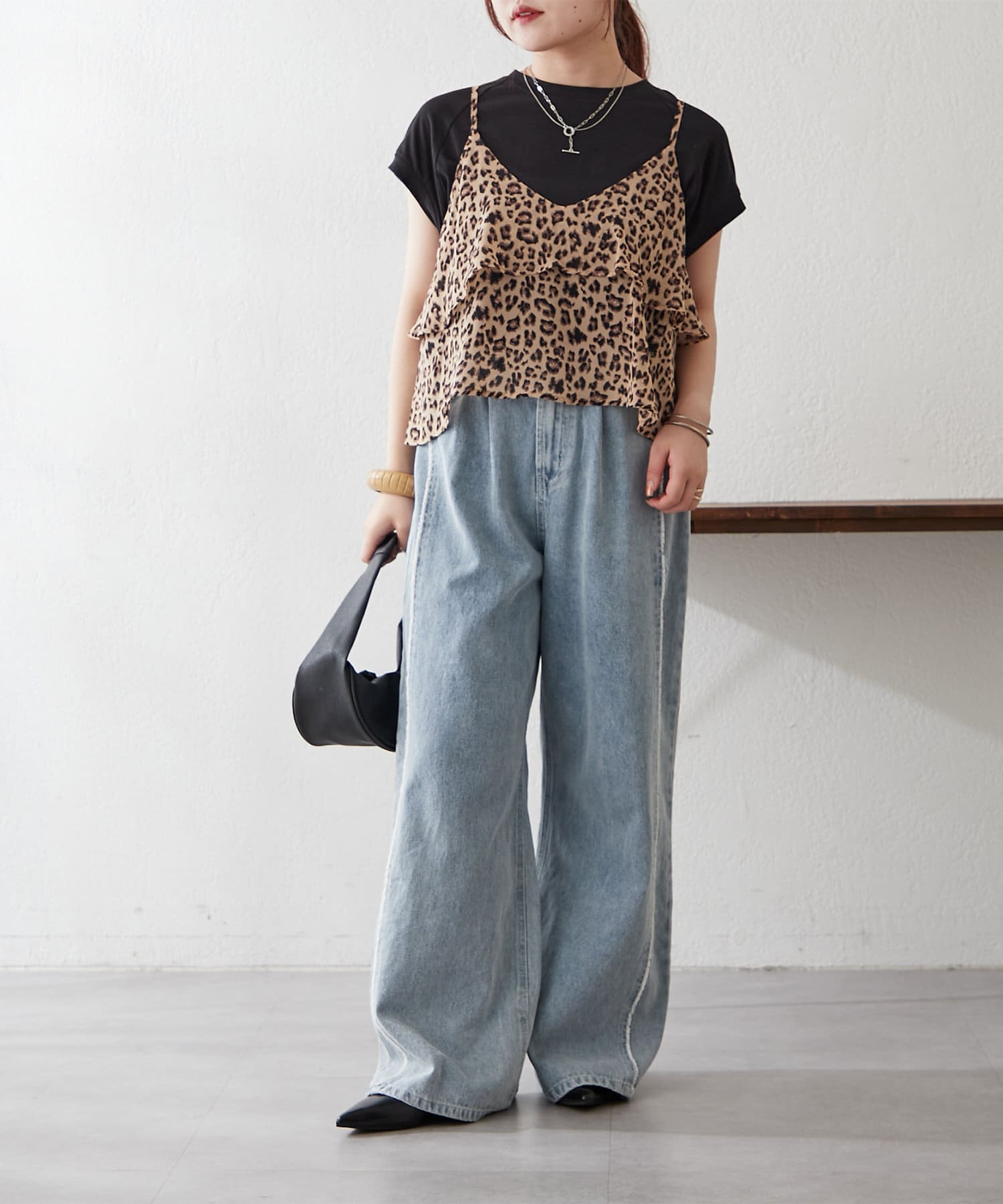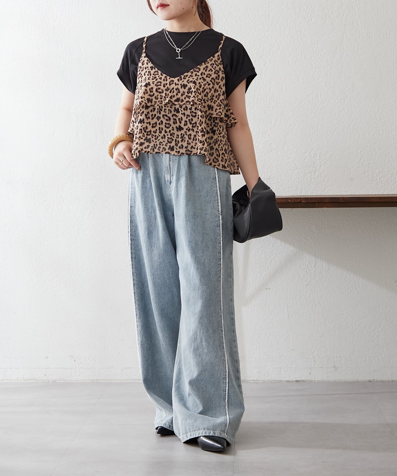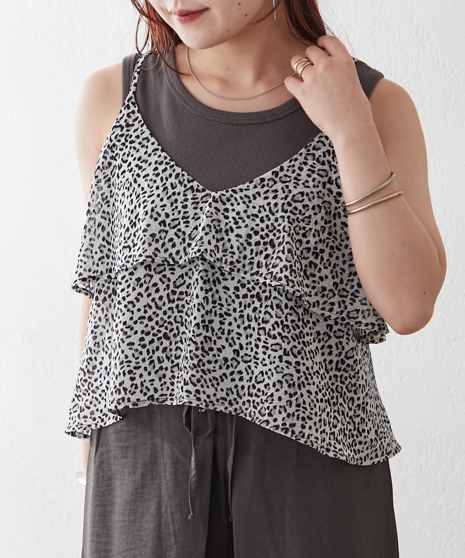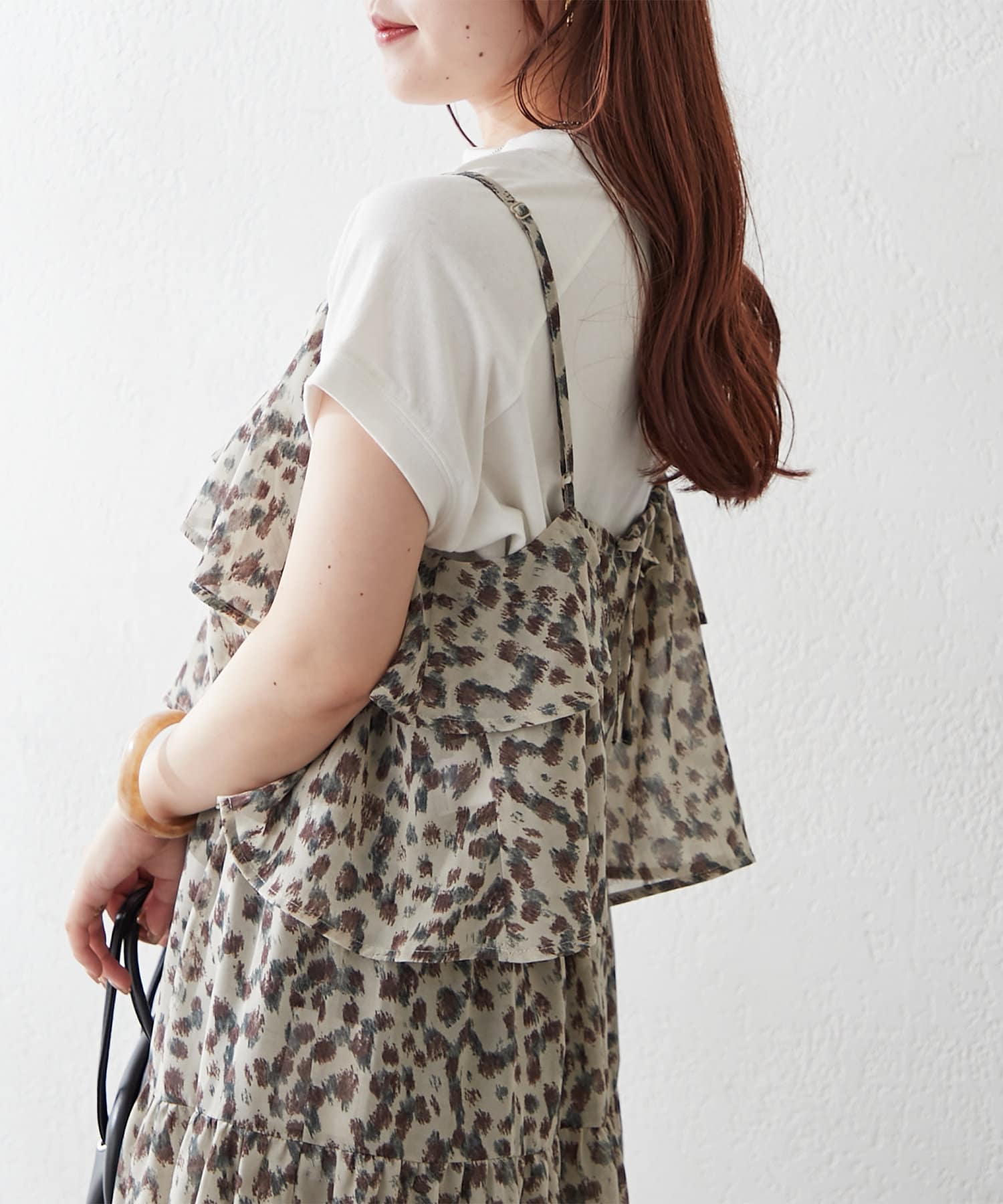 ・【品番:5042010070/ヒョウ柄ティアードスカート】と合わせることでワンピース風に着用もできます。