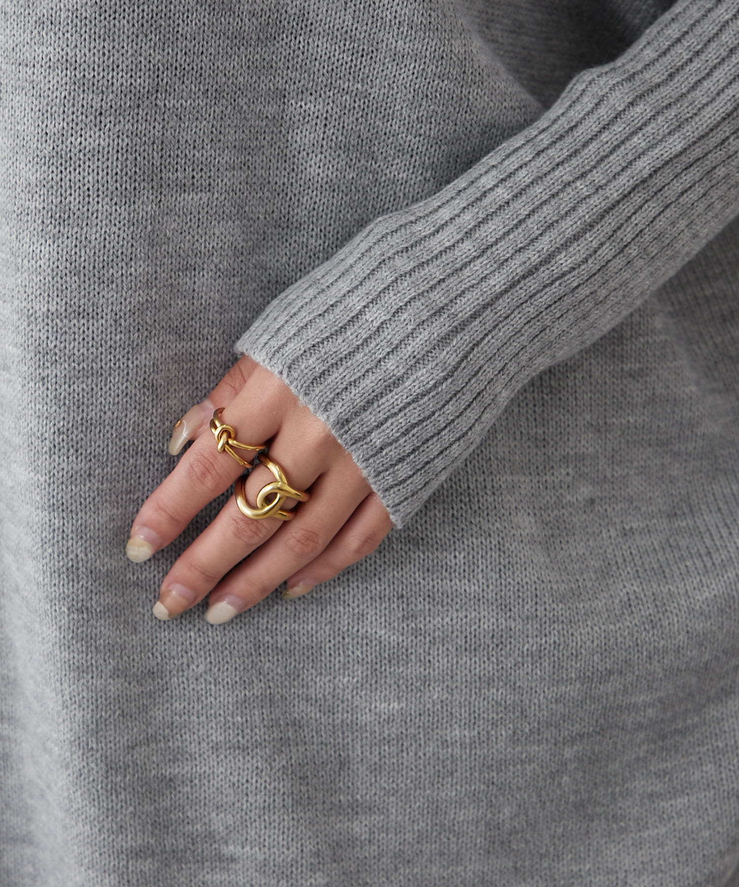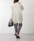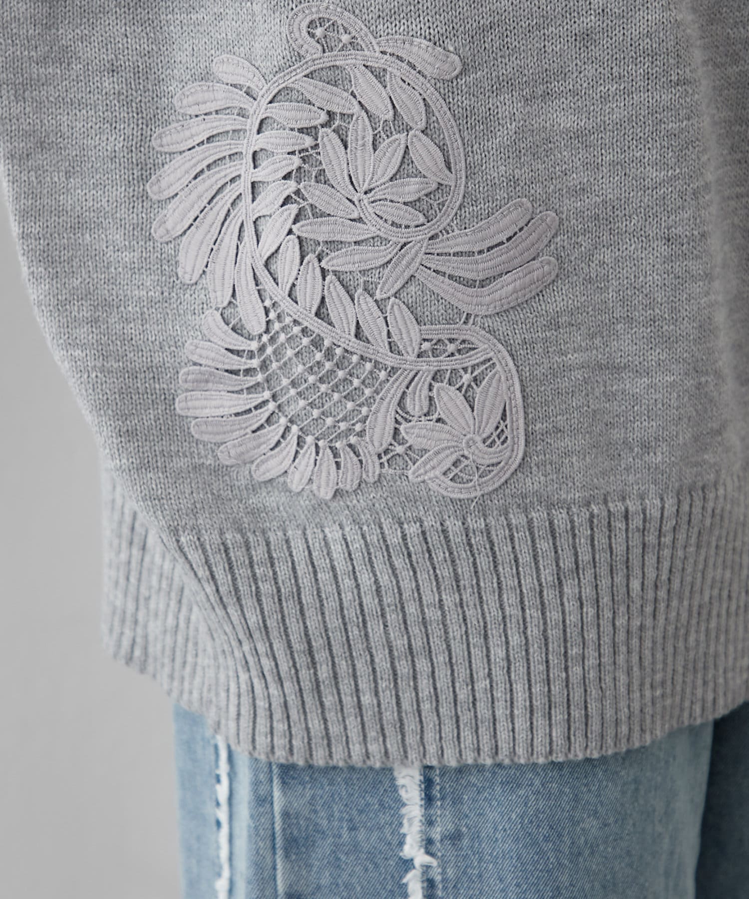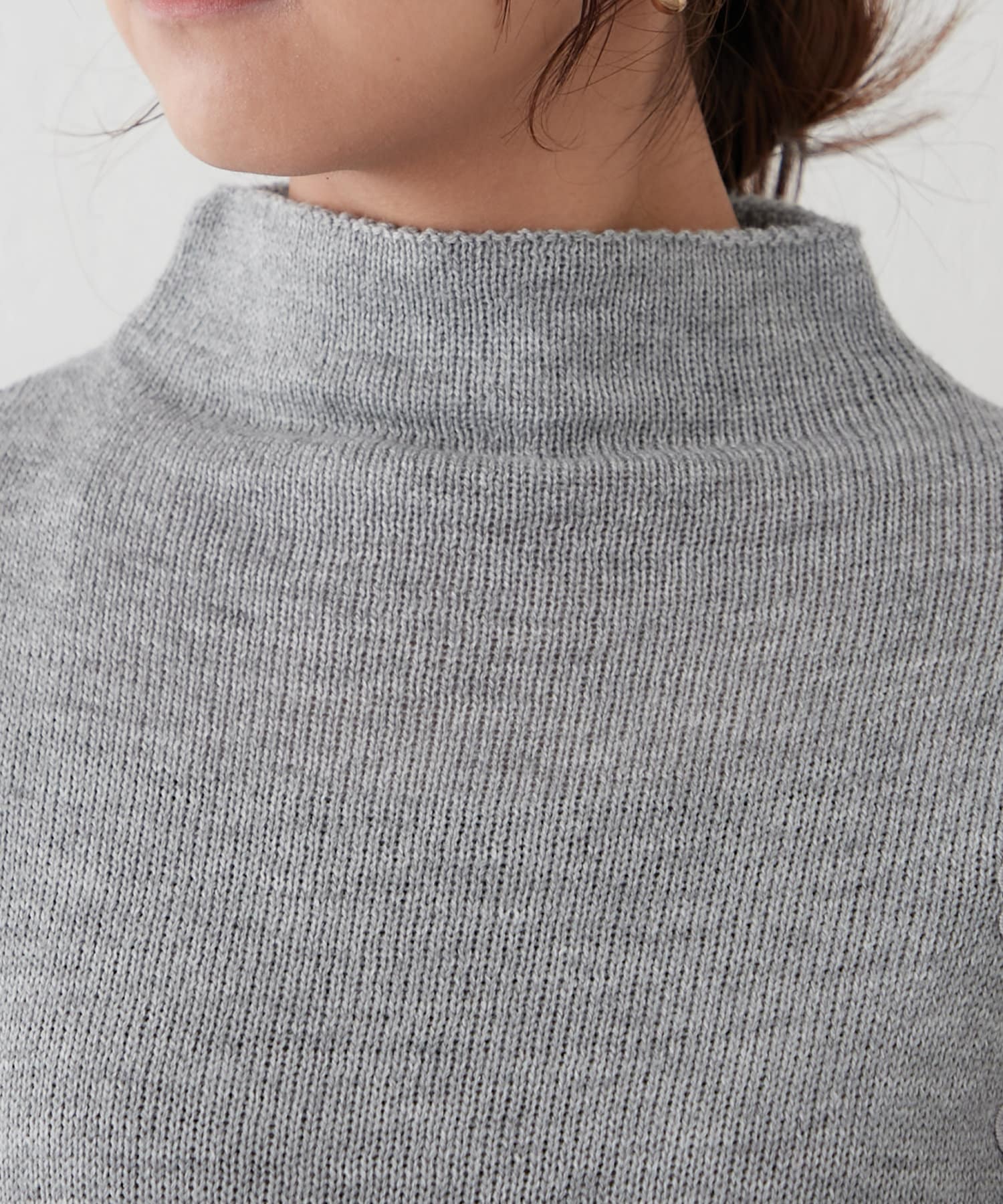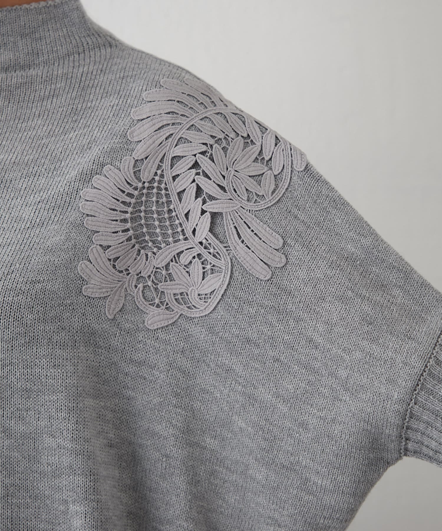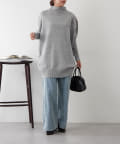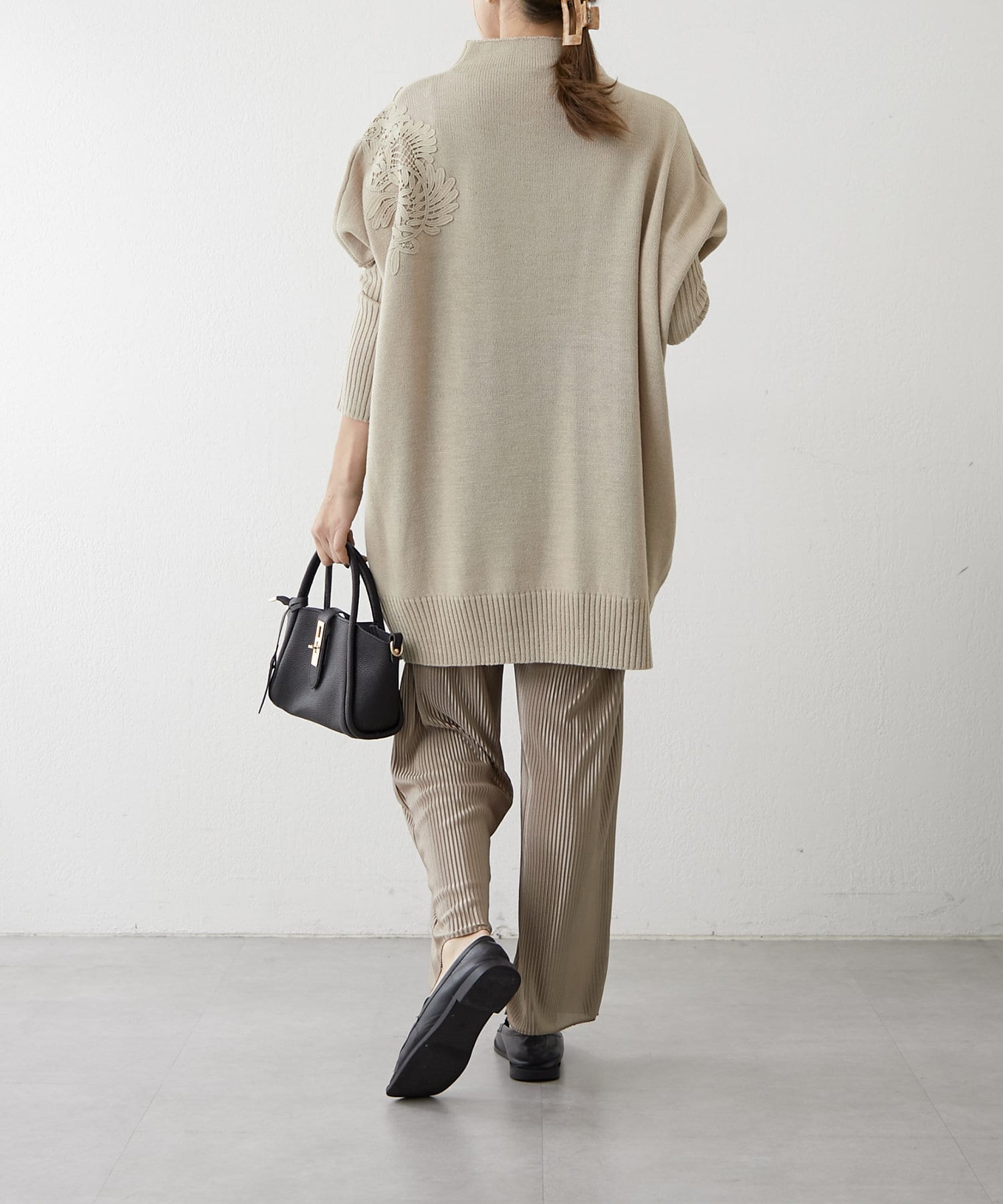・ハイネックデザインのチュニックにレースをあしらったきれいめニット。