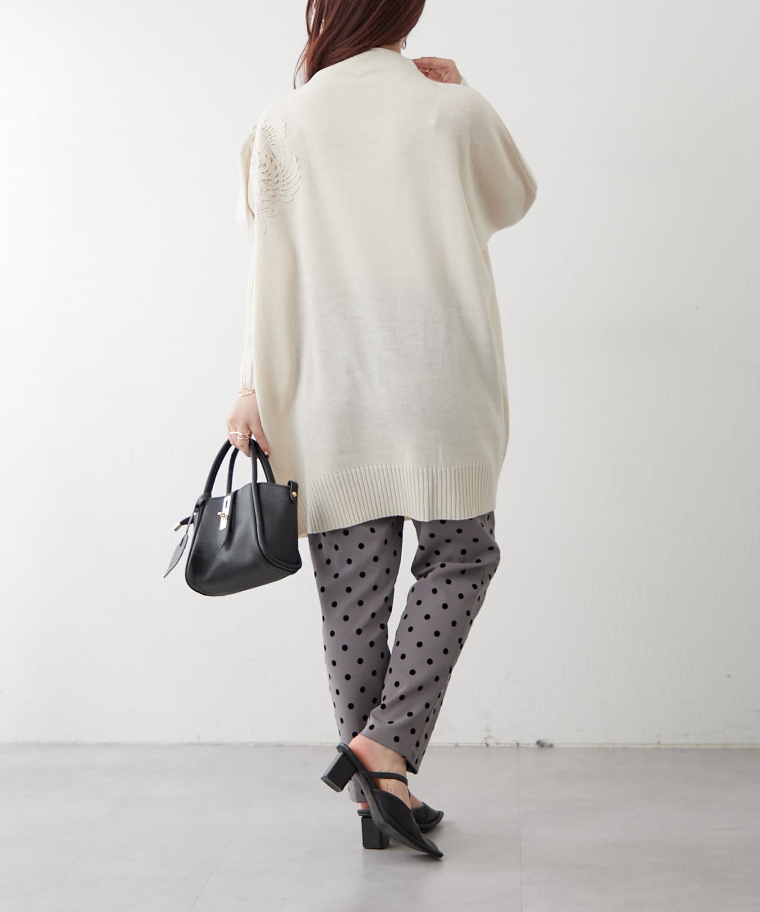 ・すっきりとした細身のパンツを合わせればオトナ上品コーデの完成。