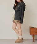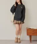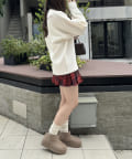 ・チェックのプリーツのミニスカート、ロングブーツで秋冬らしさを演出するのがオススメ