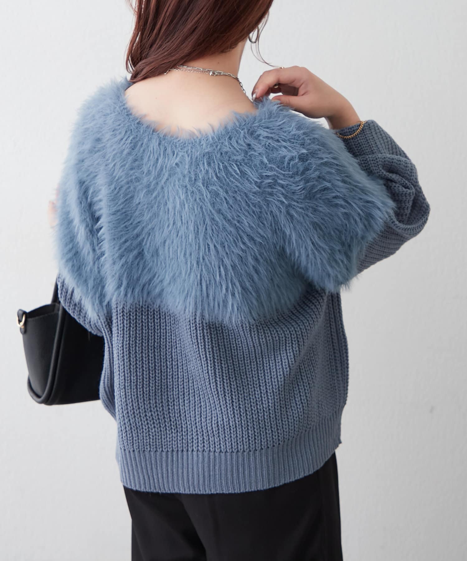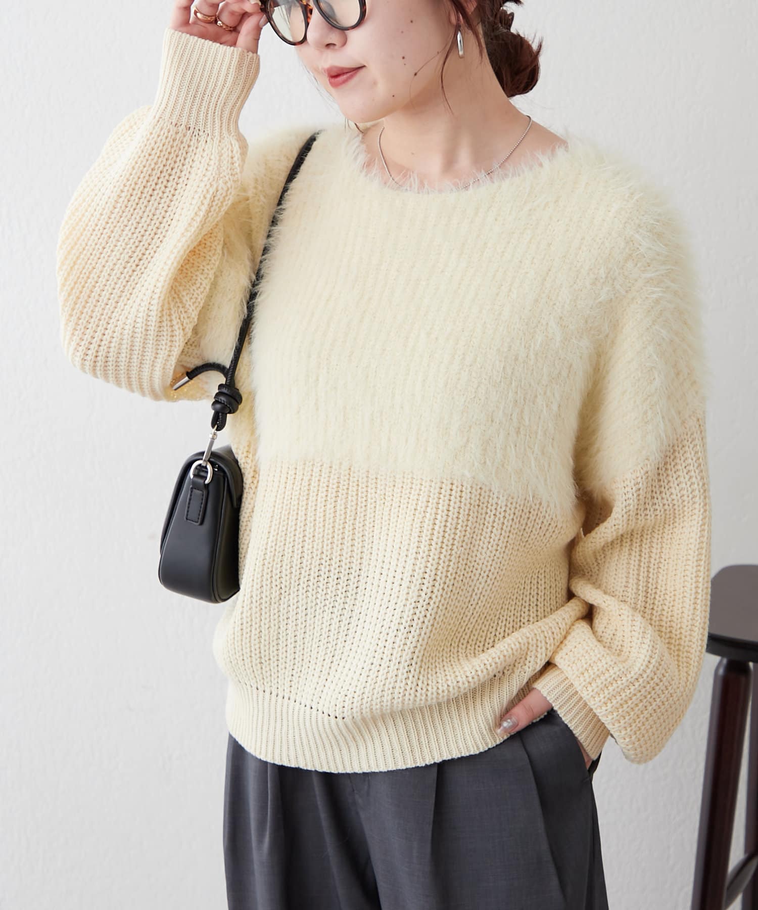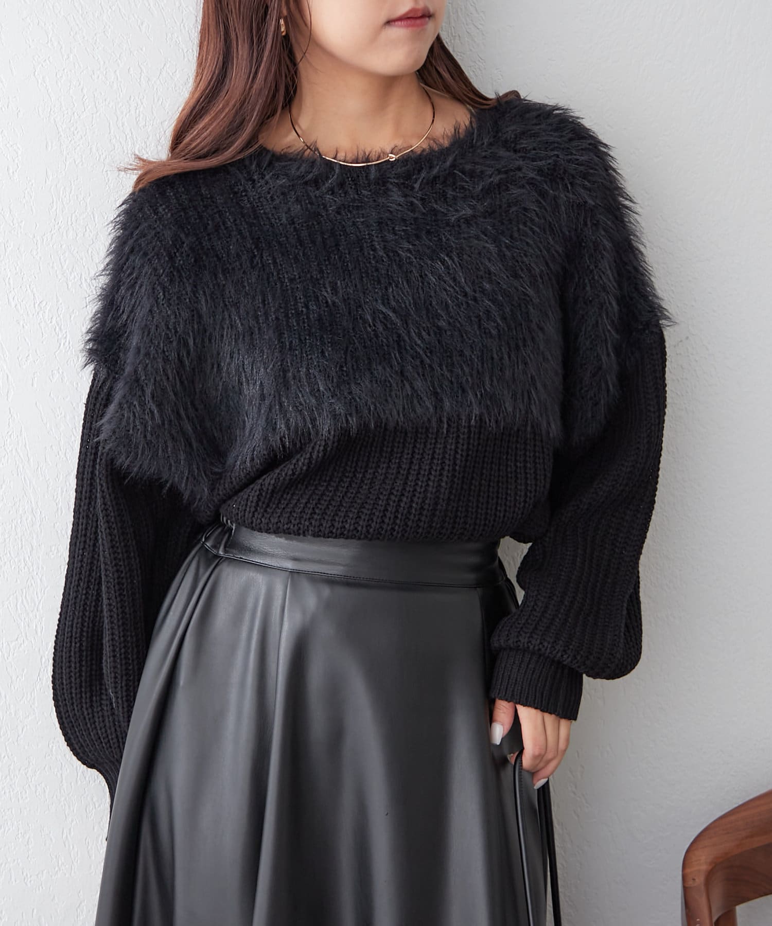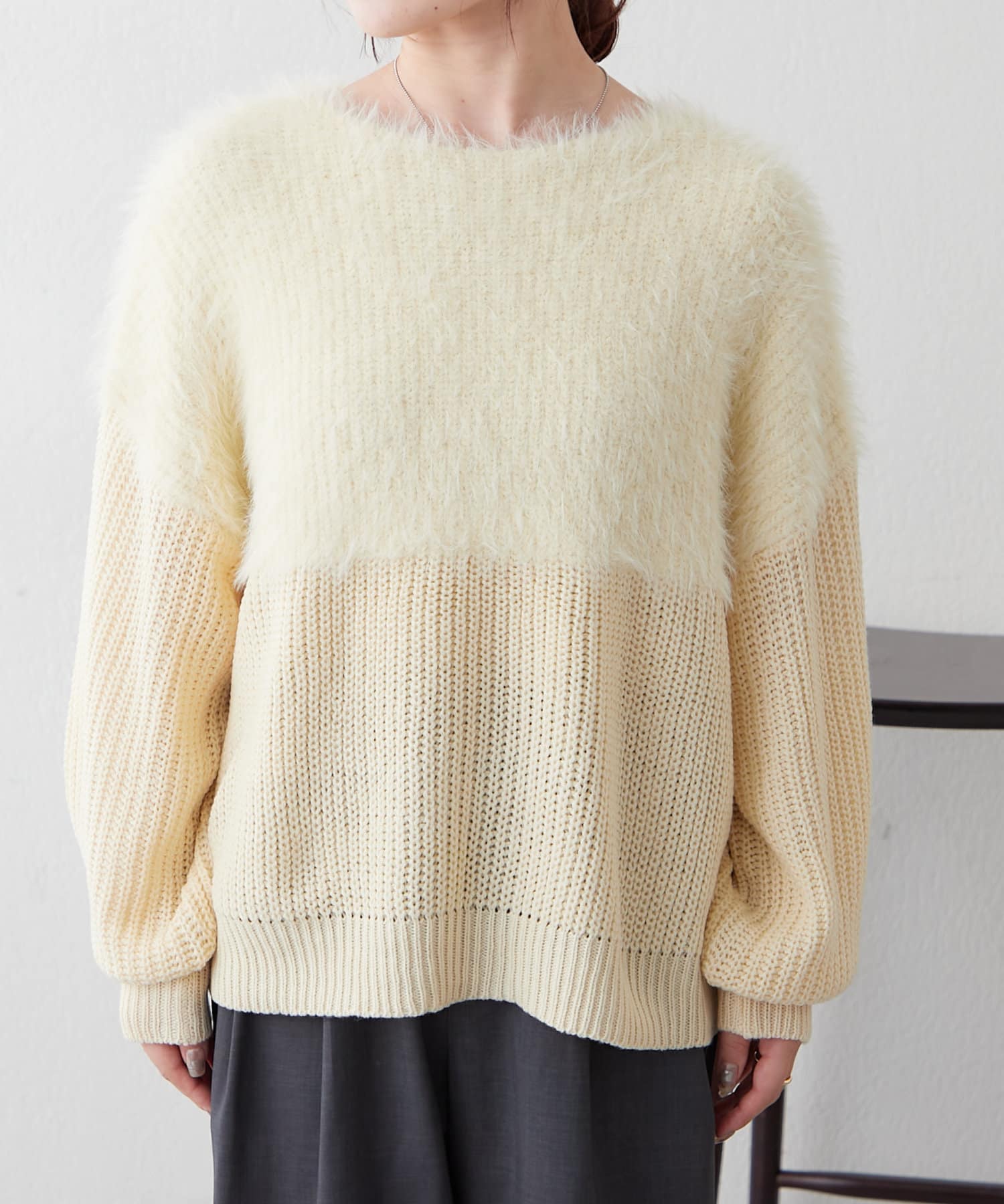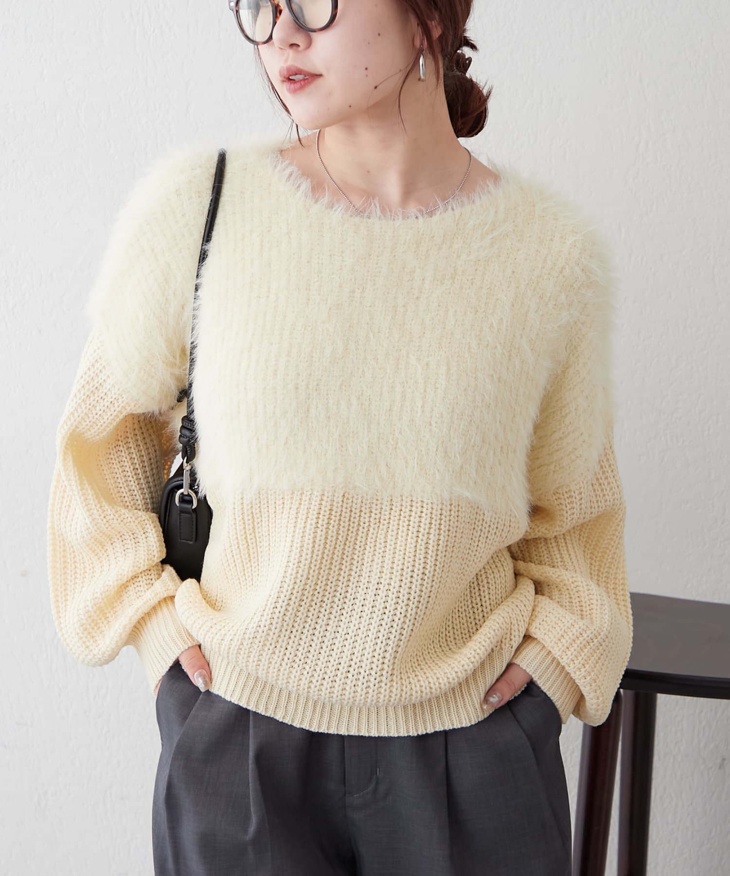 ・ふわふわっとしたシャギーと畦編みニットの切替がポイント