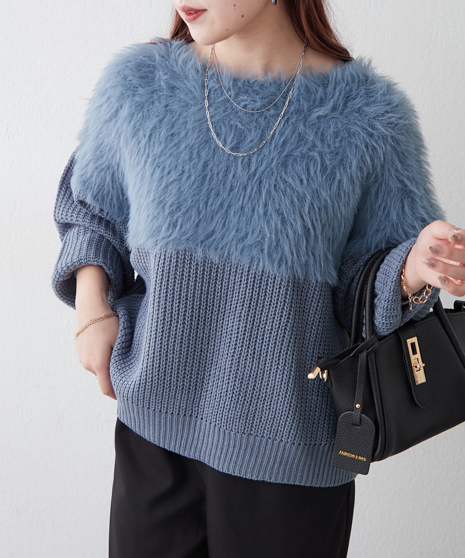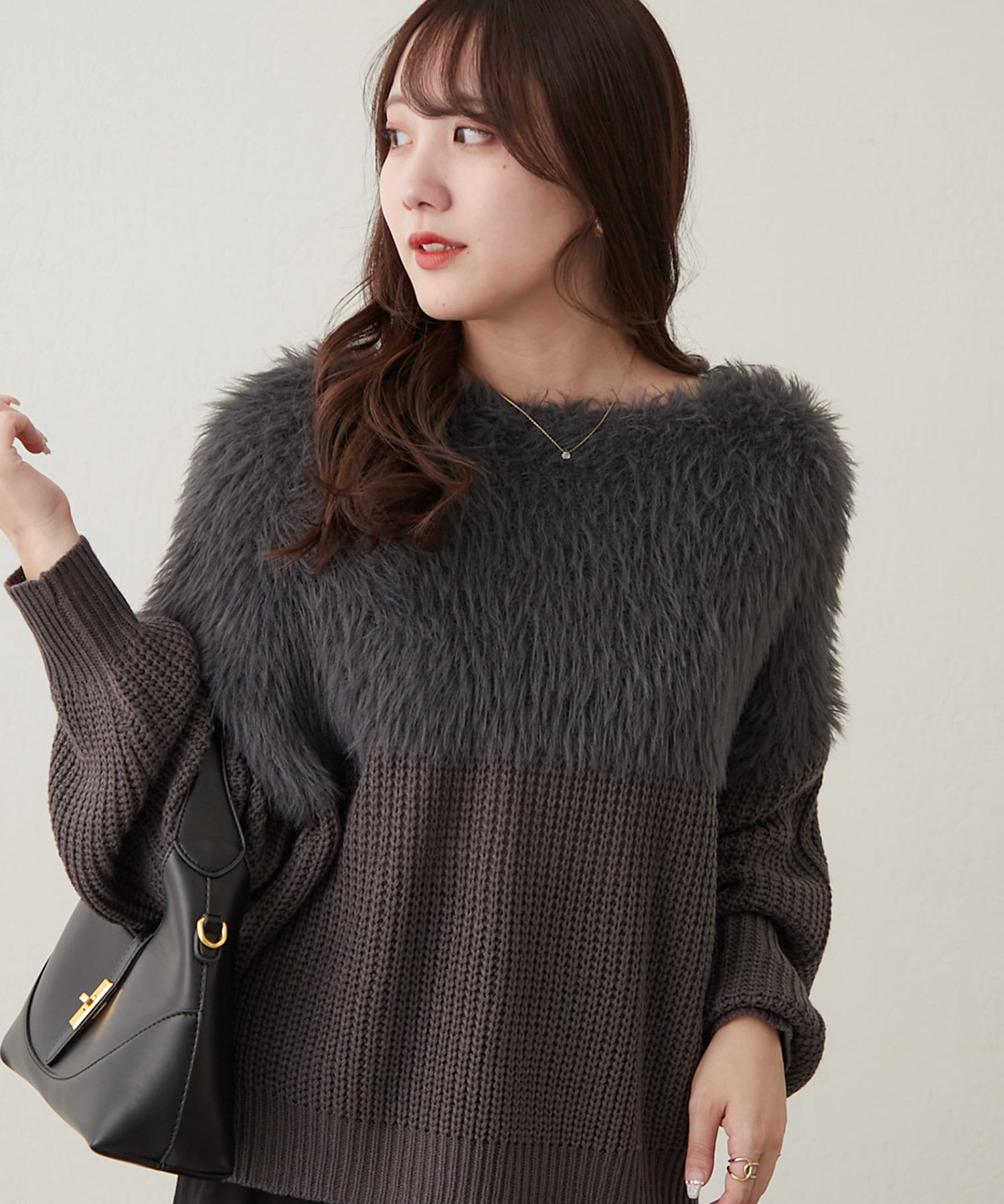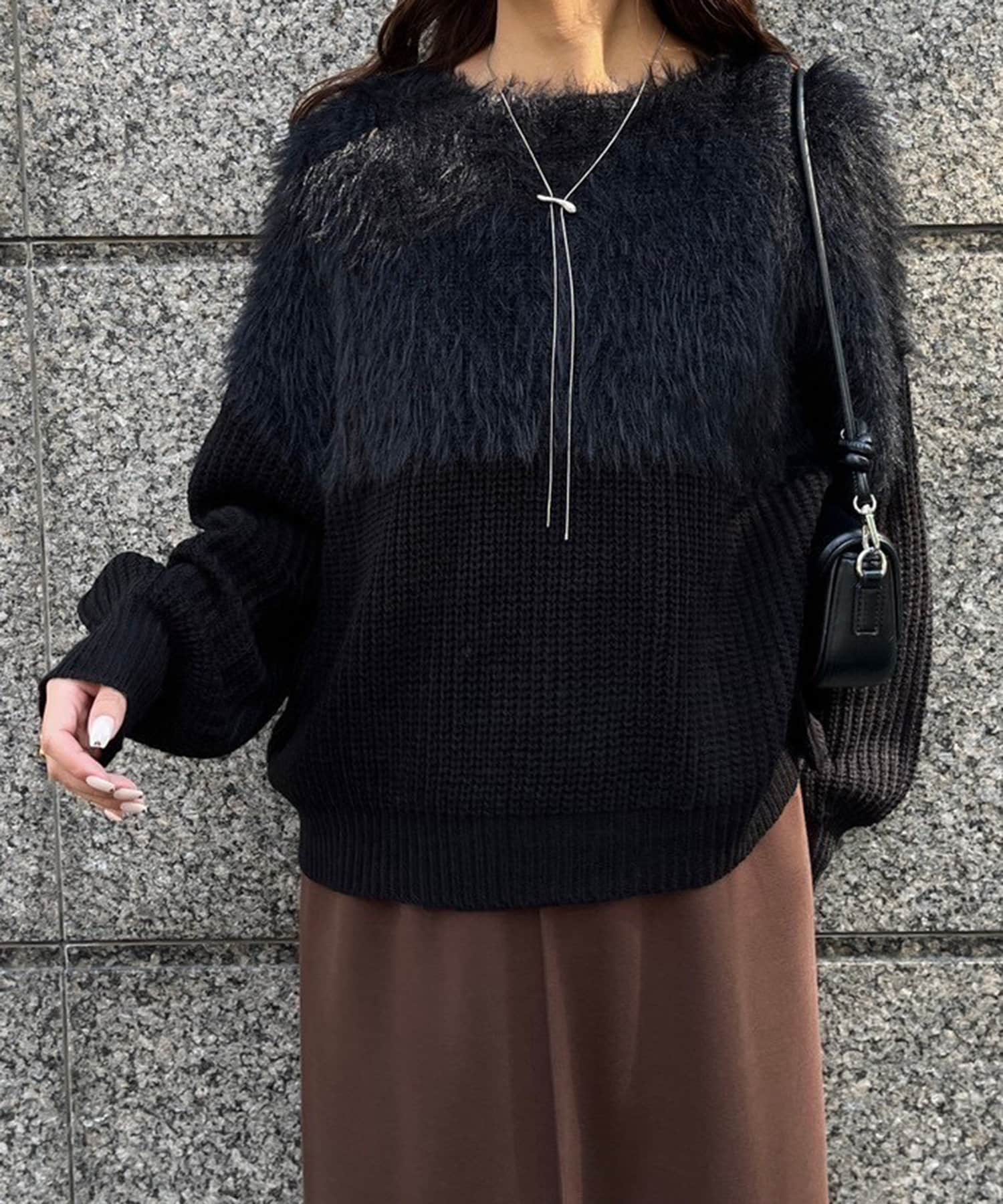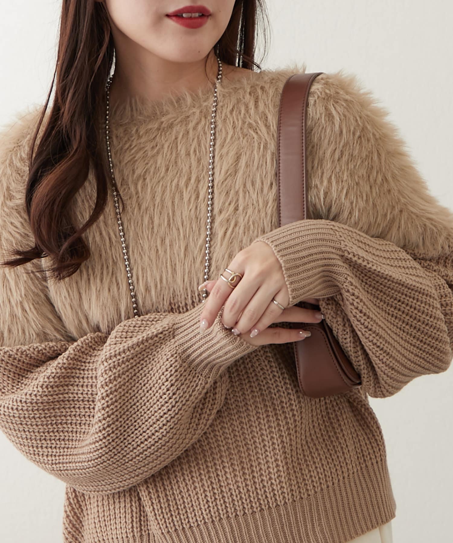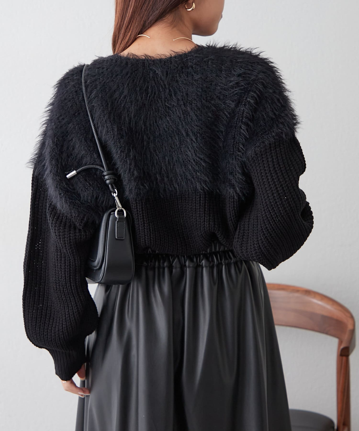 ・ふわふわっとしたシャギーと畦編みニットの切替がポイント