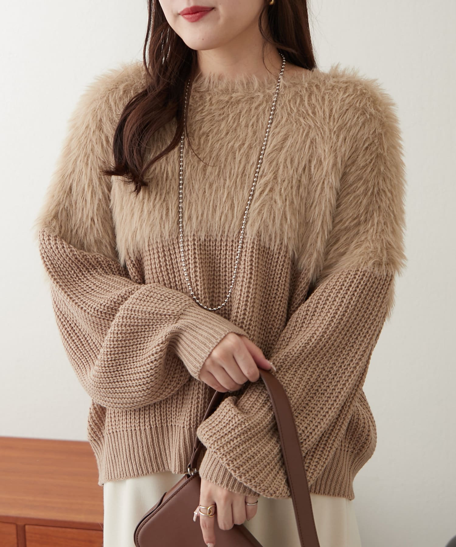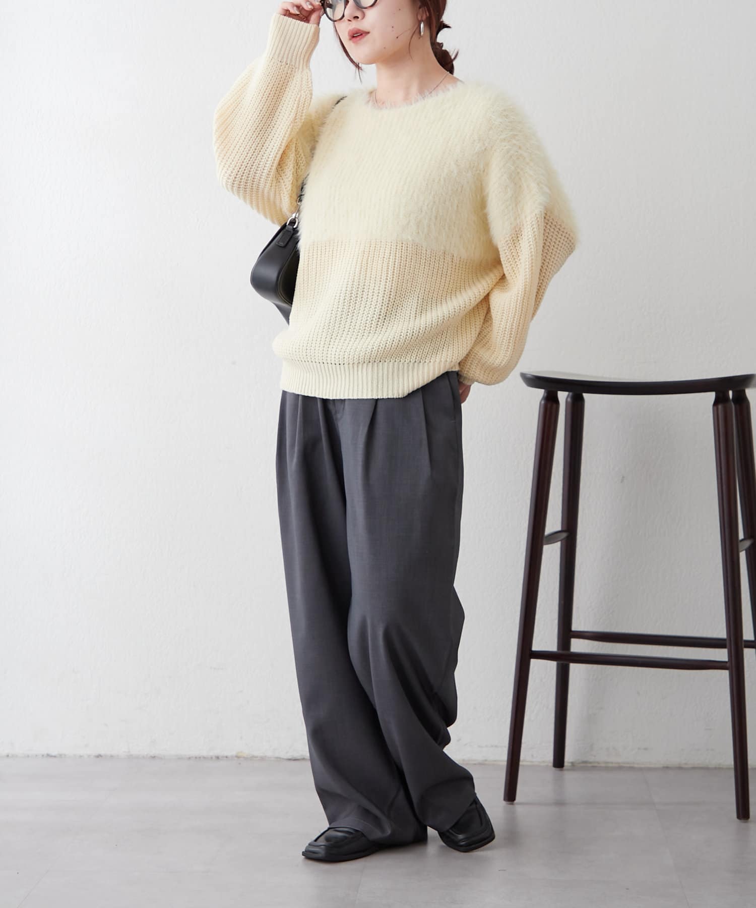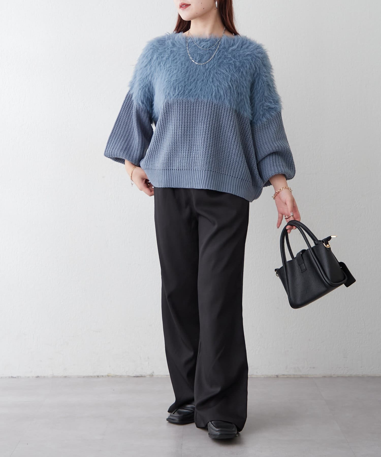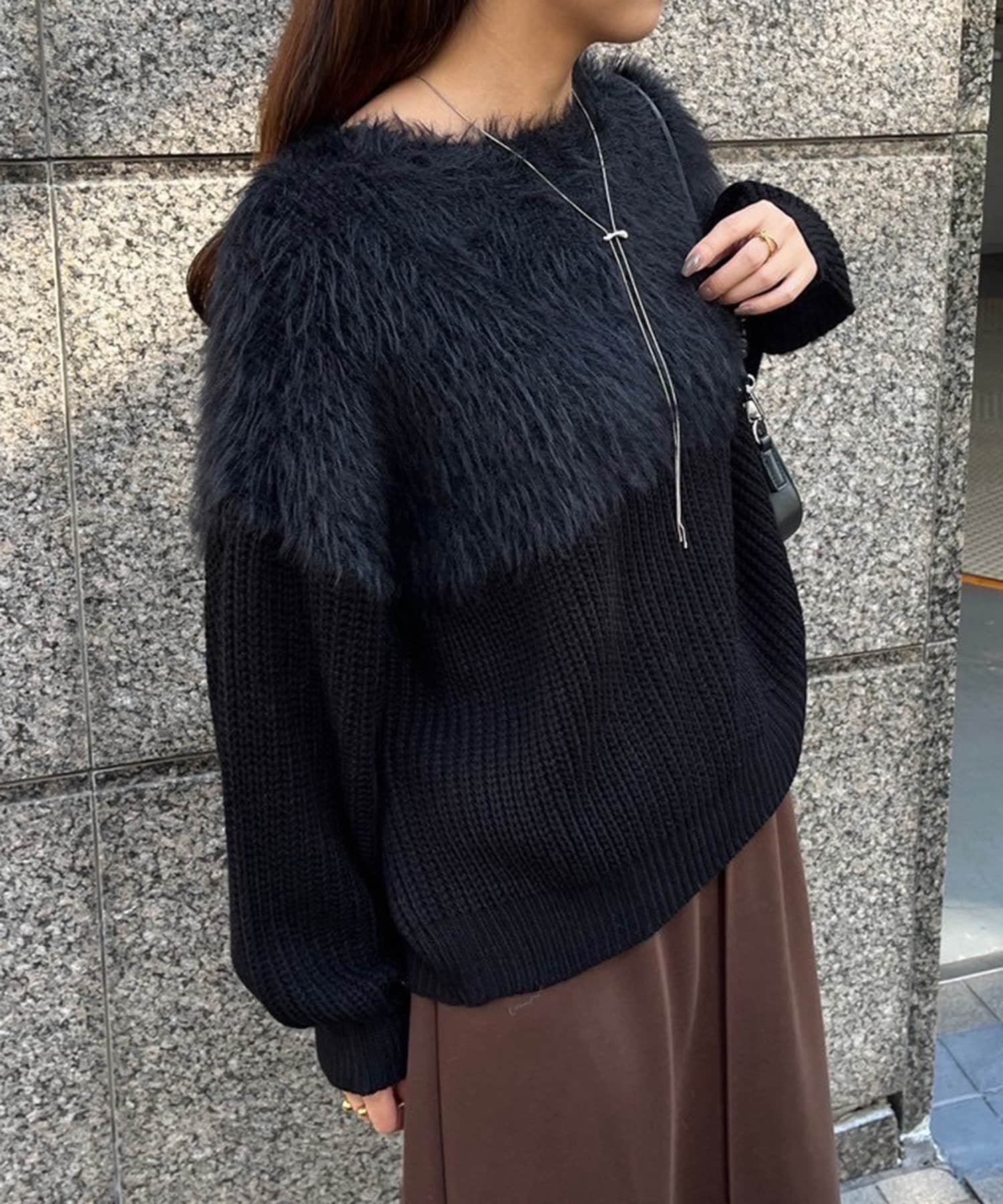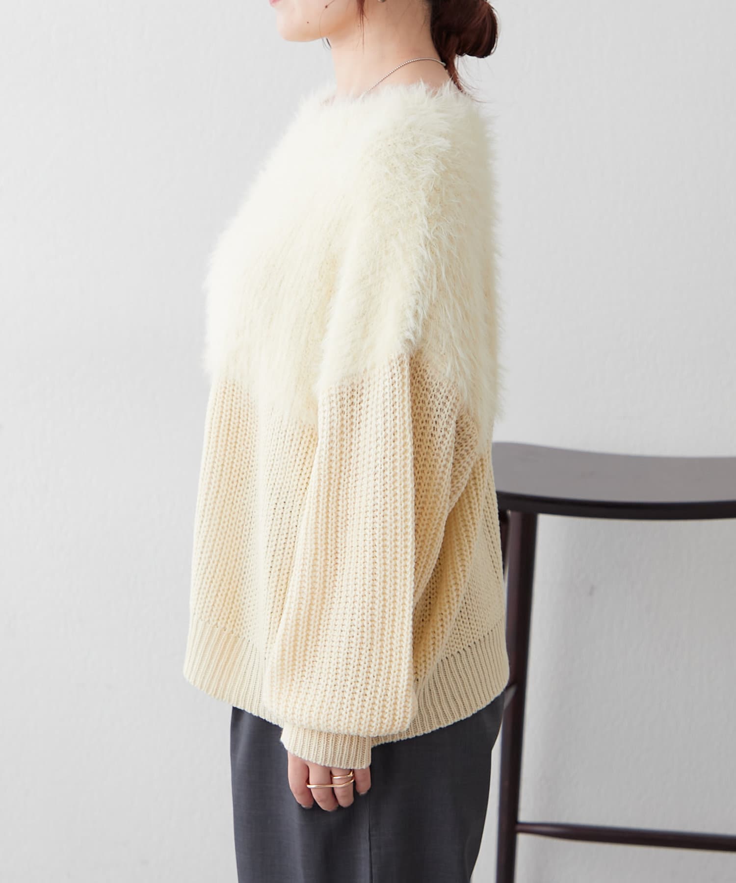 ・ふわふわっとしたシャギーと畦編みニットの切替がポイント