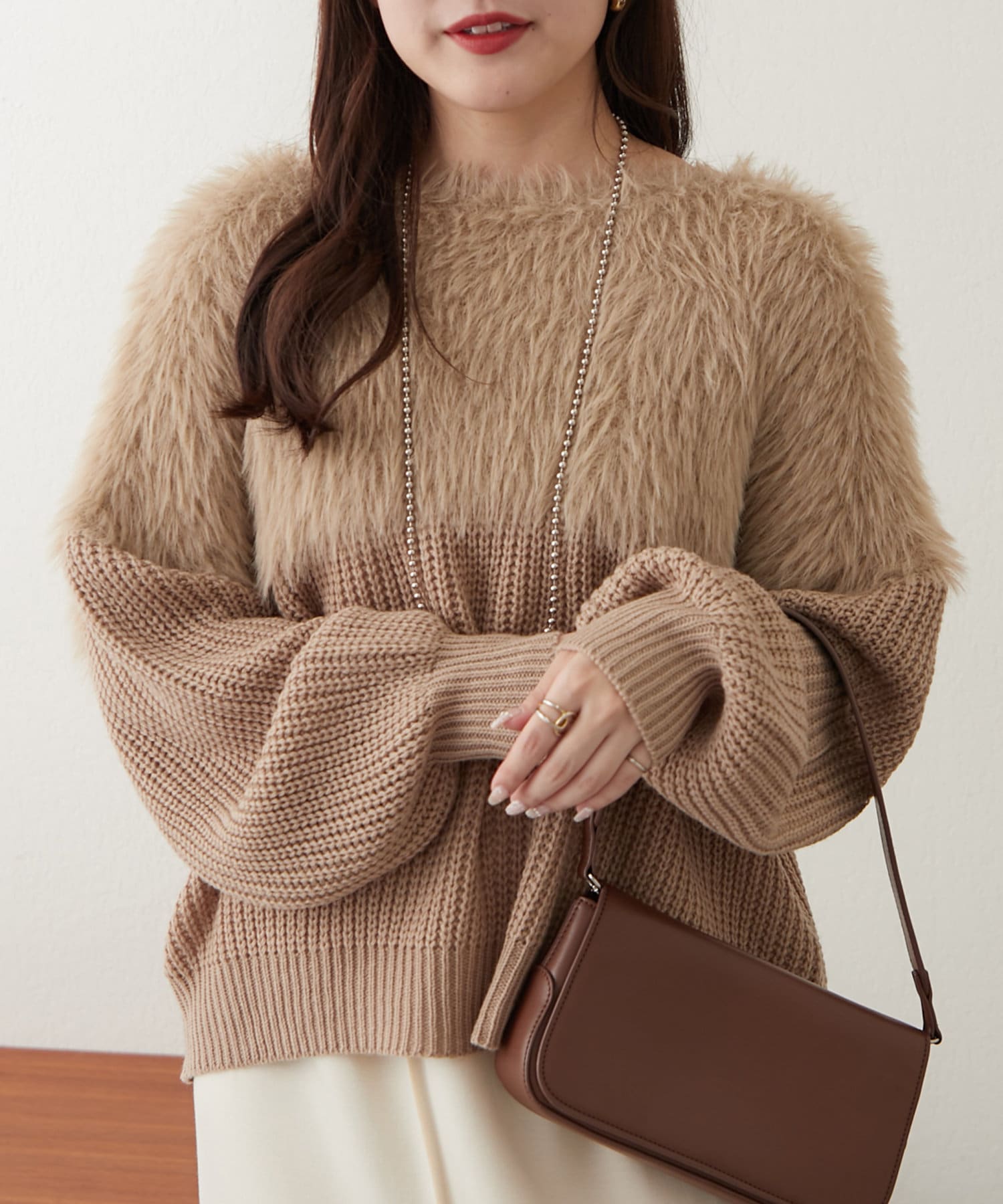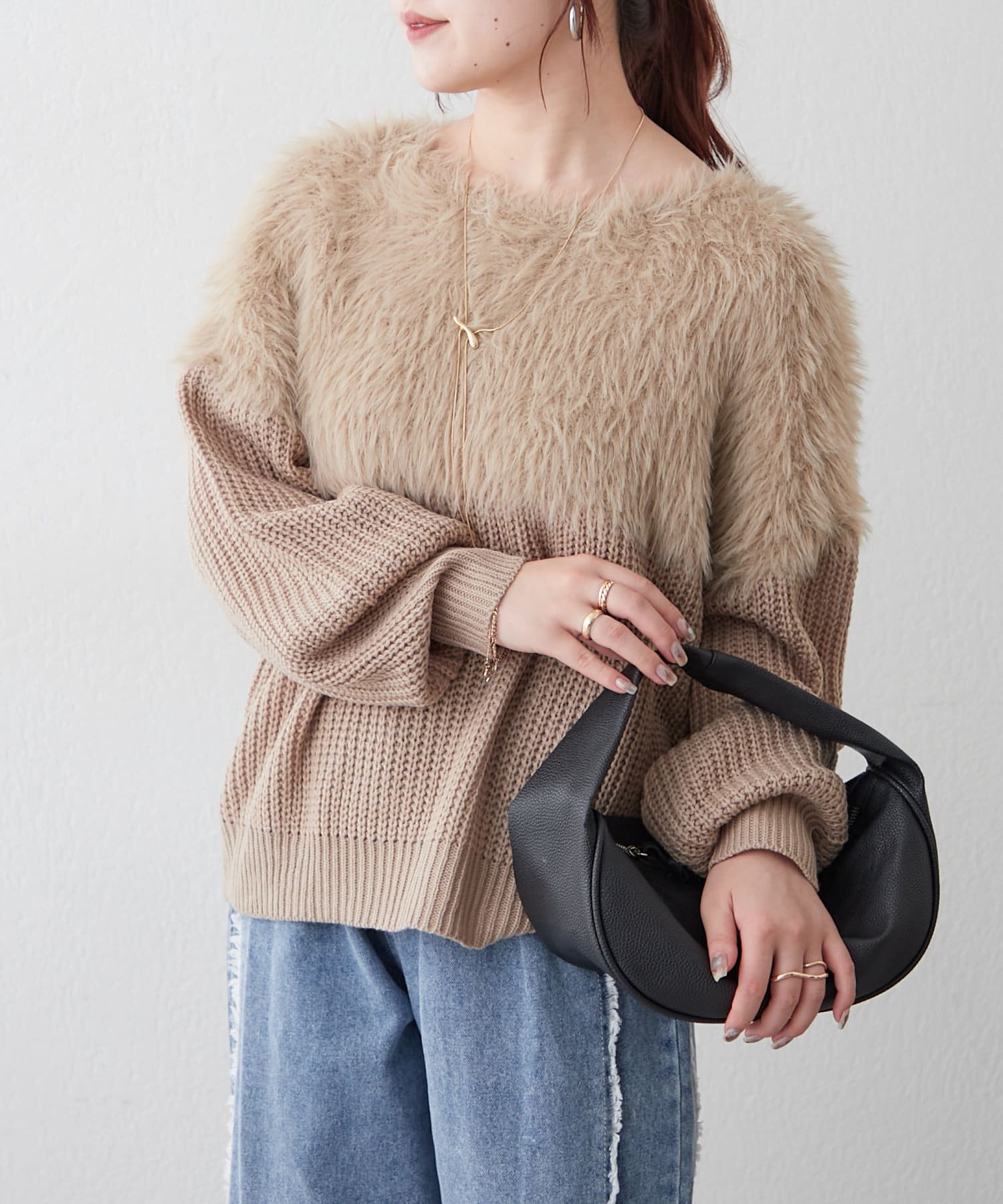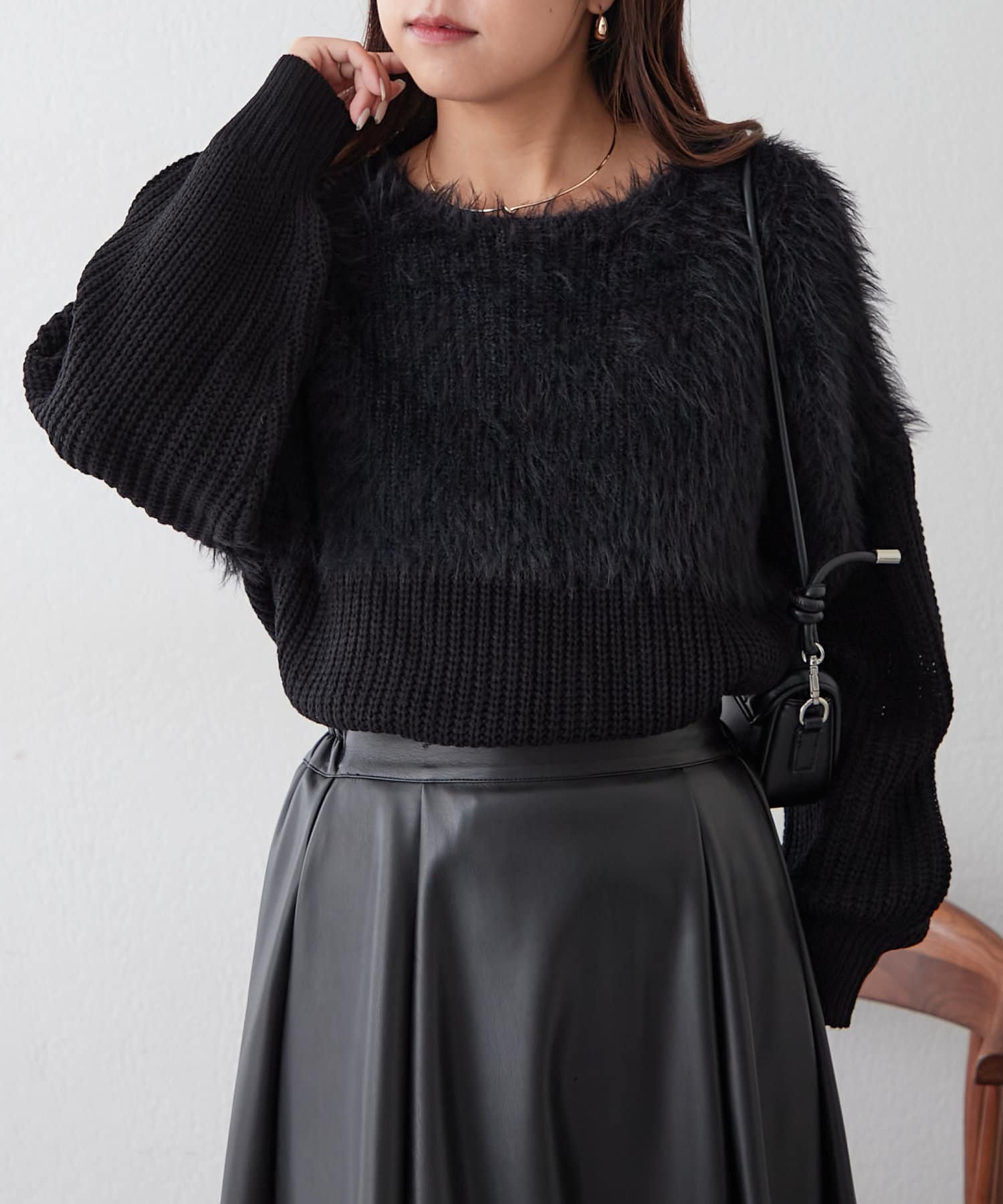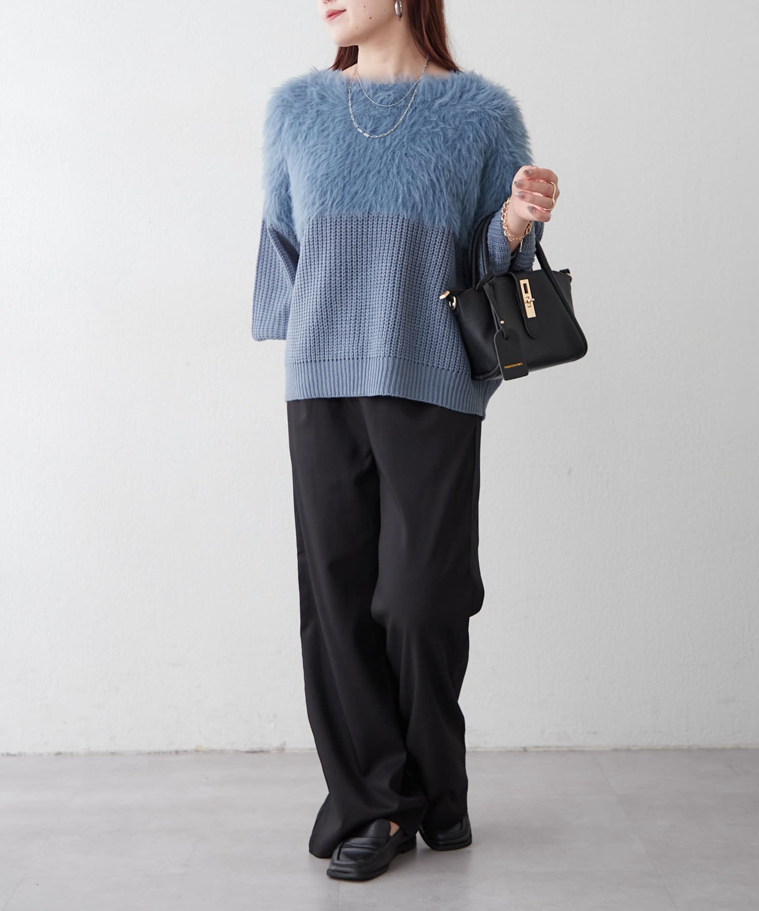 ・ふわふわっとしたシャギーと畦編みニットの切替がポイント