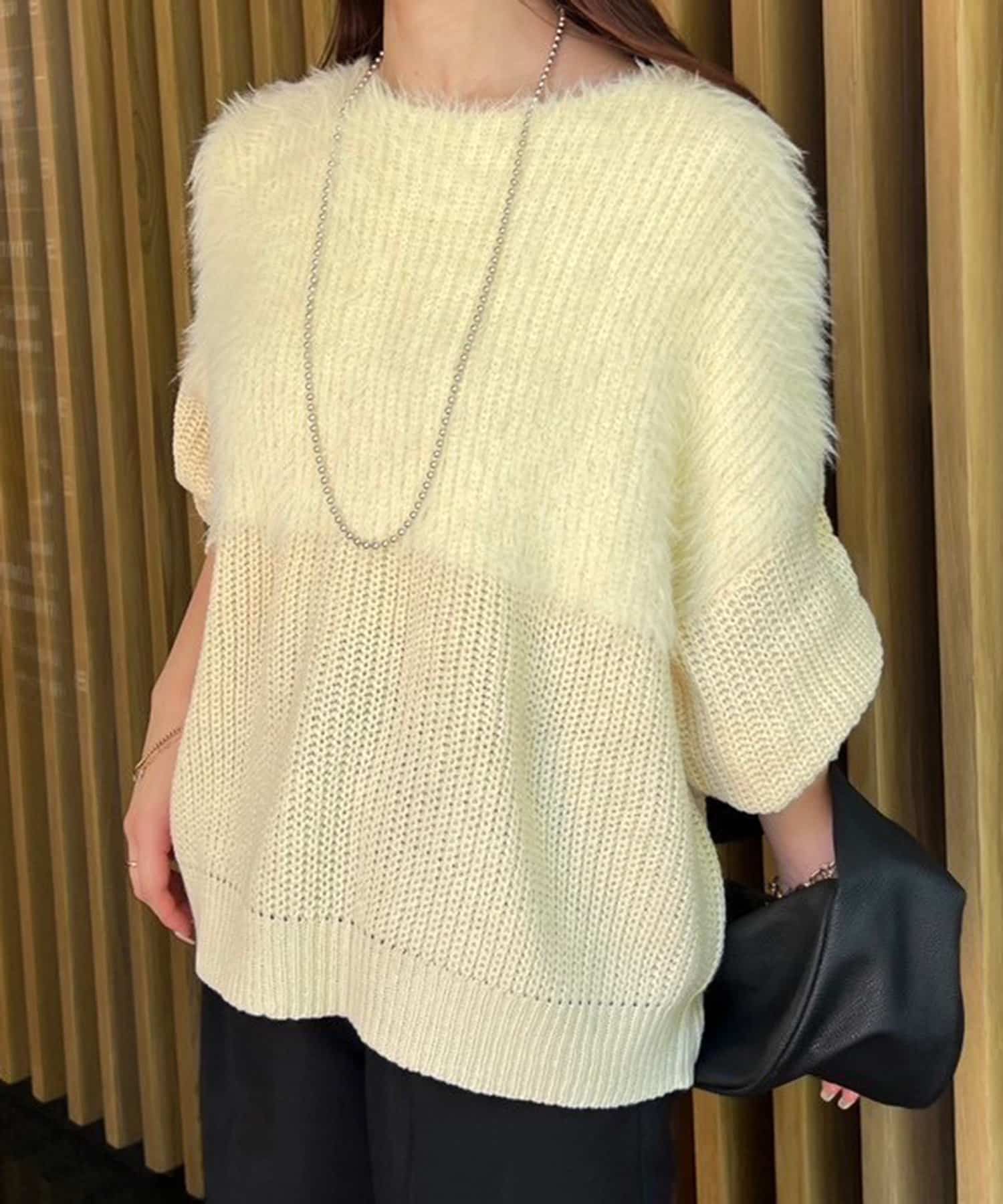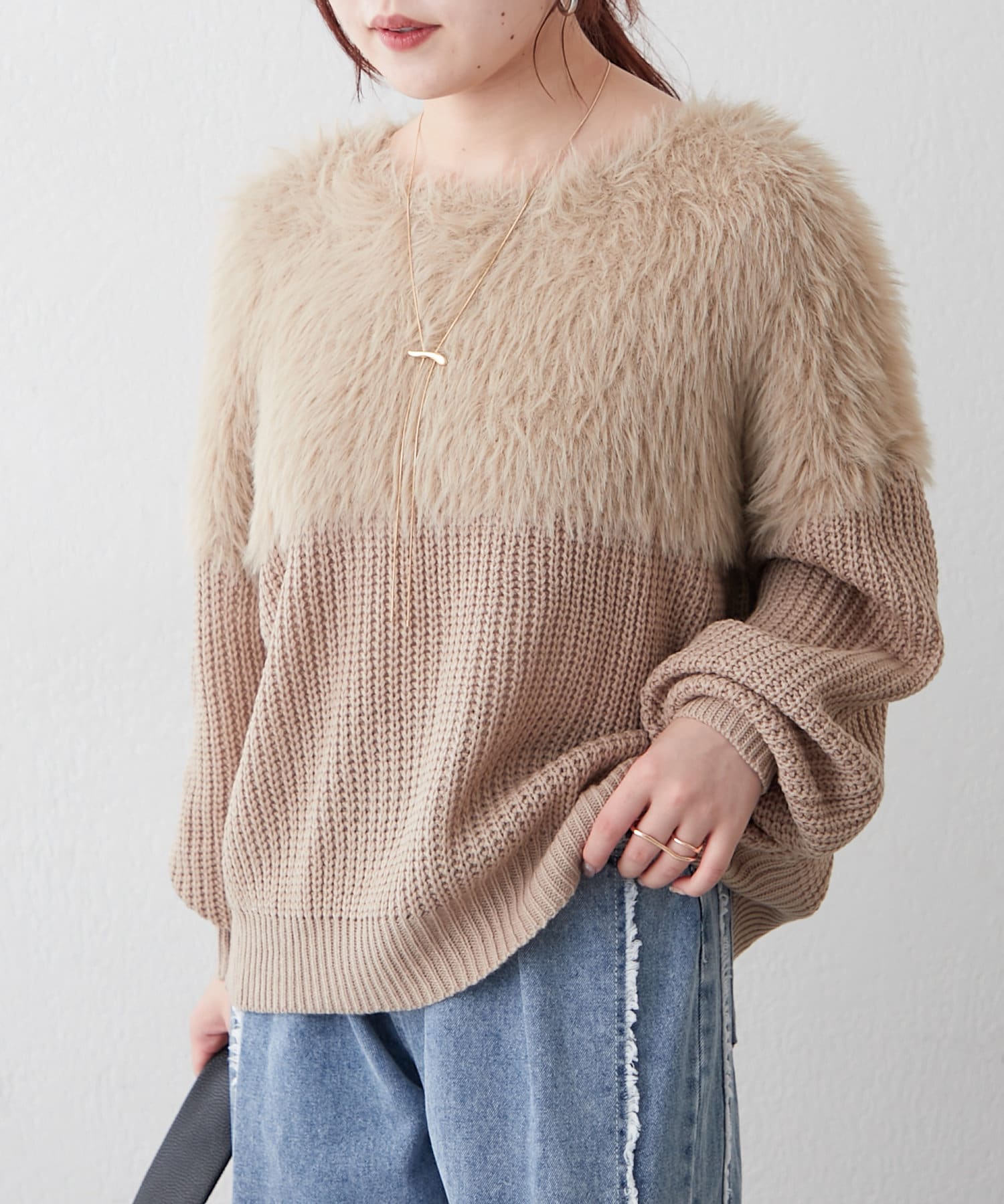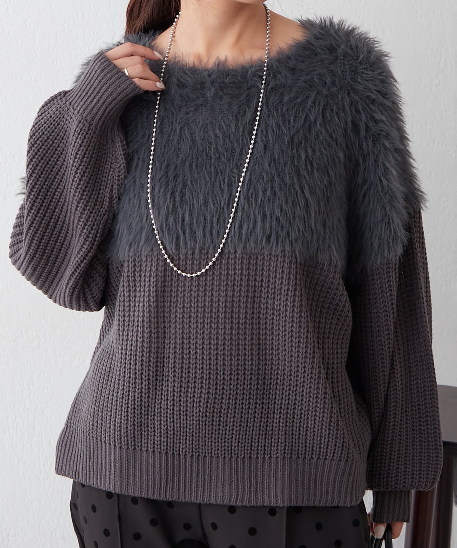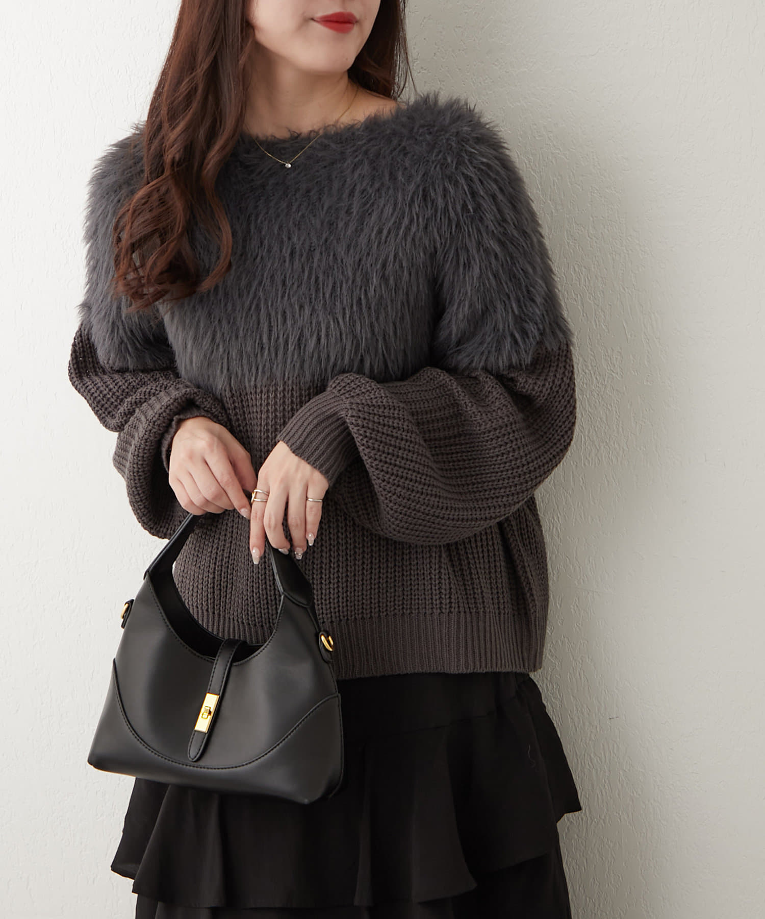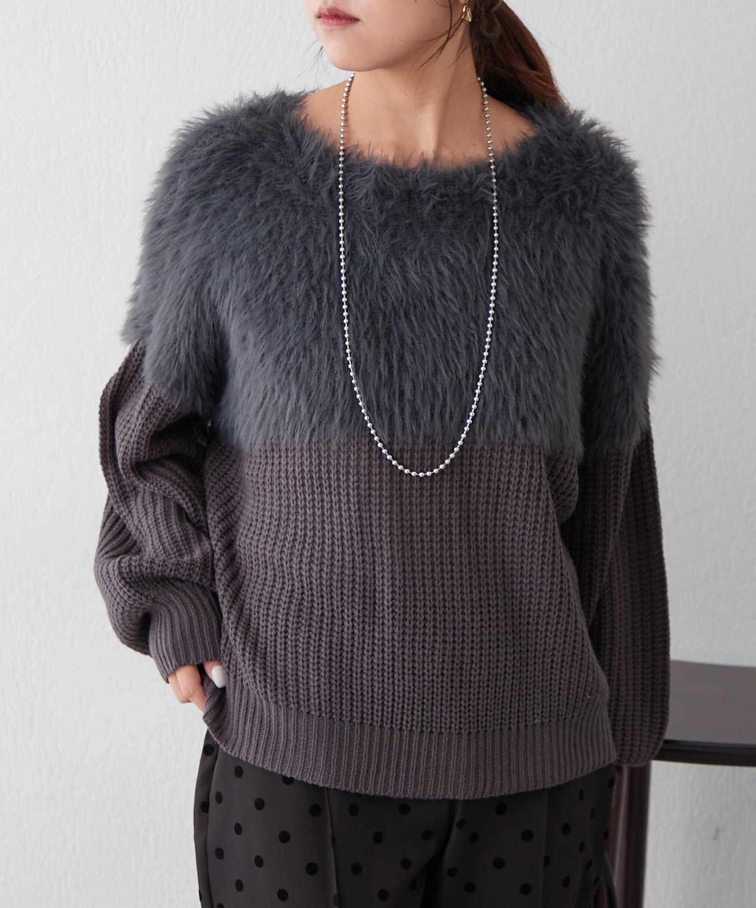 ・ふわふわっとしたシャギーと畦編みニットの切替がポイント