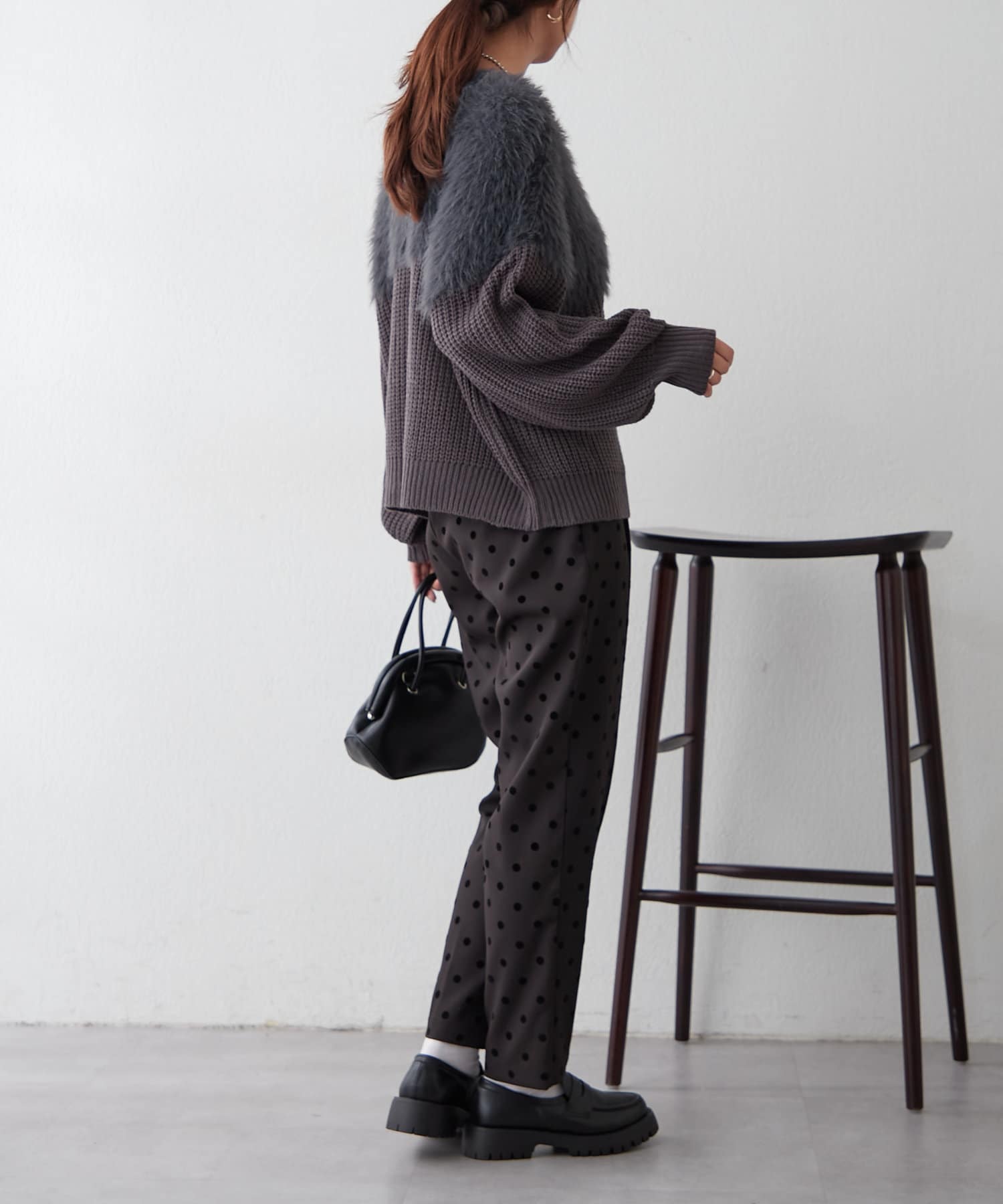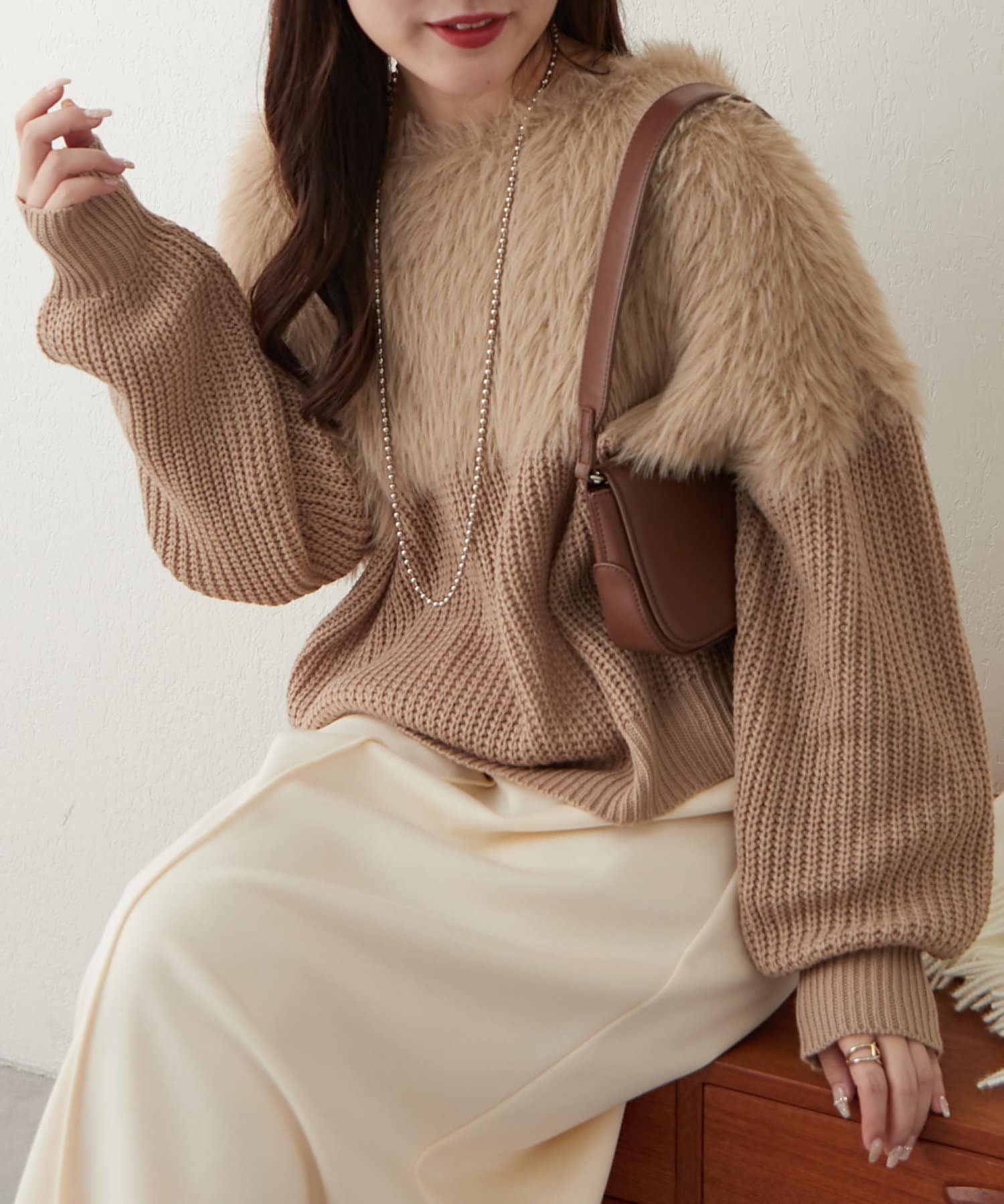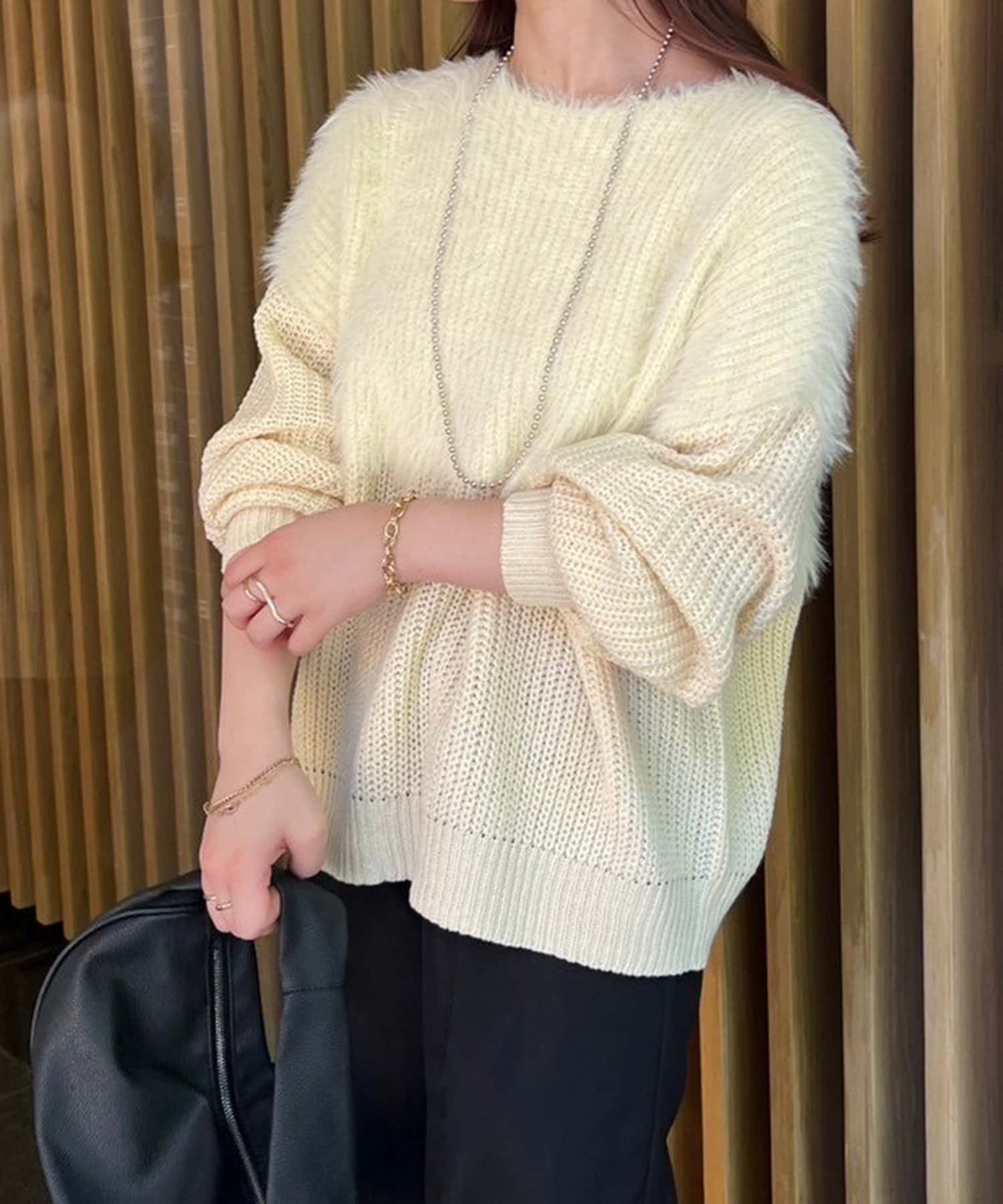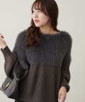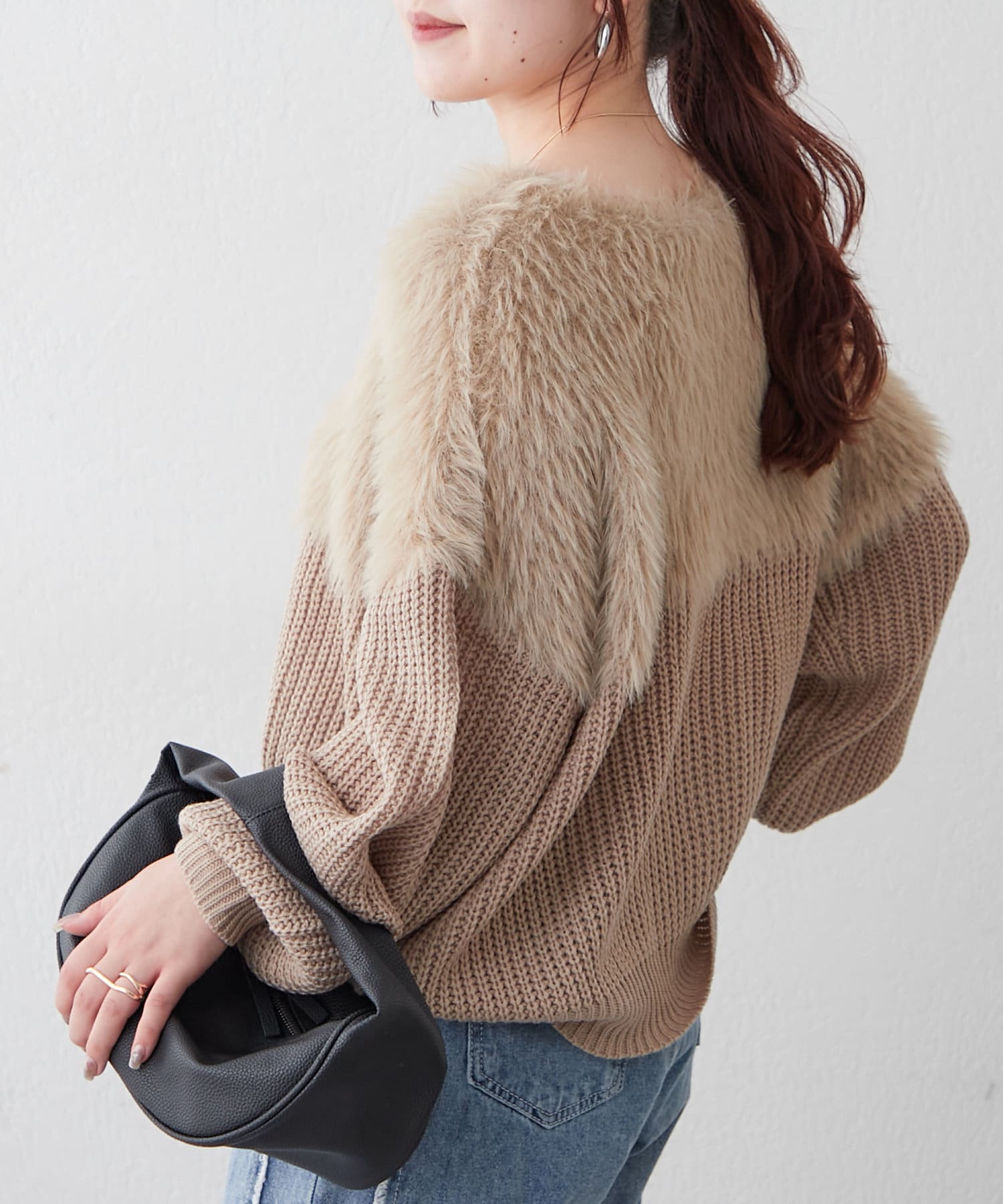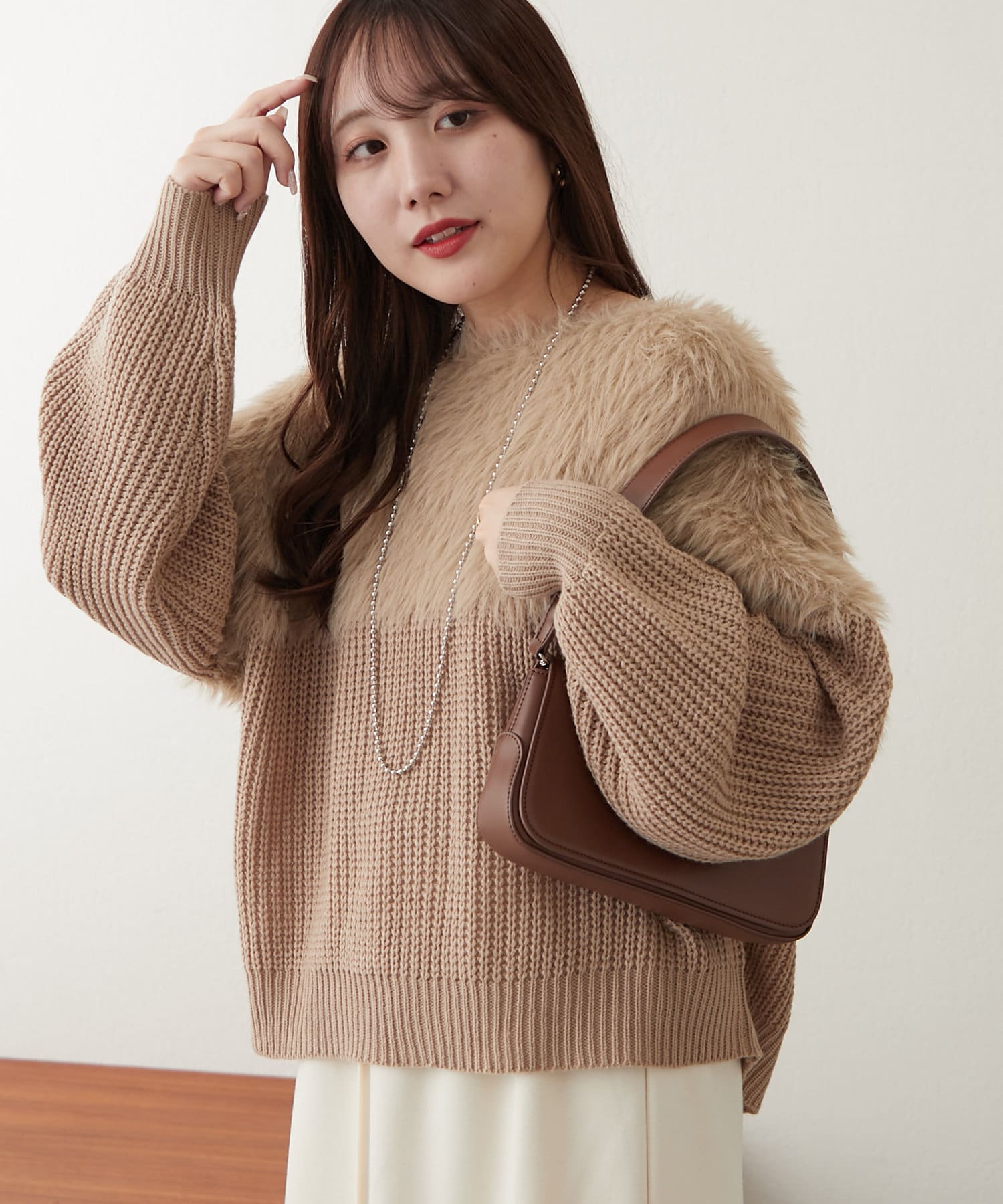 ・ふわふわっとしたシャギーと畦編みニットの切替がポイント