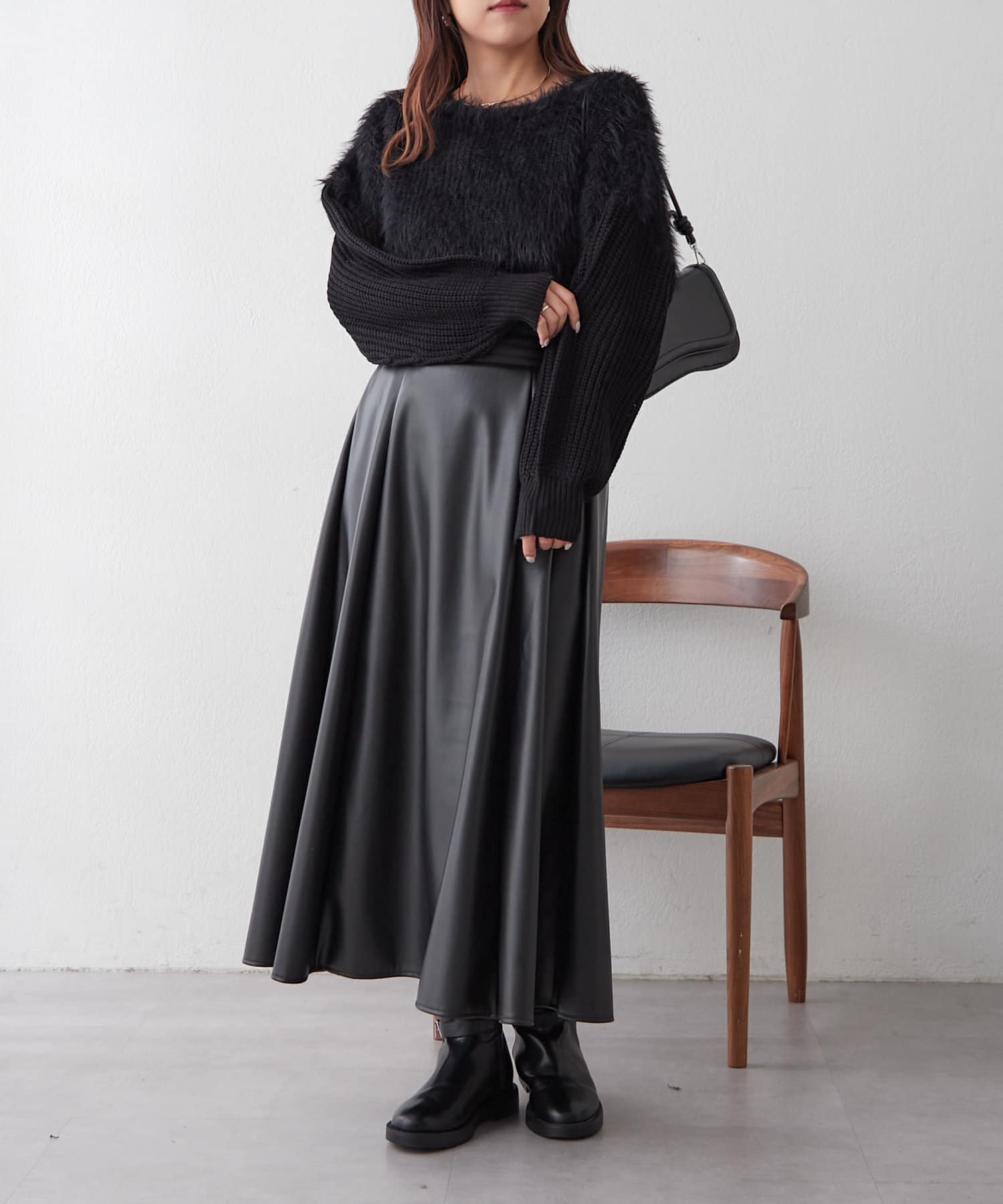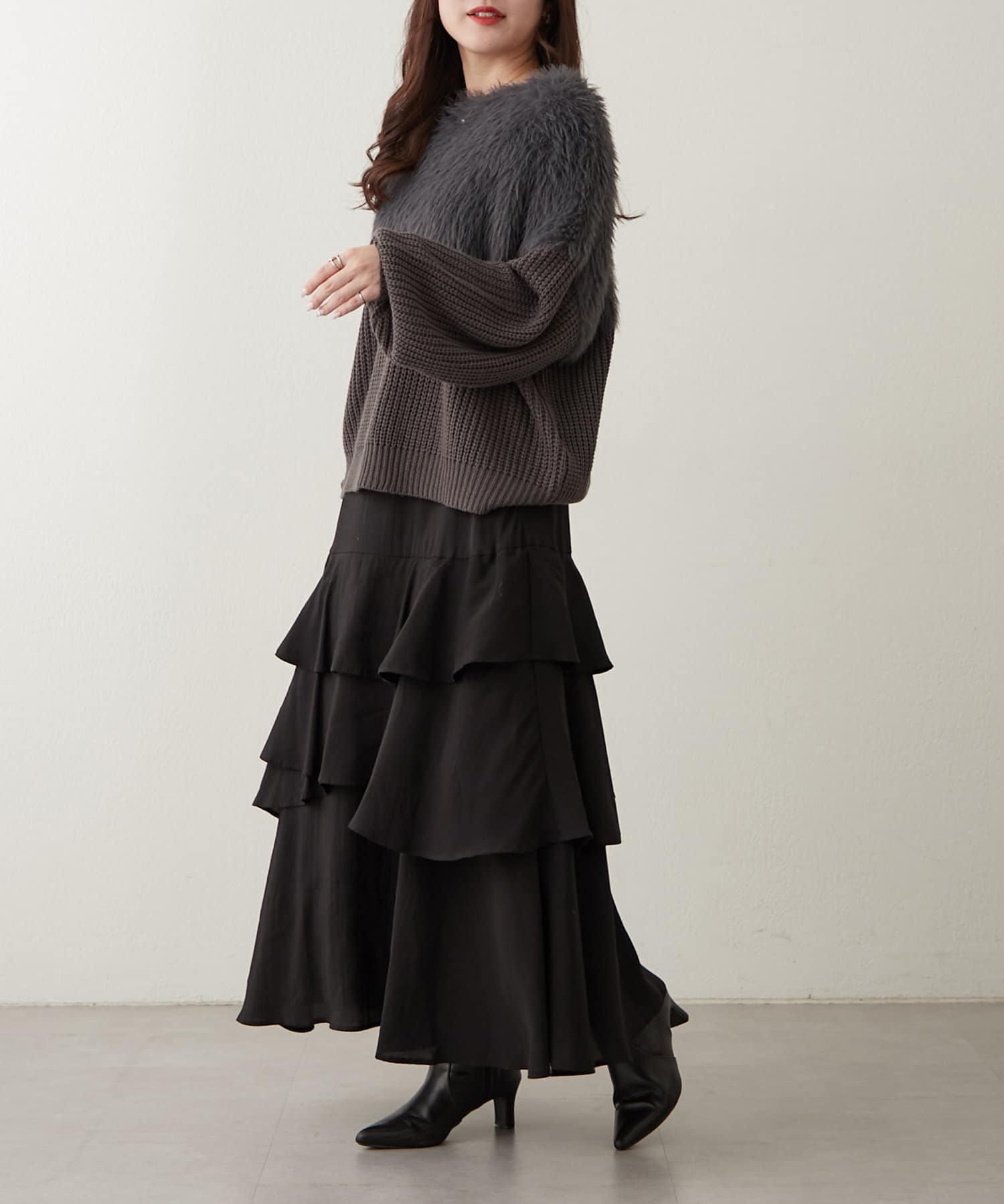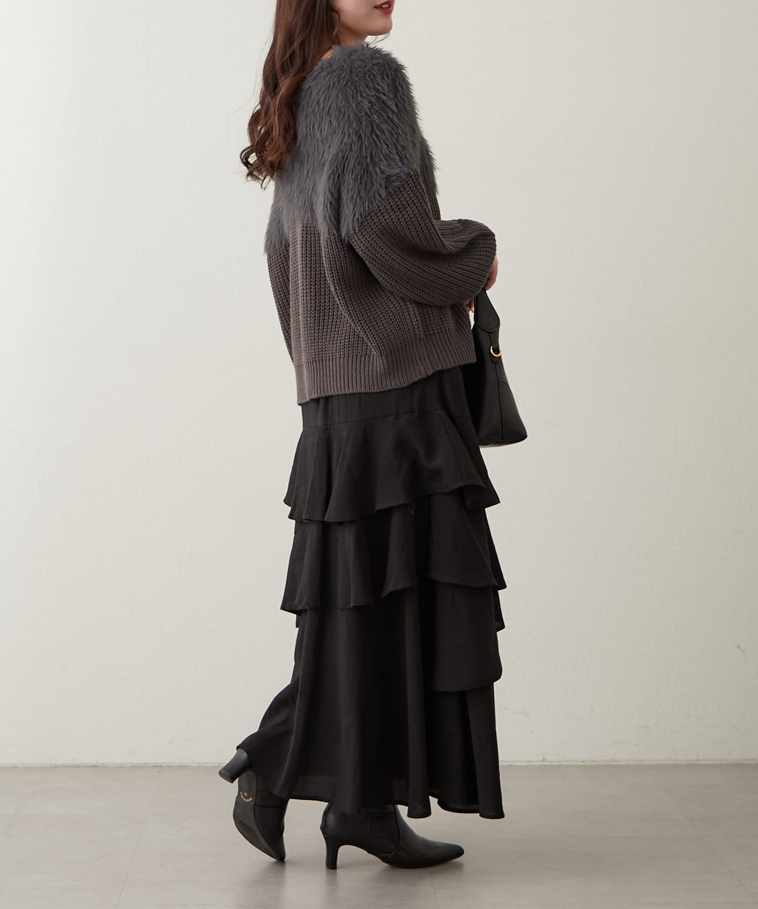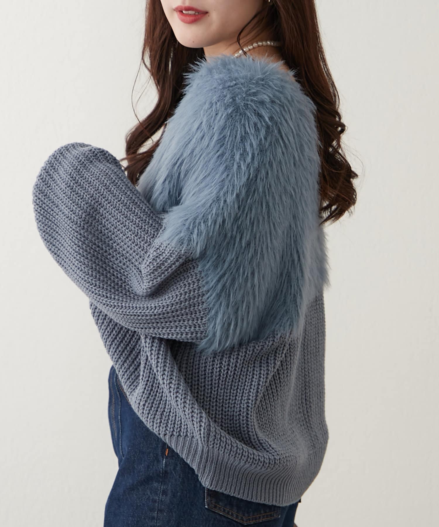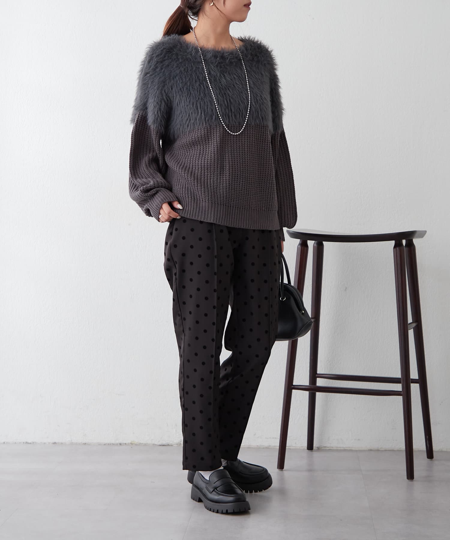 ・ふわふわっとしたシャギーと畦編みニットの切替がポイント