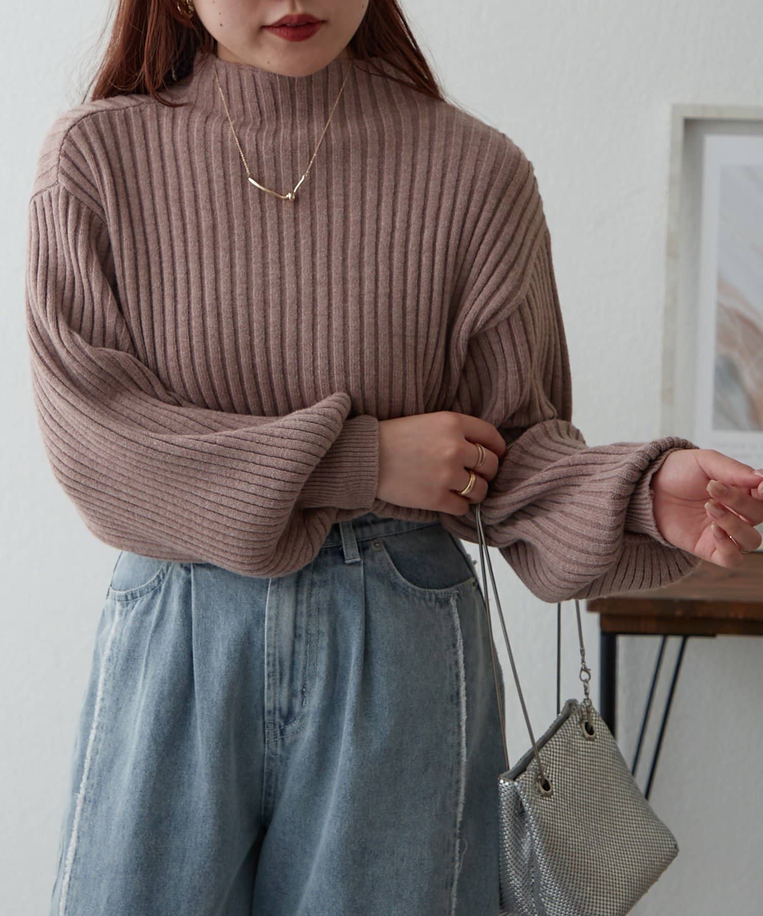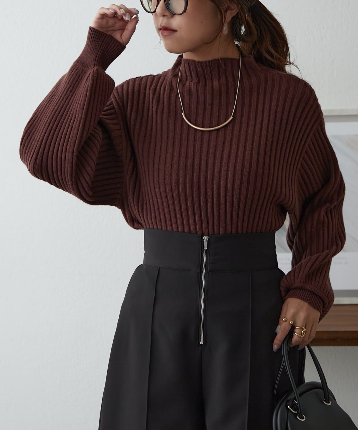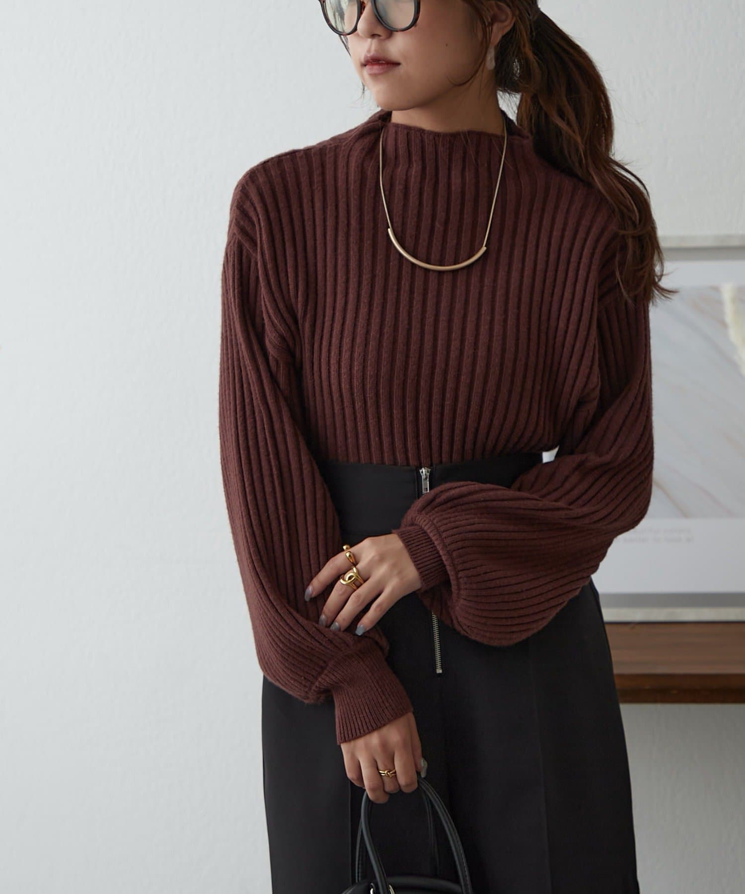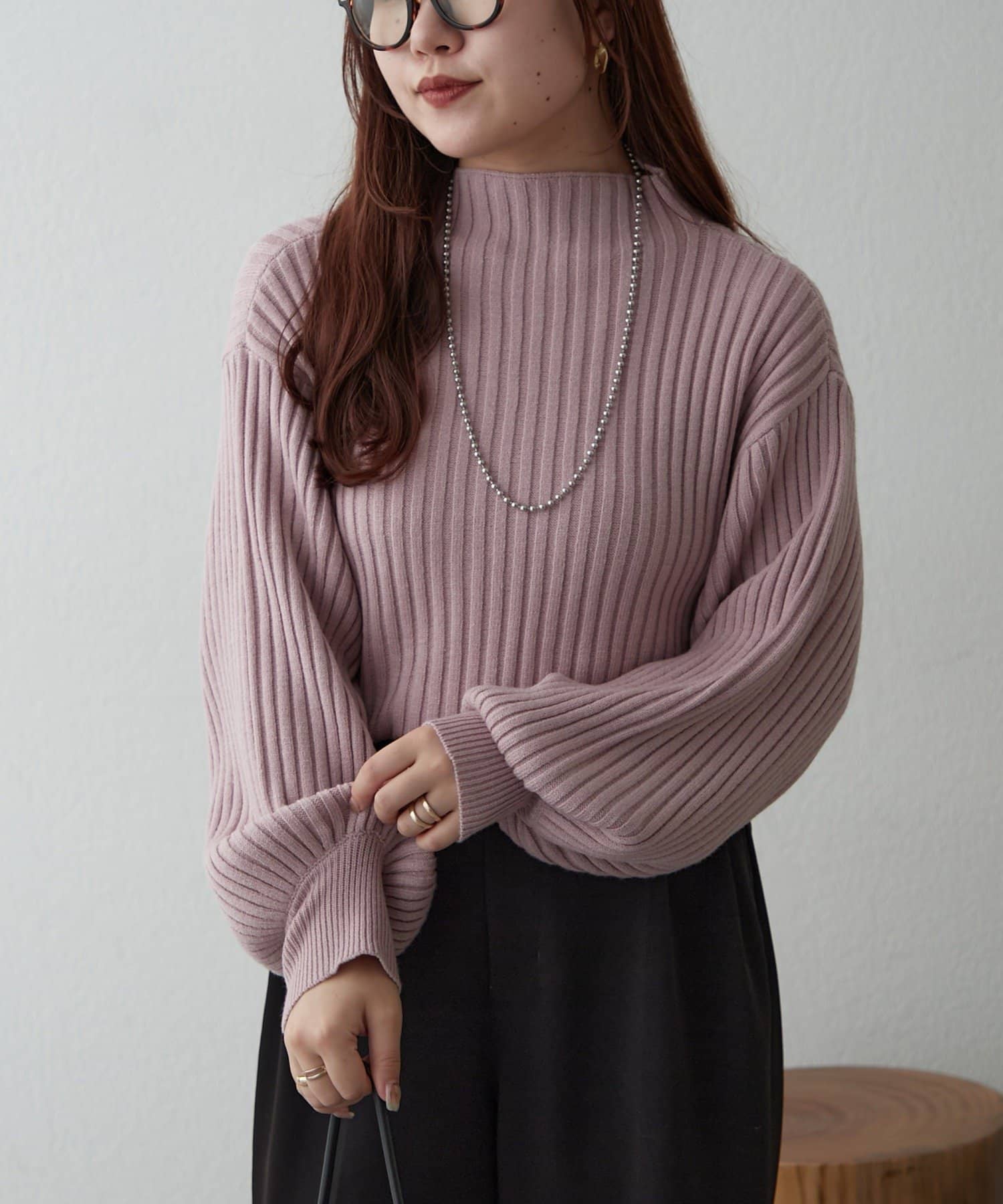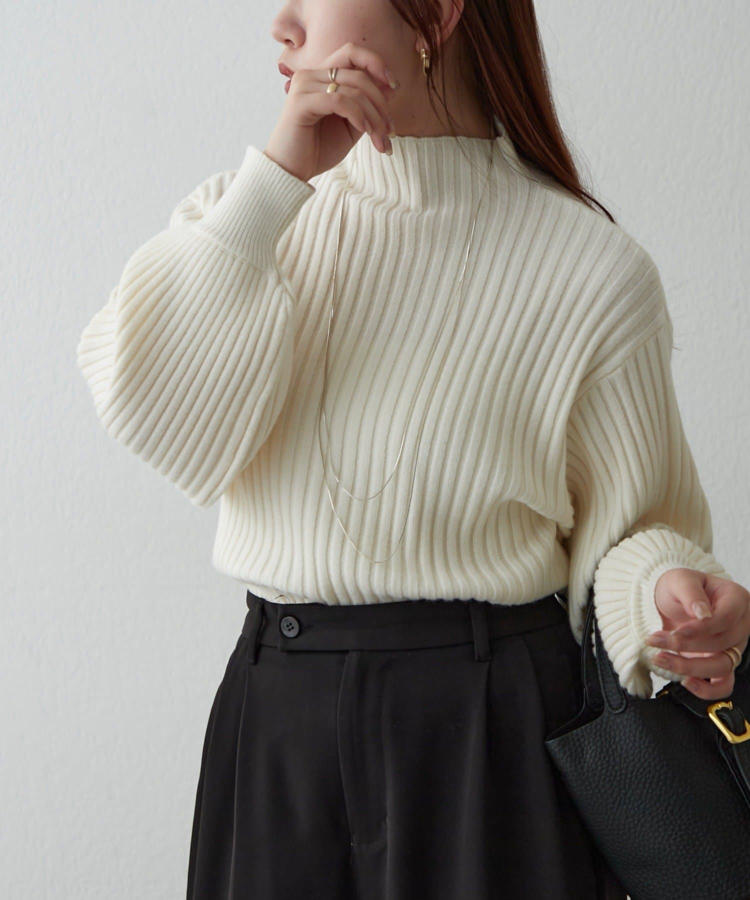 ・ボリュームスリーブとハイネックが程よいルーズさを演出。着るだけで旬顔に。