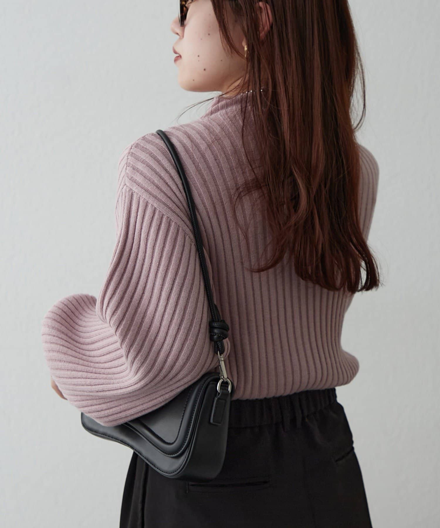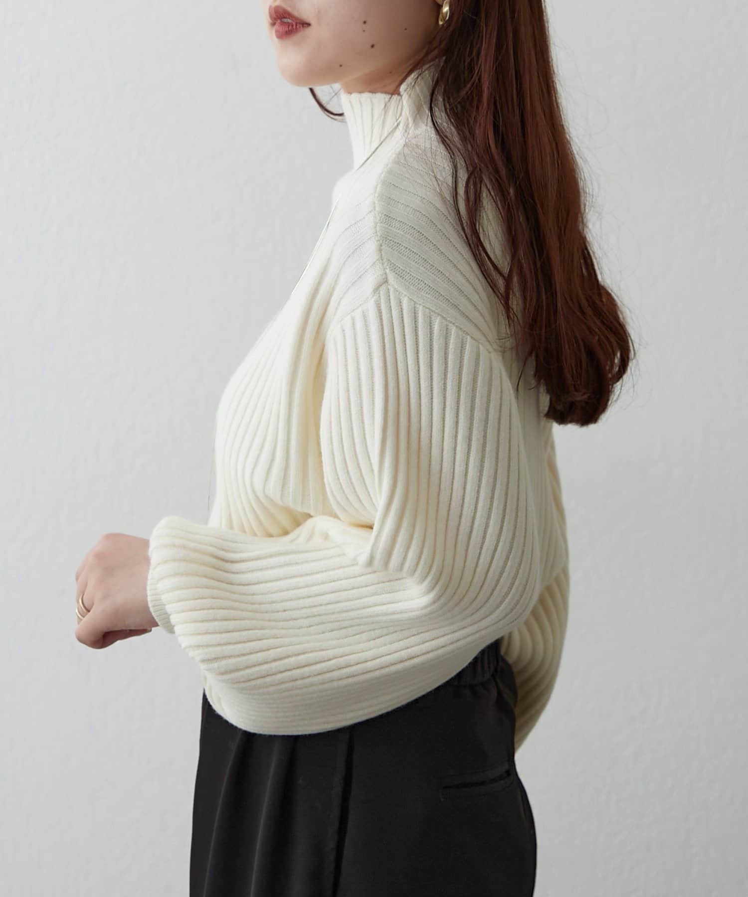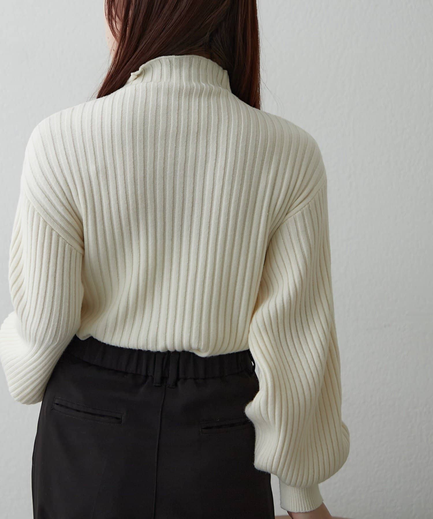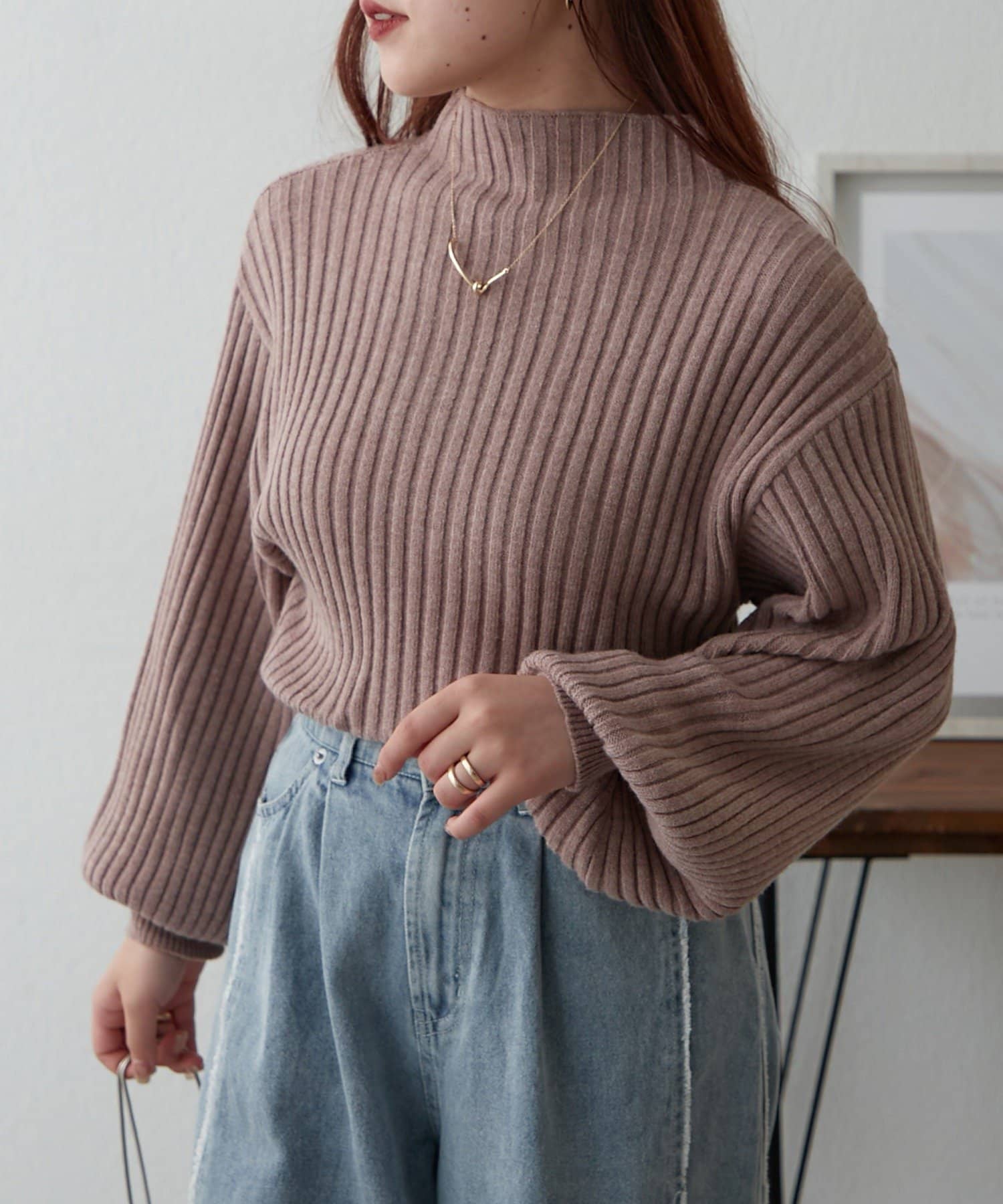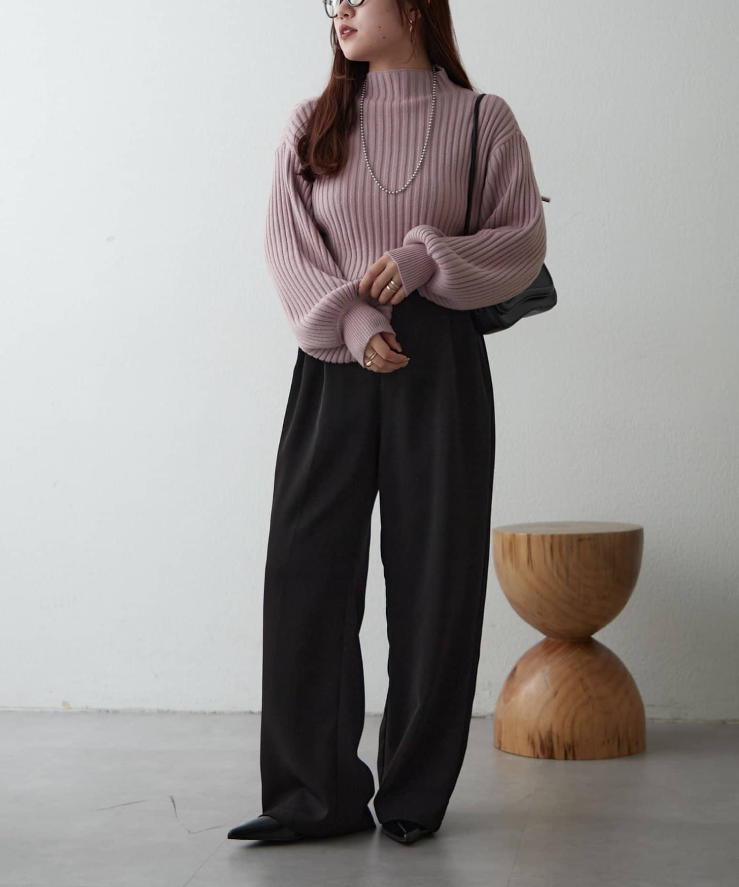 ・ボリュームスリーブとハイネックが程よいルーズさを演出。着るだけで旬顔に。