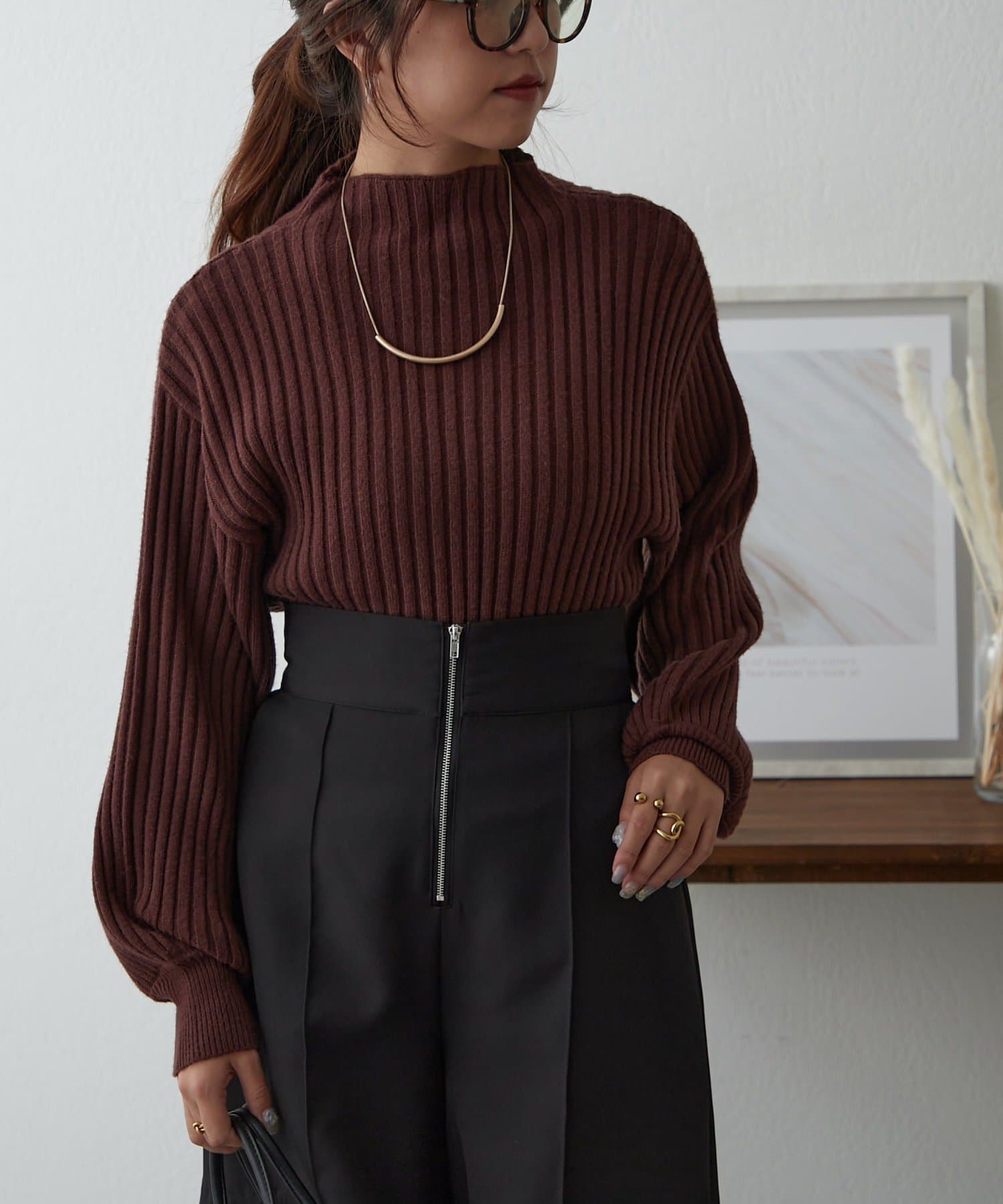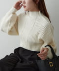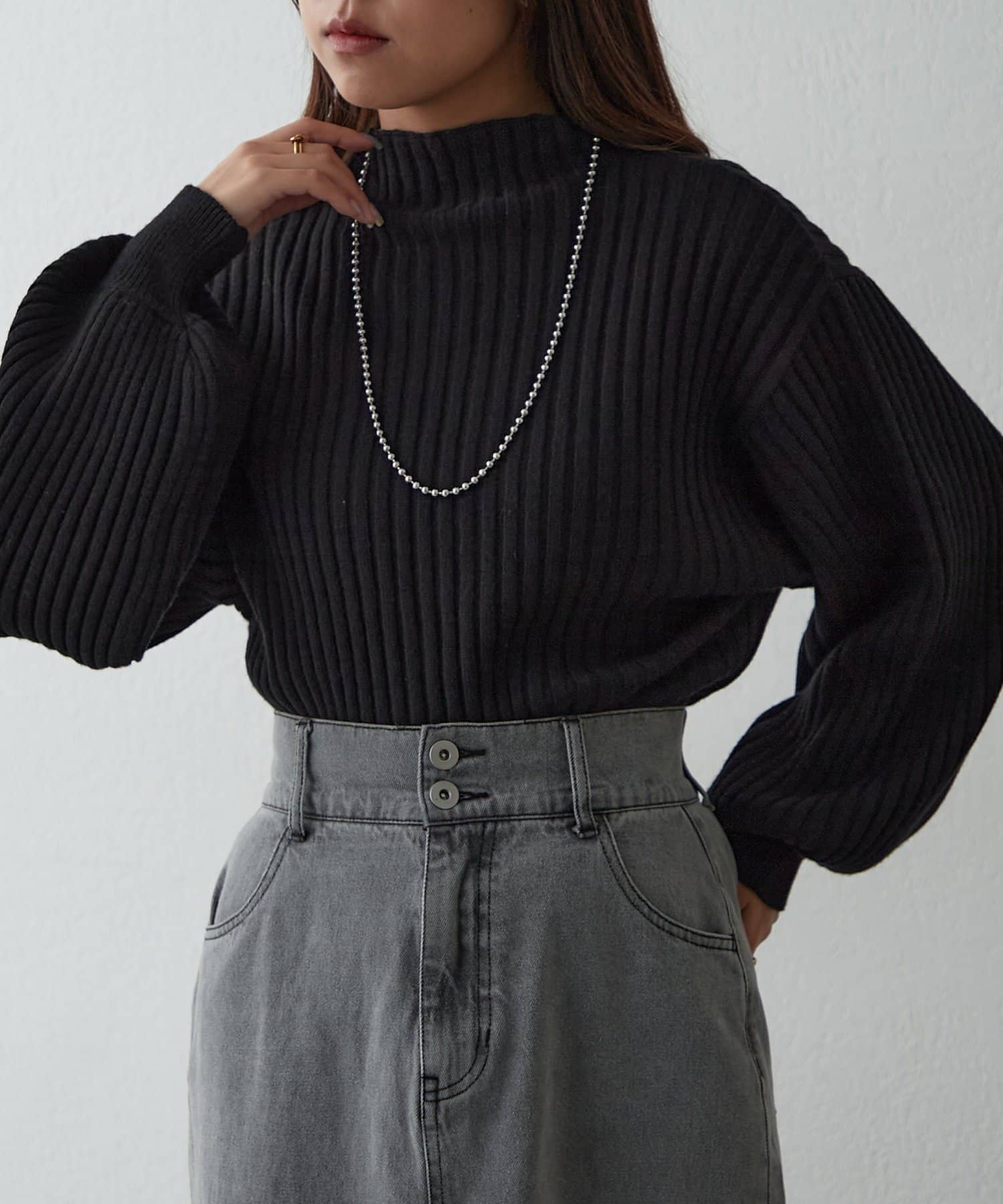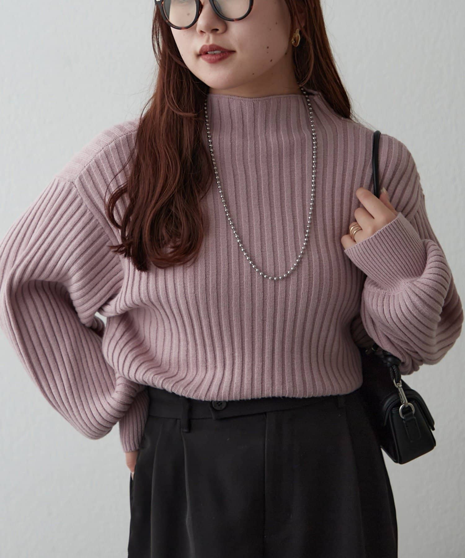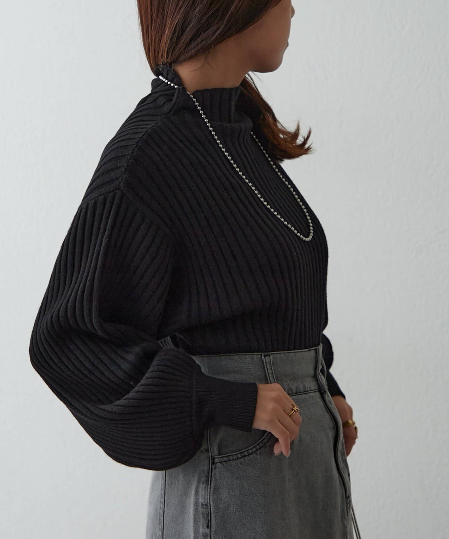 ・ボリュームスリーブとハイネックが程よいルーズさを演出。着るだけで旬顔に。