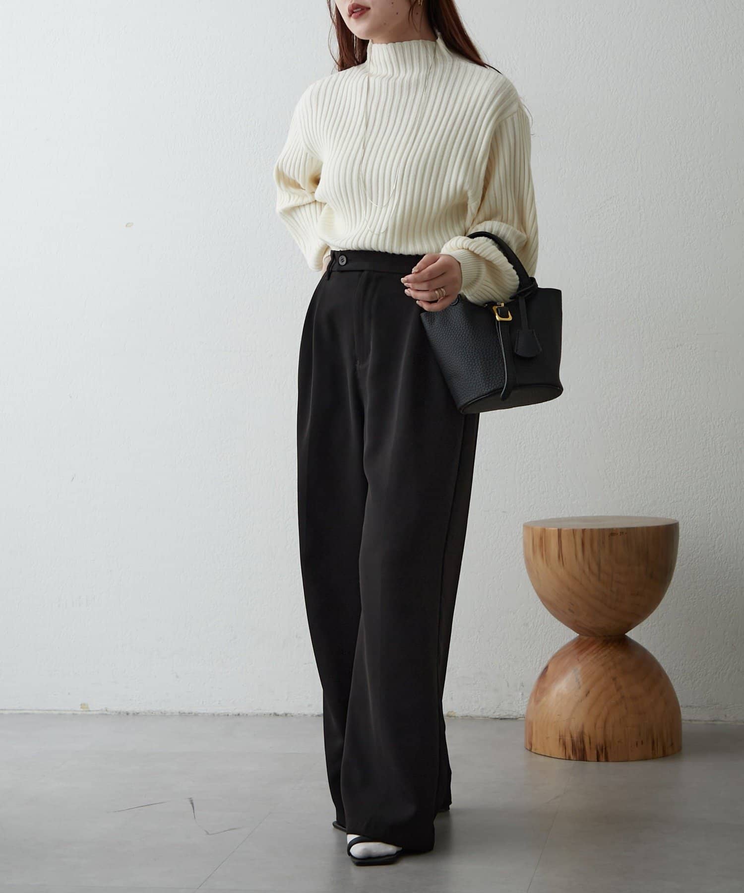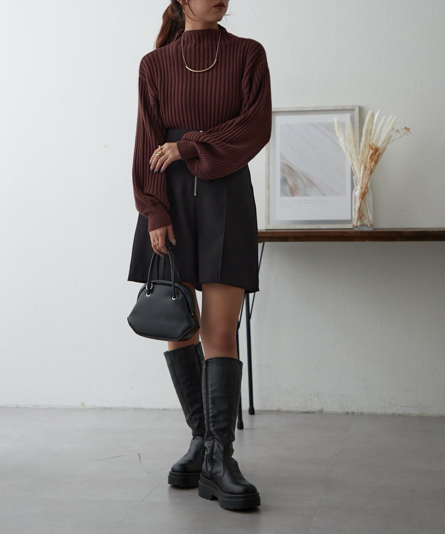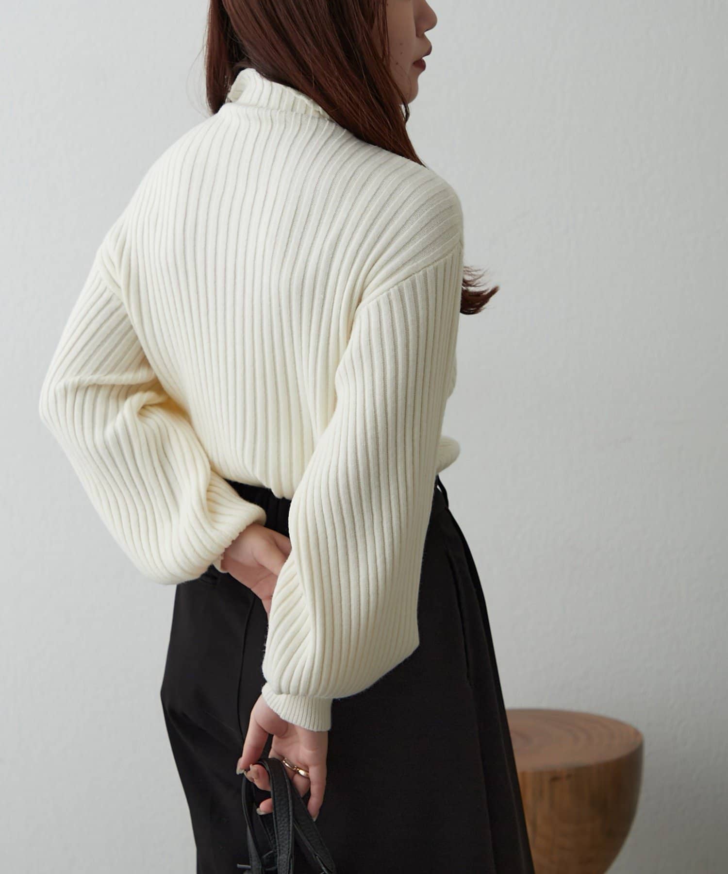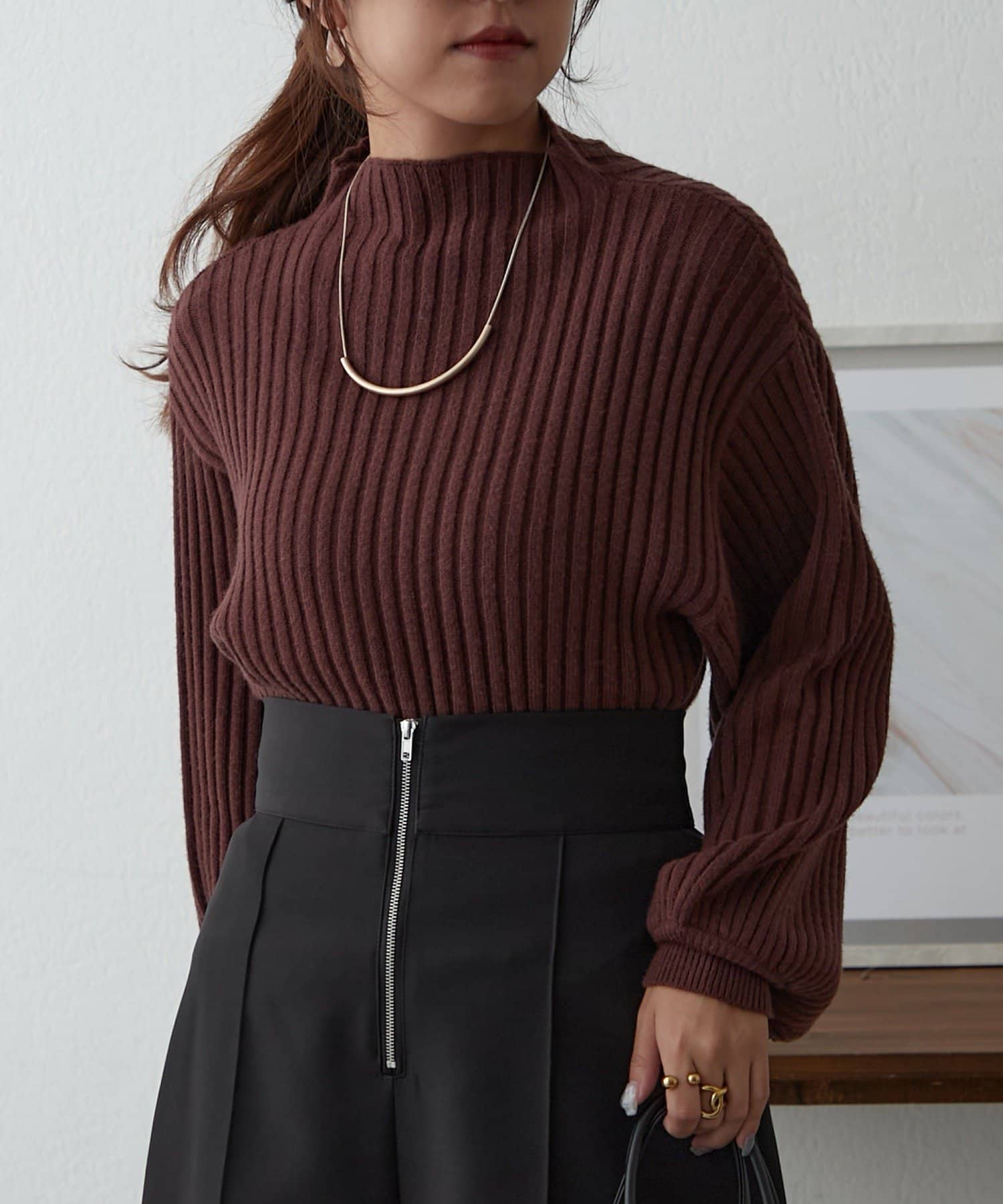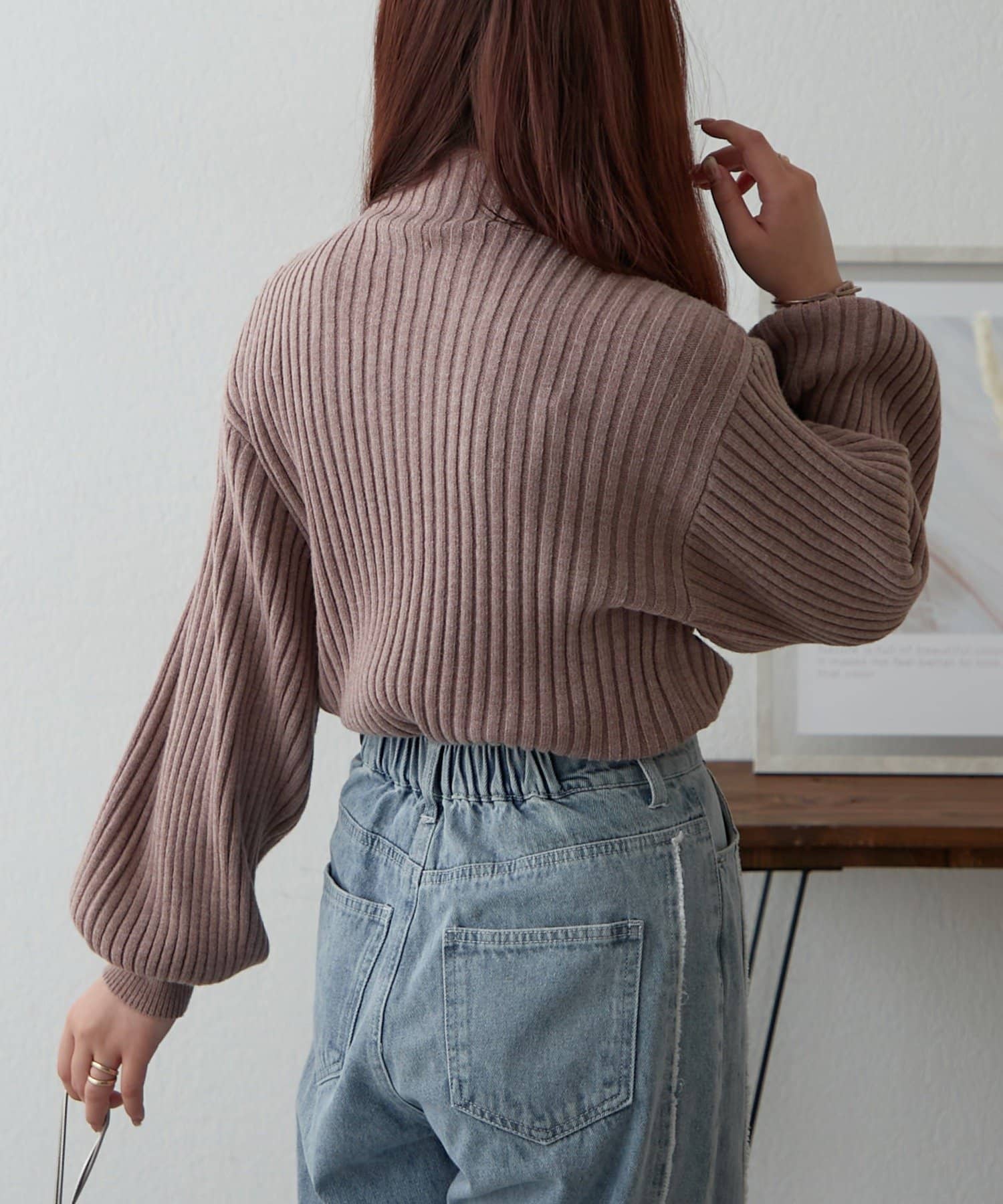 ・ボリュームスリーブとハイネックが程よいルーズさを演出。着るだけで旬顔に。