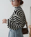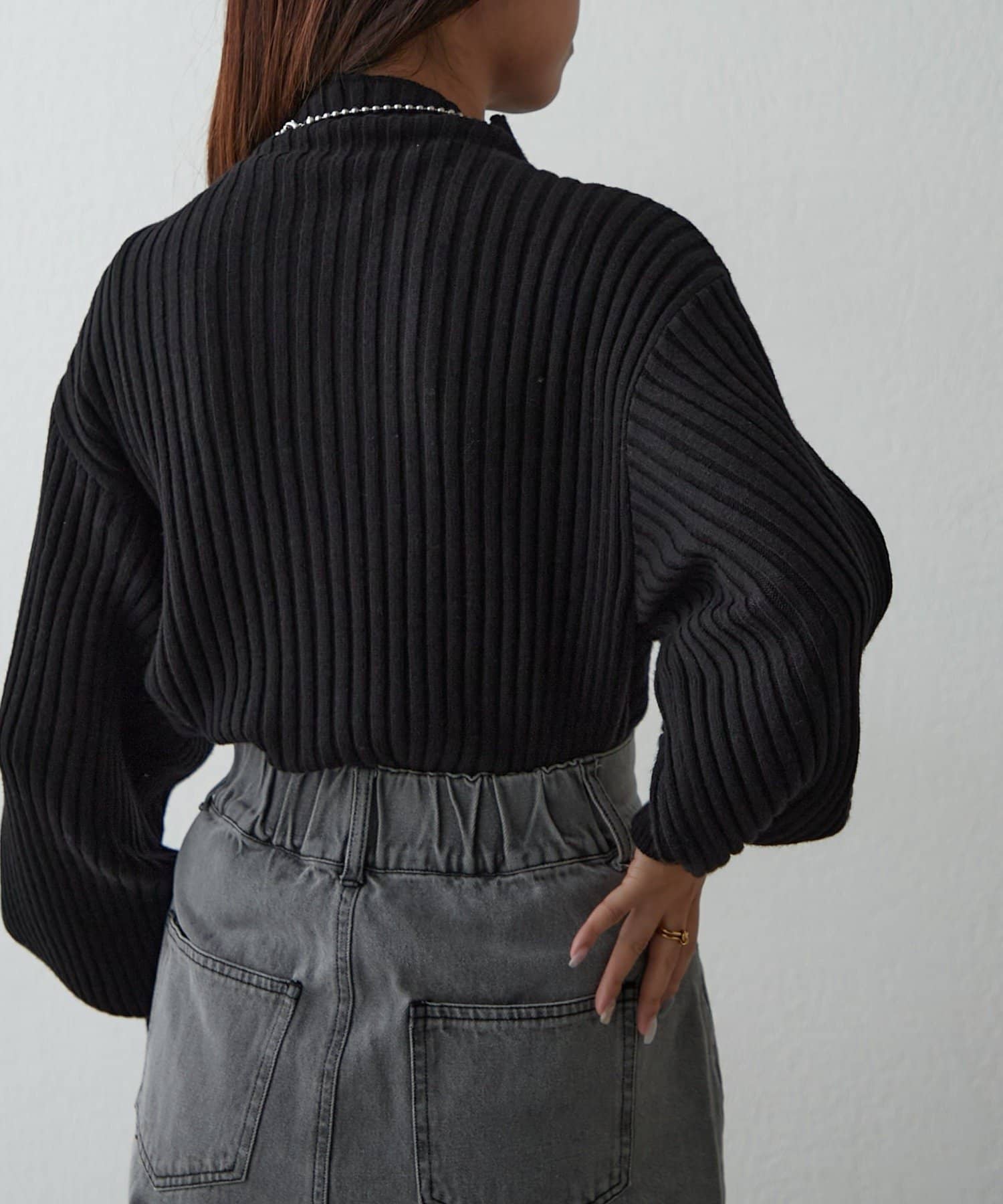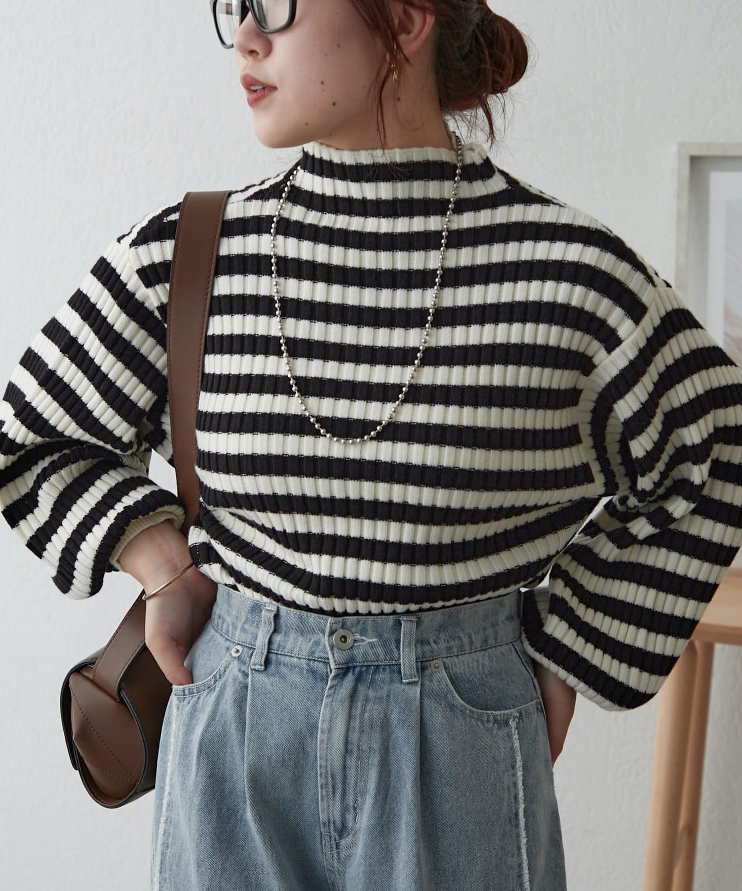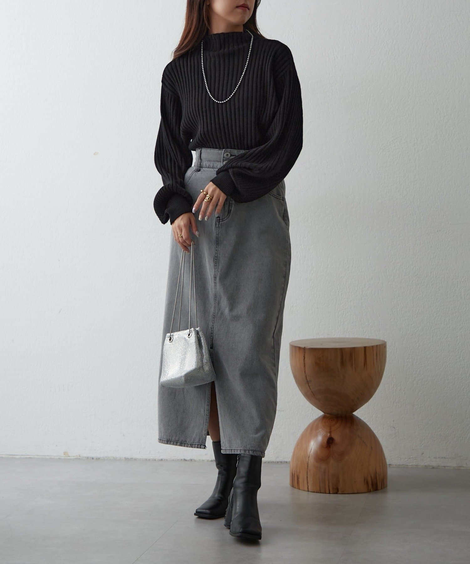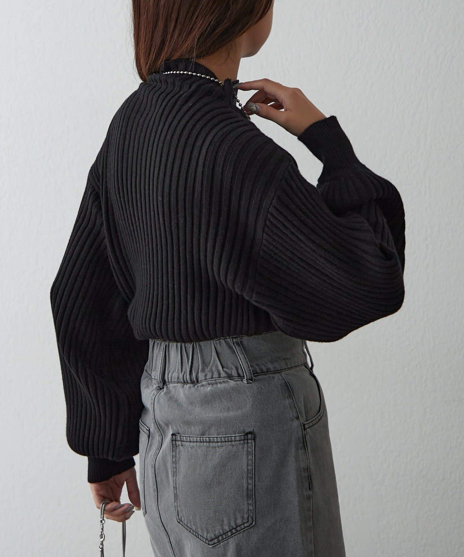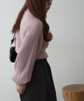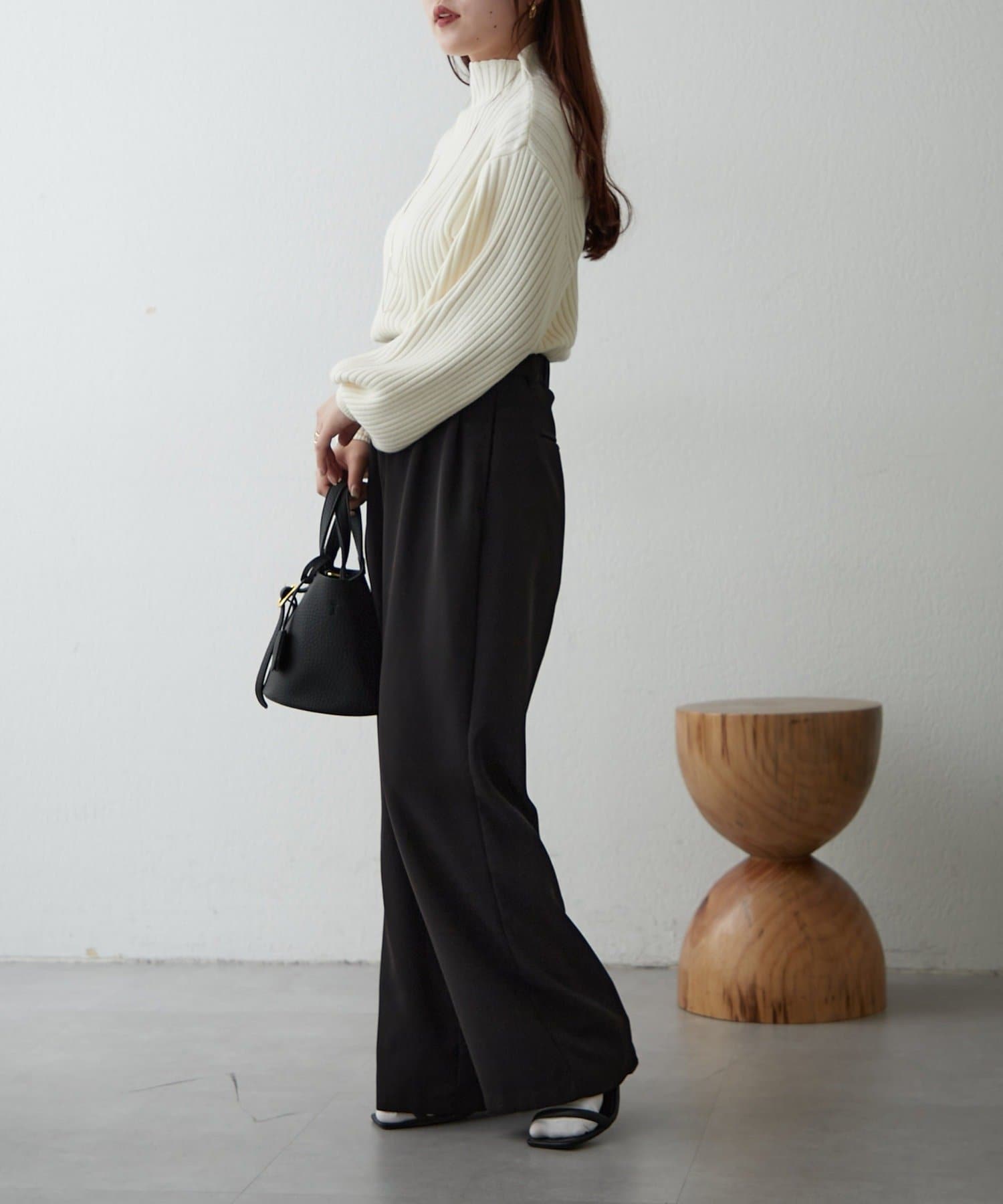 ・ボリュームスリーブとハイネックが程よいルーズさを演出。着るだけで旬顔に。