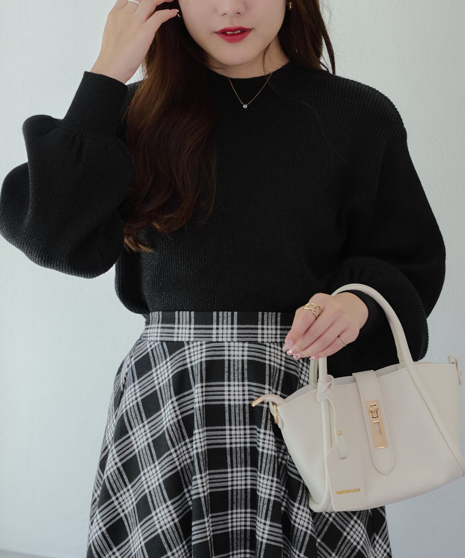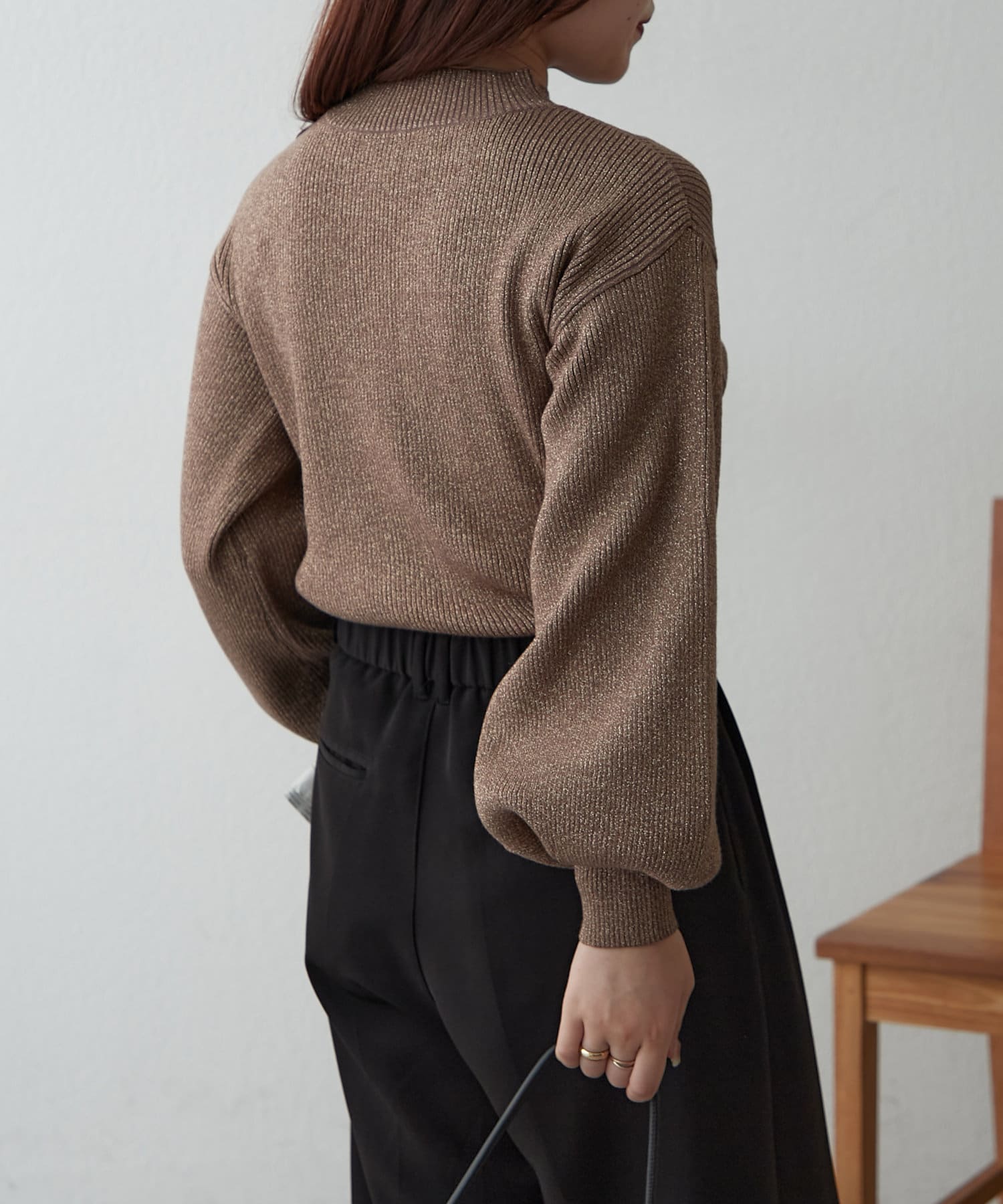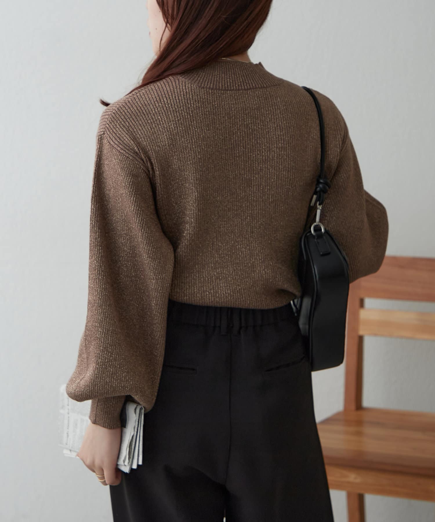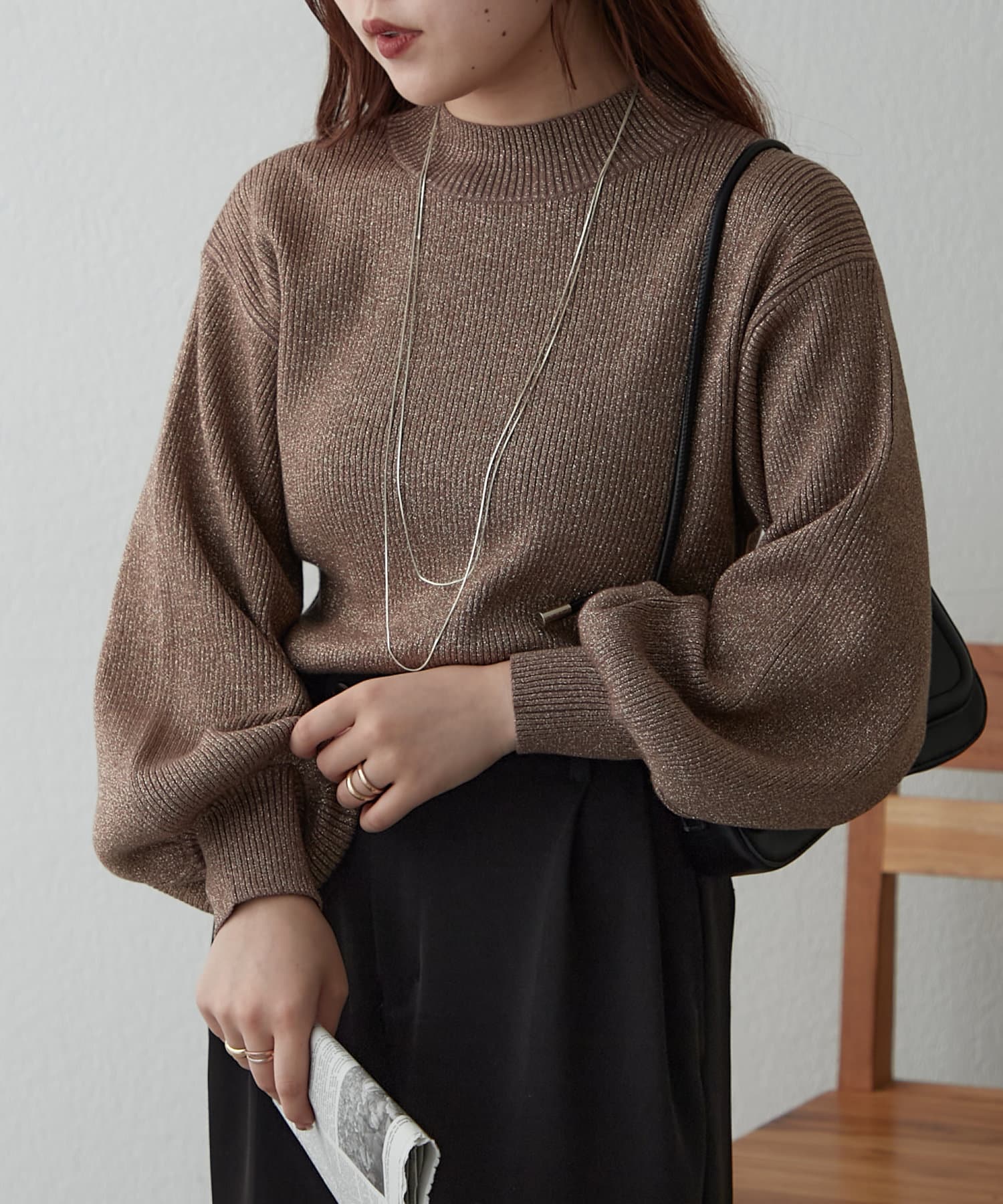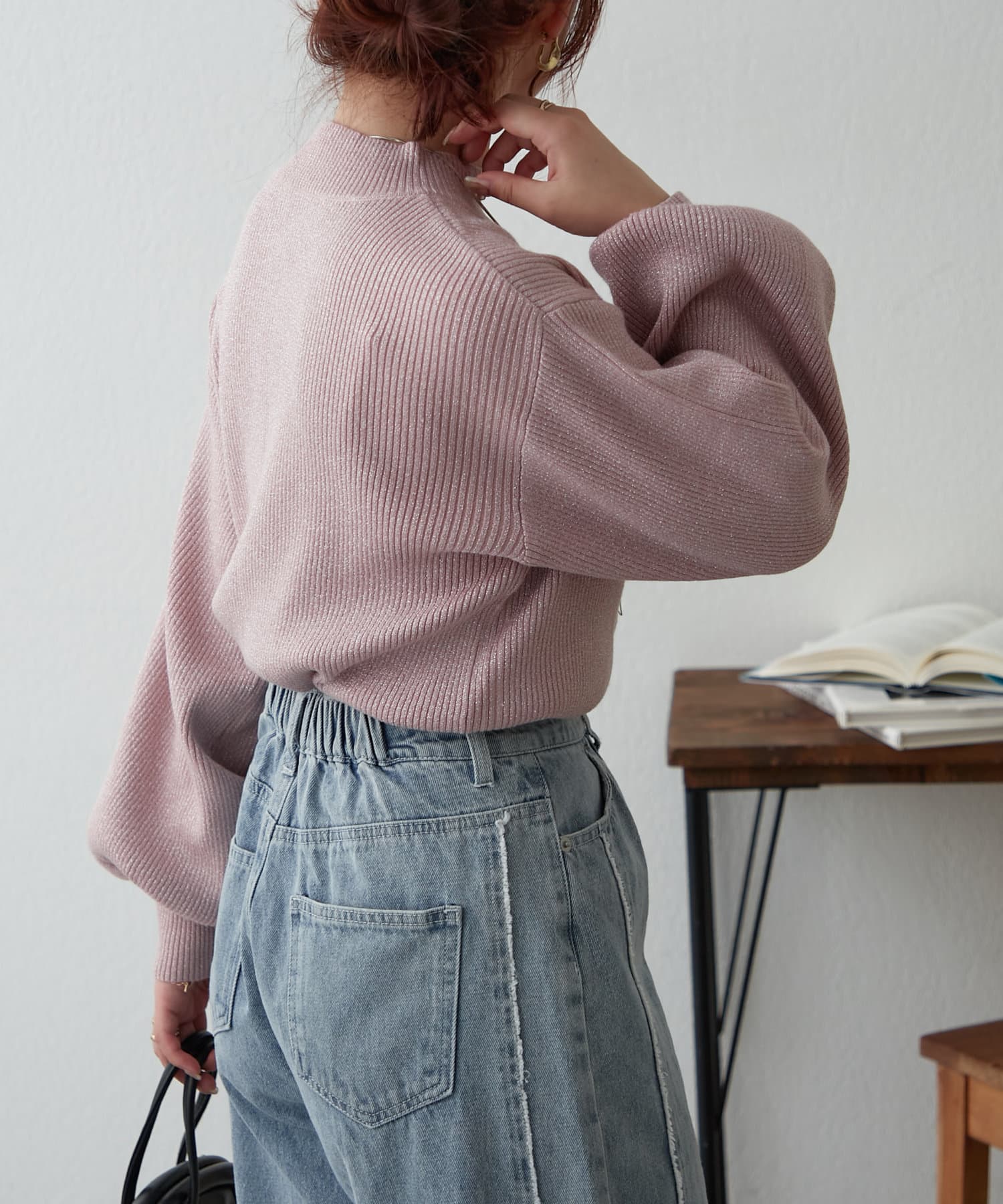 ・ラメ入りでキラキラとした素材でシンプルながら華やかさがあるニット(ボーダーはラメ入りではございません)