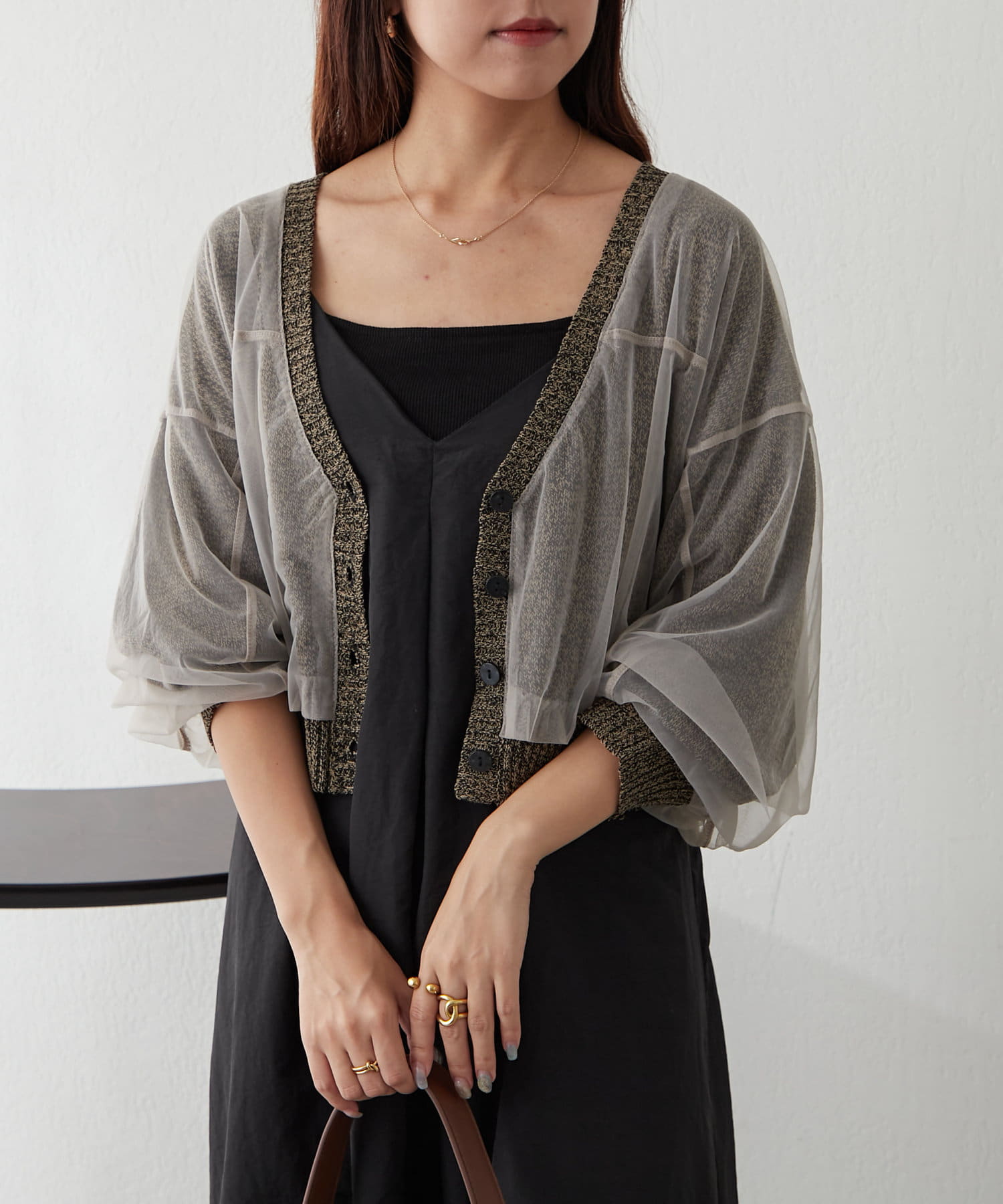 ・ボタンを全て閉めてトップスとしてお召し頂いても主役級の華やかさに。