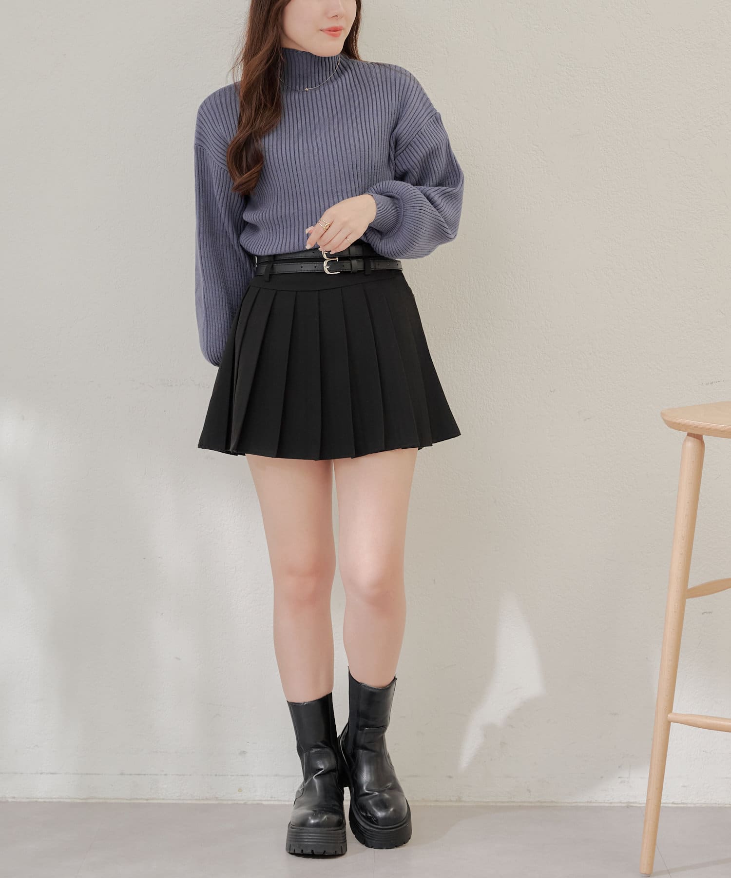 ・プリーツミニスカ、ロングブーツ合わせで王道のガーリーな着こなしがオススメ