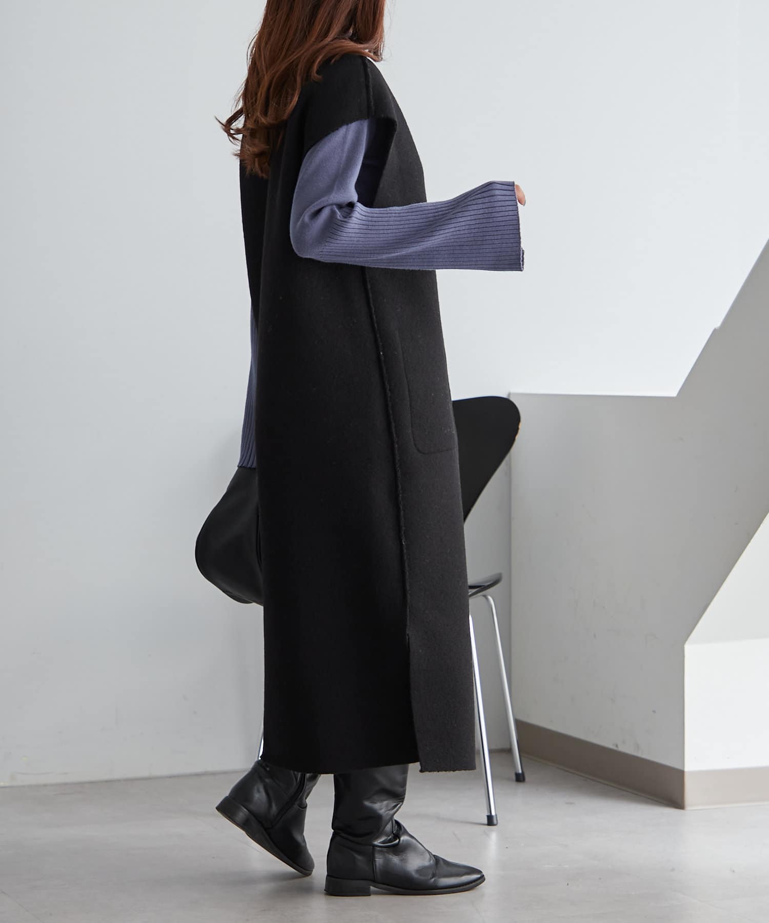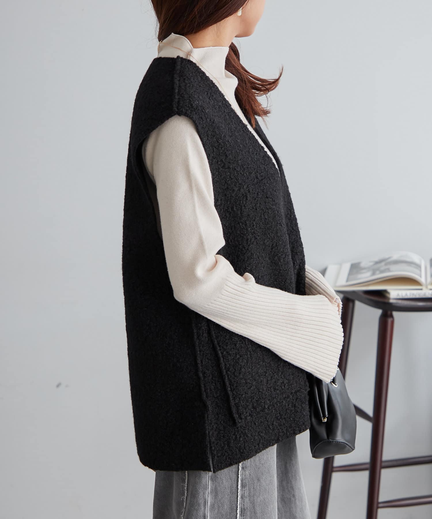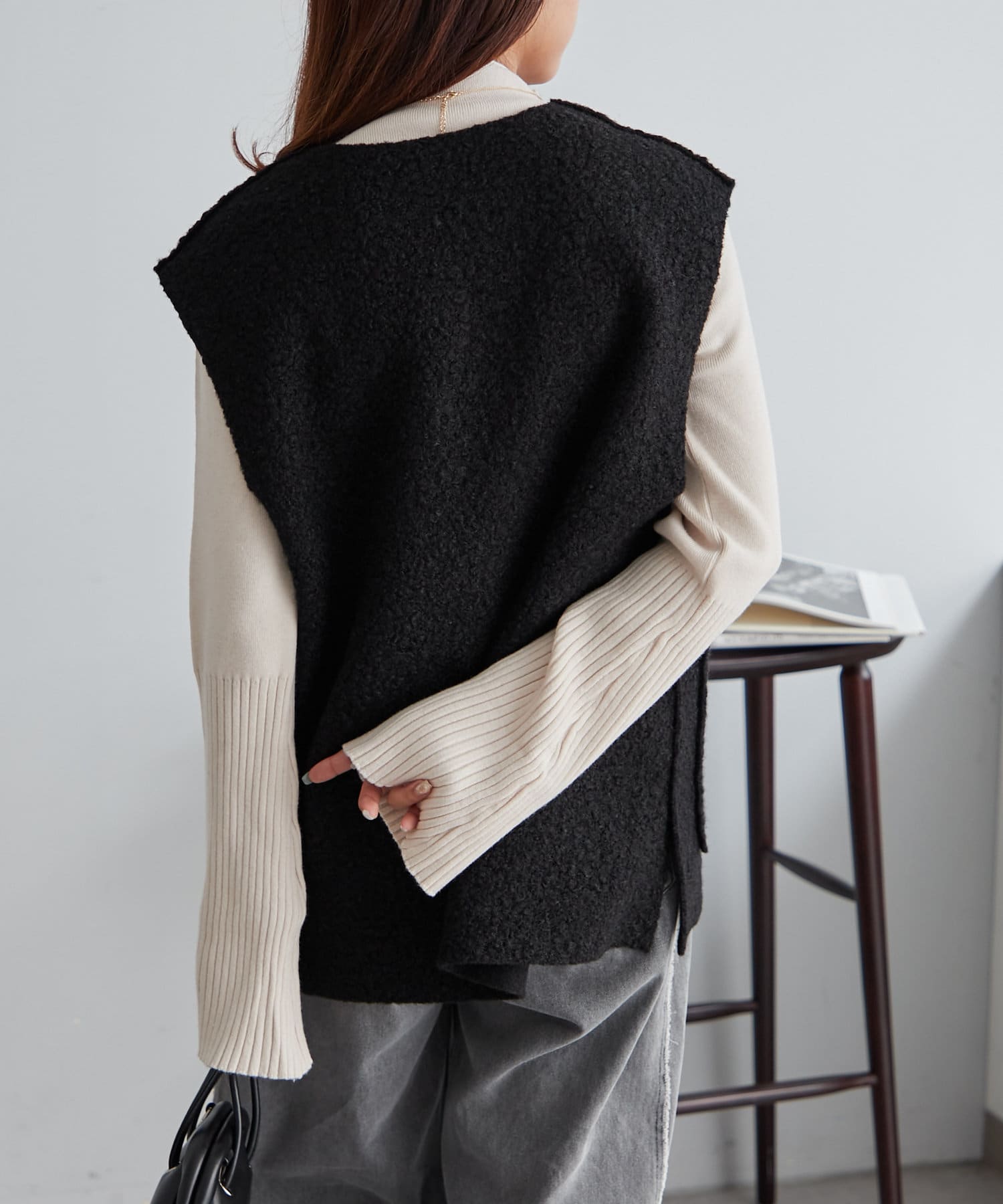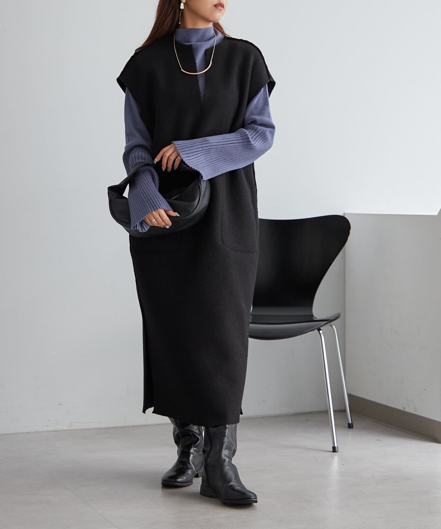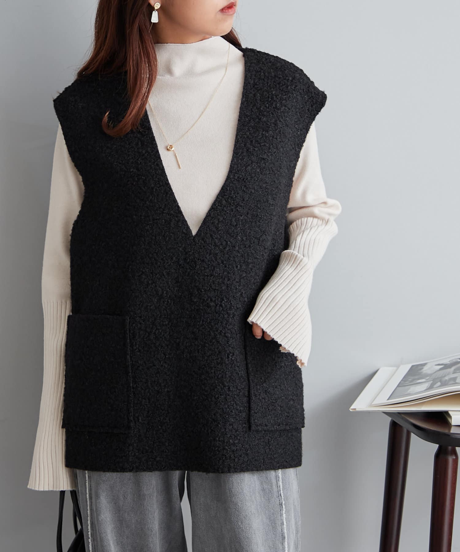 ・ノースリのワンピースにも合わせやすい肉感のニットです。