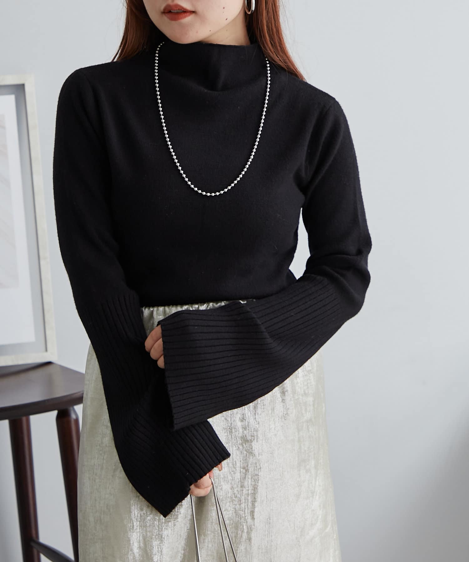 【WEB限定】袖フレアハイネックニット