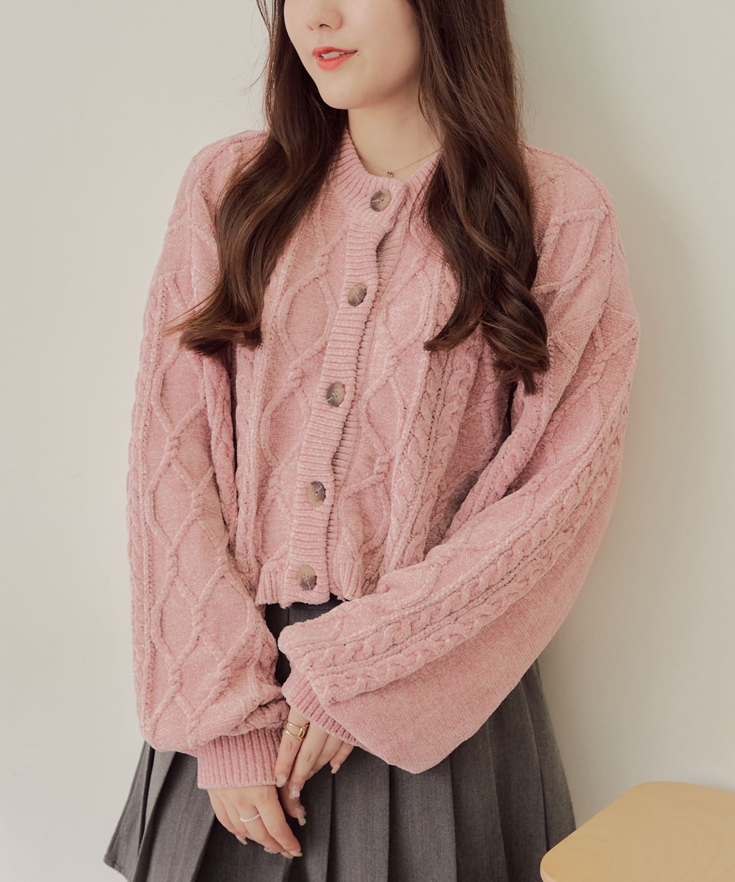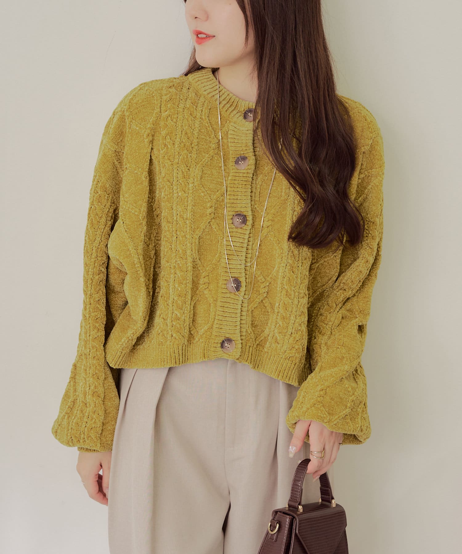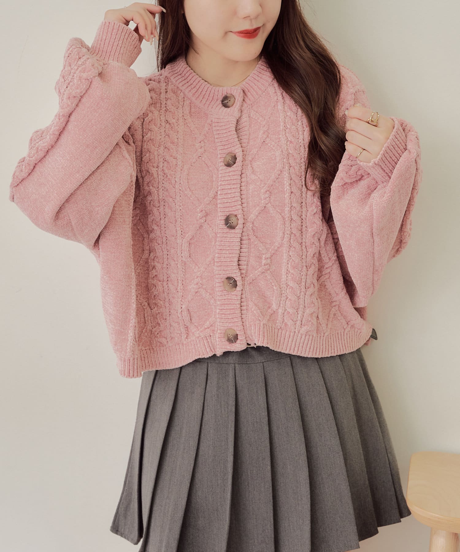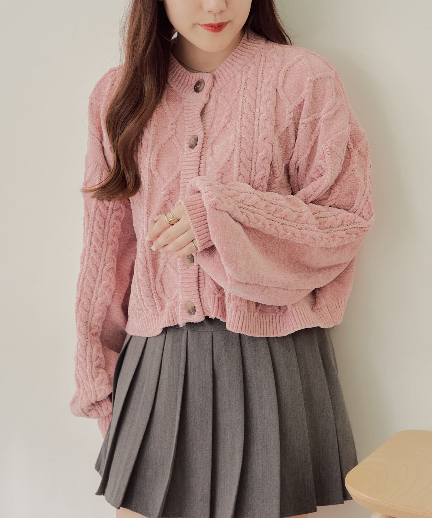 ・毛玉になりにくいモールニットのカーディガン。